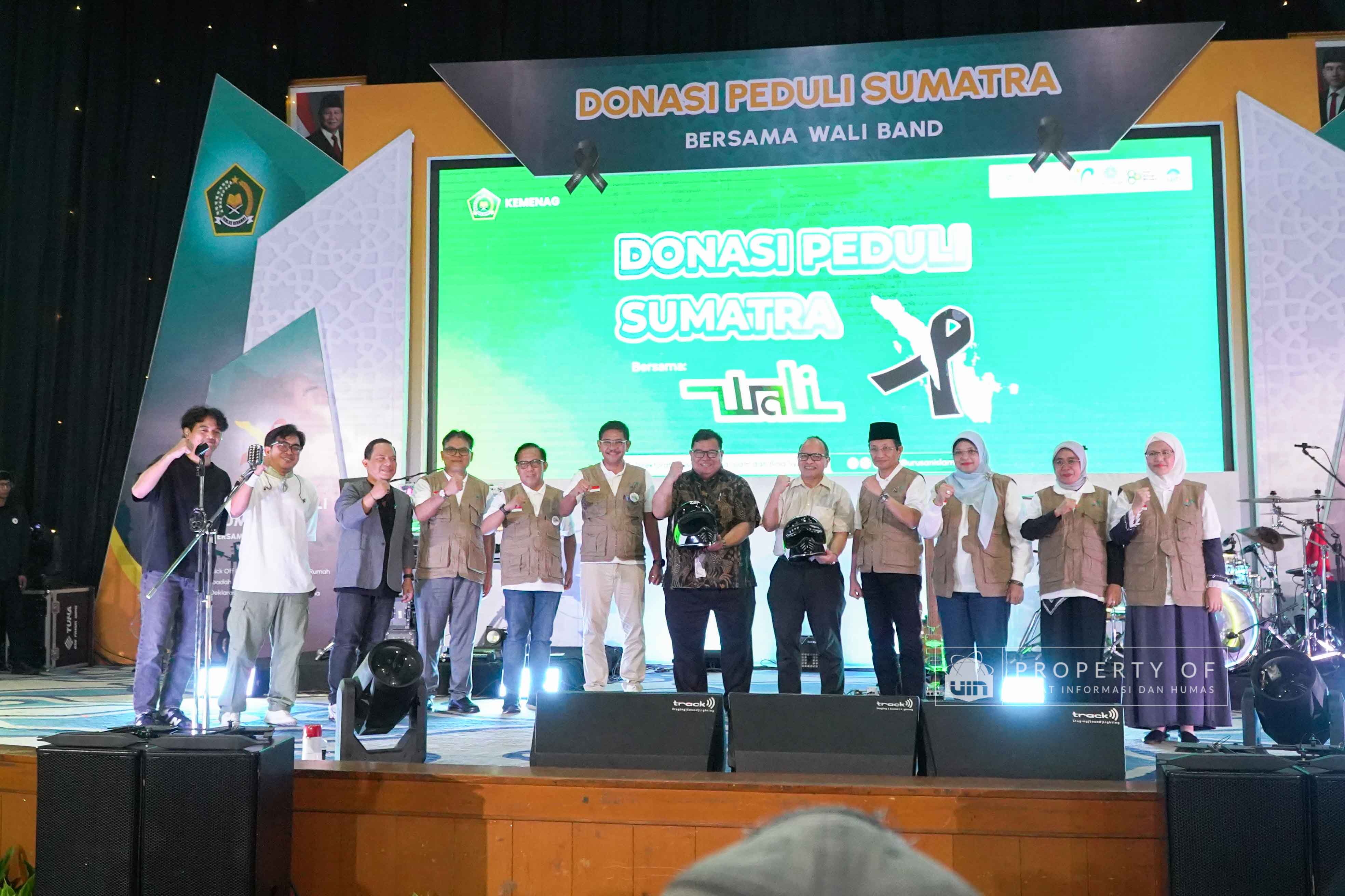 Harun Nasution Auditorium, UIN Online News — The Directorate of Islamic Religious Affairs and Sharia Development of the Ministry of Religious Affairs of the Republic of Indonesia (Kemenag RI), in collaboration with Syarif Hidayatullah State Islamic University (UIN) Jakarta, organized the “Donasi Peduli Sumatra” (Sumatra Care Donation) event together with the Indonesian music group Wali at the Harun Nasution Auditorium on Friday (12 December 2025).