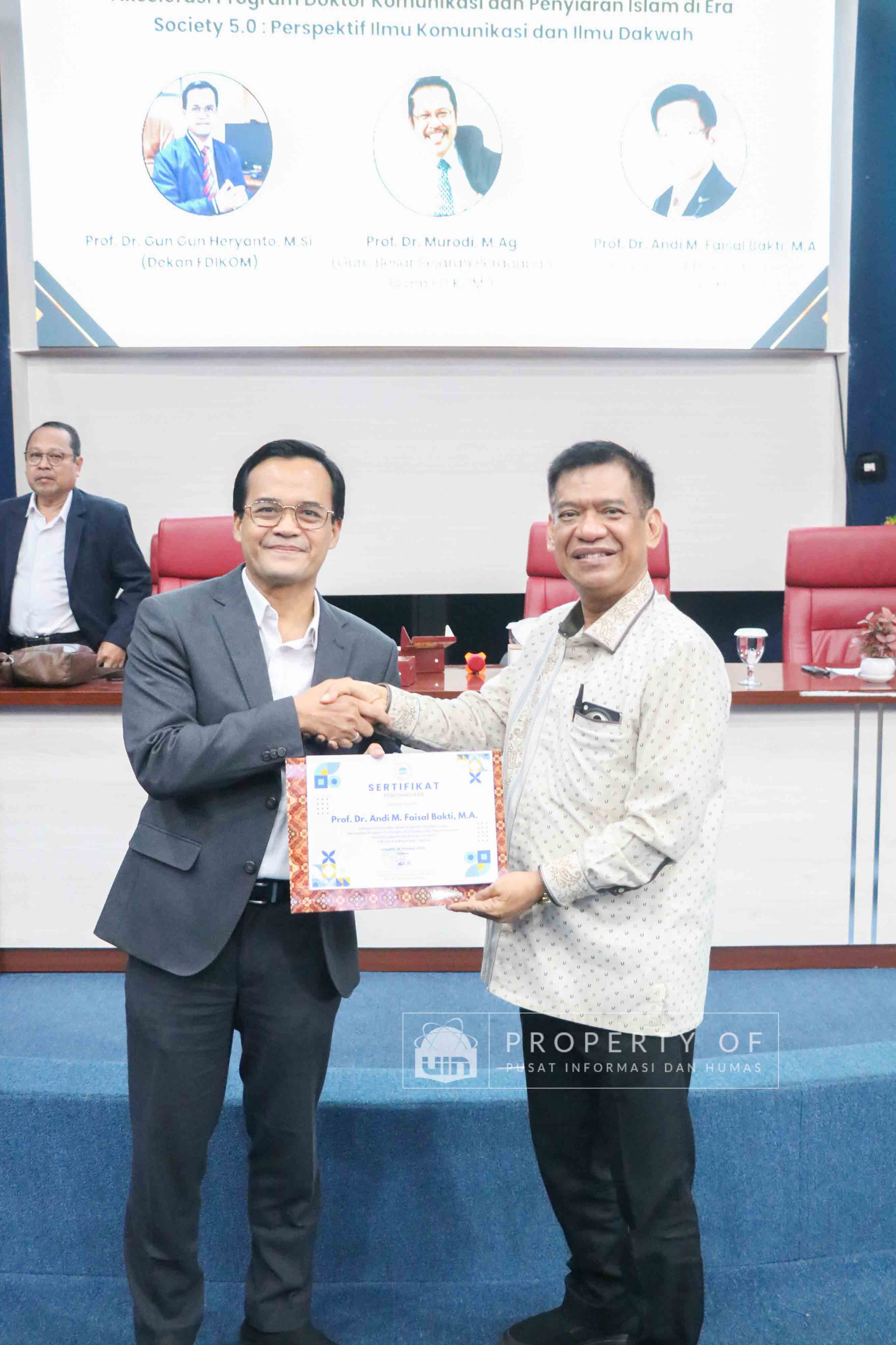 Fakultas Dakwah dan Ilmu Komunikasi (FDIKOM) UIN Jakarta menggelar acara Academic Day bertajuk “Akselerasi Program Doktor KPI di Era Society 5.0.” di Theater Lantai 2 Fakultas Dakwah dan Ilmu Komunikasi UIN dengan tamu undangan dari Program Doktor Komunikasi dan Penyiaran Islam (KPI). Acara yang diselenggarakan pada Selasa (28/10/2025) ini dibuka dengan khidmat oleh Syafira Ulfa dan pembacaan ayat suci Al-Qur’an oleh Ana Ahadiyah Royani. Lagu Indonesia Raya dan Hymne Dakwah menggema melanjutkan dibukanya acara. Hadirin kemudian menikmati tayangan video profil Fakultas Dakwah dan Ilmu Komunikasi (FDIKOM), menampilkan perjalanan fakultas yang terus berkembang termasuk lahirnya program doktor KPI. (Fotografer: Kanza/Teks: Muhamad Arifin Ilham/Pusat Informasi dan Humas UIN Jakarta)