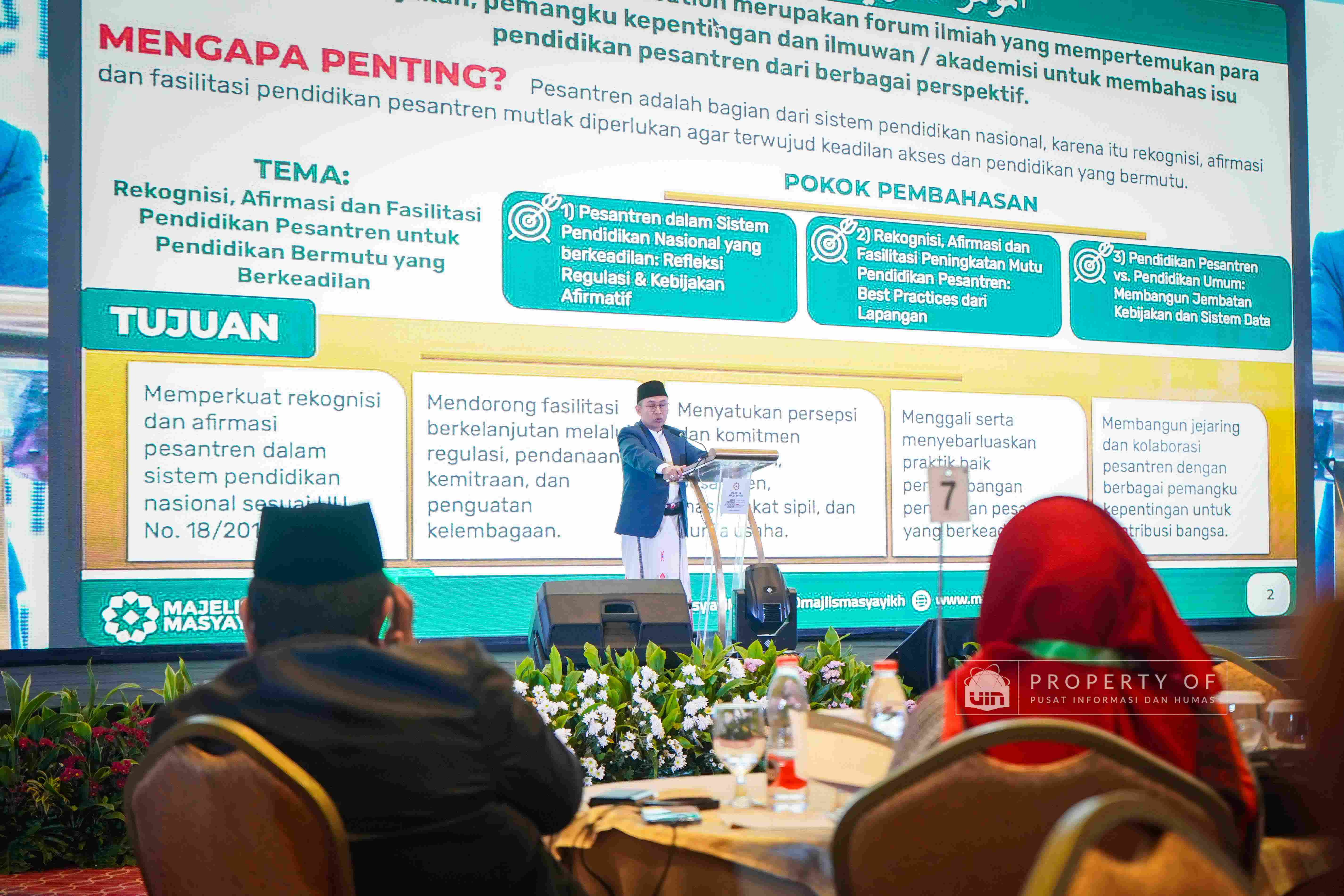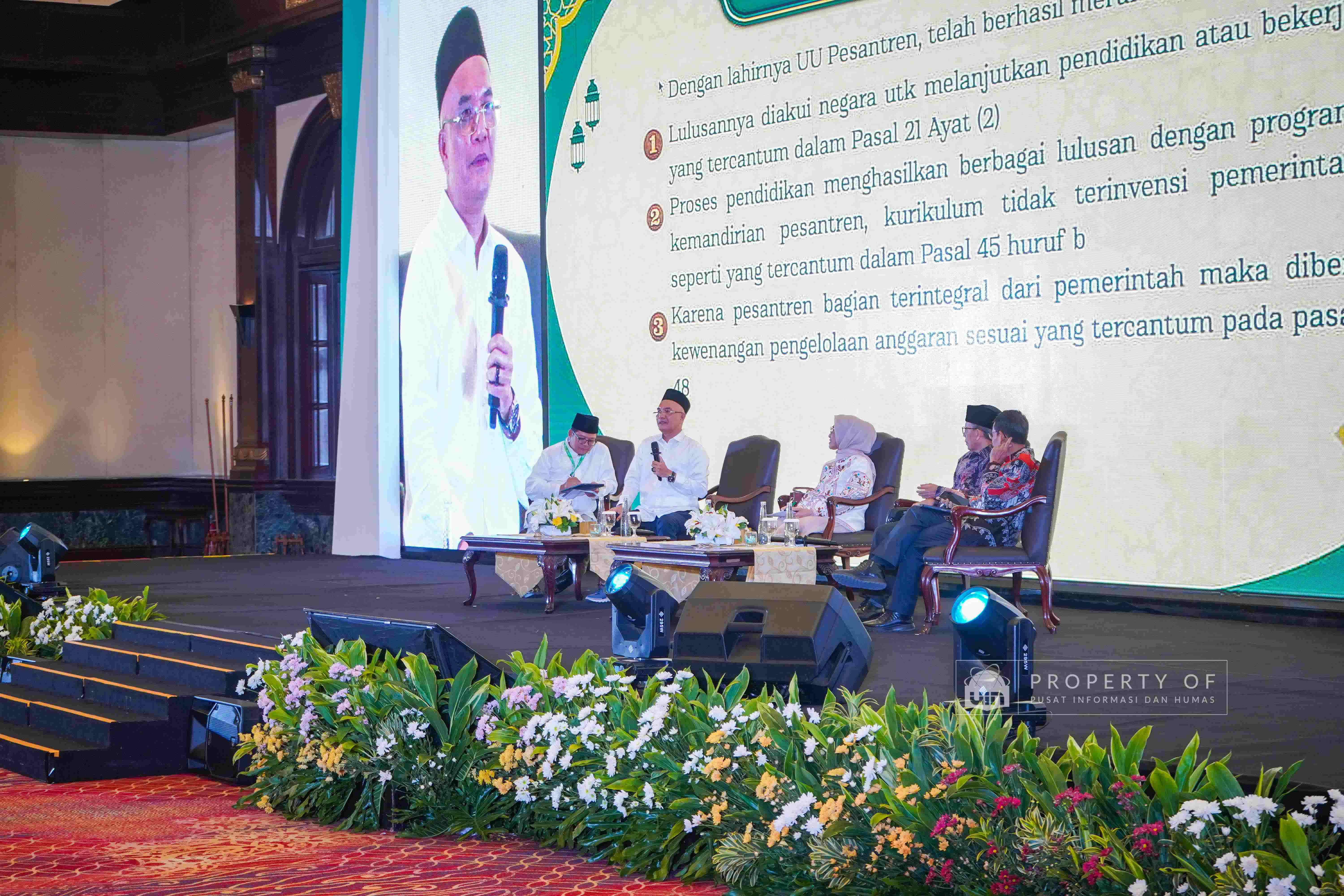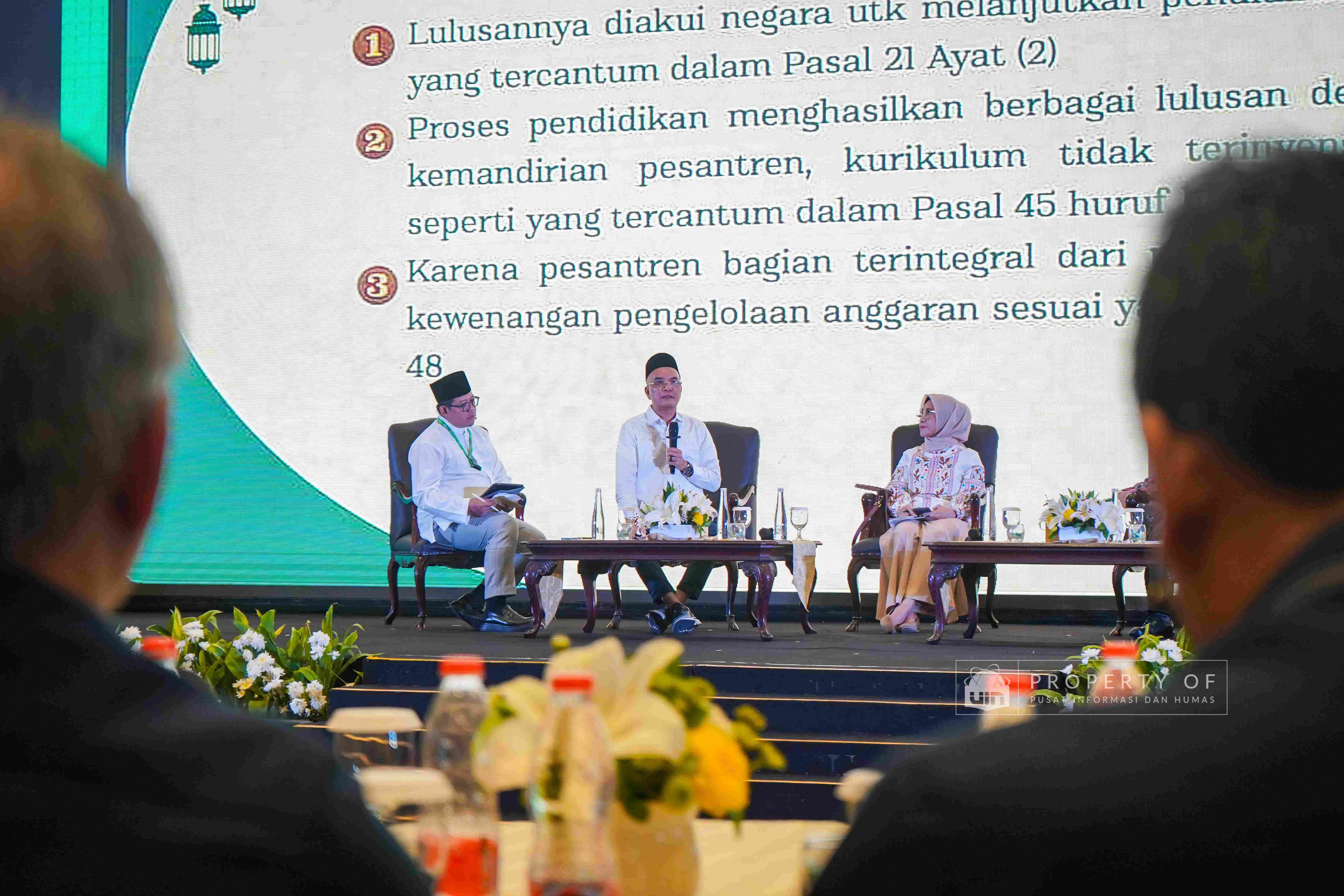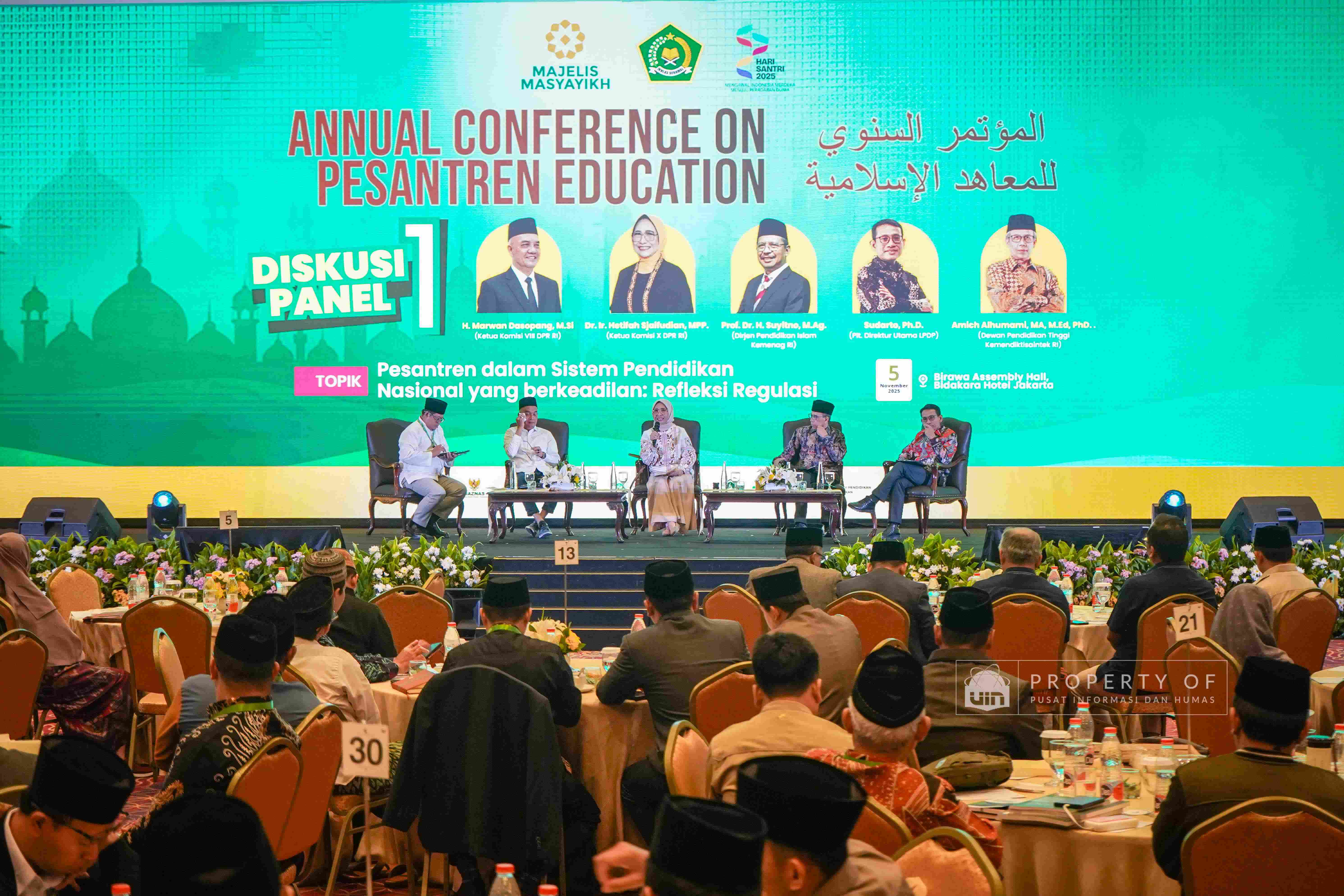 UIN Syarif Hidayatullah Jakarta menghadiri acara Annual Conference on Pesantren Education di Hotel Bidakara pada Rabu (5/11/2025). Dengan Majelis Masyasyikh yang menjadi tuan rumah, acara ini dibuka oleh Ketua Majelis Masyayikh KH. Abdul Ghaffar Rozin M.Ed. menyampaikan pidato seputar dampak kebijakan pesantren di bidang pendidkan yang disahkan oleh pemerintah. Kemudiah acara ini dilanjutkan ke diskusi panelis 1 untuk mengoreksi regulasi pesantren terkini. (Fotografer: Muhammad Ghifari Rahman/Teks: Muhamad Arifin Ilham/Pusat Informasi dan Humas UIN Jakarta)