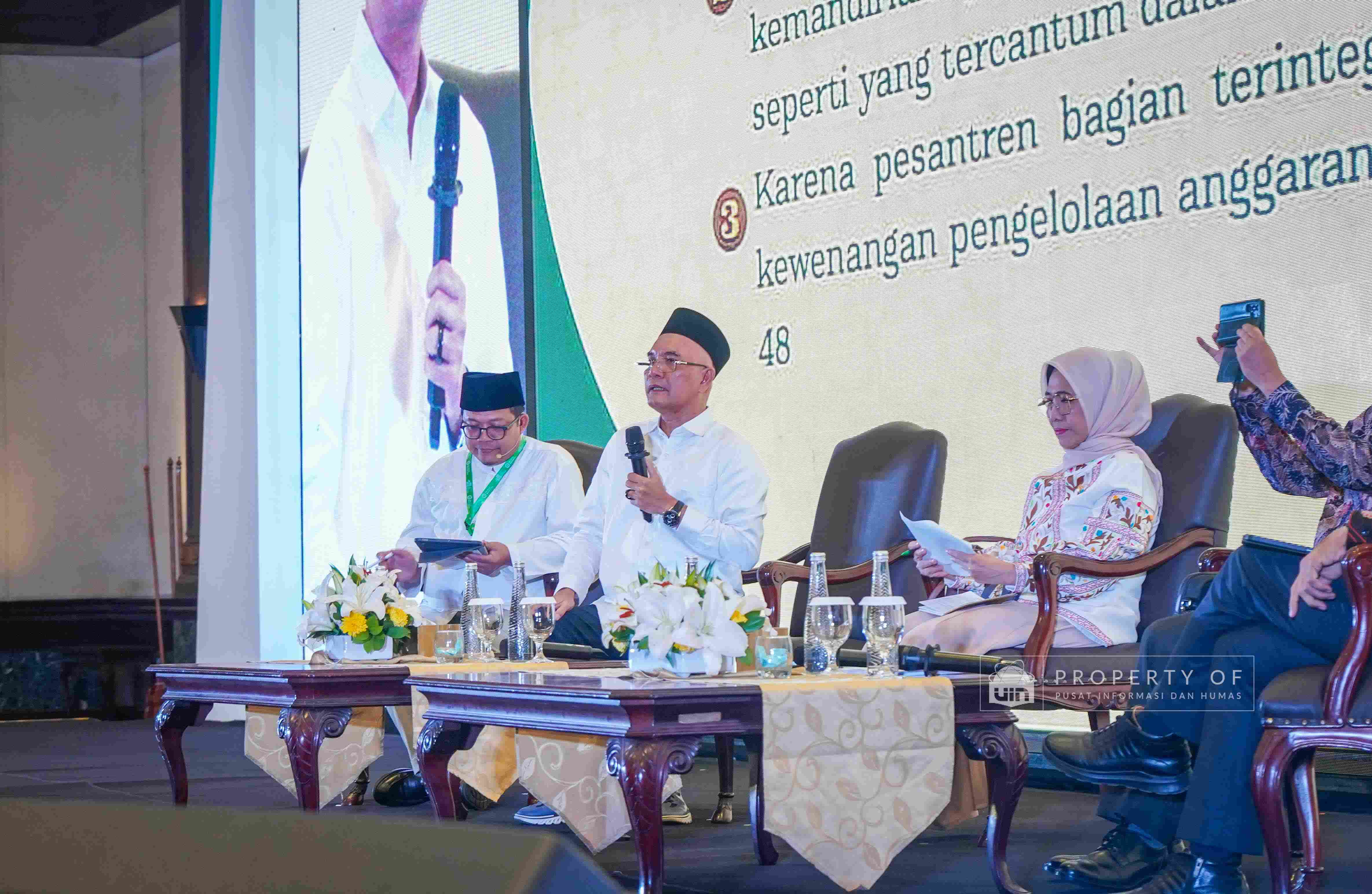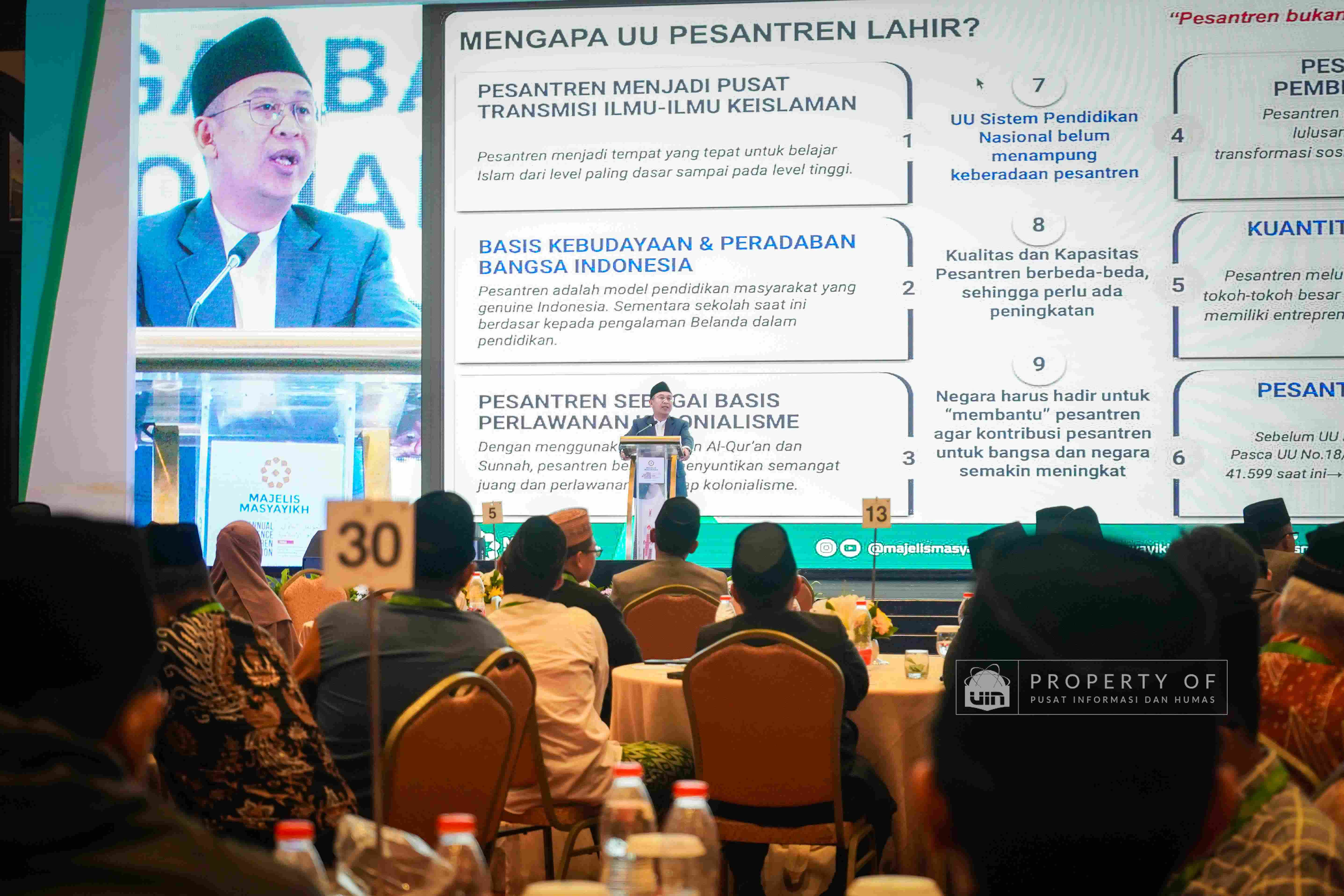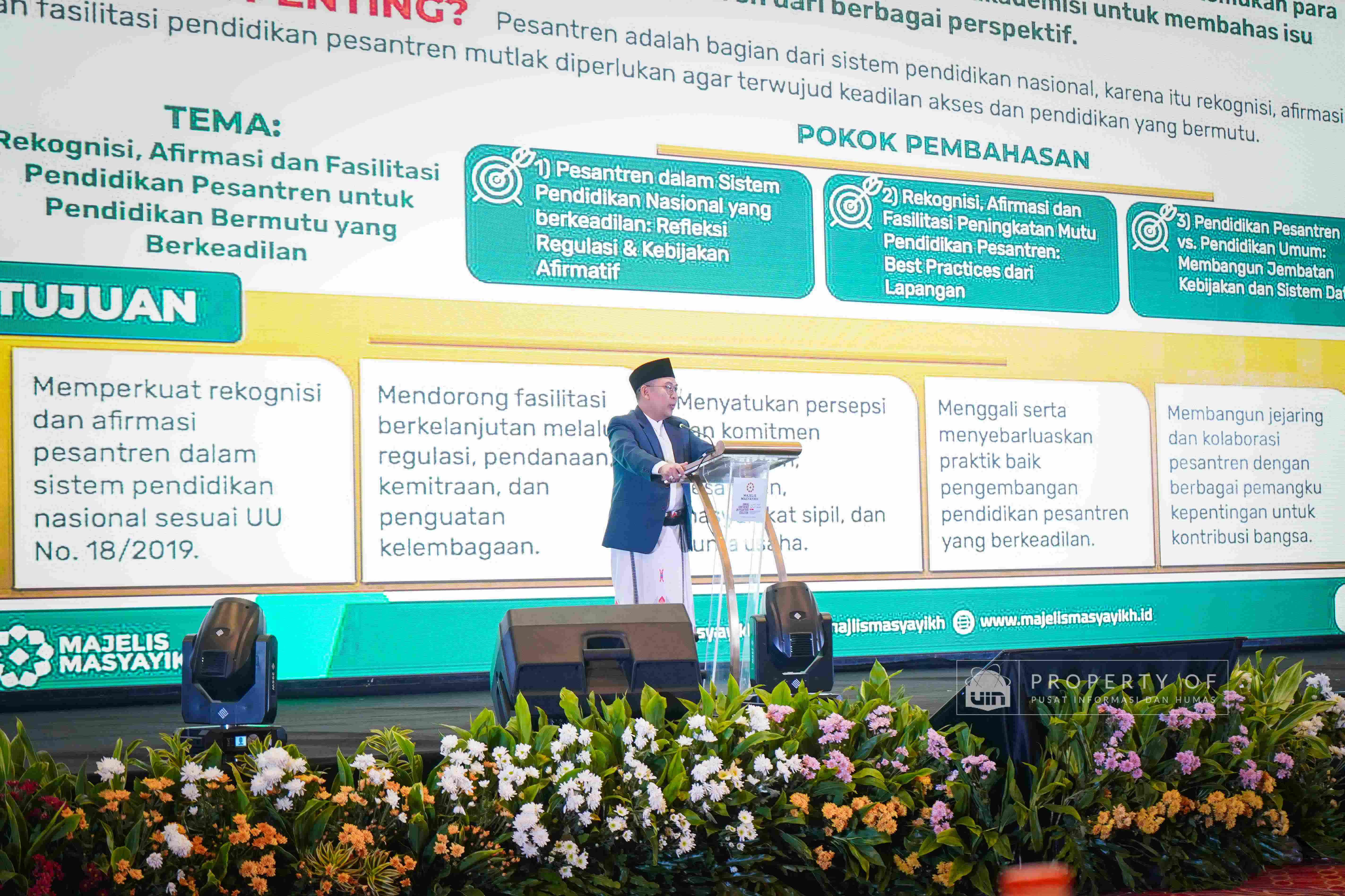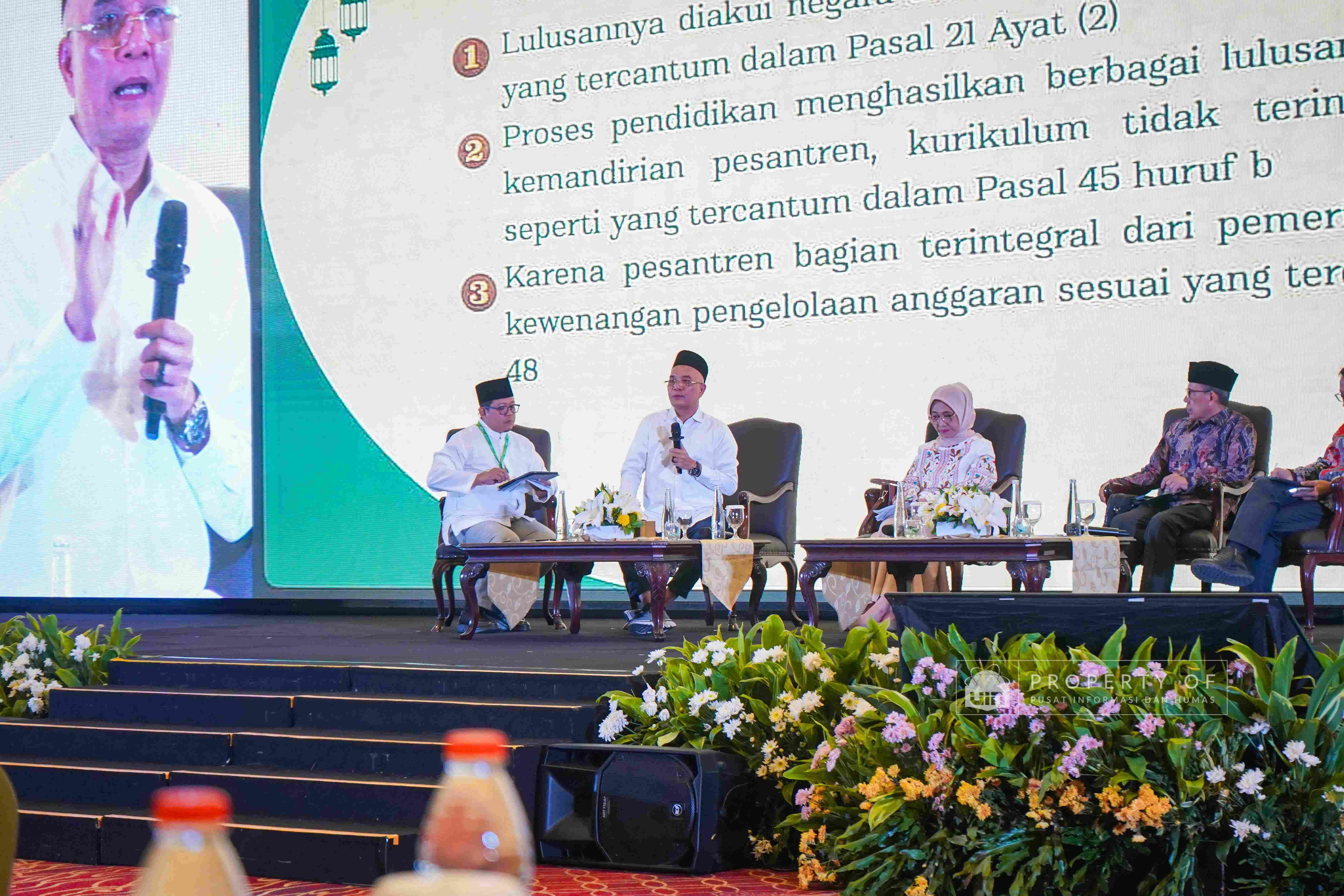 UIN Syarif Hidayatullah Jakarta menghadiri acara Annual Conference on Pesantren Education di Hotel Bidakara pada Rabu (5/11/2025). Dengan Majelis Masyasyikh yang menjadi tuan rumah, acara ini dibuka oleh Ketua Majelis Masyayikh KH. Abdul Ghaffar Rozin M.Ed. menyampaikan pidato seputar dampak kebijakan pesantren di bidang pendidkan yang disahkan oleh pemerintah. Kemudiah acara ini dilanjutkan ke diskusi panelis 1 untuk mengoreksi regulasi pesantren terkini. (Fotografer: Muhammad Ghifari Rahman/Teks: Muhamad Arifin Ilham/Pusat Informasi dan Humas UIN Jakarta)