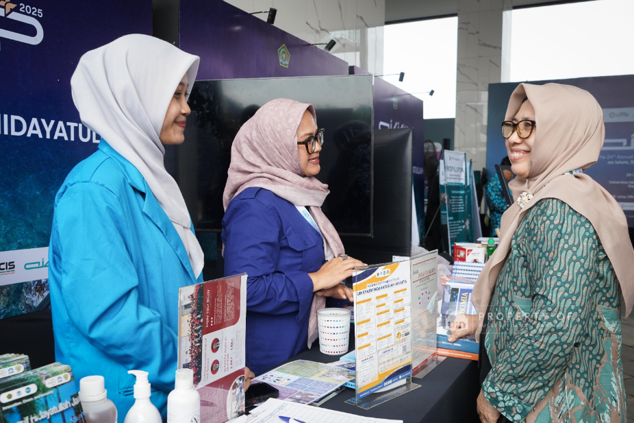 UIN Syarif Hidayatullah Jakarta berpartisipasi aktif dalam Annual International Conference on Islamic Studies (AICIS+ 2025) yang digelar di Universitas Islam Internasional Indonesia (UIII) Depok pada Rabu (29/10/2025). Melalui partisipasinya di Science and Education Expo, UIN Jakarta menampilkan berbagai inovasi akademik, karya riset, dan publikasi ilmiah. Rektor UIN Jakarta, Prof. Asep Saepudin Jahar, yang turut hadir, menyebut ajang ini sebagai ruang strategis untuk memperkuat jejaring riset dan menunjukkan kontribusi perguruan tinggi Islam terhadap solusi global, sejalan dengan visi keilmuan UIN Jakarta. Booth UIN Jakarta mendapat respon positif dari pengunjung, termasuk siswa madrasah, dan menjadi sarana untuk memperkenalkan inovasi kampus serta memperkuat sinergi antar PTKI.(Fotografer: Aqilah Qurratulaini/Teks: Nabila Azzahra Syawal/Pusat Informasi dan Humas UIN Jakarta)