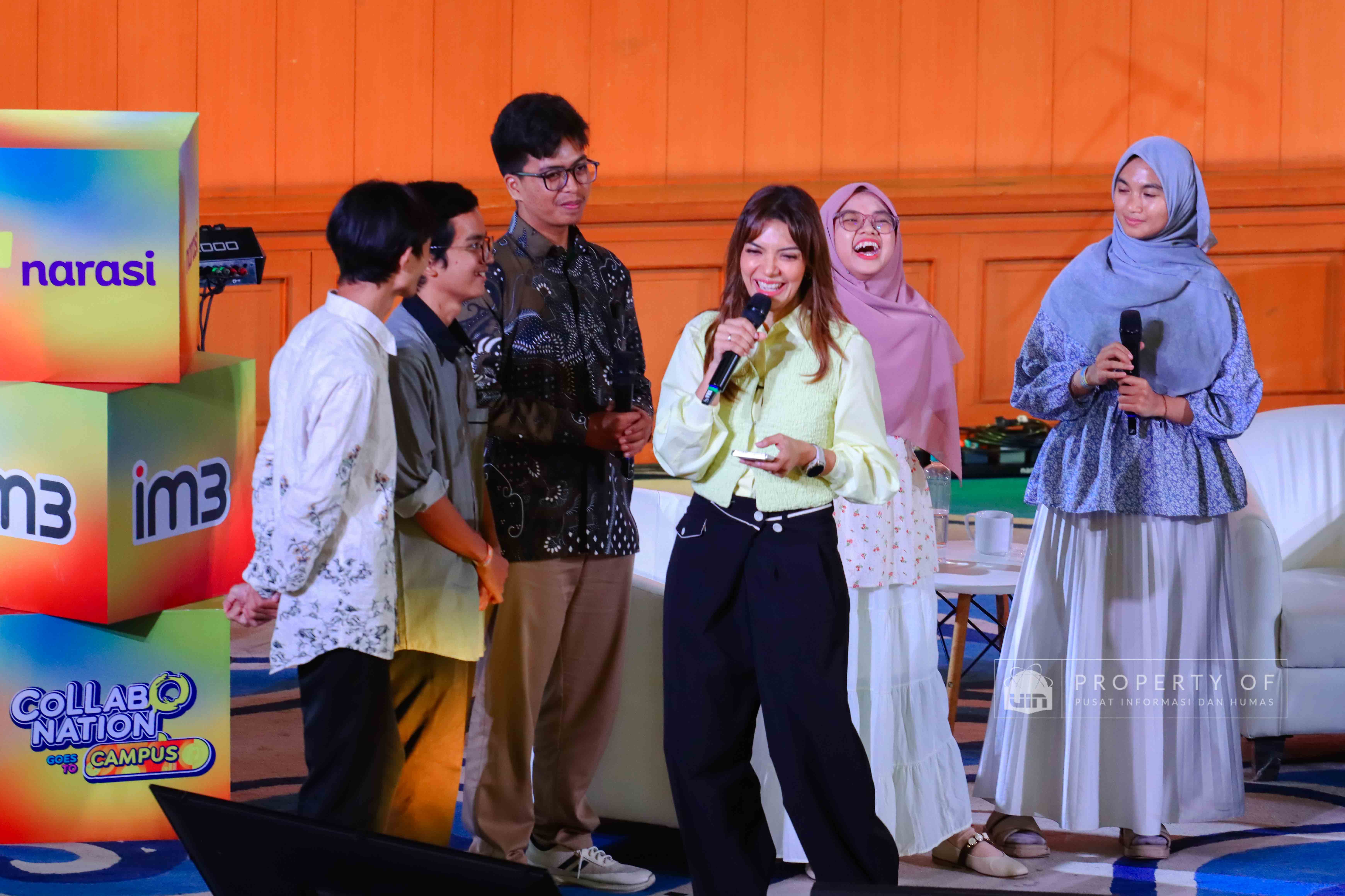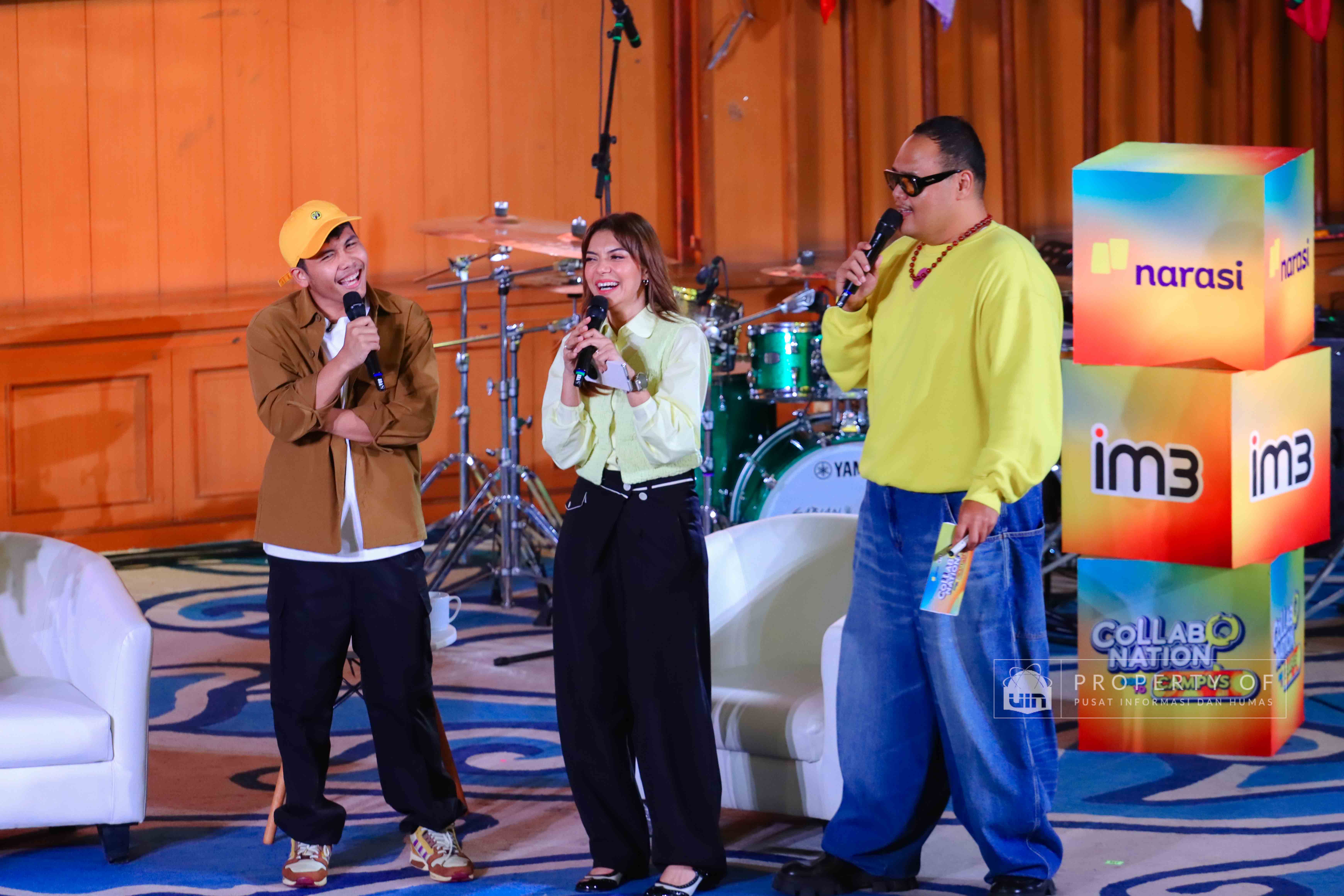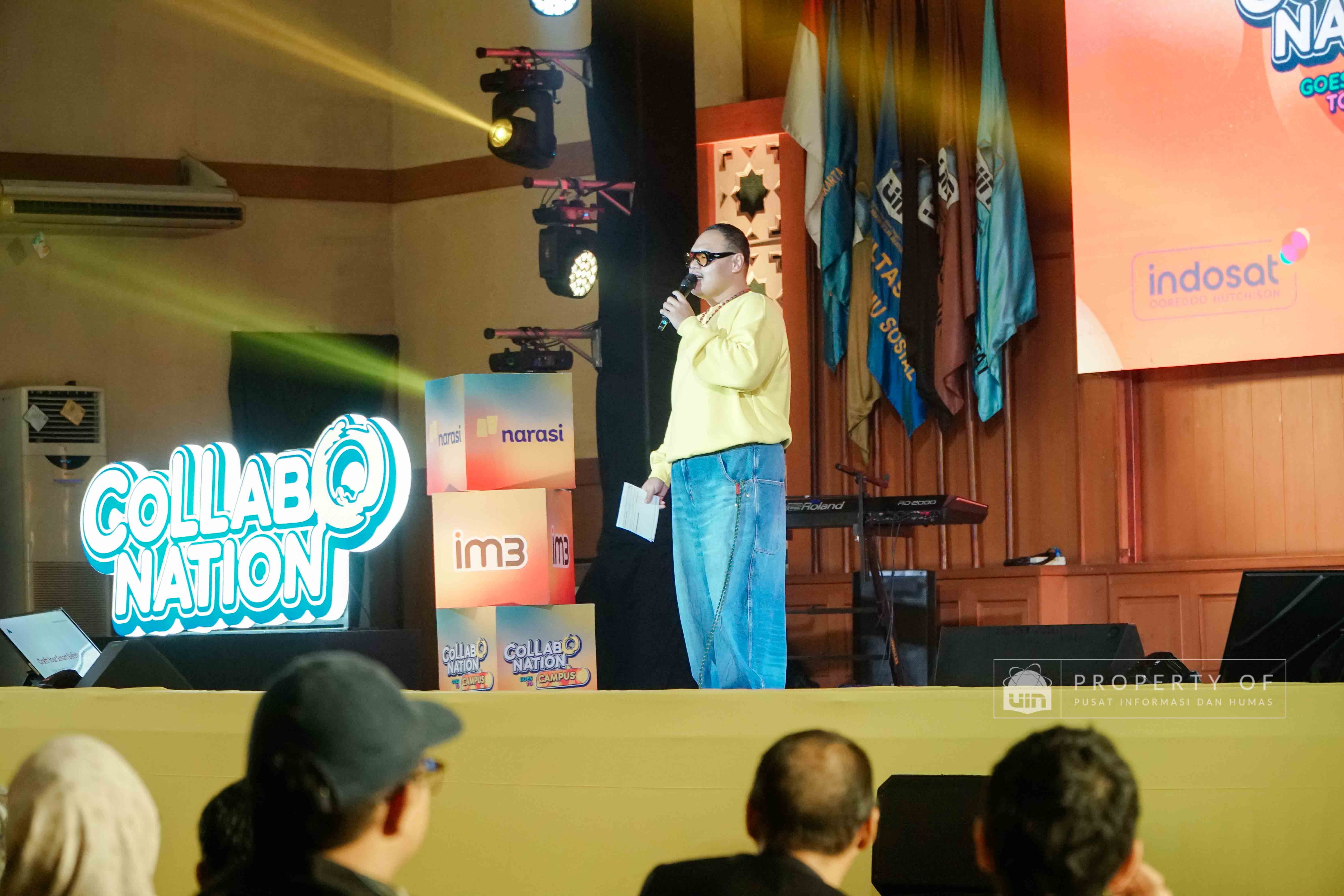 IM3 bersama Narasi menyelenggarakan Collabonation Goes to UIN Jakarta di Auditorium Harun Nasution UIN Jakarta pada Kamis (11/12/2025), mengusung tema “Your Why, Your Move, Buka Jalan ke Karier Impian” sebagai forum kolaborasi dan diskusi tentang pemanfaatan teknologi untuk pengembangan karier. Acara ini turut menghadirkan Pendiri Narasi, Najwa Shihab, Content Creator, Azhar Suardi, dan Komika Indonesia, Bintang Emon, yang berbagi wawasan mengenai pentingnya inovasi, kolaborasi, serta pemaksimalan masa studi untuk mempersiapkan masa depan. (Fotografer: Talitha Zafirah Qutratu'ain/Teks: Tiara Septiana Dewi/Pusat Informasi dan Humas UIN Jakarta)