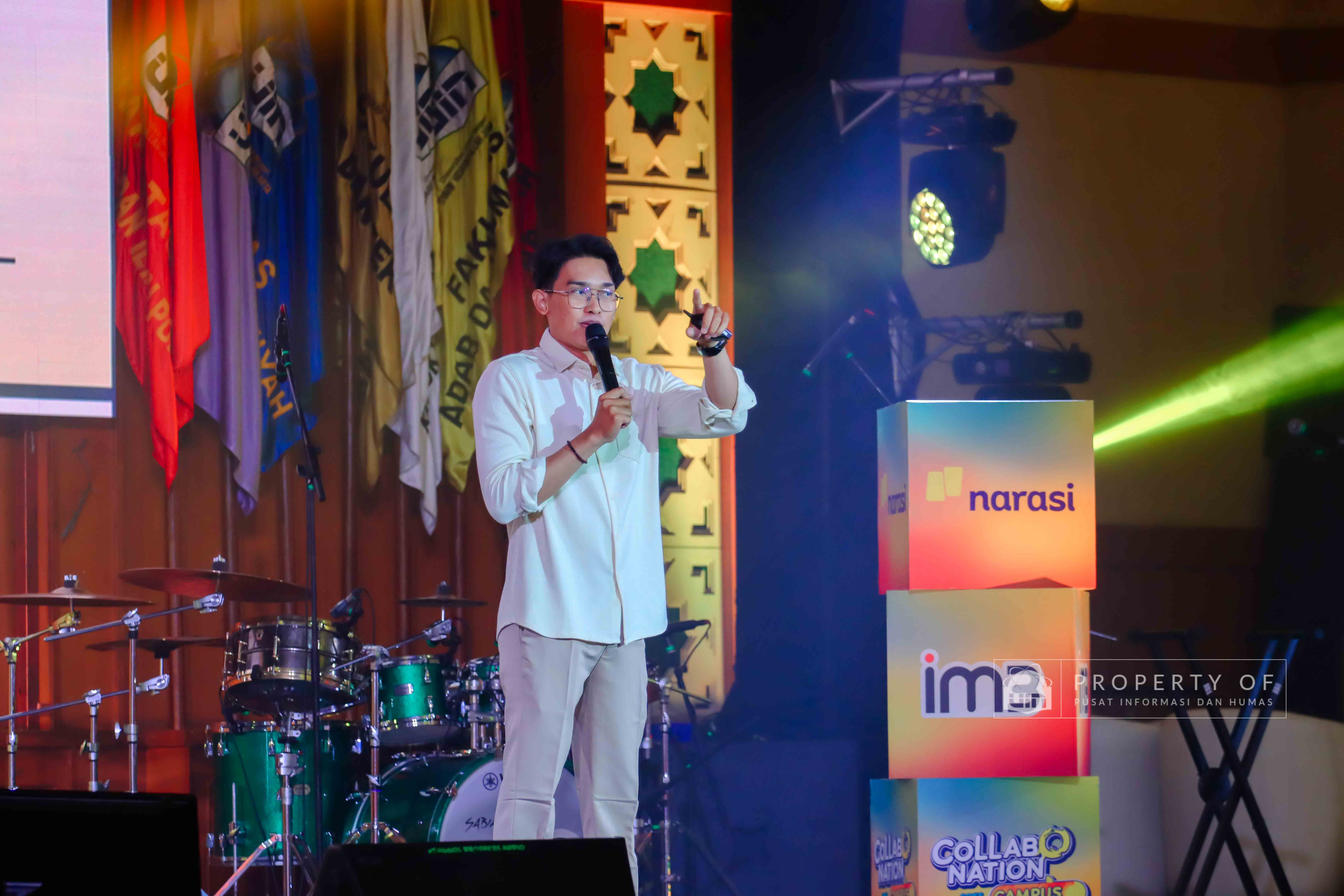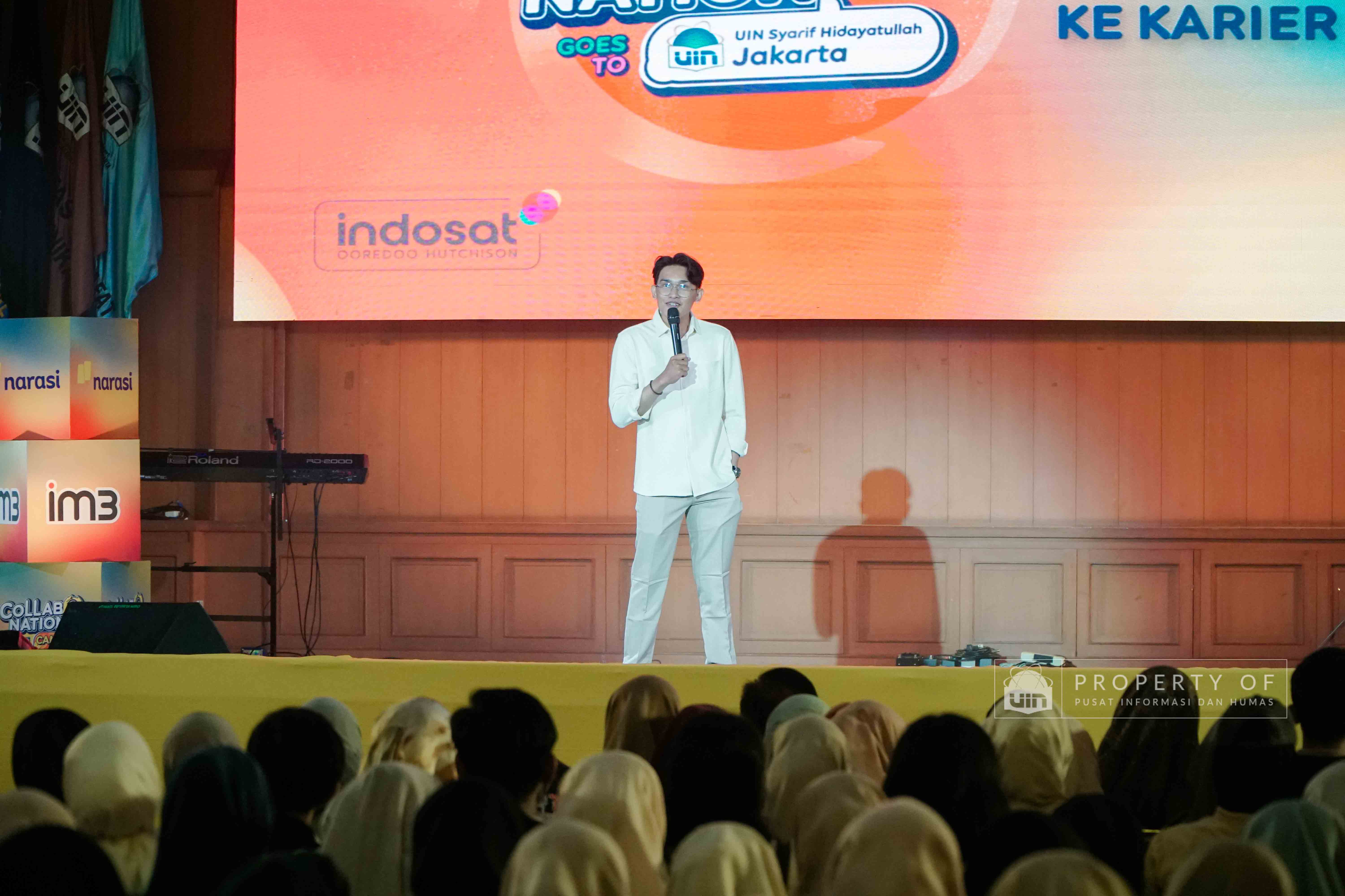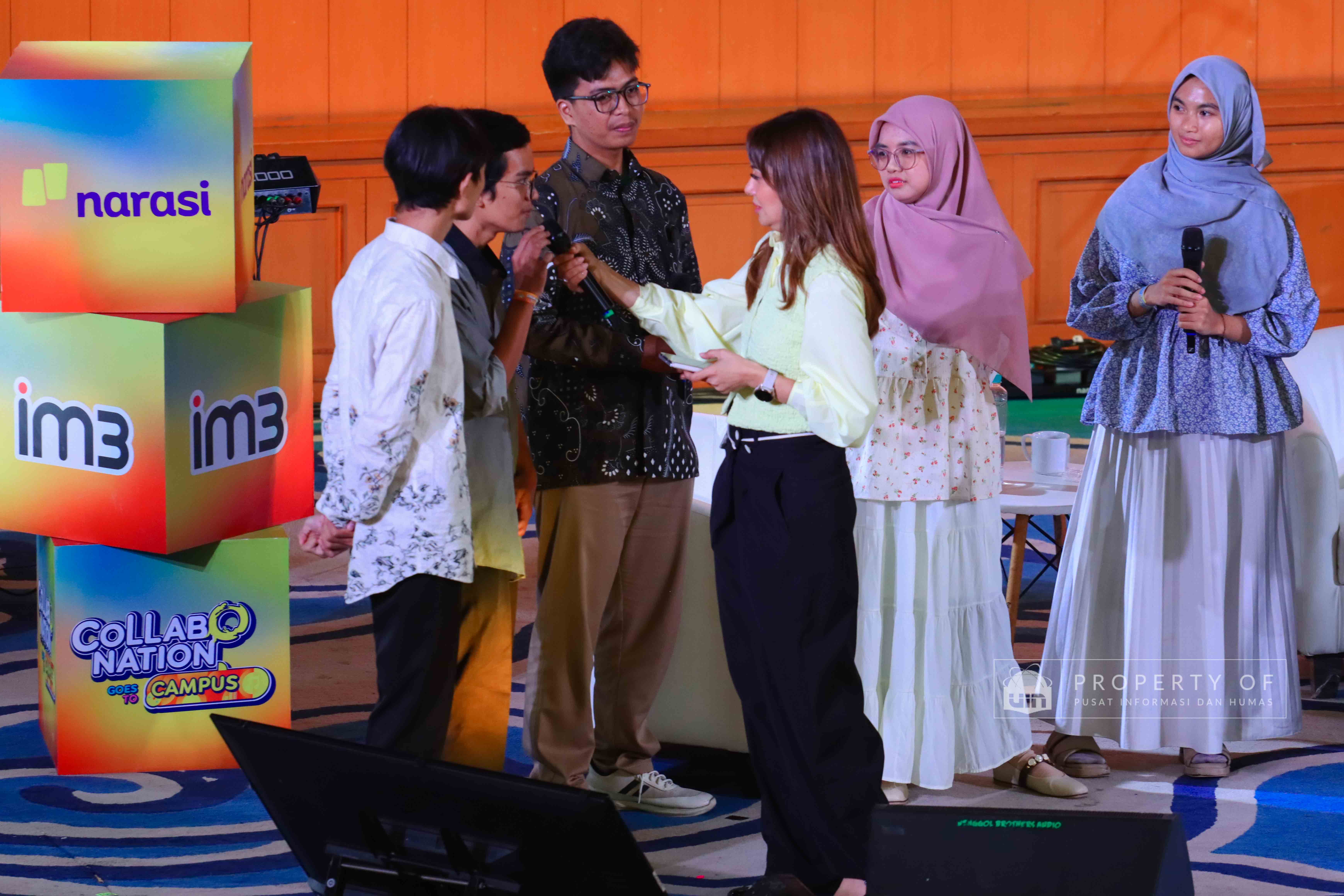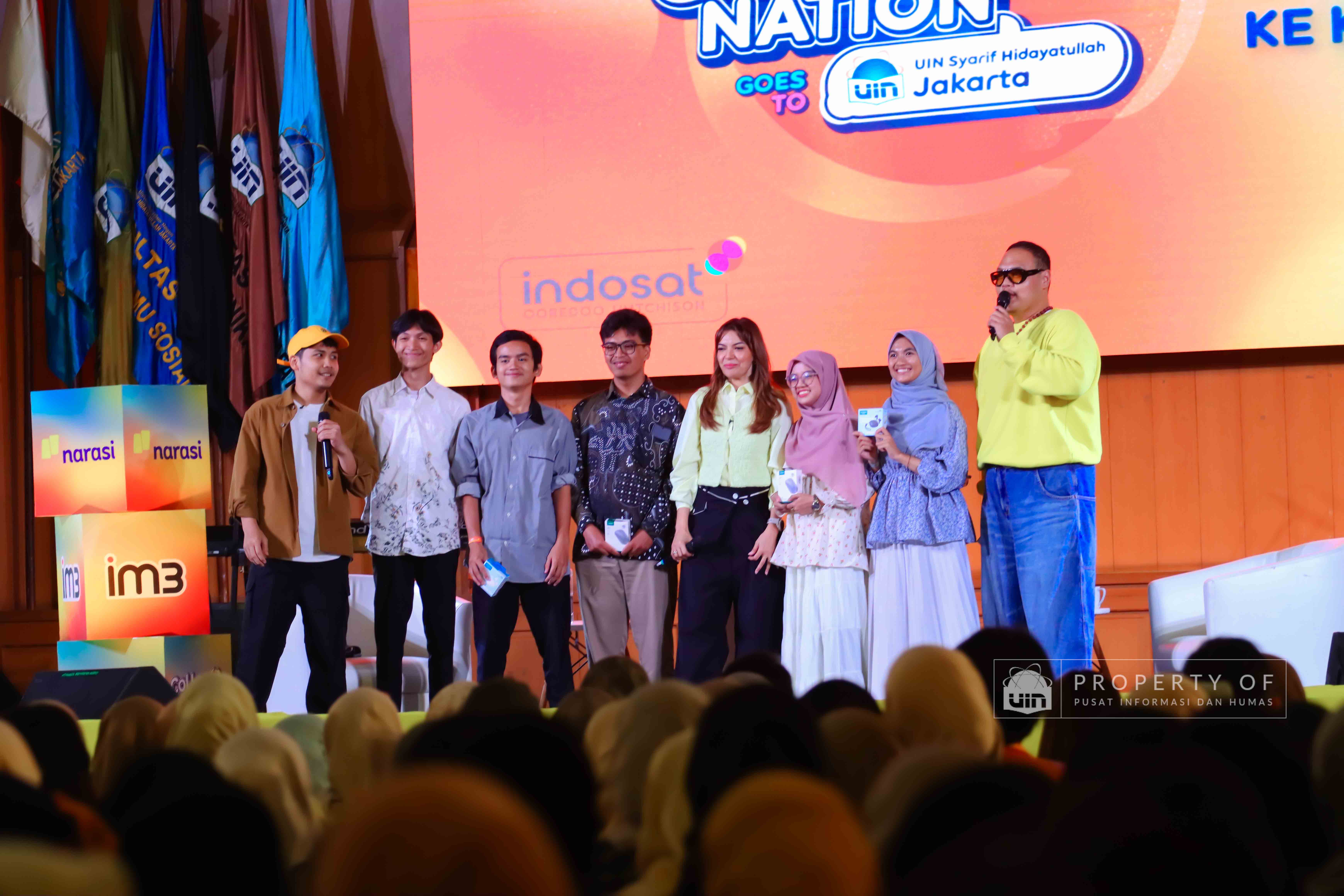 IM3 bersama Narasi menyelenggarakan Collabonation Goes to UIN Jakarta di Auditorium Harun Nasution UIN Jakarta pada Kamis (11/12/2025), mengusung tema “Your Why, Your Move, Buka Jalan ke Karier Impian” sebagai forum kolaborasi dan diskusi tentang pemanfaatan teknologi untuk pengembangan karier. Acara ini turut menghadirkan Pendiri Narasi, Najwa Shihab, Content Creator, Azhar Suardi, dan Komika Indonesia, Bintang Emon, yang berbagi wawasan mengenai pentingnya inovasi, kolaborasi, serta pemaksimalan masa studi untuk mempersiapkan masa depan. (Fotografer: Talitha Zafirah Qutratu'ain/Teks: Tiara Septiana Dewi/Pusat Informasi dan Humas UIN Jakarta)
