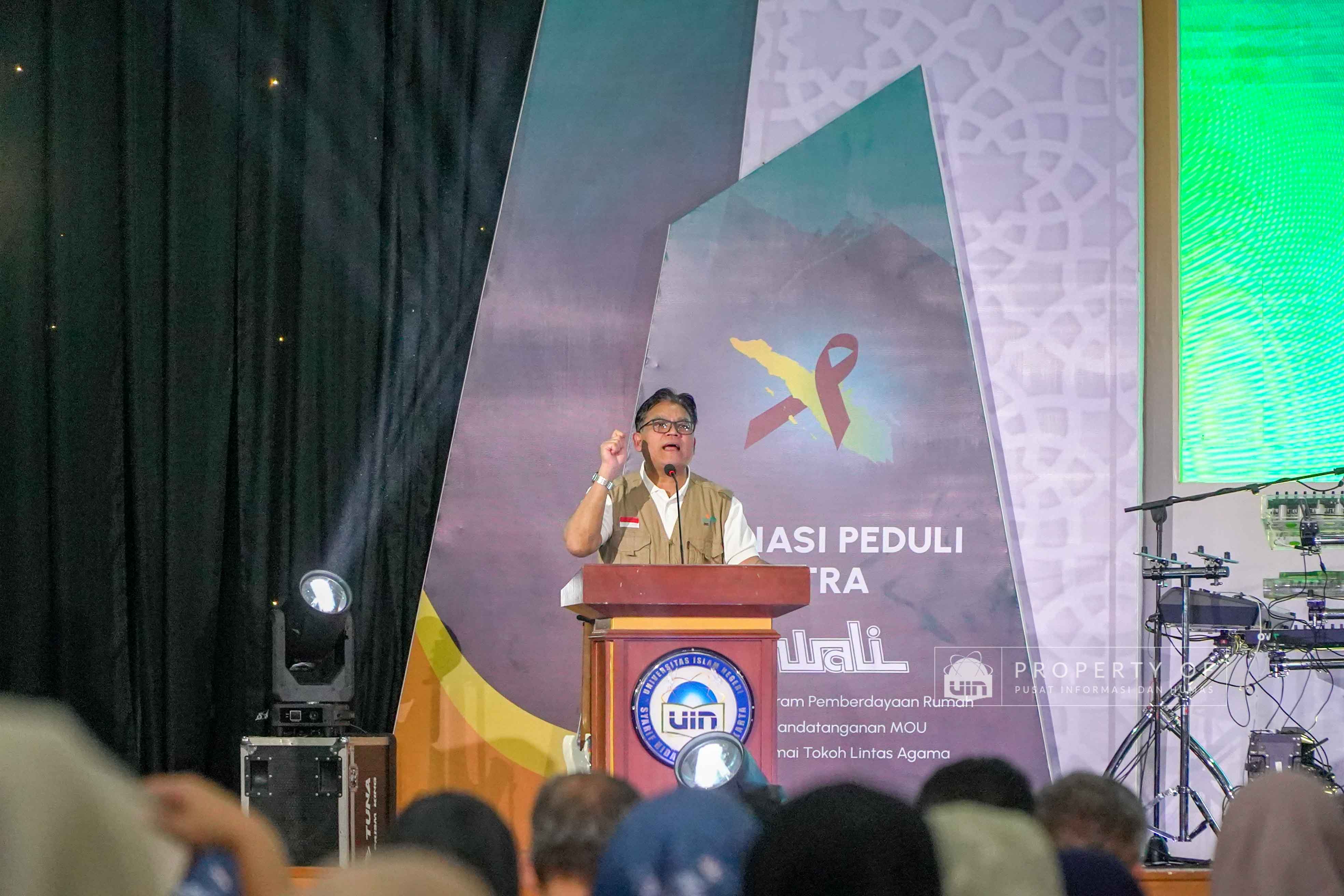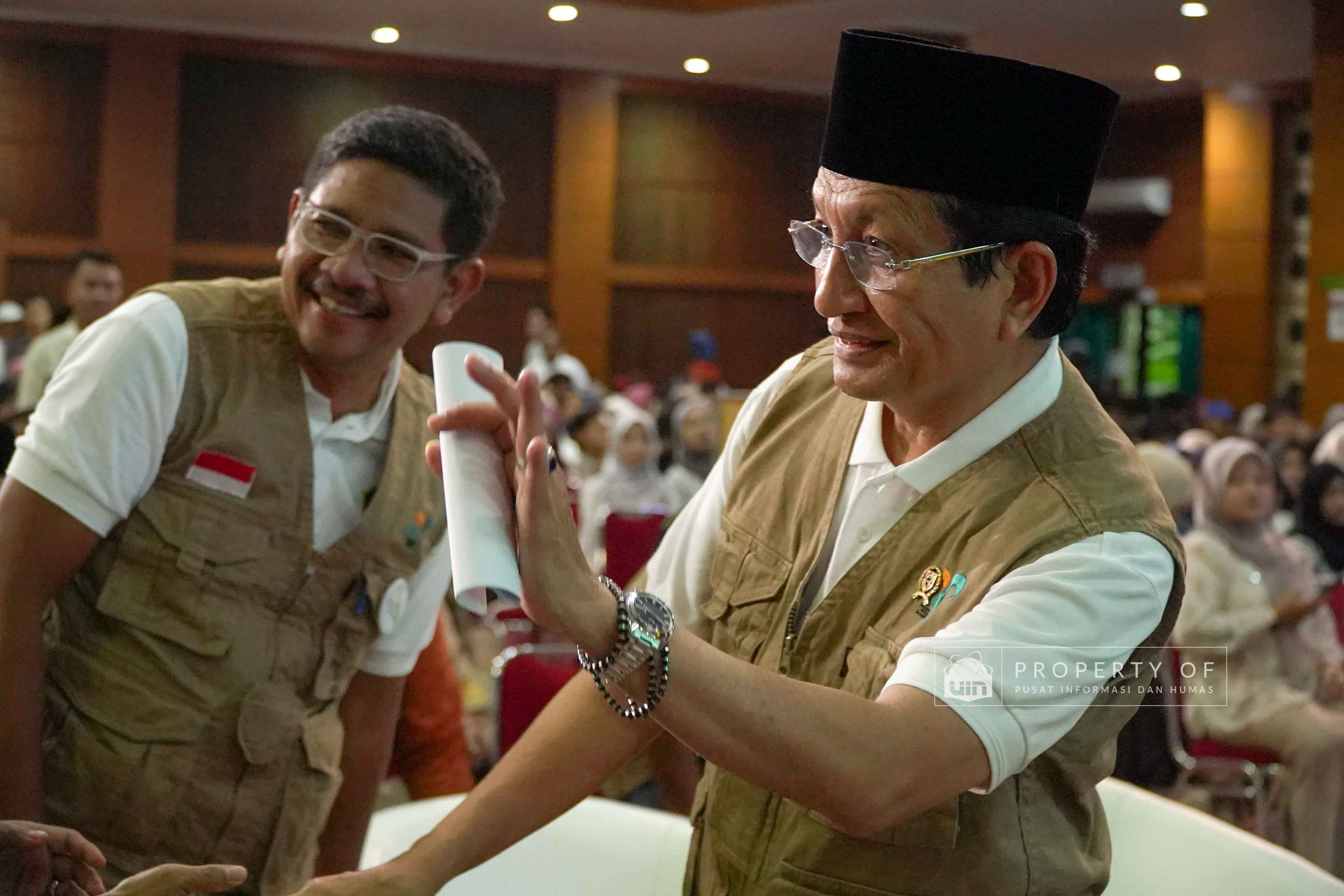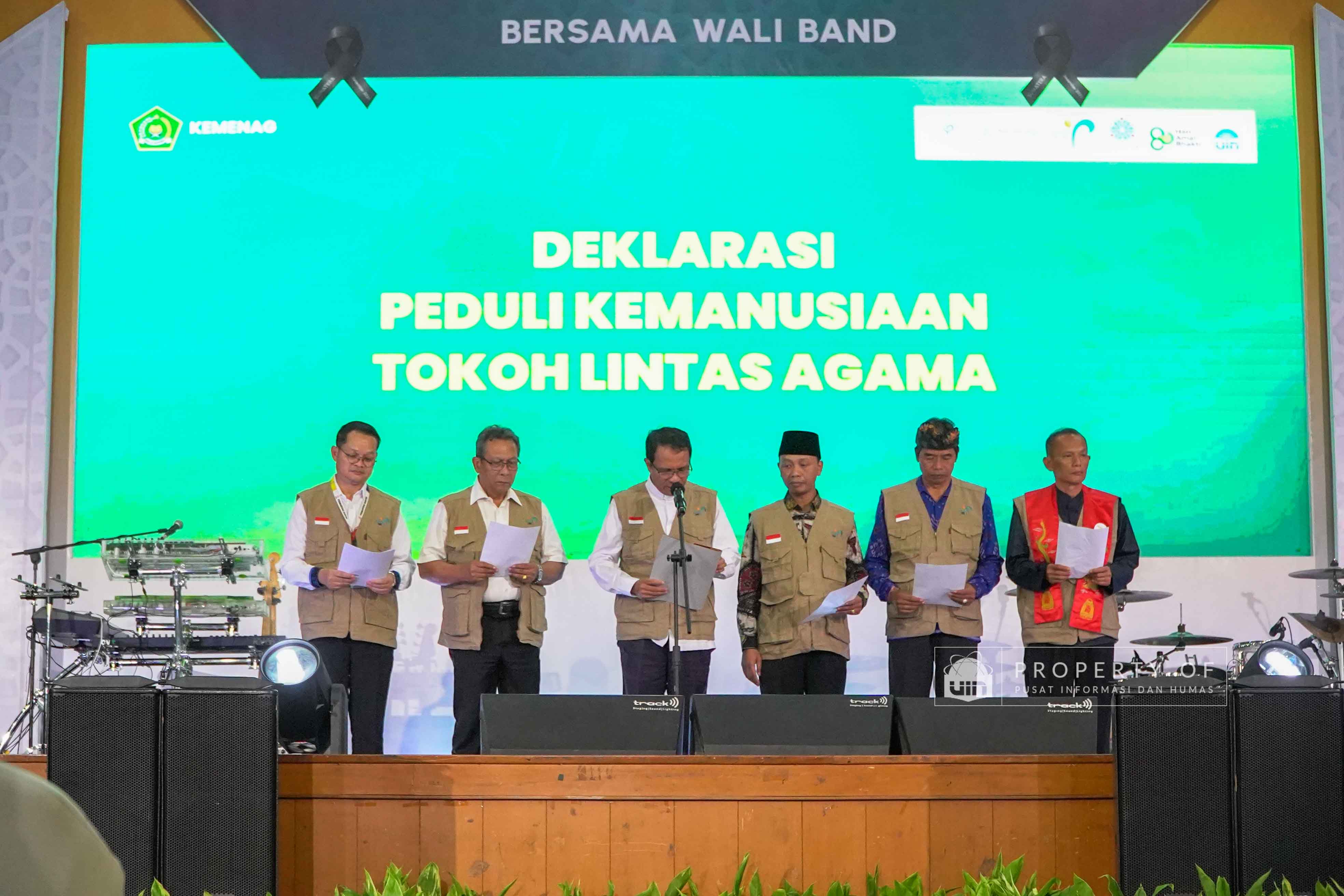 Kementerian Agama menggelar kegiatan Donasi Peduli Sumatra di Auditorium Harun Nasution UIN Syarif Hidayatullah Jakarta pada Jumat (12/12/2025), sebuah gerakan kemanusiaan untuk memperkuat solidaritas bagi masyarakat di Sumatra. Acara yang terbuka untuk umum ini turut menghadirkan Grup Musik Wali, serta menghadirkan rangkaian kegiatan seperti Kick Off Program Pemberdayaan Rumah Ibadah, penandatanganan MoU, dan deklarasi peduli kemanusiaan tokoh lintas agama. (Fotografer: Rajif Ramadhan/Teks: Tiara Septiana Dewi/Pusat Informasi dan Humas UIN Jakarta)