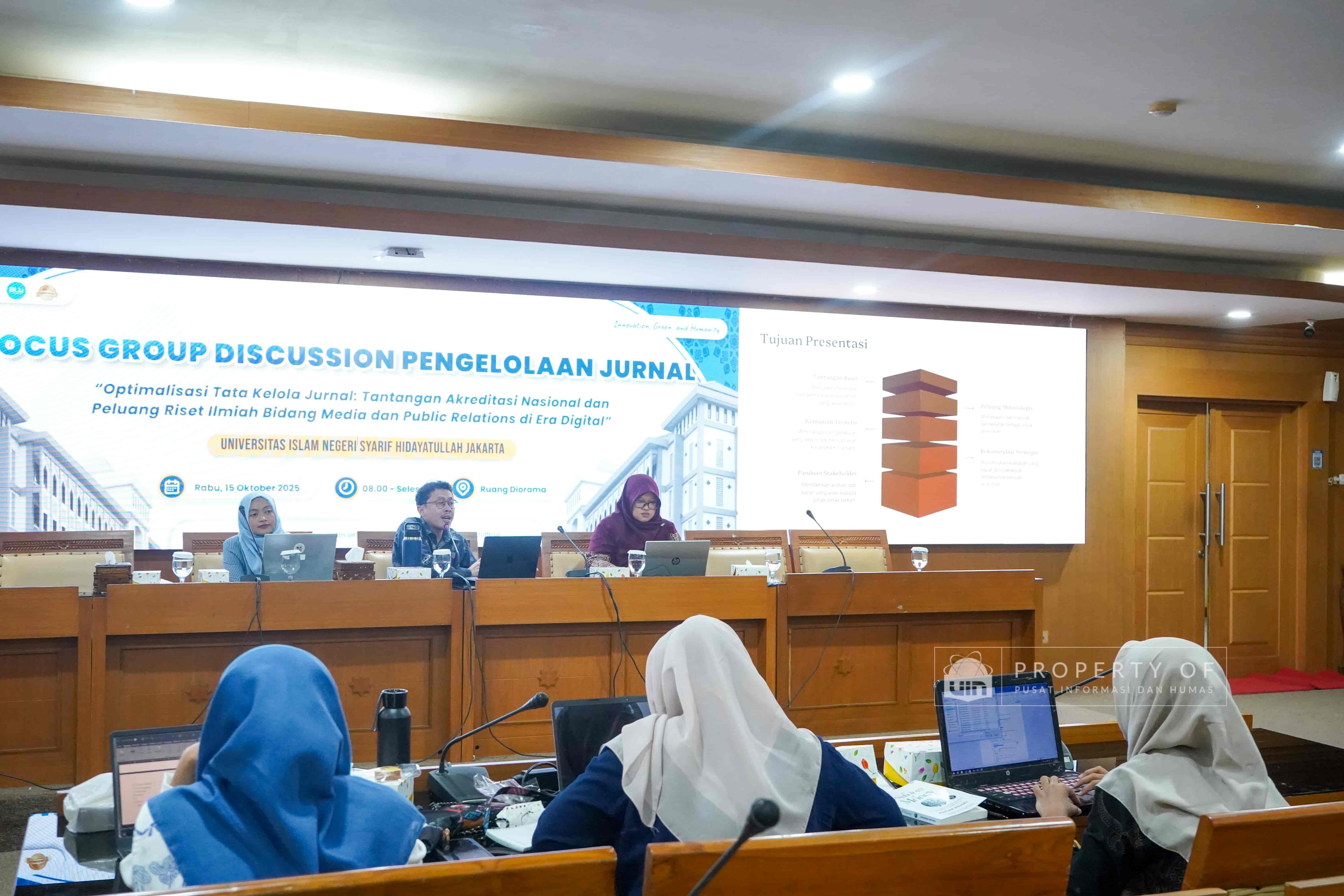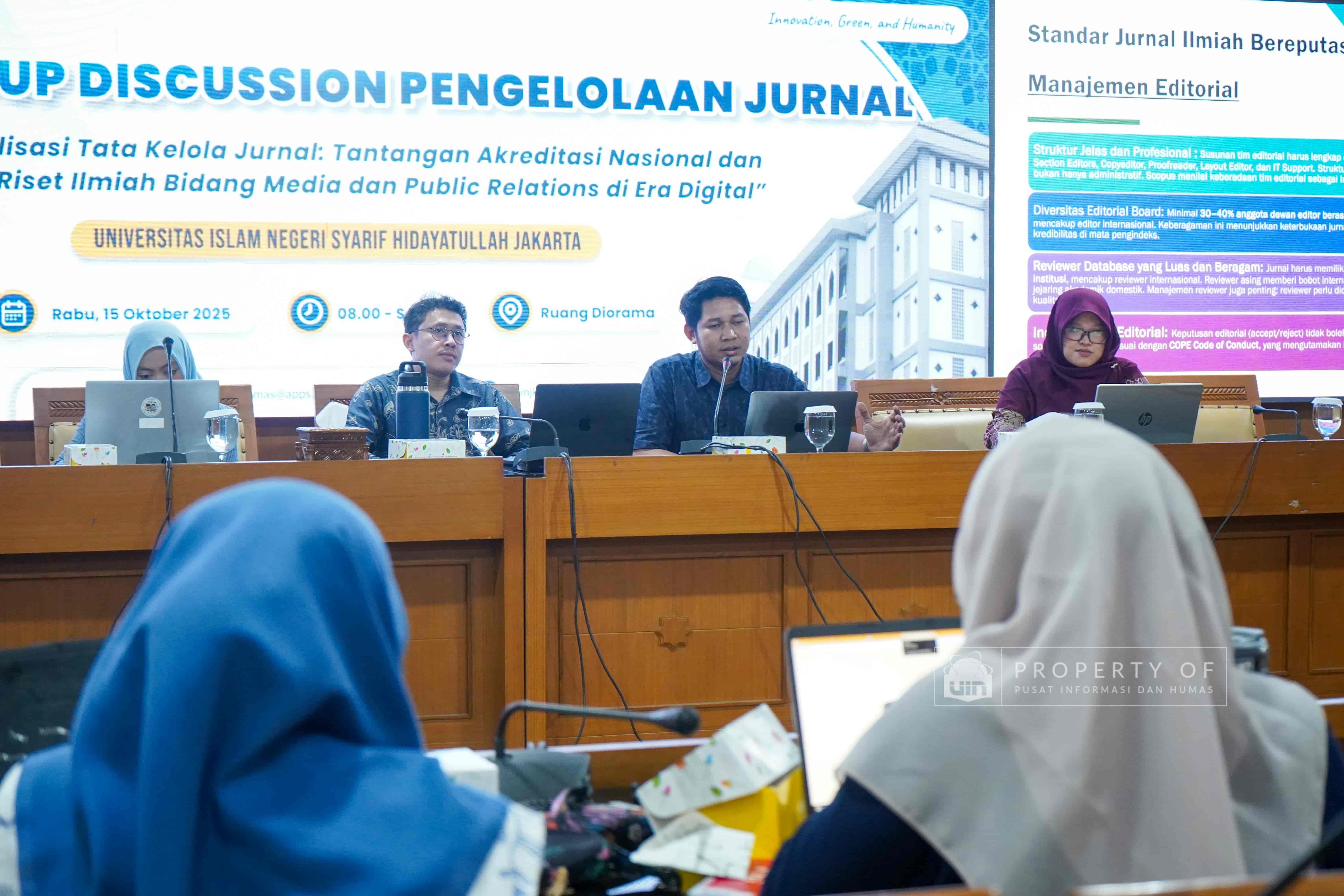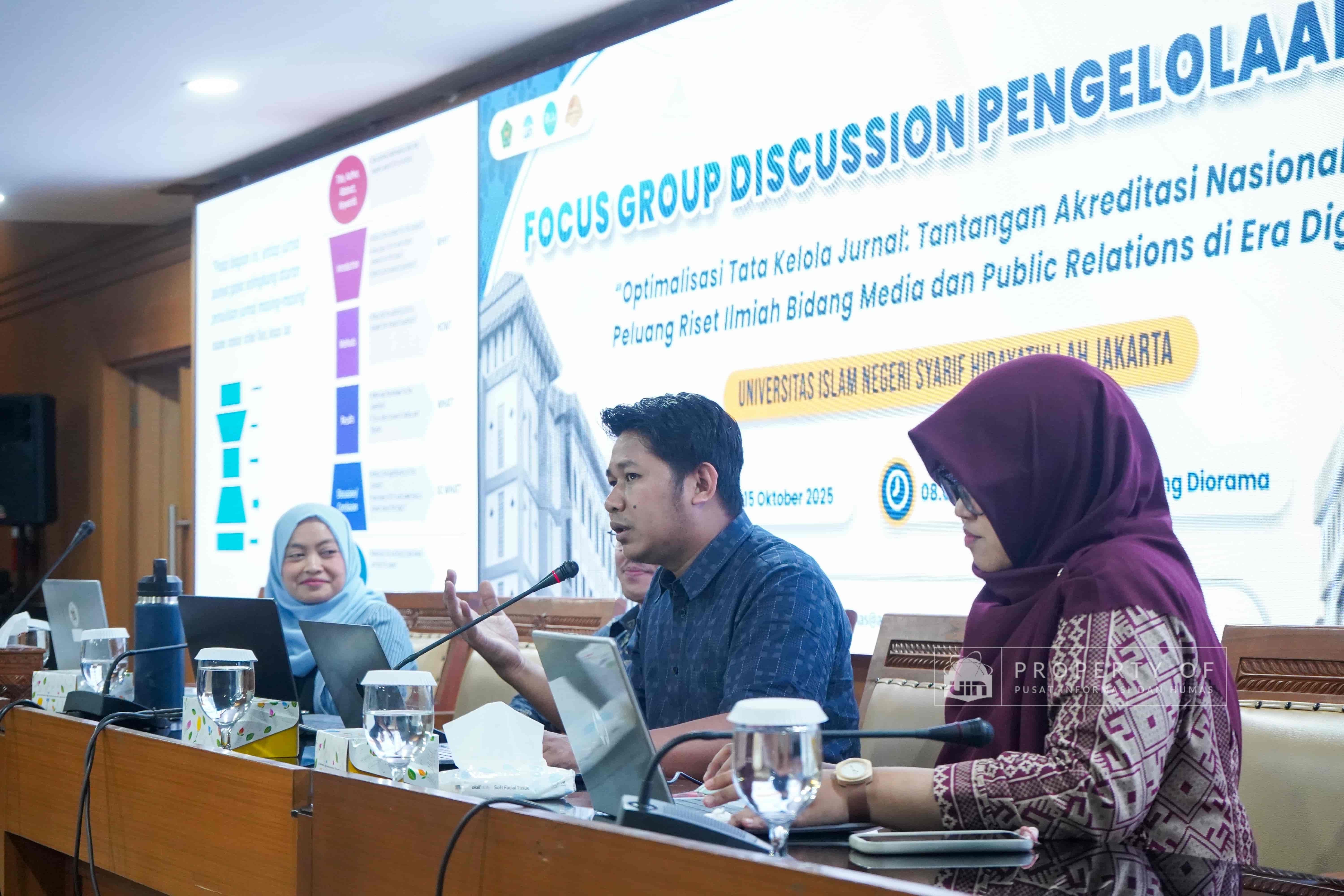 UIN Syarif Hidayatullah Jakarta gelar FGD (Forum Group Discussion) dalam rangka optimisasi pengelolaan artikel jurnal dan akreditasi riset ilmiah. Acara yang dilaksanakan di Ruang Diorama pada Rabu (15/10/2025) ini menghadirkan tiga pembicara ahli di bidang penulisan akademik dan pengelola jurnal terkemuka. Penyelenggaraan FGD ini merupakan upaya untuk mengembangkan karya tulis ilmiah di UIN Jakarta dengan berbagai capaian yang telah diraih. Melalui kegiatan ini, diharapkan kualitas kepenulisan sivitas akademika UIN Jakarta dapat semakin maju dan memberikan manfaat yang luas. (Fotografer: Aqilah Qurratulaini/Teks: Muhamad Arifin Ilham/Pusat Informasi dan Humas UIN Jakarta)