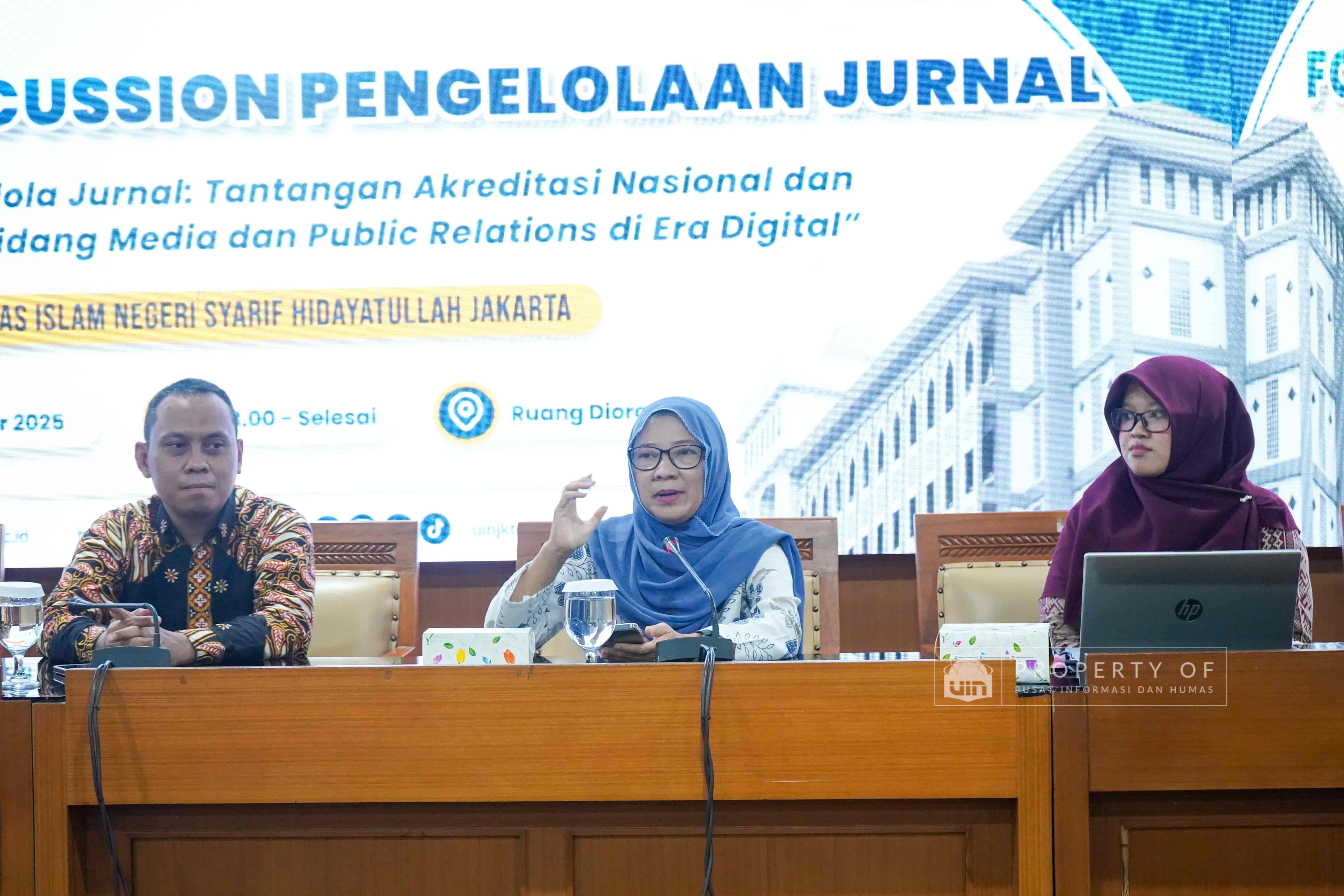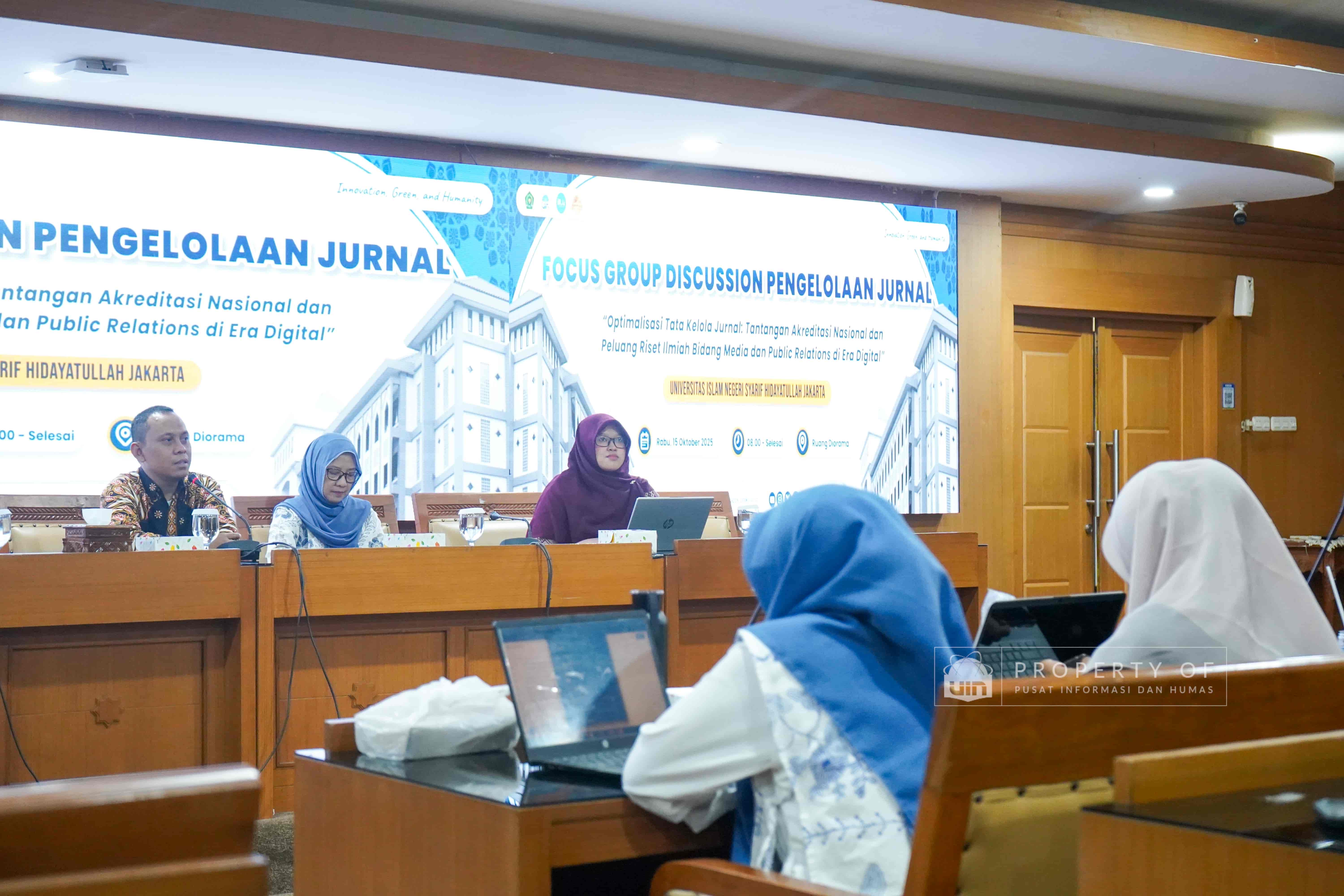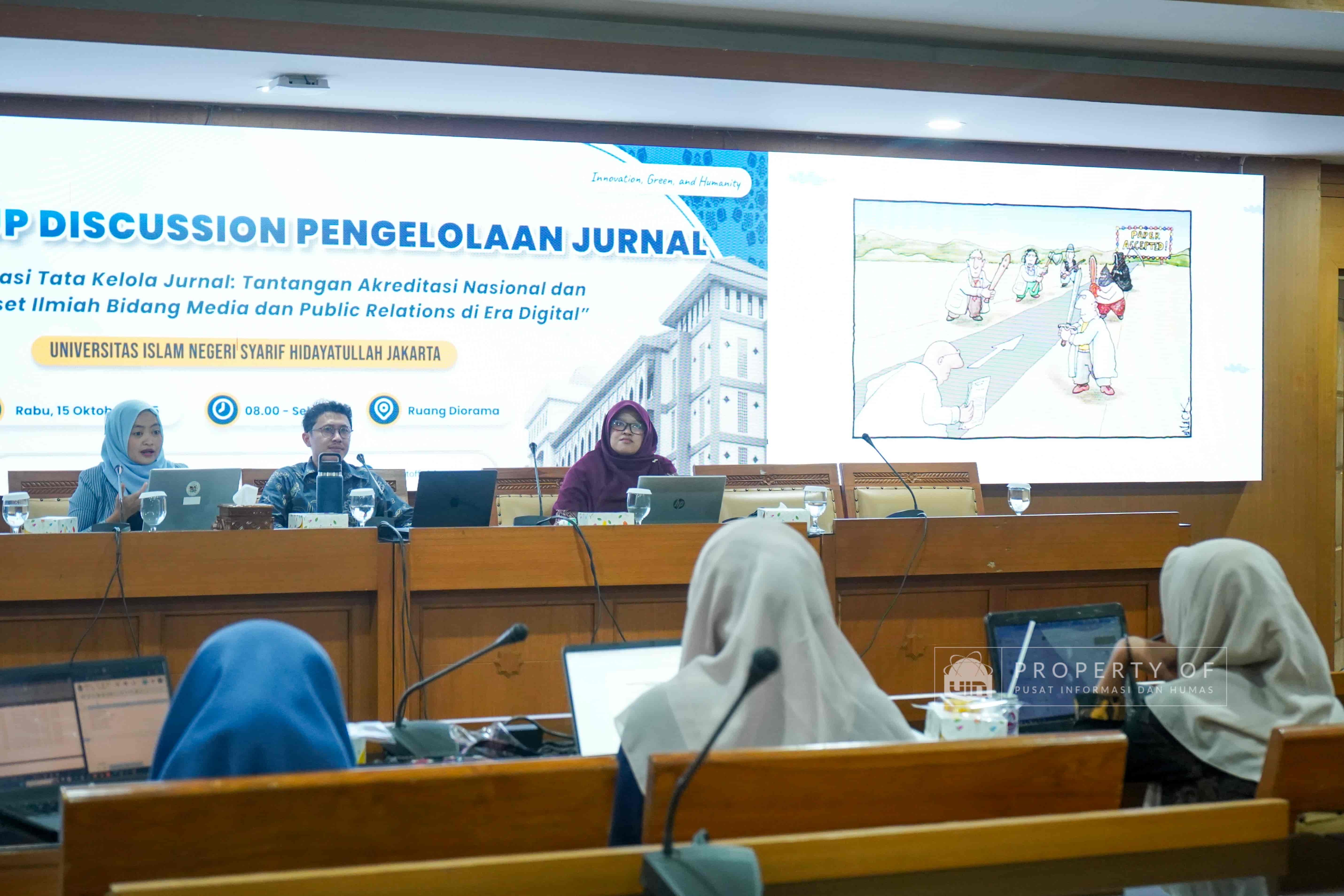 UIN Syarif Hidayatullah Jakarta gelar FGD (Forum Group Discussion) dalam rangka optimisasi pengelolaan artikel jurnal dan akreditasi riset ilmiah. Acara yang dilaksanakan di Ruang Diorama pada Rabu (15/10/2025) ini menghadirkan tiga pembicara ahli di bidang penulisan akademik dan pengelola jurnal terkemuka. Penyelenggaraan FGD ini merupakan upaya untuk mengembangkan karya tulis ilmiah di UIN Jakarta dengan berbagai capaian yang telah diraih. Melalui kegiatan ini, diharapkan kualitas kepenulisan sivitas akademika UIN Jakarta dapat semakin maju dan memberikan manfaat yang luas. (Fotografer: Aqilah Qurratulaini/Teks: Muhamad Arifin Ilham/Pusat Informasi dan Humas UIN Jakarta)