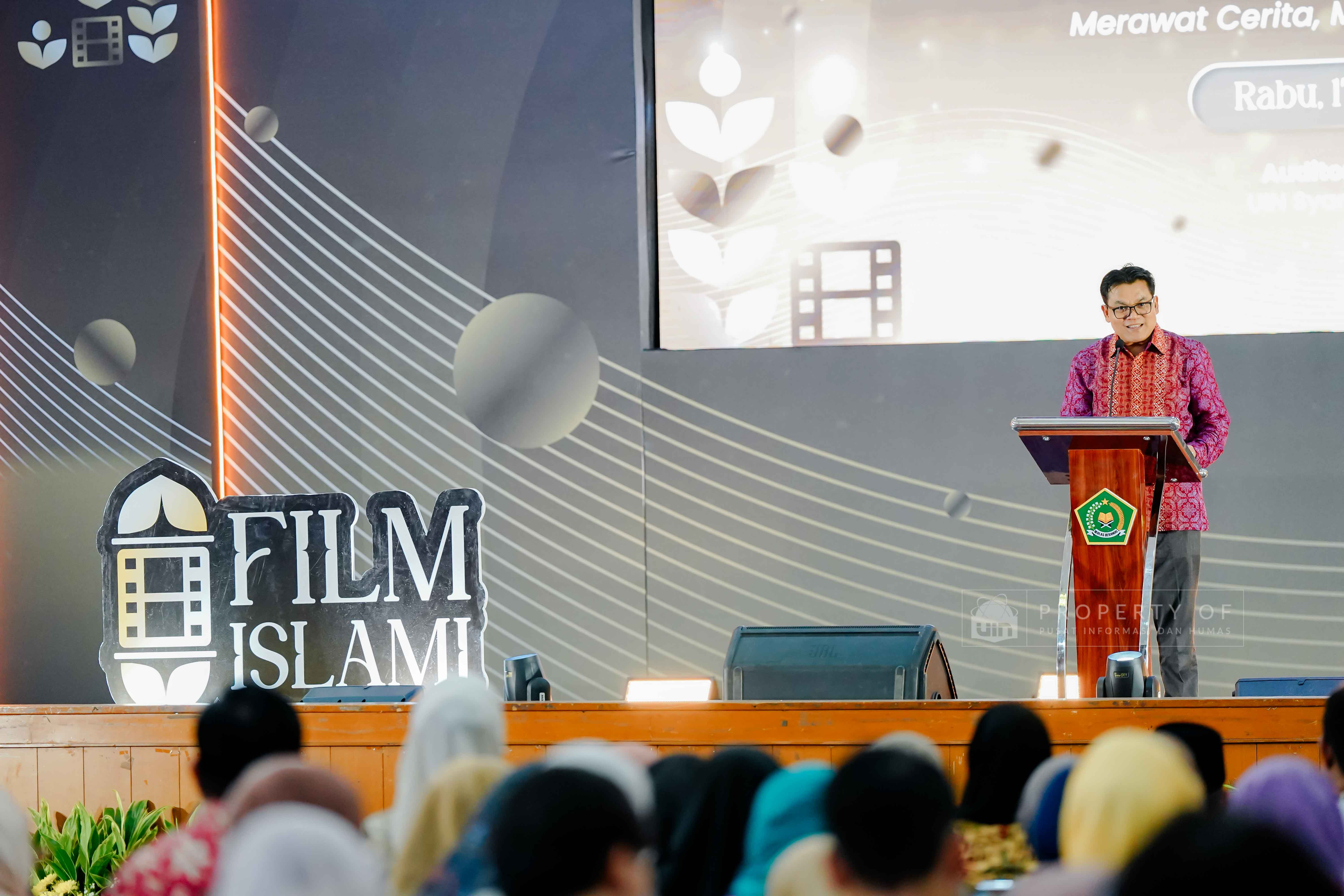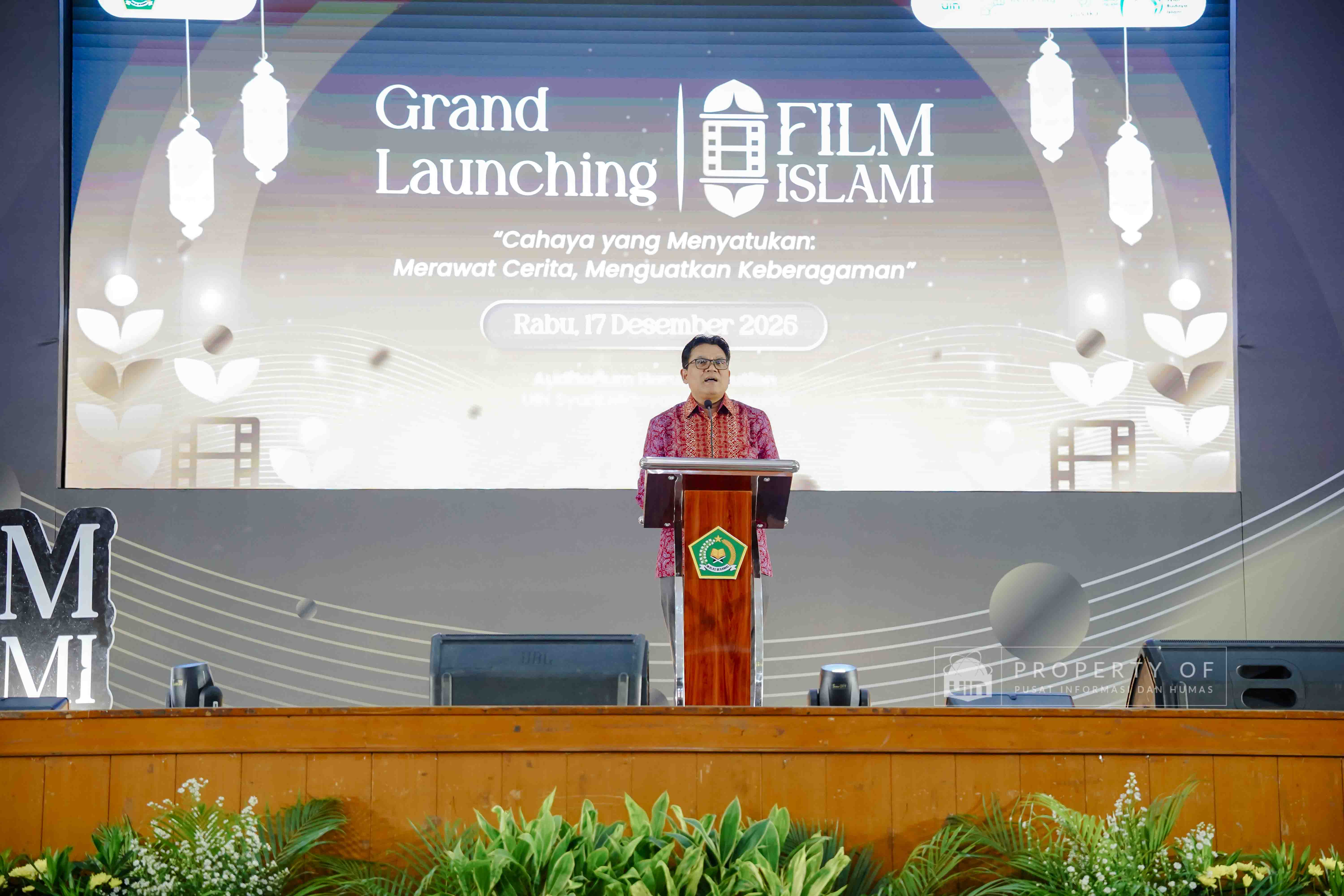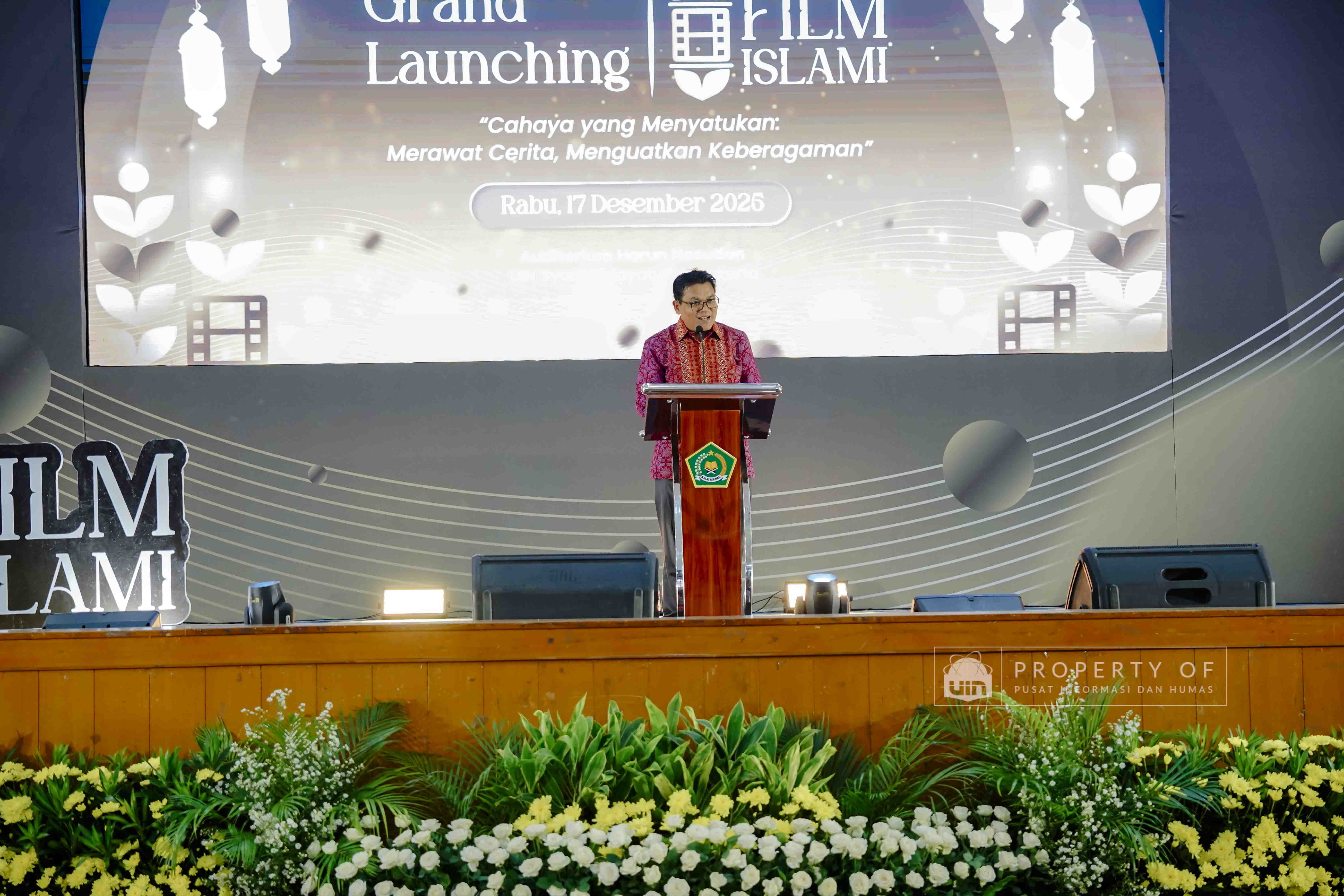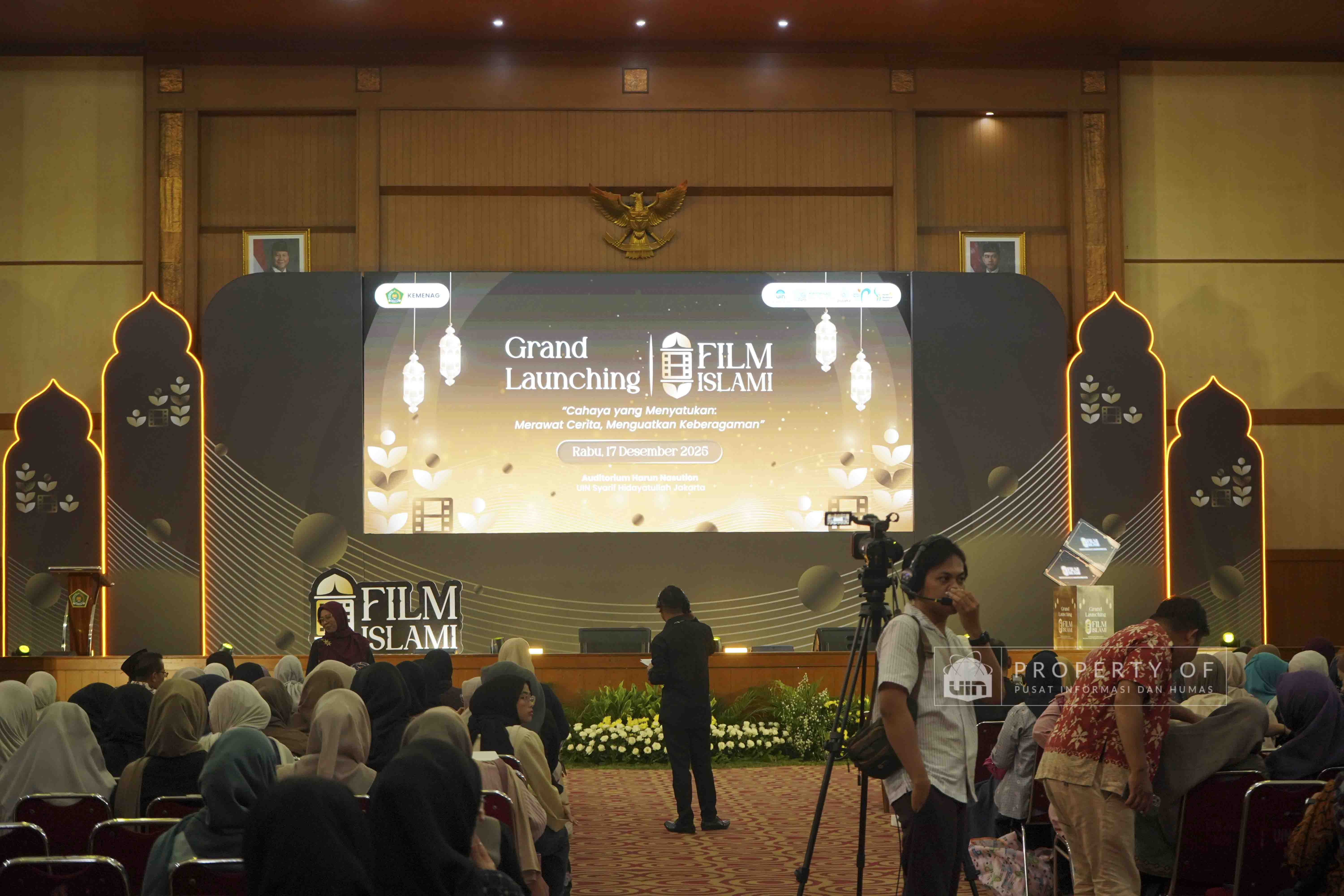 Fakultas Dakwah dan Ilmu Komunikasi (FDIKOM) UIN Syarif Hidayatullah Jakarta bekerja sama dengan Direktorat Penerangan Agama Islam Kementerian Agama Republik Indonesia menggelar kegiatan Grand Launching platform Filmislami.kemenag.go.id di Auditorium Harun Nasution UIN Jakarta, pada Rabu (17/12/2025). Kegiatan ini mengusung tema “Cahaya yang Menyatukan: Merawat Cerita, Menguatkan Keberagaman” dan dihadiri pimpinan fakultas, dosen, tenaga kependidikan, serta mahasiswa sebagai upaya menghadirkan ruang ekspresi dan penguatan narasi keislaman melalui medium film. (Fotografer: Talitha Zhafirah Qutratu'ain/Teks: Syandana Mazna Aisyah/Pusat Informasi dan Humas UIN Jakarta)