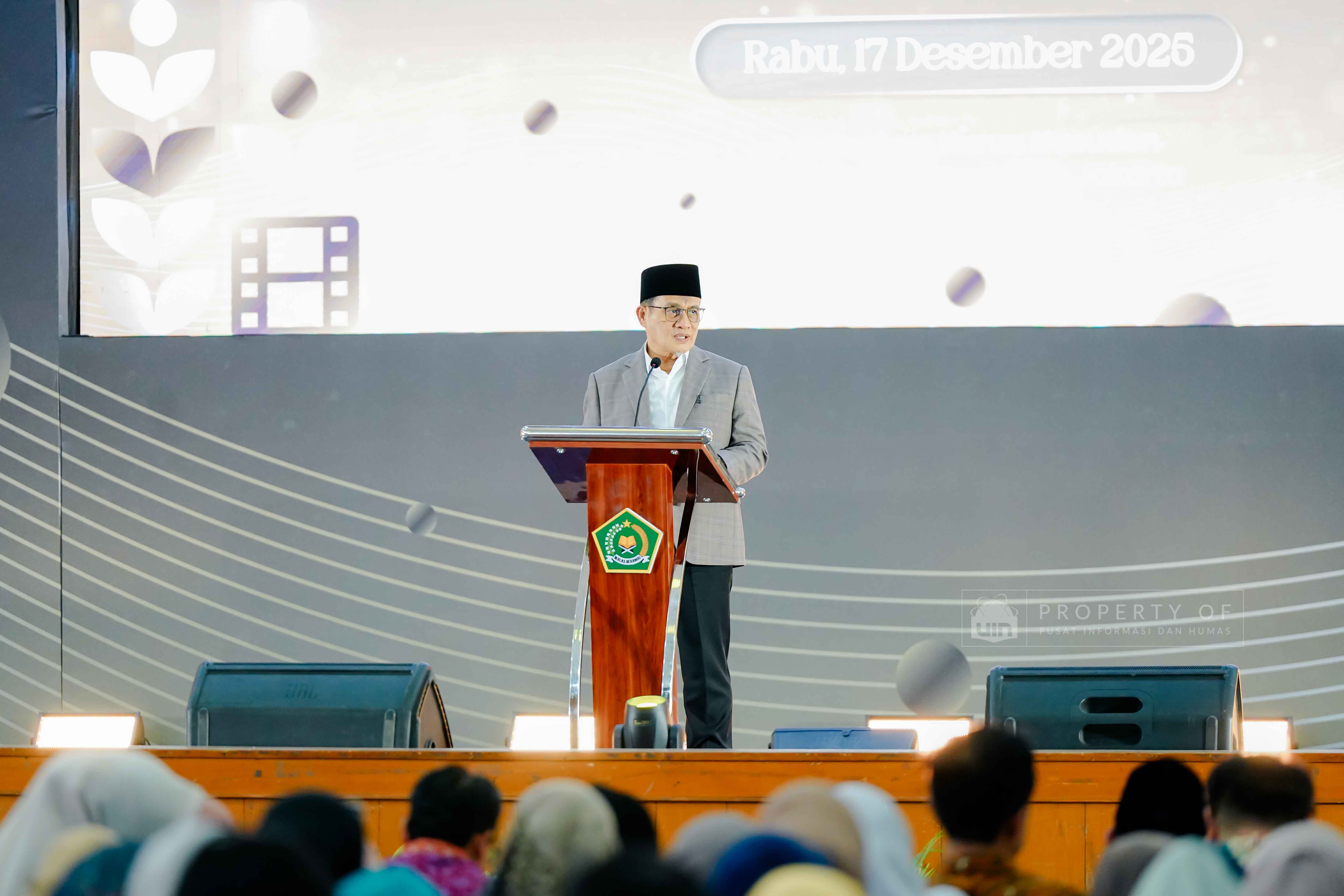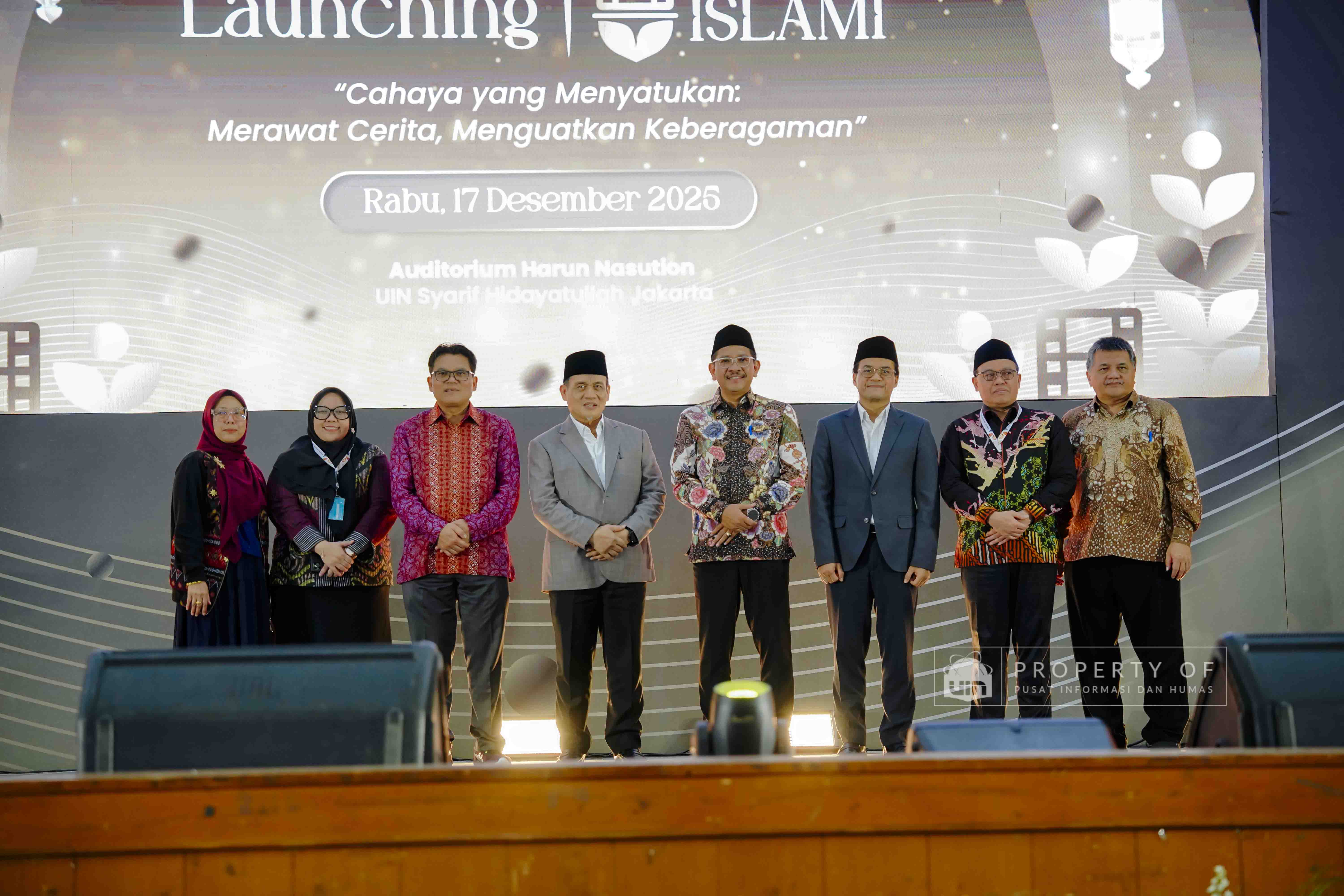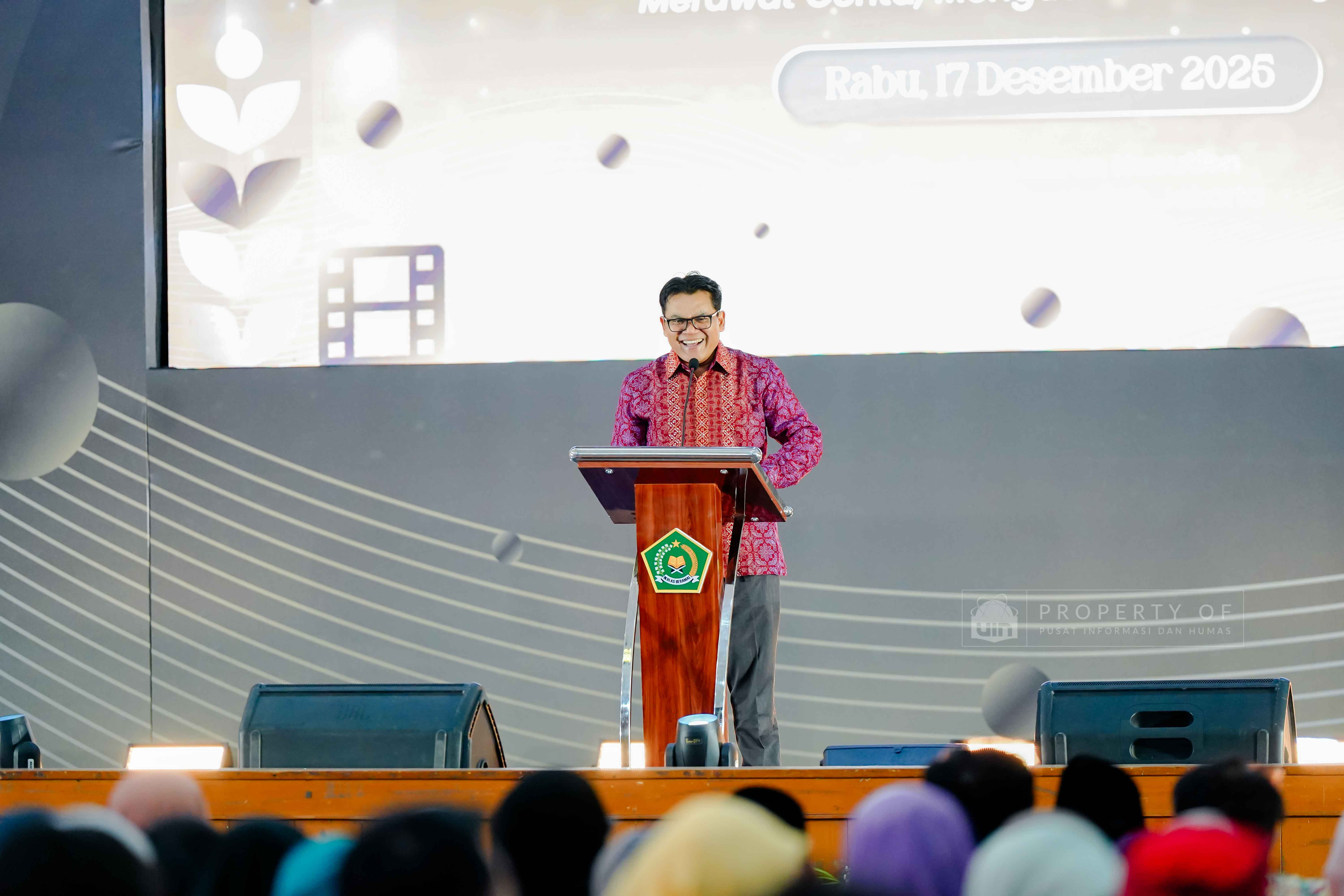 Fakultas Dakwah dan Ilmu Komunikasi (FDIKOM) UIN Syarif Hidayatullah Jakarta bekerja sama dengan Direktorat Penerangan Agama Islam Kementerian Agama Republik Indonesia menggelar kegiatan Grand Launching platform Filmislami.kemenag.go.id di Auditorium Harun Nasution UIN Jakarta, pada Rabu (17/12/2025). Kegiatan ini mengusung tema “Cahaya yang Menyatukan: Merawat Cerita, Menguatkan Keberagaman” dan dihadiri pimpinan fakultas, dosen, tenaga kependidikan, serta mahasiswa sebagai upaya menghadirkan ruang ekspresi dan penguatan narasi keislaman melalui medium film. (Fotografer: Talitha Zhafirah Qutratu'ain/Teks: Syandana Mazna Aisyah/Pusat Informasi dan Humas UIN Jakarta)