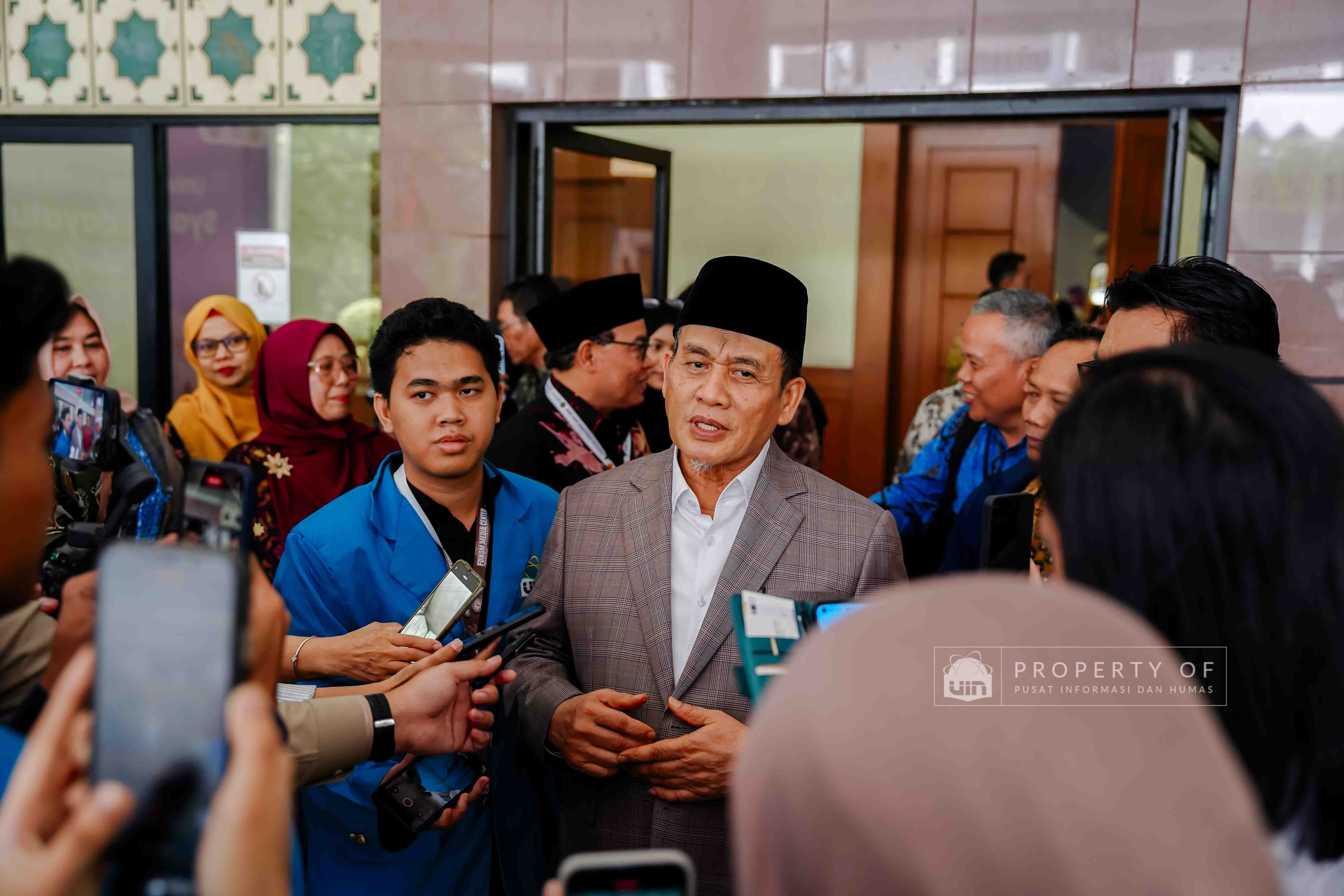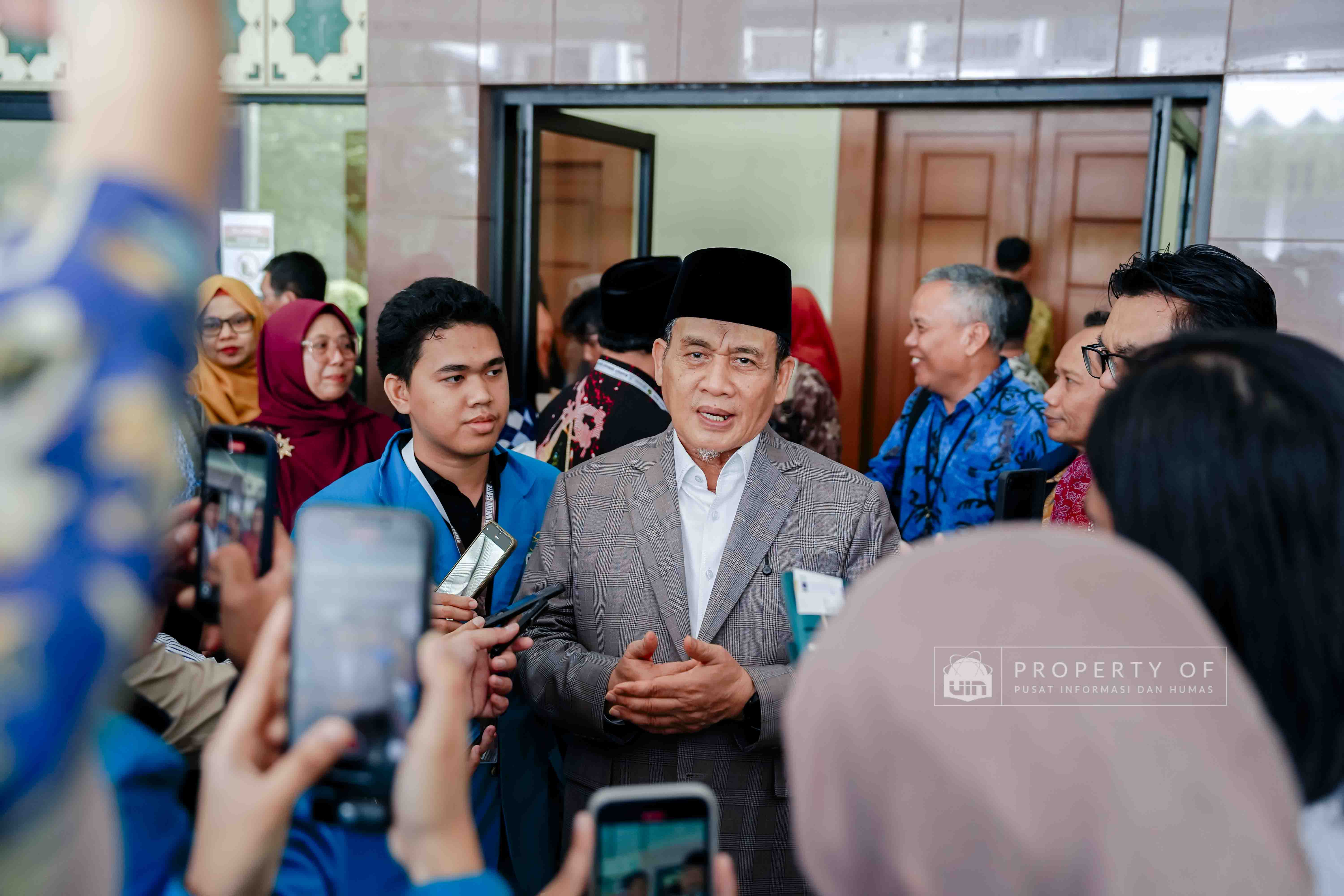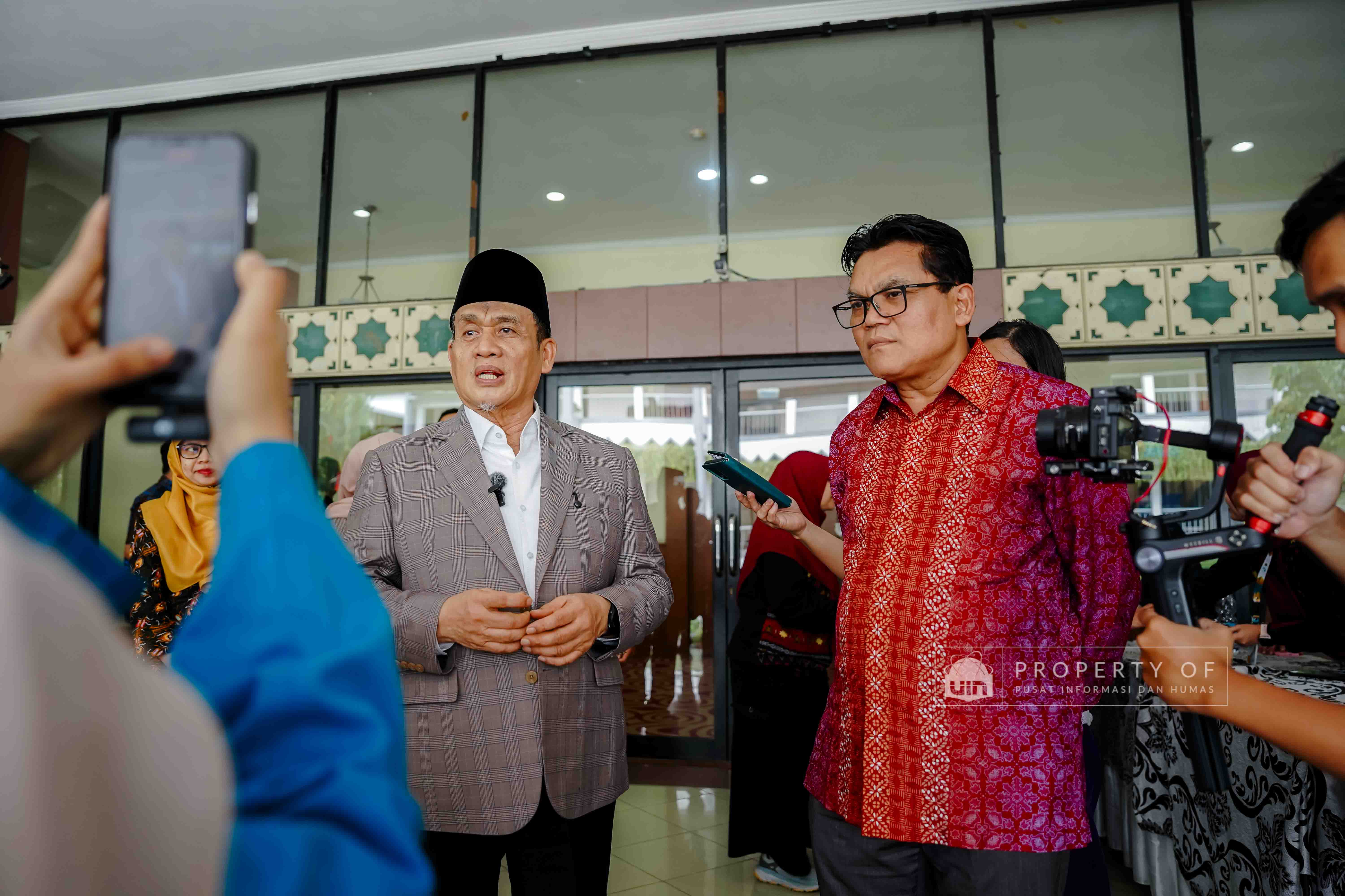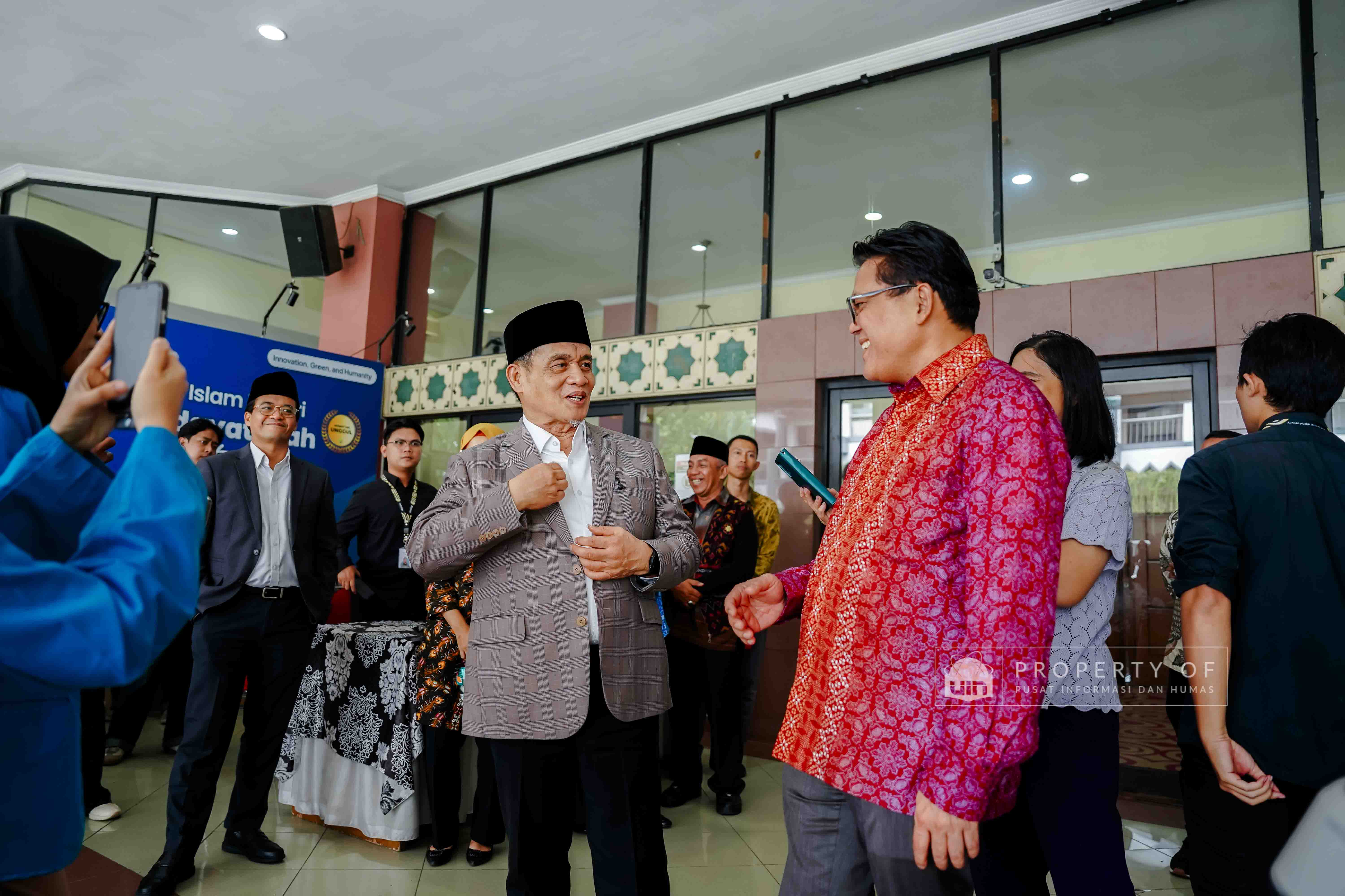 Fakultas Dakwah dan Ilmu Komunikasi (FDIKOM) UIN Syarif Hidayatullah Jakarta bekerja sama dengan Direktorat Penerangan Agama Islam Kementerian Agama Republik Indonesia menggelar kegiatan Grand Launching platform Filmislami.kemenag.go.id di Auditorium Harun Nasution UIN Jakarta, pada Rabu (17/12/2025). Kegiatan ini mengusung tema “Cahaya yang Menyatukan: Merawat Cerita, Menguatkan Keberagaman” dan dihadiri pimpinan fakultas, dosen, tenaga kependidikan, serta mahasiswa sebagai upaya menghadirkan ruang ekspresi dan penguatan narasi keislaman melalui medium film. (Fotografer: Talitha Zhafirah Qutratu'ain/Teks: Syandana Mazna Aisyah/Pusat Informasi dan Humas UIN Jakarta)