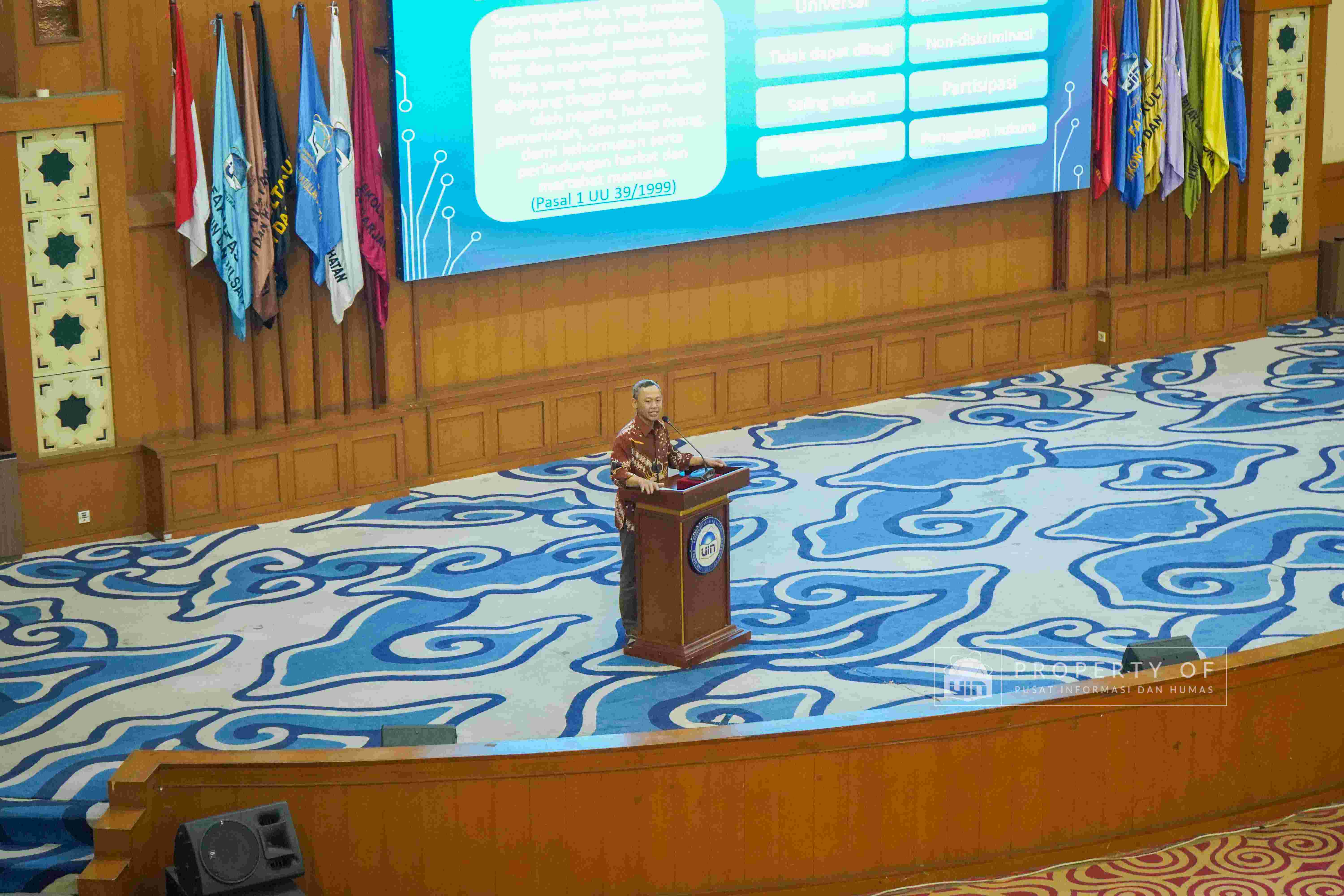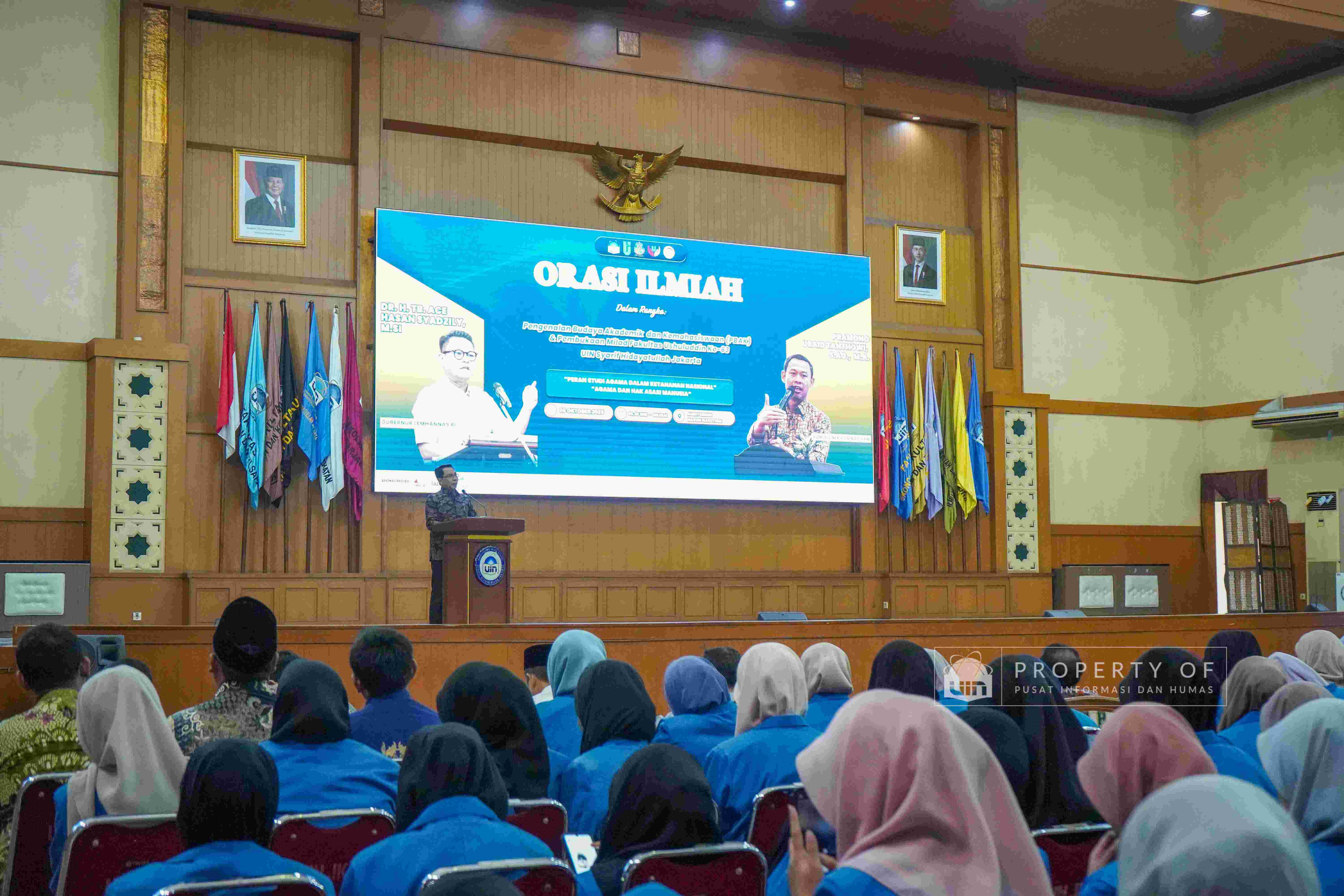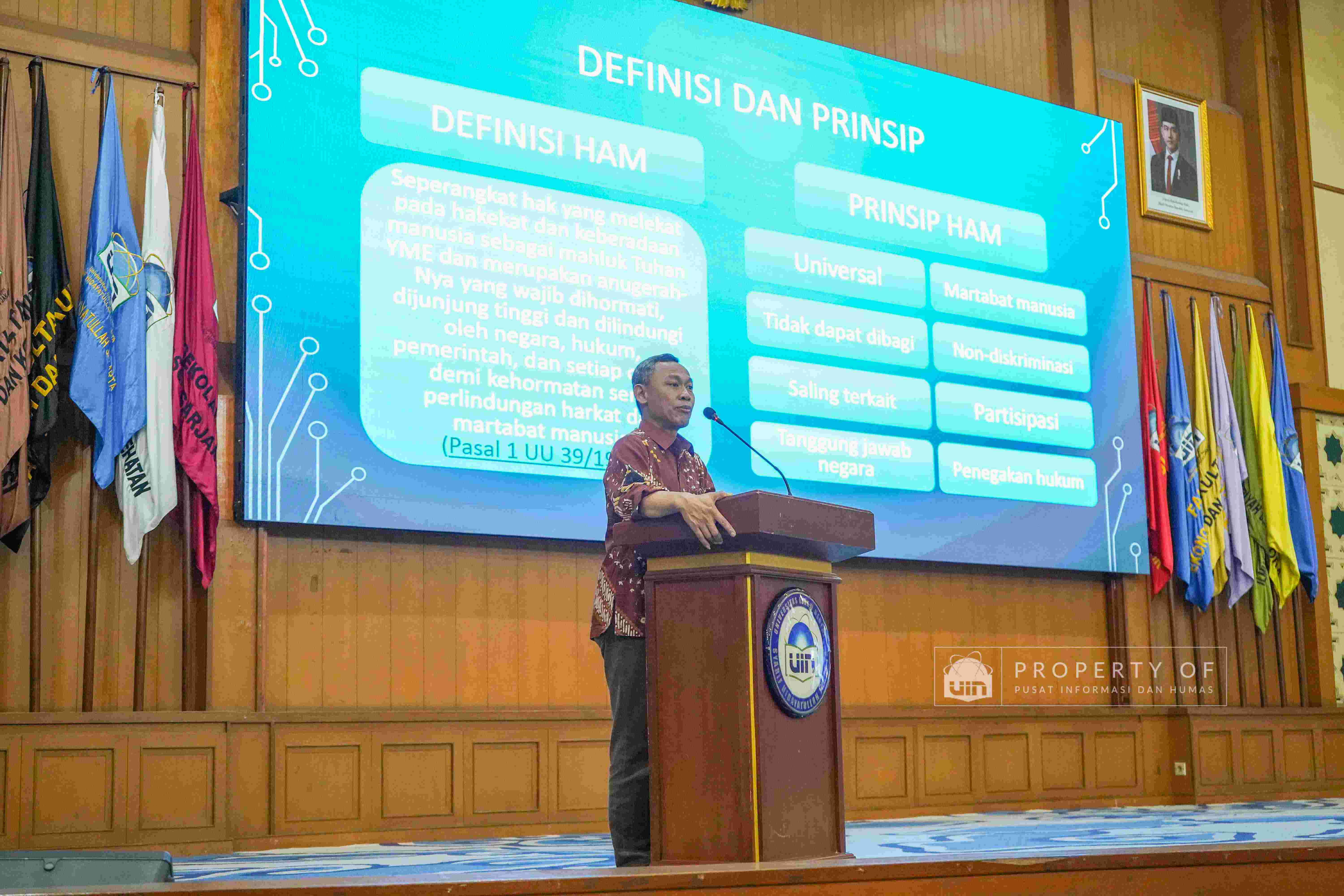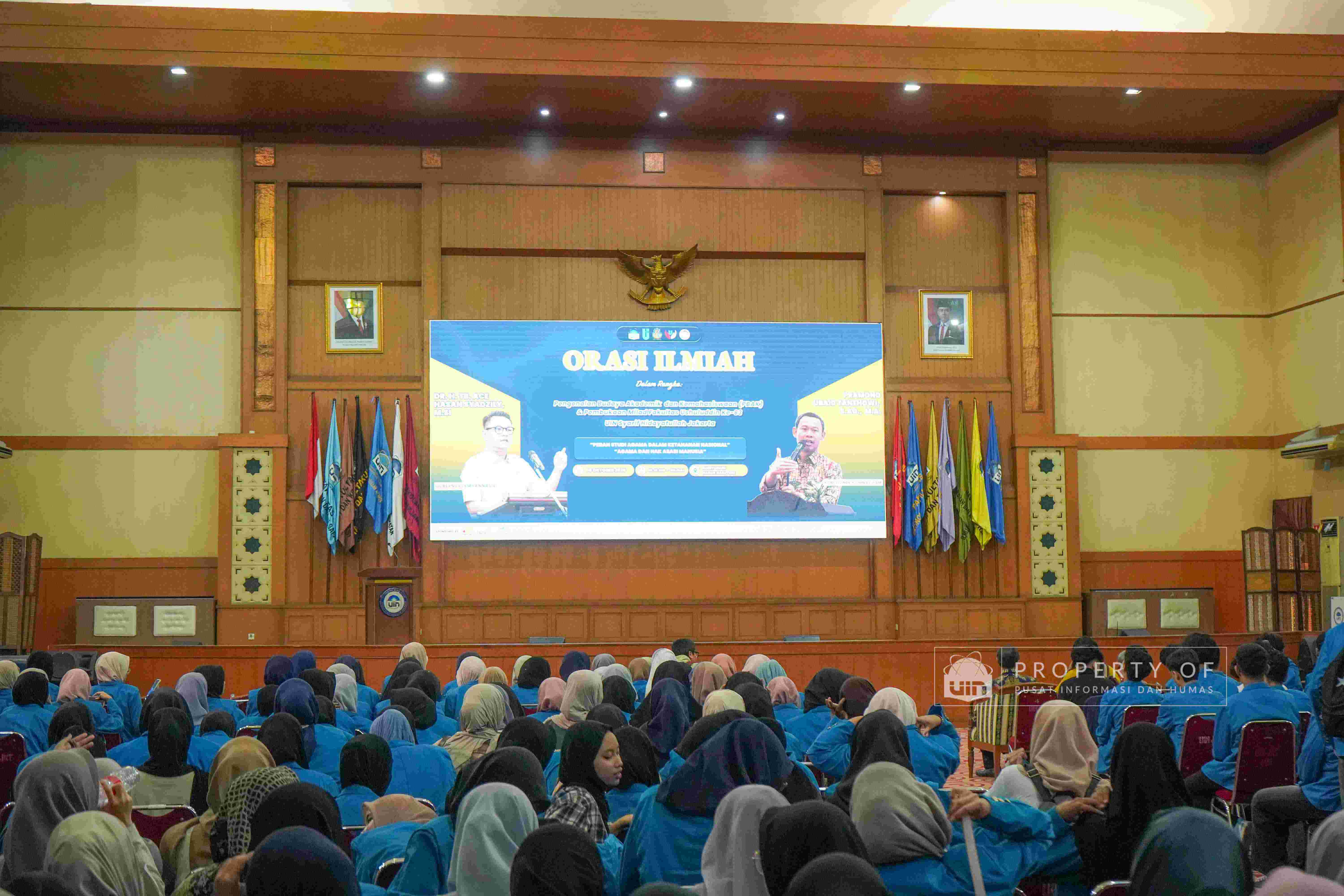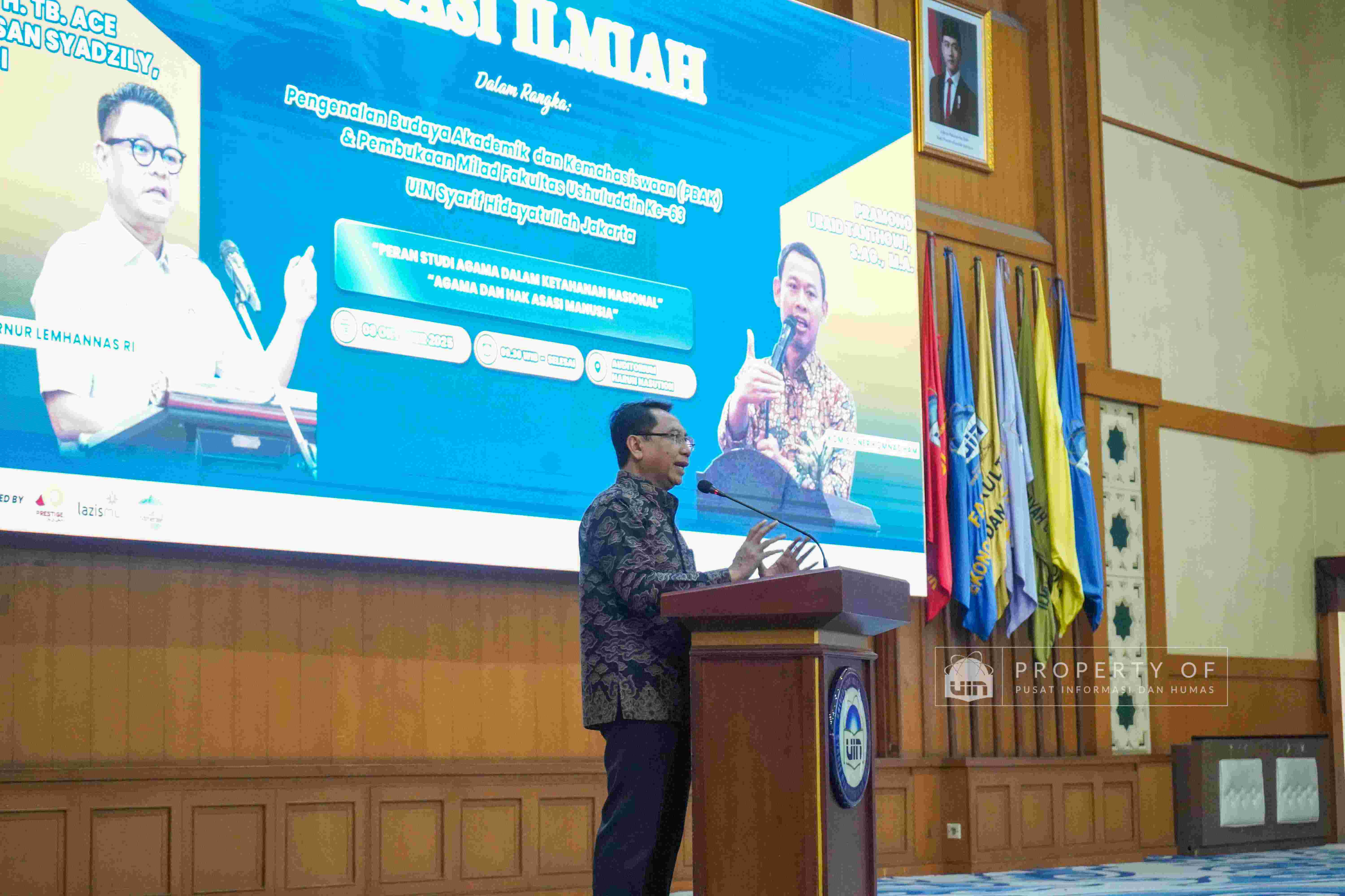 Dalam rangka memperingati Milad ke-63 Fakultas Ushuluddin (FU) UIN Syarif Hidayatullah Jakarta, civitas akademika Fakultas Ushuluddin menggelar dua orasi ilmiah dengan menghadirkan dua tokoh nasional, yaitu Gubernur Lemhannas RI, Dr. H. Tb. Ace Hasan Syadzily, M.Si., dan Komisioner Komnas HAM RI, Pramono Ubaid Tanthowi, S.Ag., M.A. Acara berlangsung di Auditorium Harun Nasution UIN Jakarta, Rabu (8/10/2025) (Fotografer: Aqilah Qurratulaini/Teks: Muhamad Arifin Ilham/Pusat Informasi dan Humas UIN Jakarta)