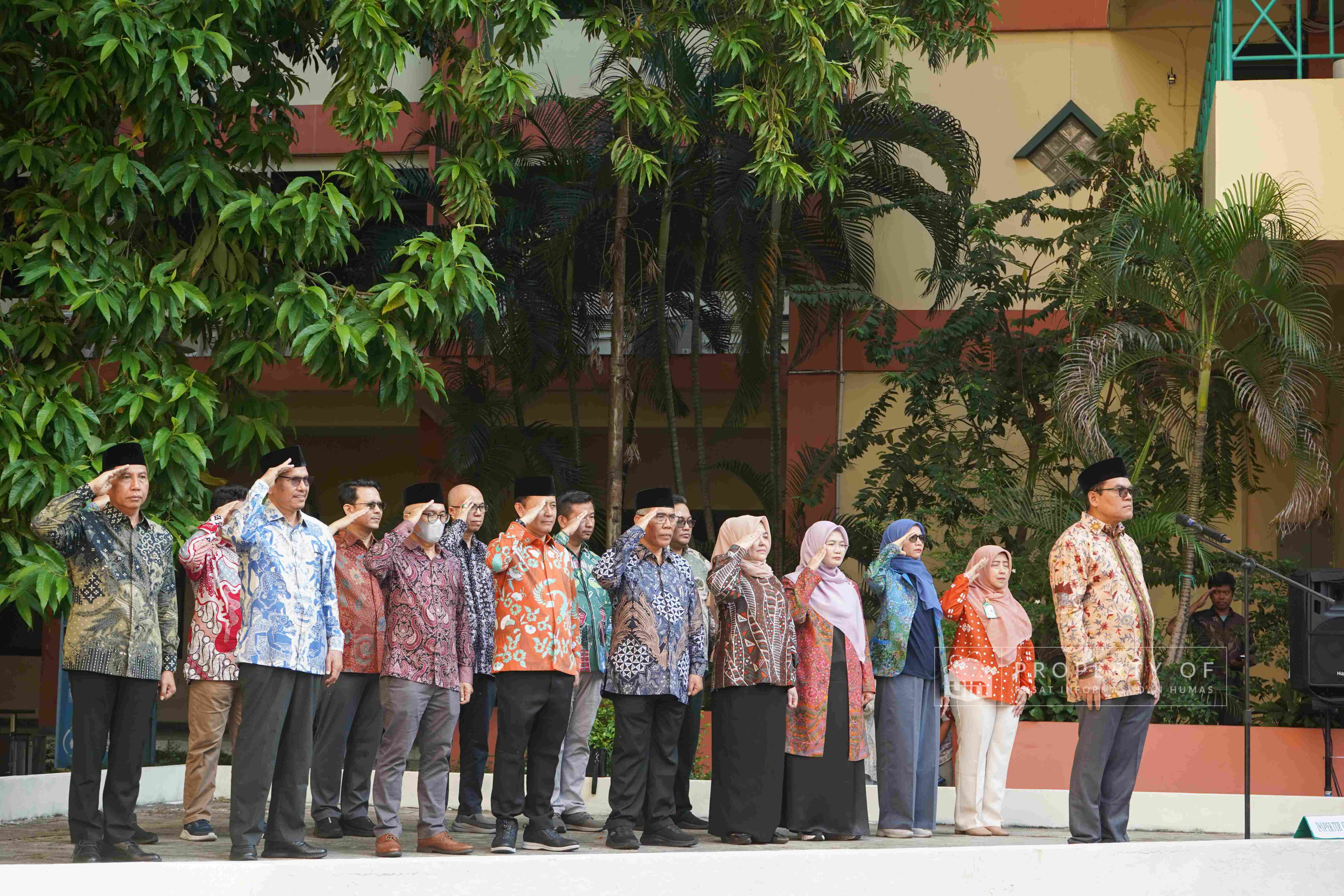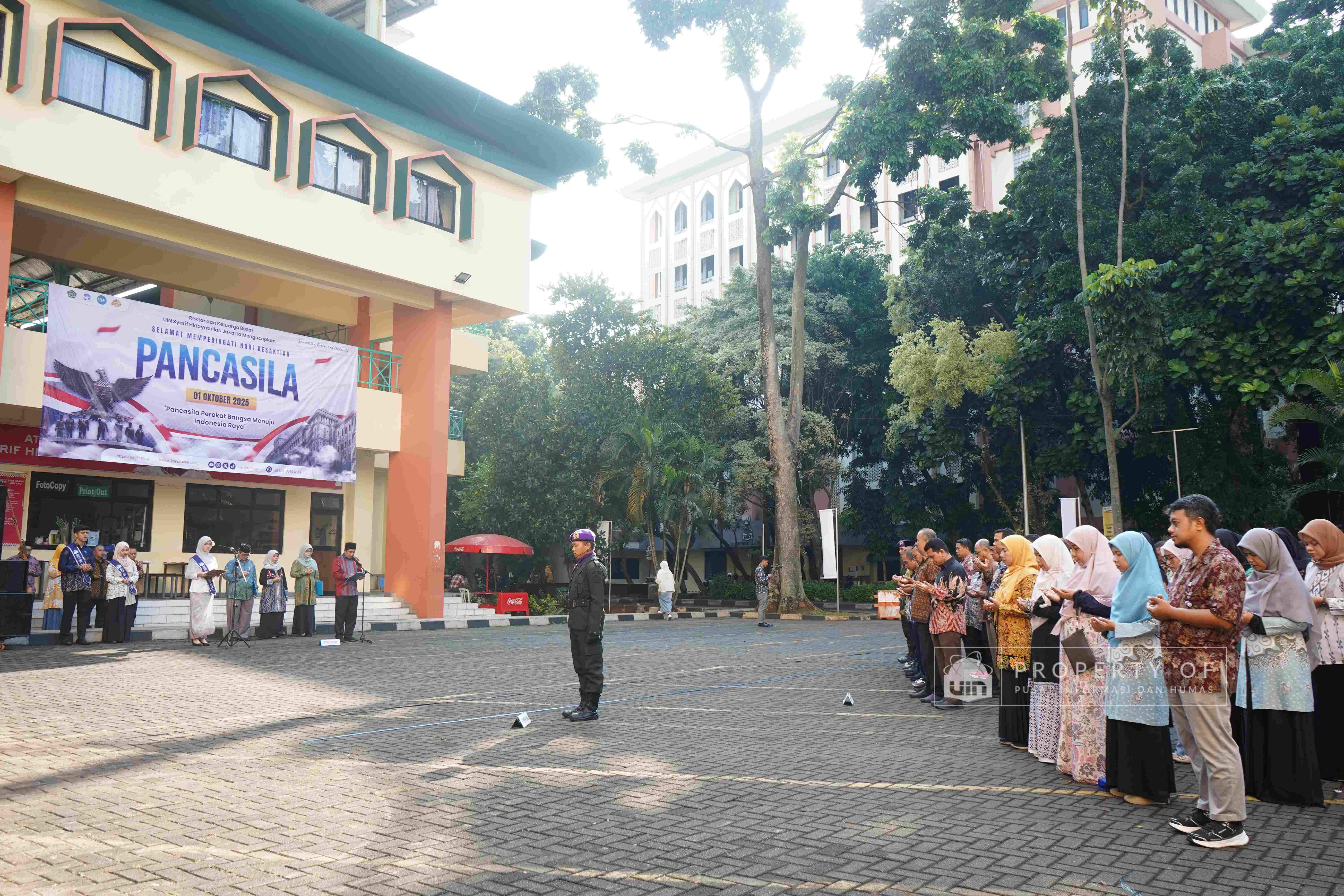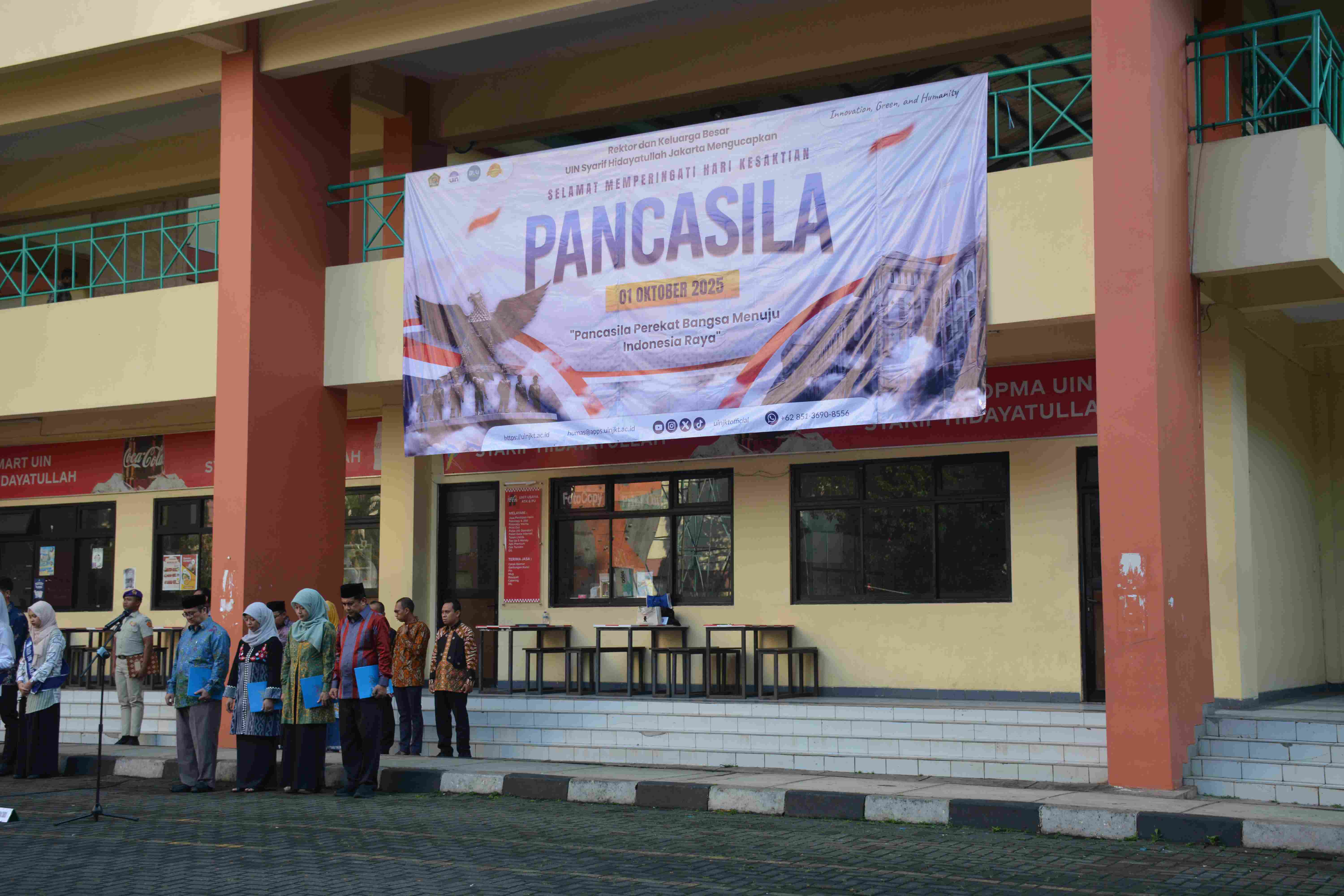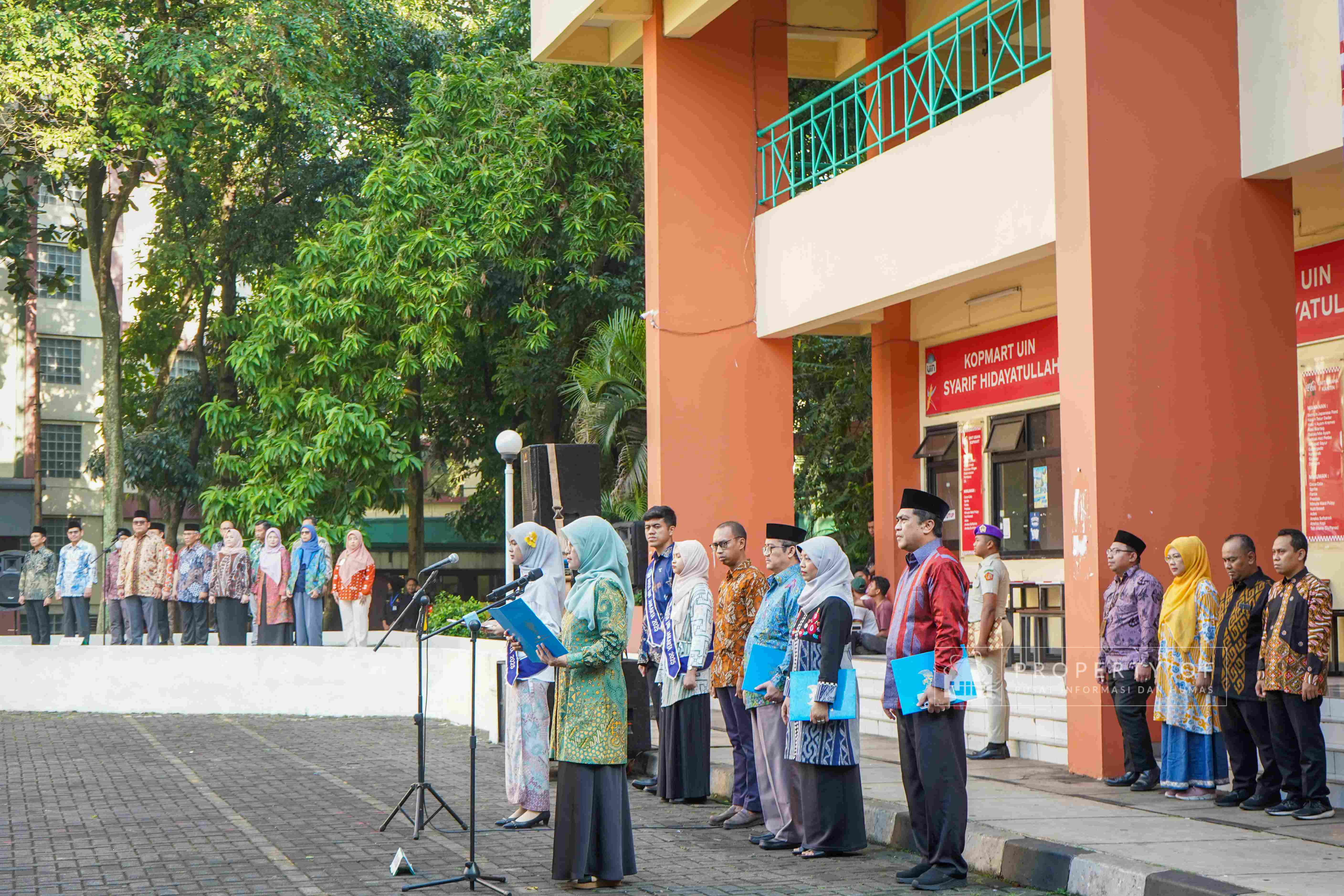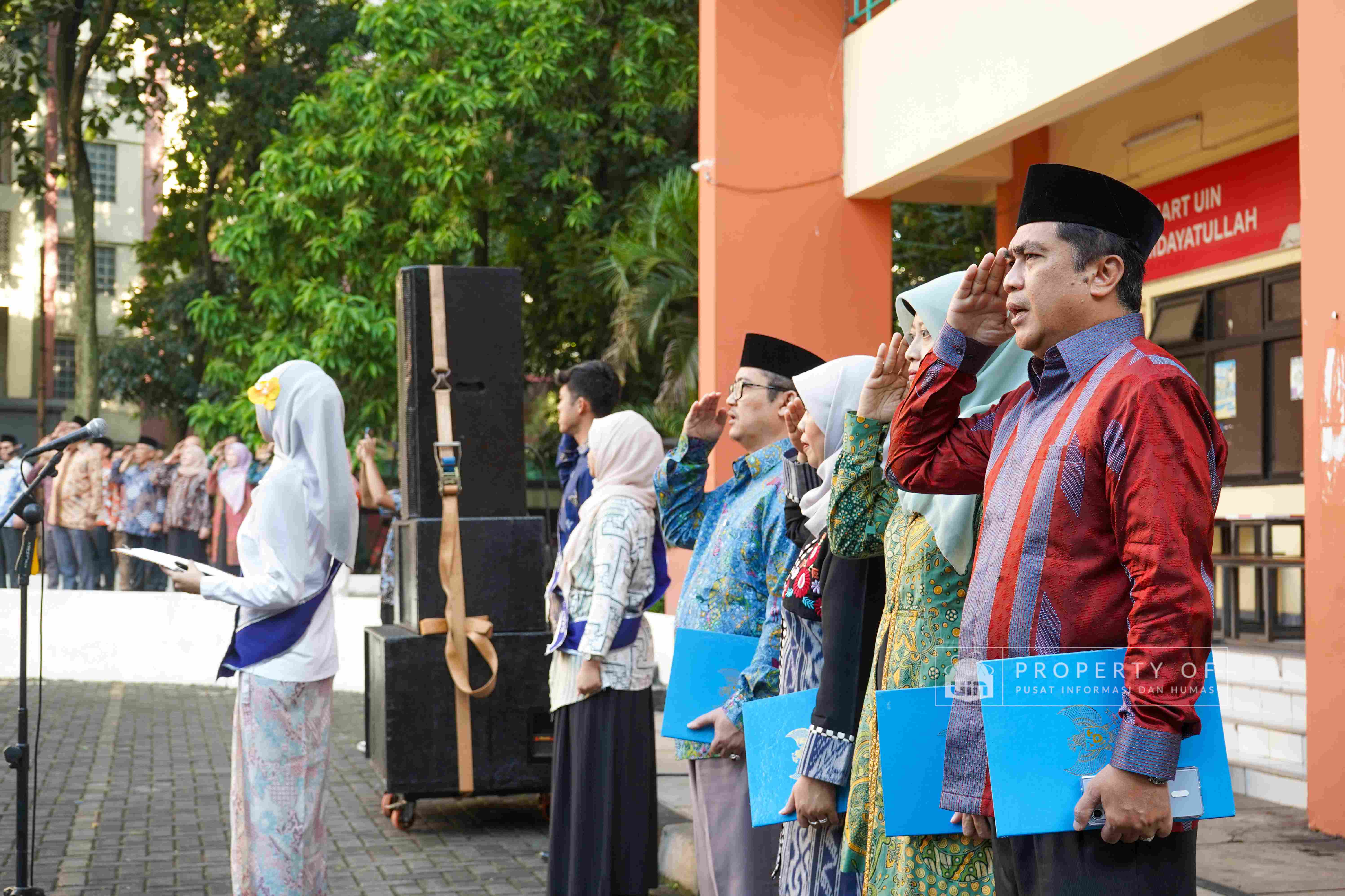 Upacara peringatan Hari Kesaktian Pancasila tahun ini dilaksanakan dalam rangka mengingatkan kembali arti penting persatuan dan keteguhan bangsa Indonesia dalam menghadapi berbagai ancaman. Rangkaian upacara dimulai dengan pengibaran bendera merah putih, mengheningkan cipta, pembacaan teks Pancasila, pembacaan teks UUD 1945, serta Ikrar Kesaktian Pancasila. Seluruh prosesi dijalankan dengan penuh penghormatan, mengingatkan kembali arti penting persatuan dan keteguhan bangsa Indonesia dalam menghadapi berbagai ancaman. Upacara ini dipimpin langsung oleh Rektor UIN Jakarta, Prof. Asep Saepudin Jahar, M.A., Ph.D., yang bertindak sebagai inspektur upacara. (Fotografer: Aqilah Qurratulaini/Teks: Muhamad Arifin Ilham/Pusat Informasi dan Humas UIN Jakarta)