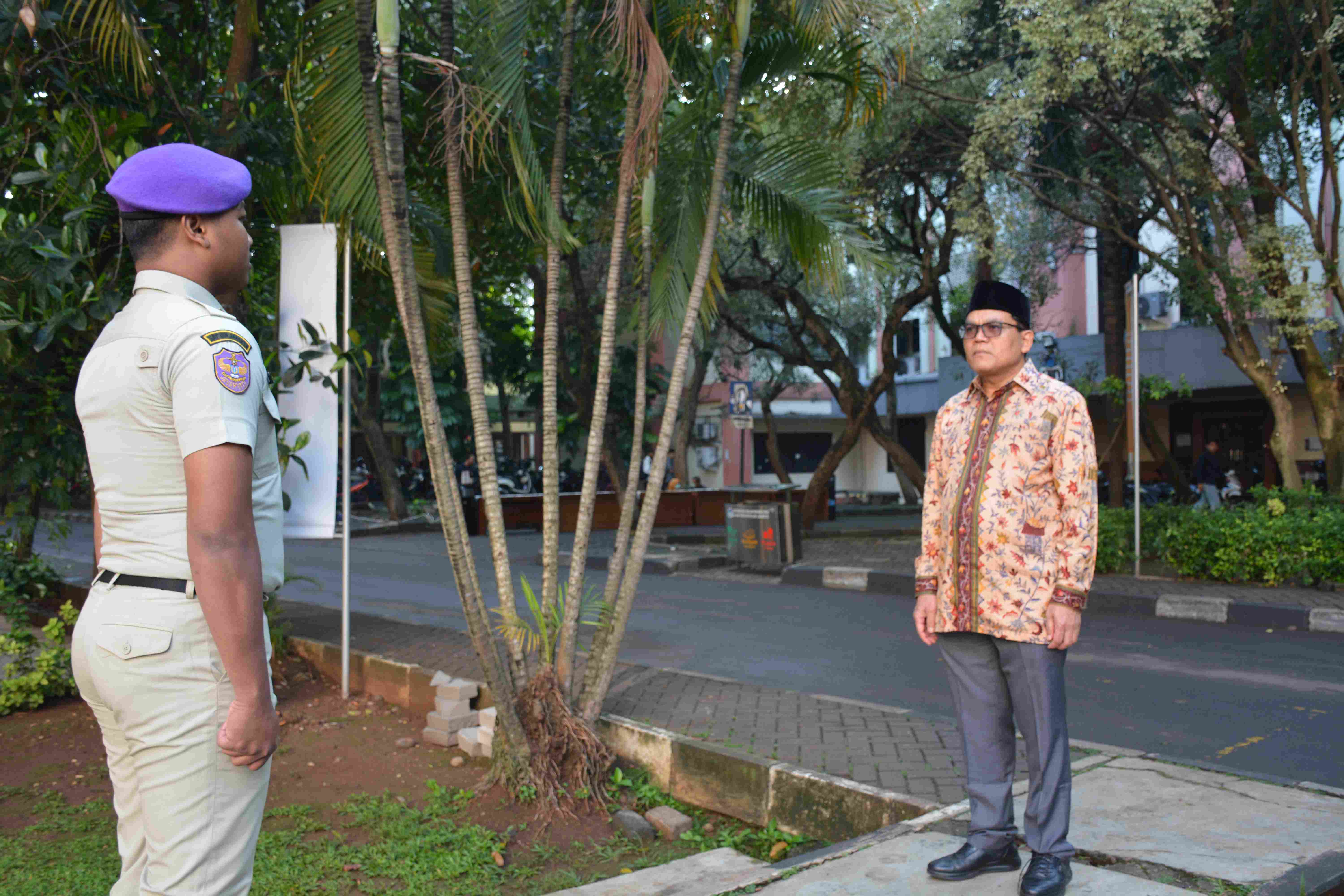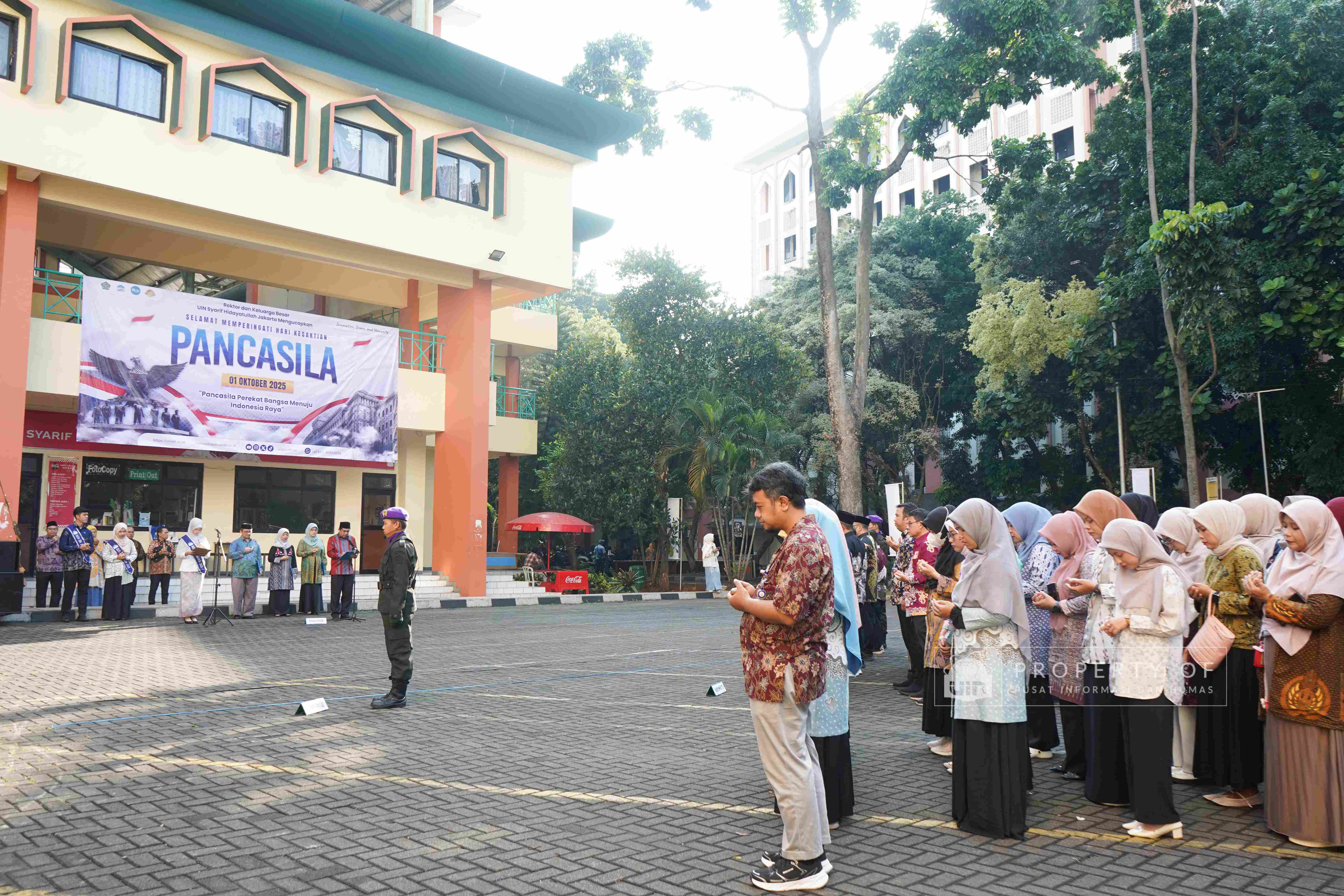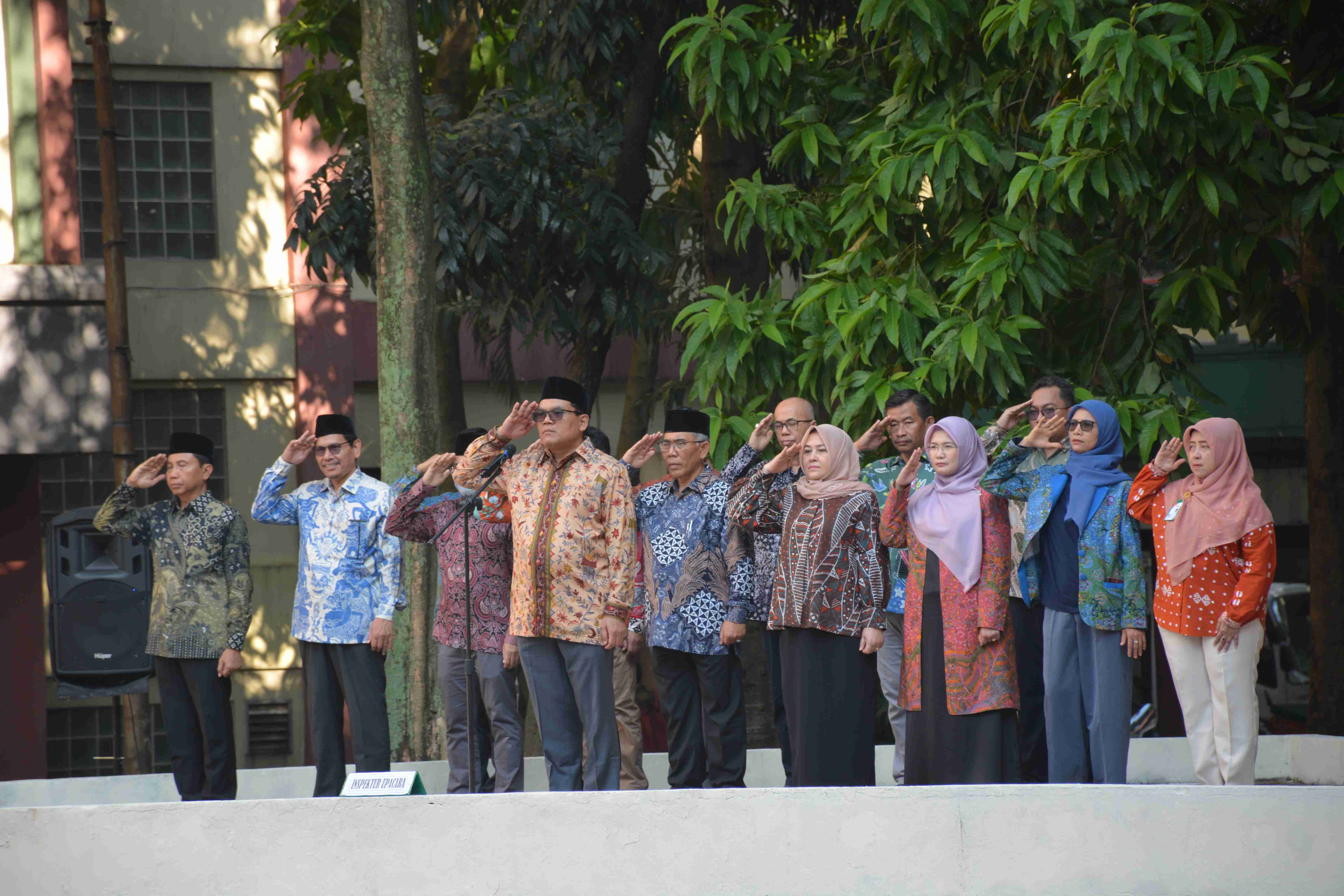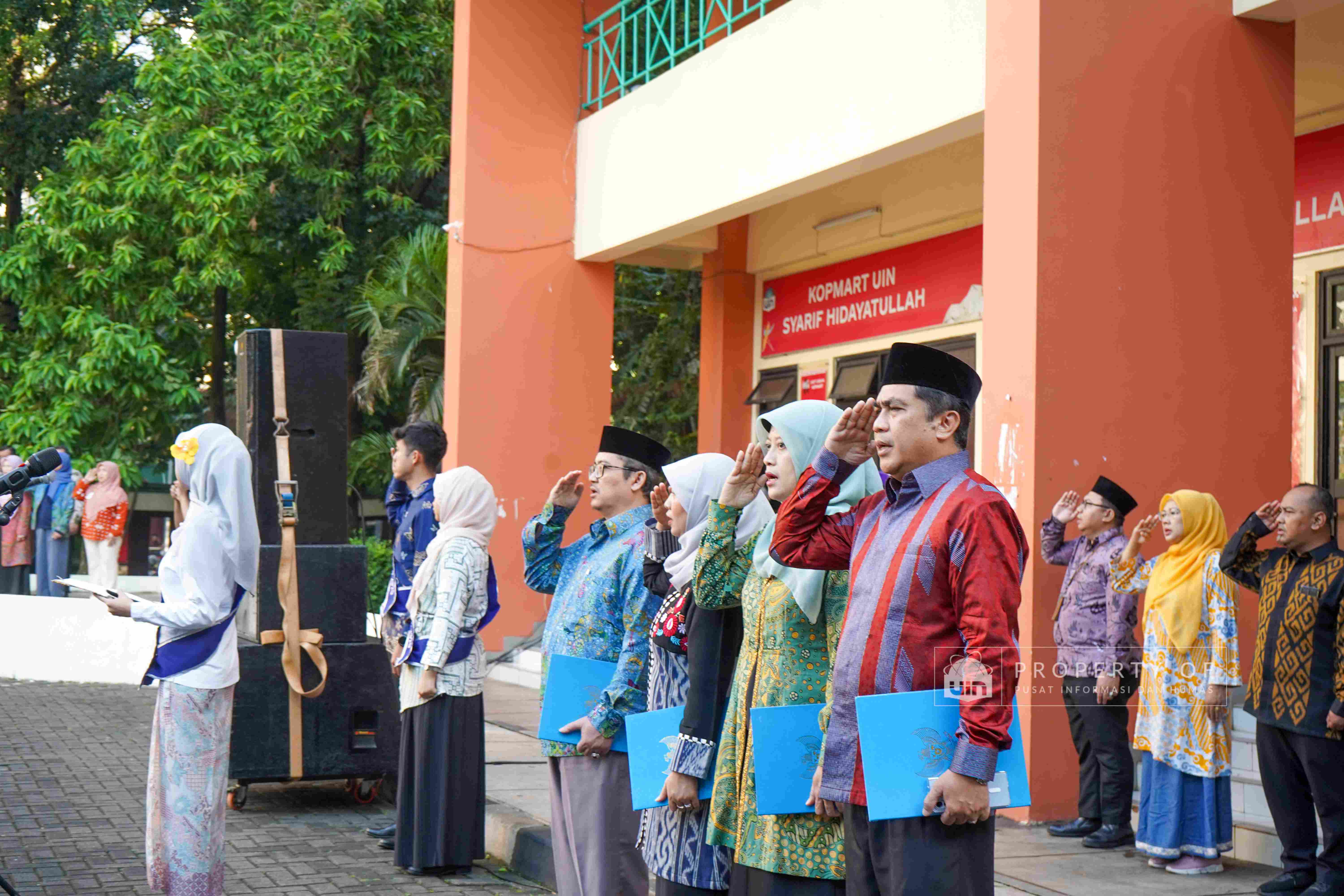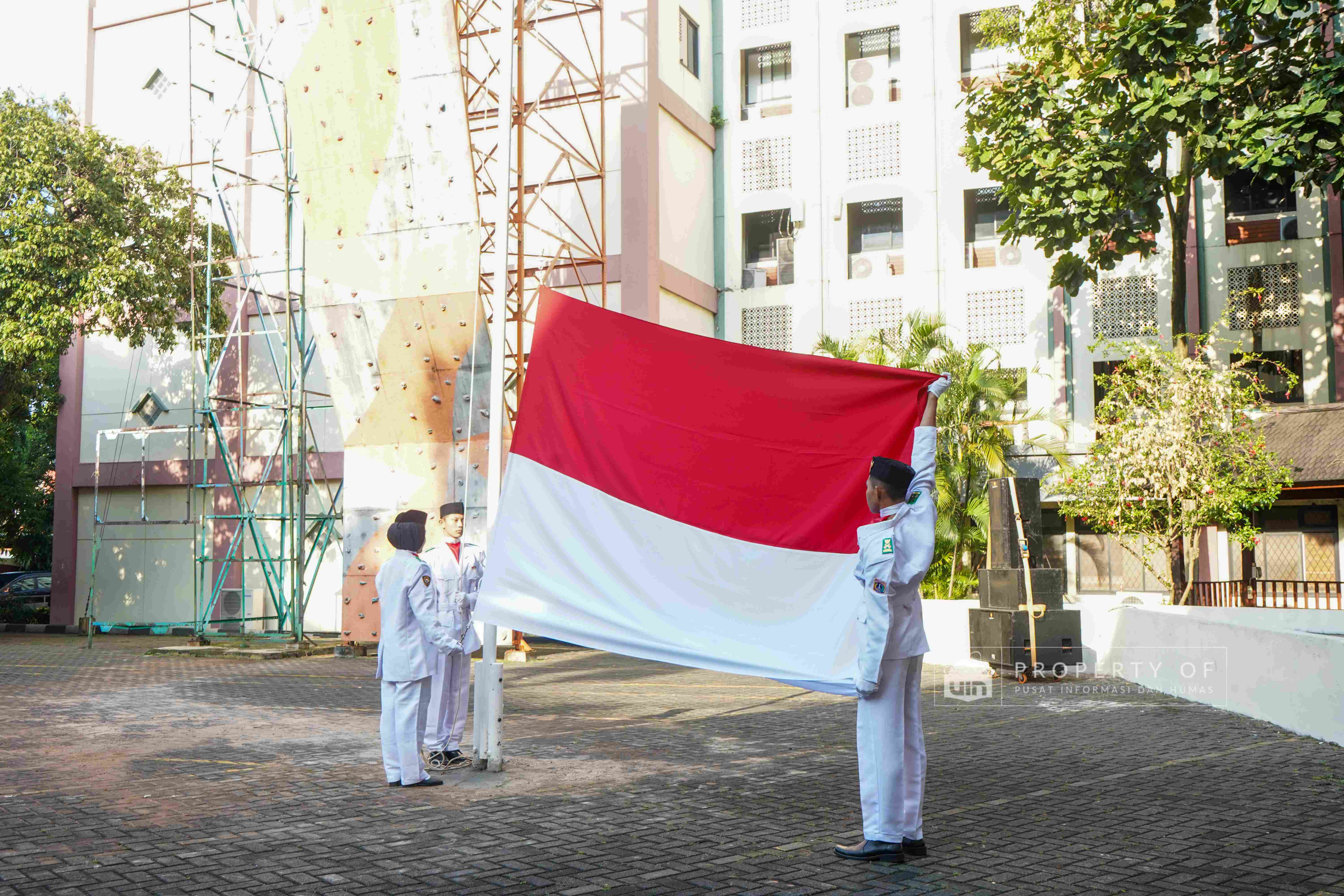 Upacara peringatan Hari Kesaktian Pancasila tahun ini dilaksanakan dalam rangka mengingatkan kembali arti penting persatuan dan keteguhan bangsa Indonesia dalam menghadapi berbagai ancaman. Rangkaian upacara dimulai dengan pengibaran bendera merah putih, mengheningkan cipta, pembacaan teks Pancasila, pembacaan teks UUD 1945, serta Ikrar Kesaktian Pancasila. Seluruh prosesi dijalankan dengan penuh penghormatan, mengingatkan kembali arti penting persatuan dan keteguhan bangsa Indonesia dalam menghadapi berbagai ancaman. Upacara ini dipimpin langsung oleh Rektor UIN Jakarta, Prof. Asep Saepudin Jahar, M.A., Ph.D., yang bertindak sebagai inspektur upacara. (Fotografer: Aqilah Qurratulaini/Teks: Muhamad Arifin Ilham/Pusat Informasi dan Humas UIN Jakarta)