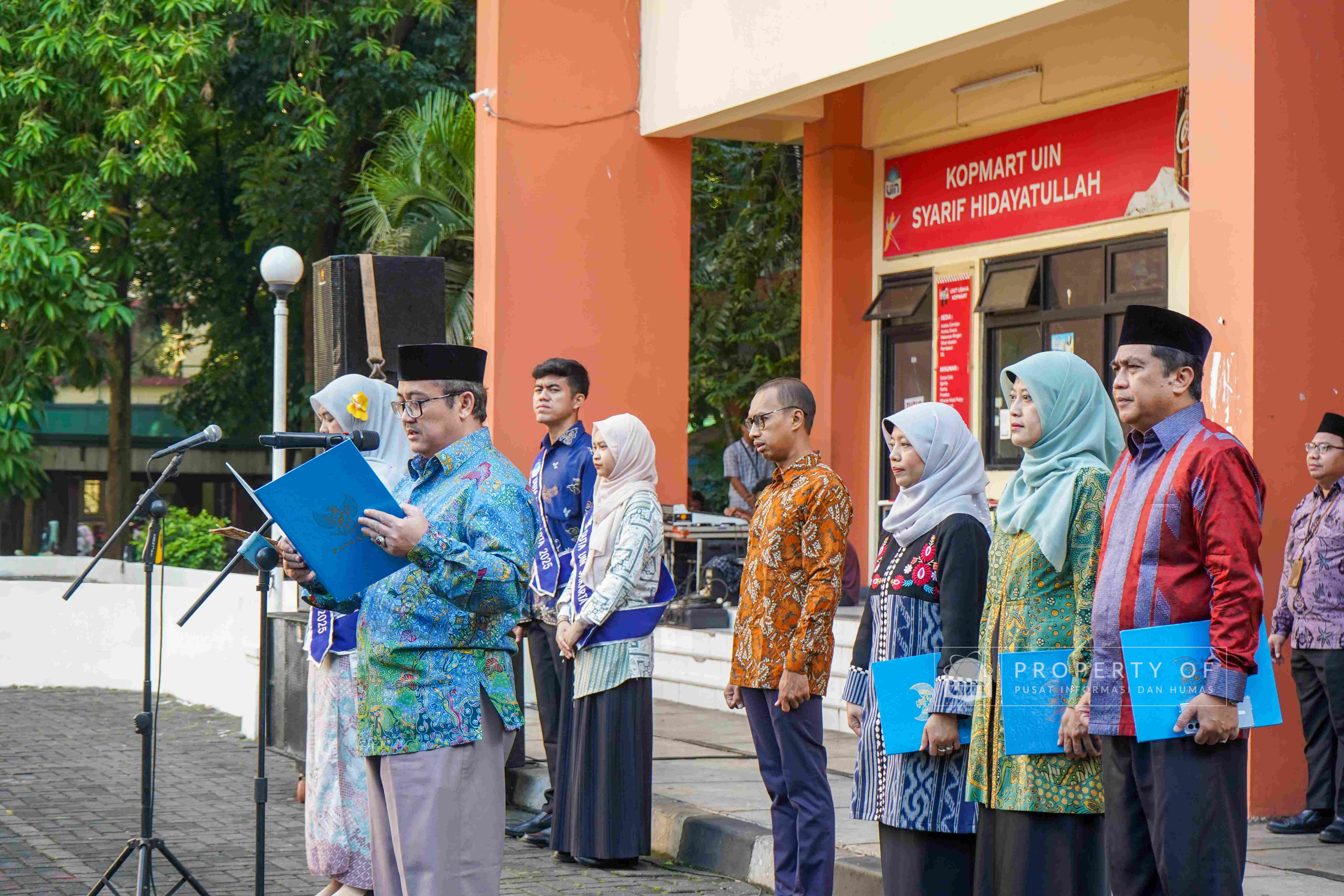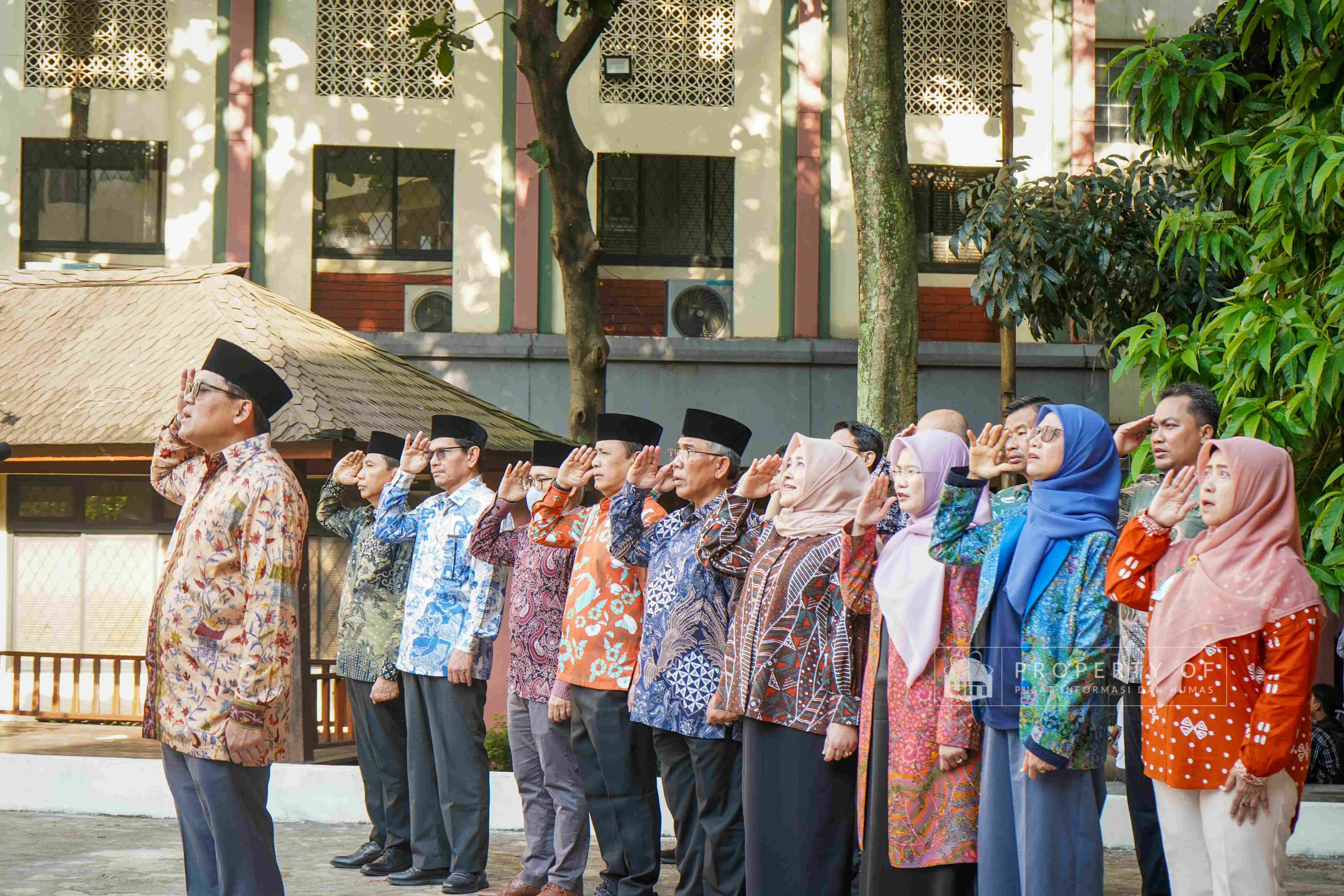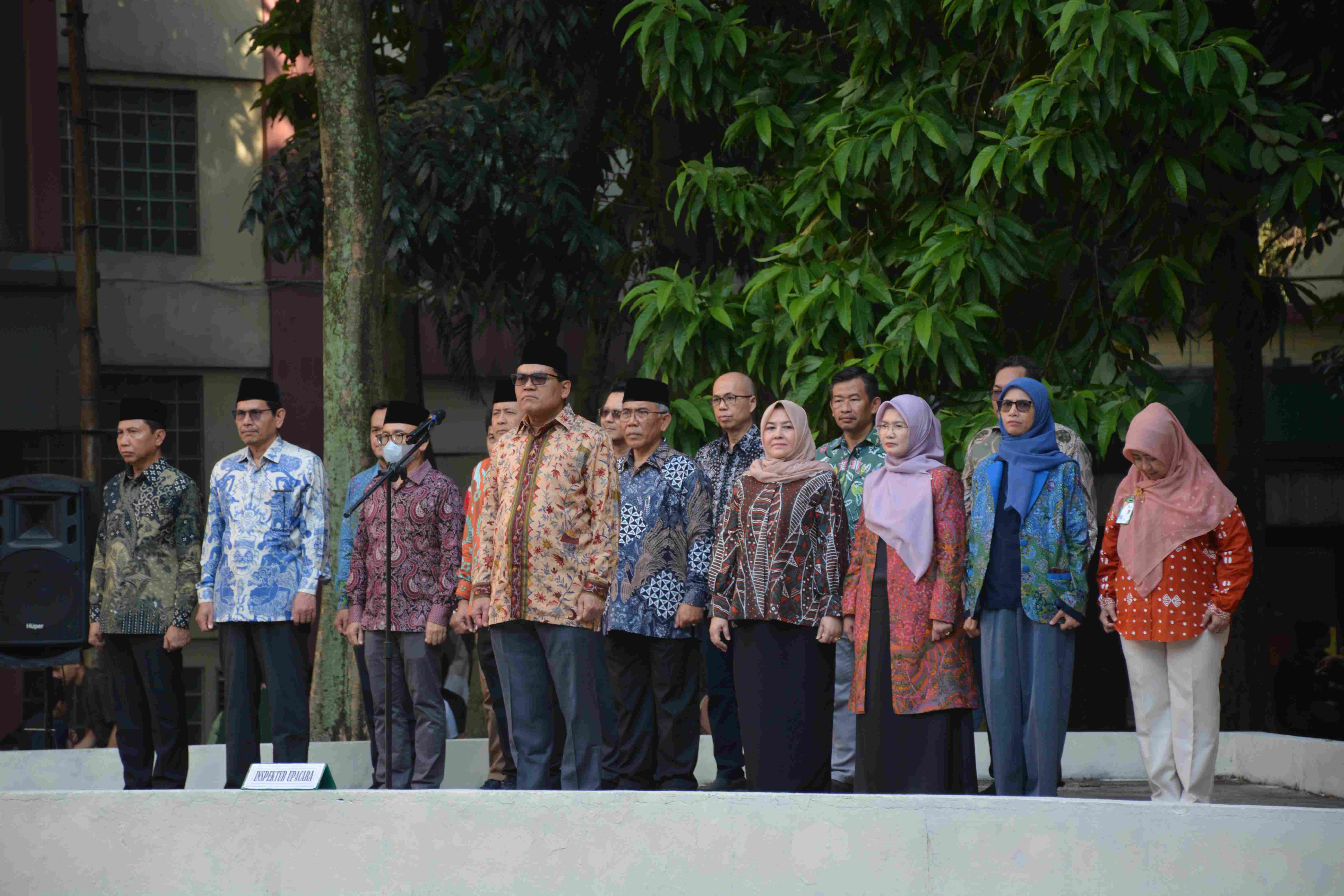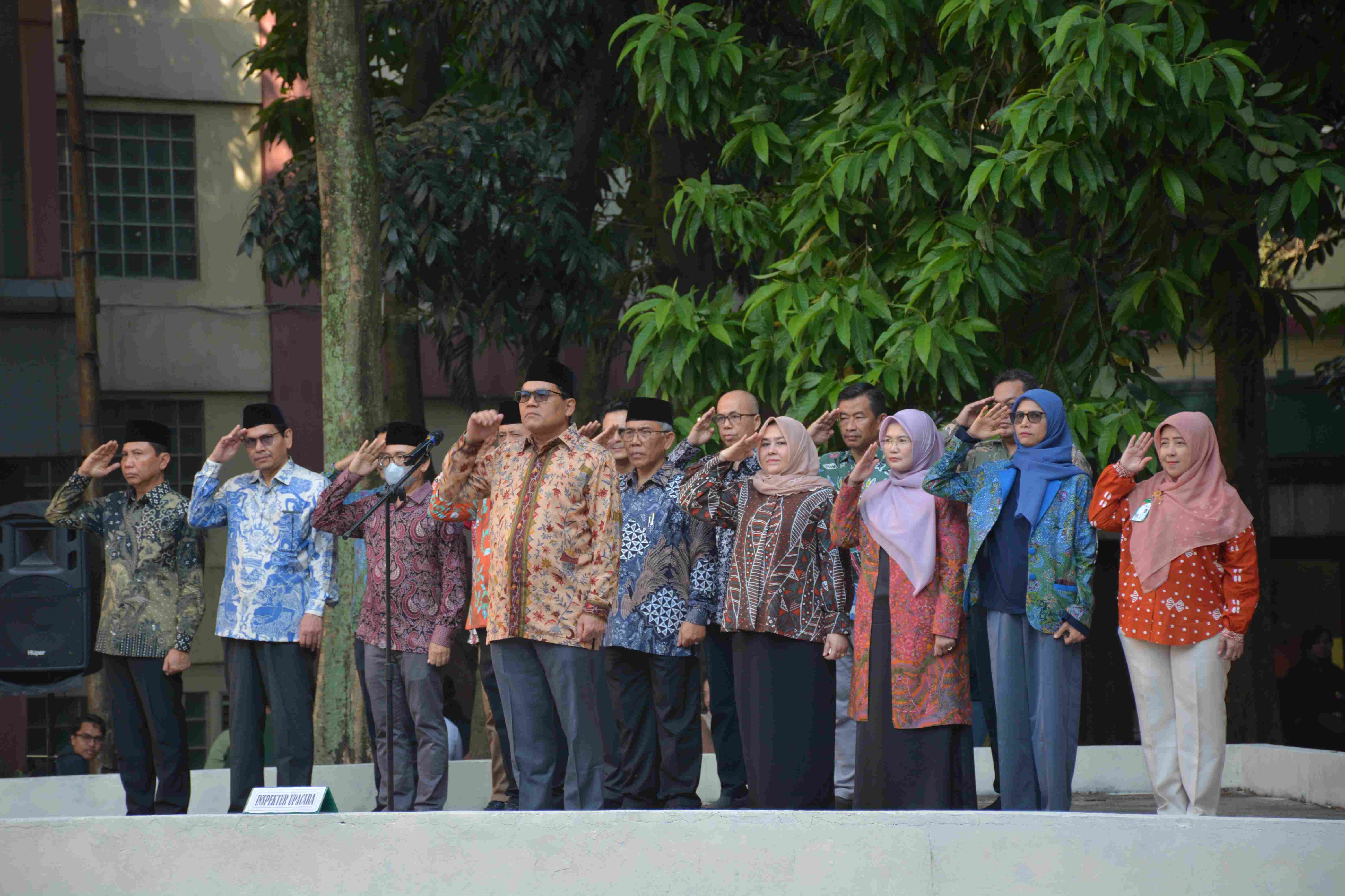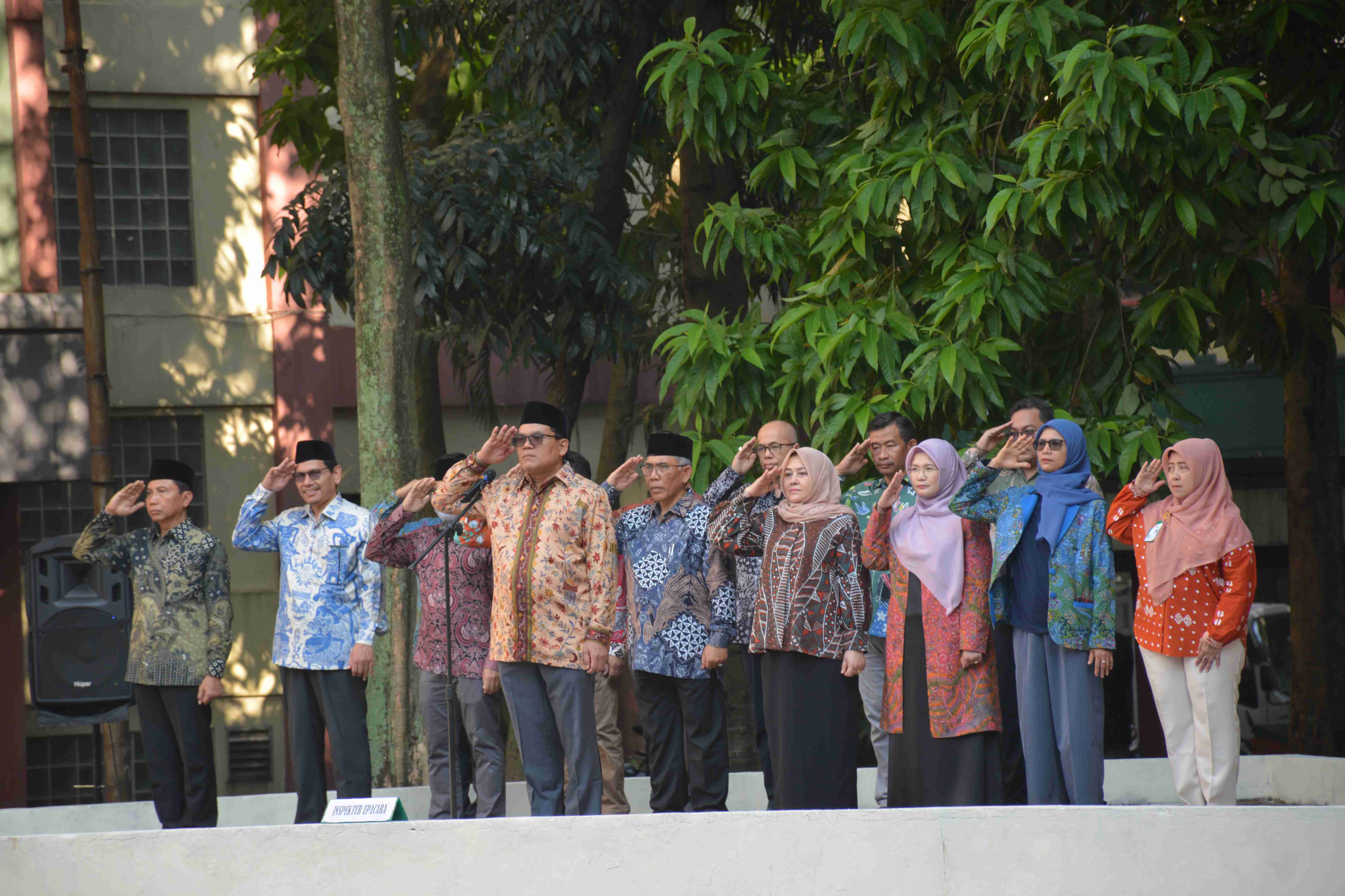 Upacara peringatan Hari Kesaktian Pancasila tahun ini dilaksanakan dalam rangka mengingatkan kembali arti penting persatuan dan keteguhan bangsa Indonesia dalam menghadapi berbagai ancaman. Rangkaian upacara dimulai dengan pengibaran bendera merah putih, mengheningkan cipta, pembacaan teks Pancasila, pembacaan teks UUD 1945, serta Ikrar Kesaktian Pancasila. Seluruh prosesi dijalankan dengan penuh penghormatan, mengingatkan kembali arti penting persatuan dan keteguhan bangsa Indonesia dalam menghadapi berbagai ancaman. Upacara ini dipimpin langsung oleh Rektor UIN Jakarta, Prof. Asep Saepudin Jahar, M.A., Ph.D., yang bertindak sebagai inspektur upacara. (Fotografer: Aqilah Qurratulaini/Teks: Muhamad Arifin Ilham/Pusat Informasi dan Humas UIN Jakarta)