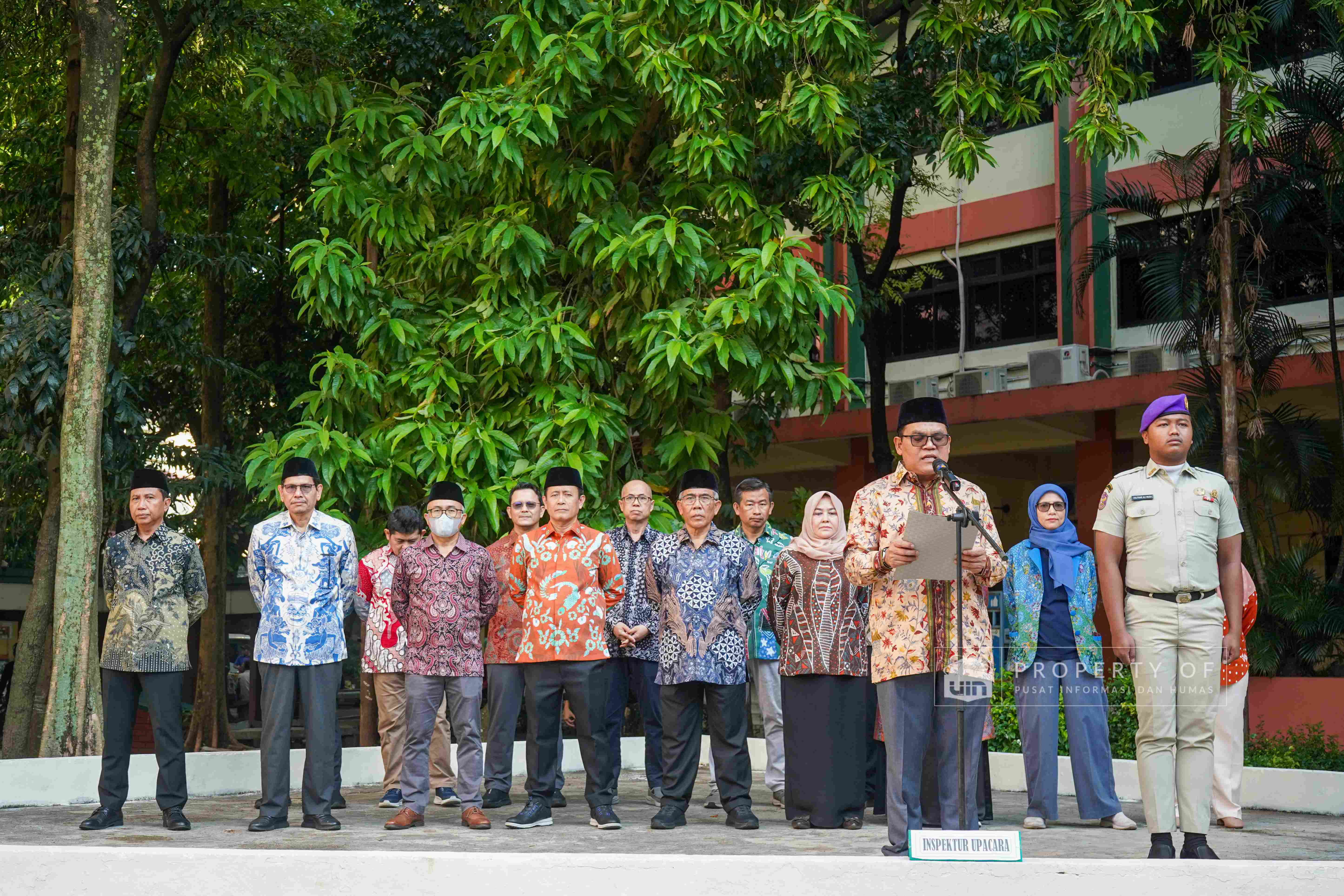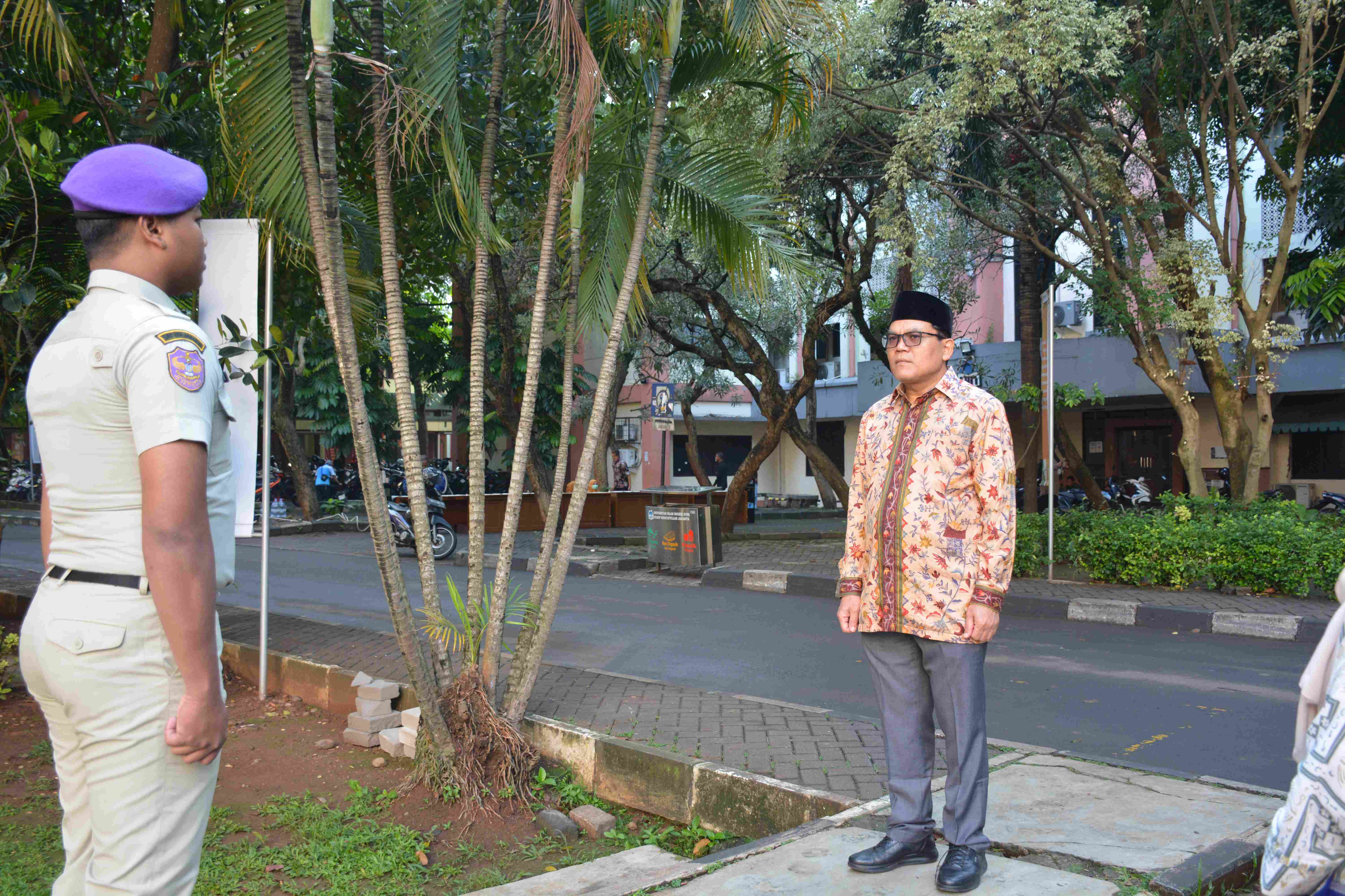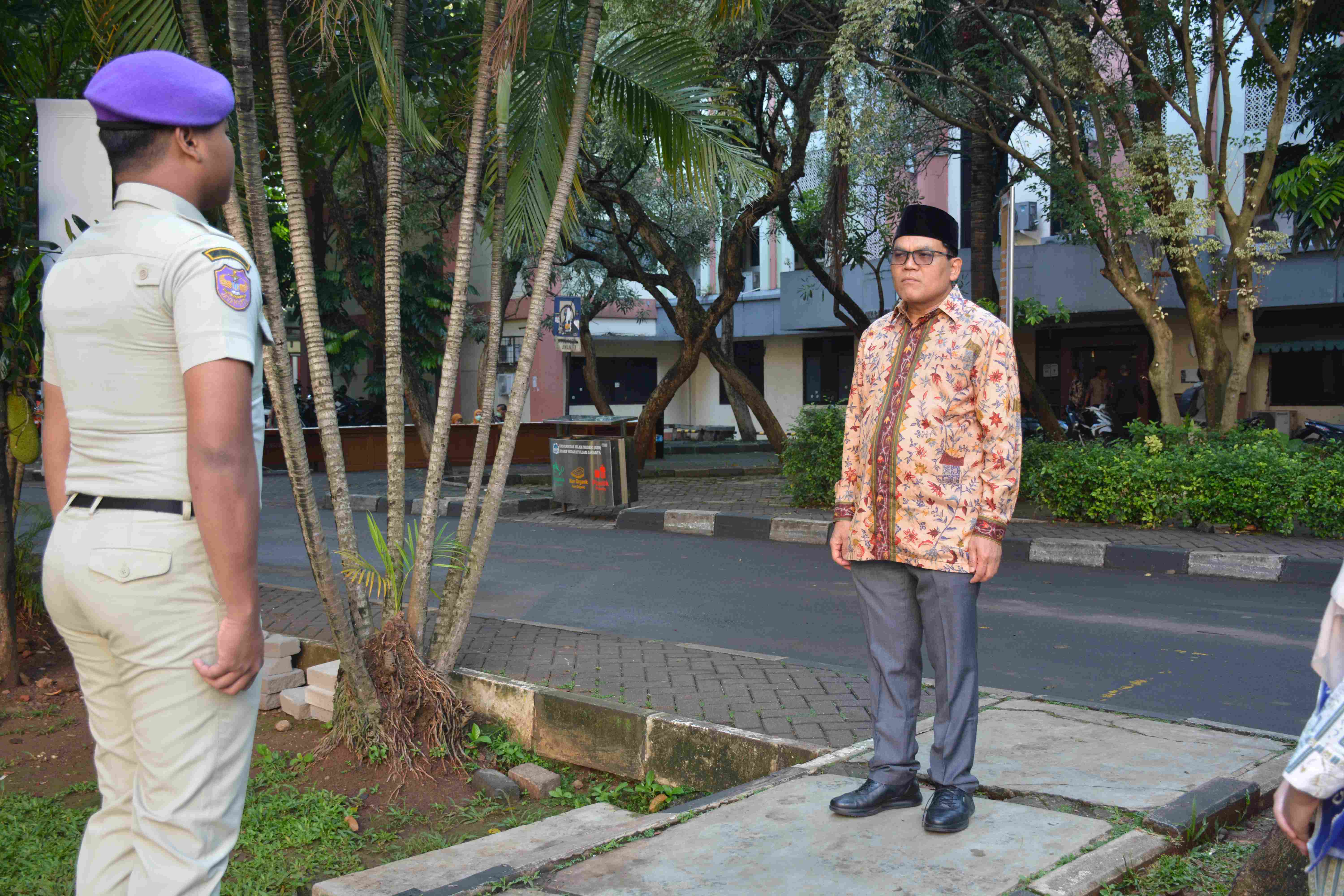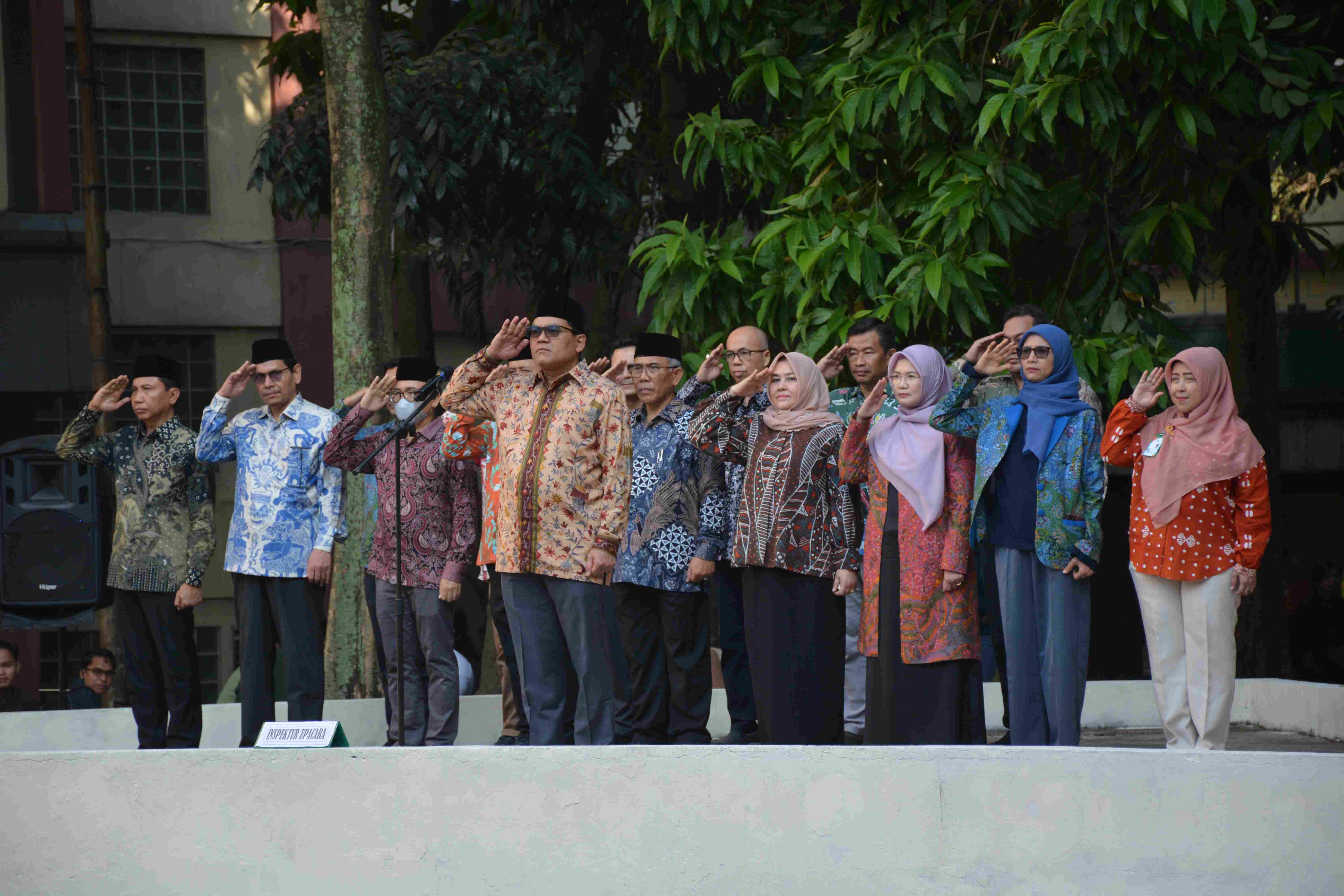 Upacara peringatan Hari Kesaktian Pancasila tahun ini dilaksanakan dalam rangka mengingatkan kembali arti penting persatuan dan keteguhan bangsa Indonesia dalam menghadapi berbagai ancaman. Rangkaian upacara dimulai dengan pengibaran bendera merah putih, mengheningkan cipta, pembacaan teks Pancasila, pembacaan teks UUD 1945, serta Ikrar Kesaktian Pancasila. Seluruh prosesi dijalankan dengan penuh penghormatan, mengingatkan kembali arti penting persatuan dan keteguhan bangsa Indonesia dalam menghadapi berbagai ancaman. Upacara ini dipimpin langsung oleh Rektor UIN Jakarta, Prof. Asep Saepudin Jahar, M.A., Ph.D., yang bertindak sebagai inspektur upacara. (Fotografer: Aqilah Qurratulaini/Teks: Muhamad Arifin Ilham/Pusat Informasi dan Humas UIN Jakarta)