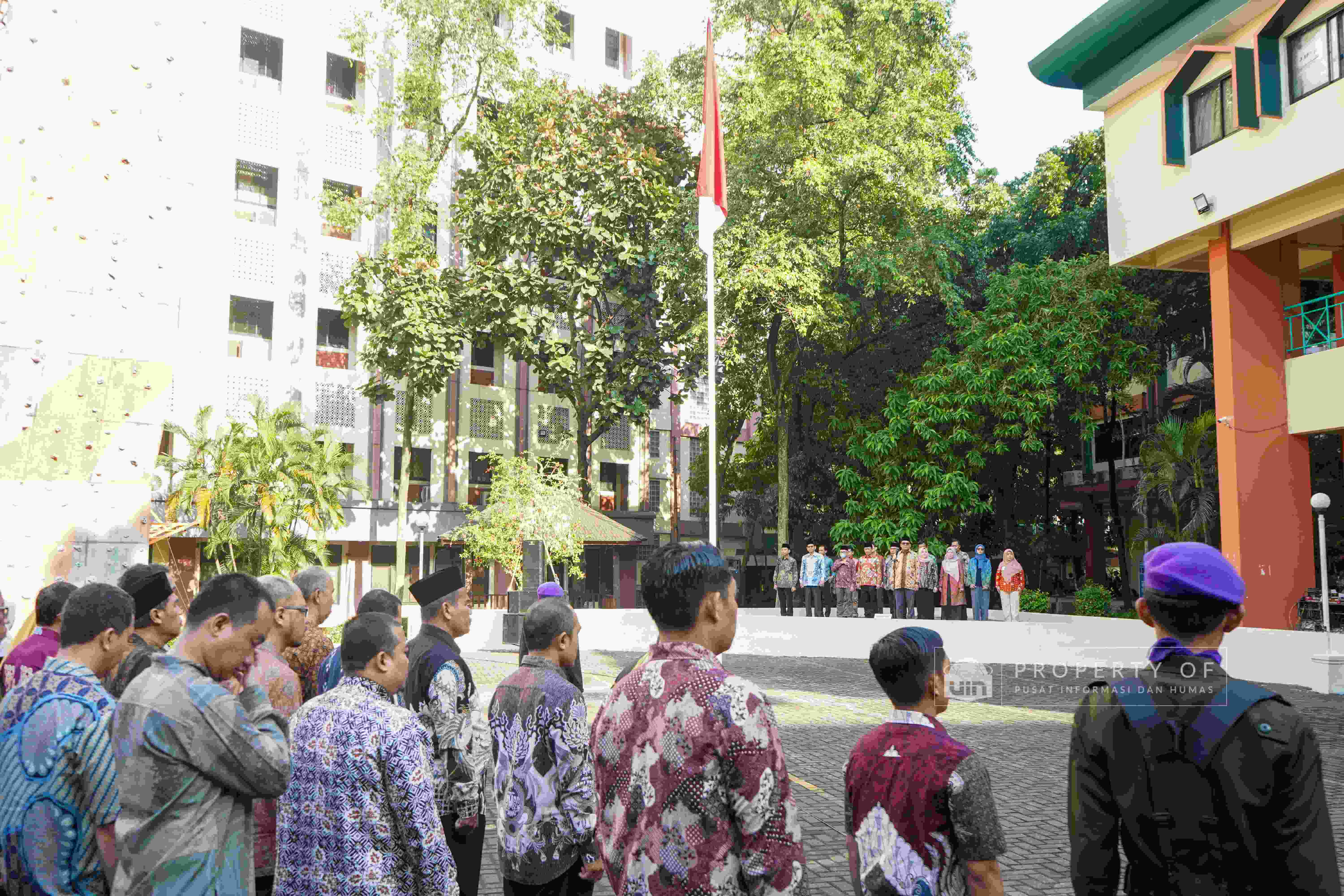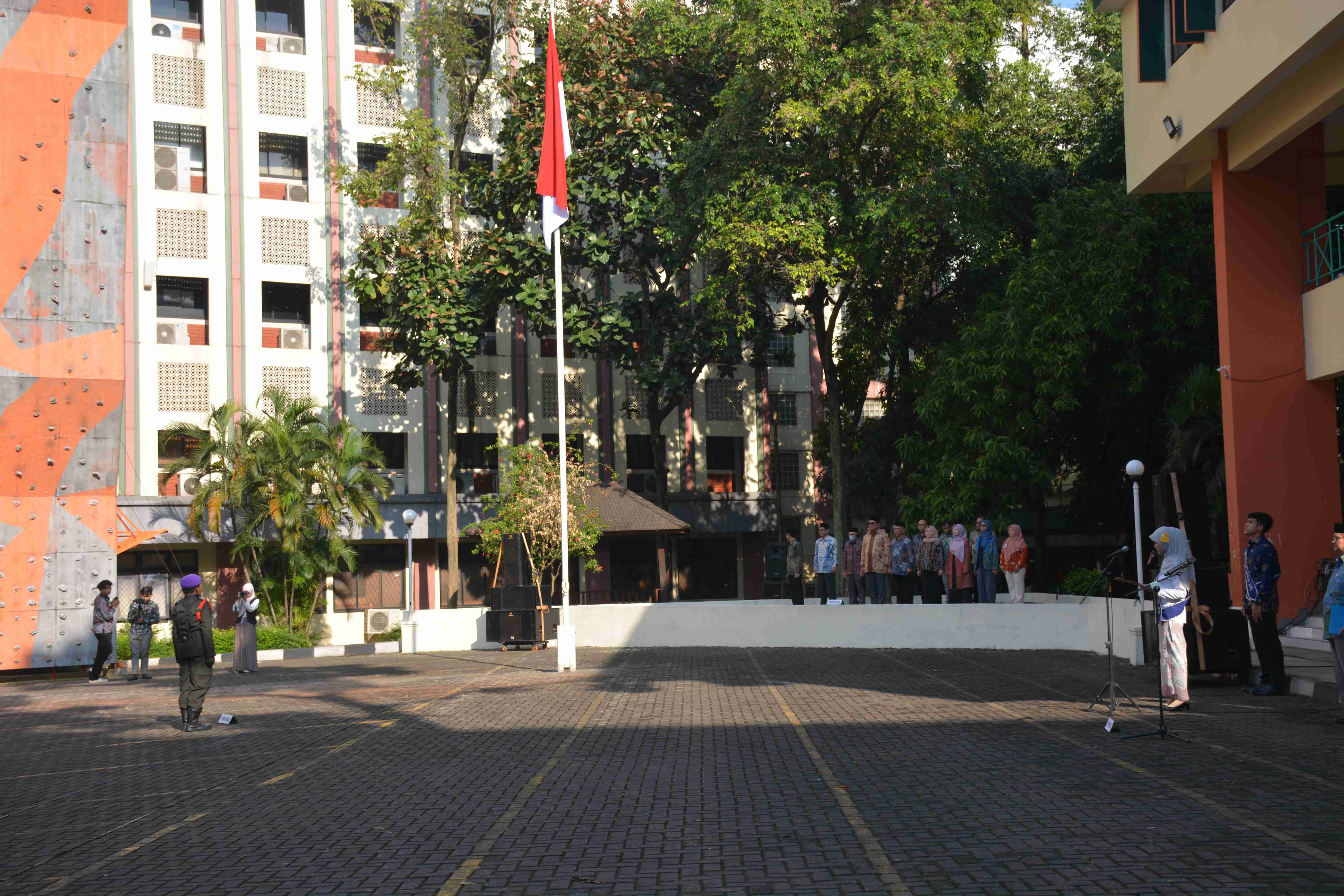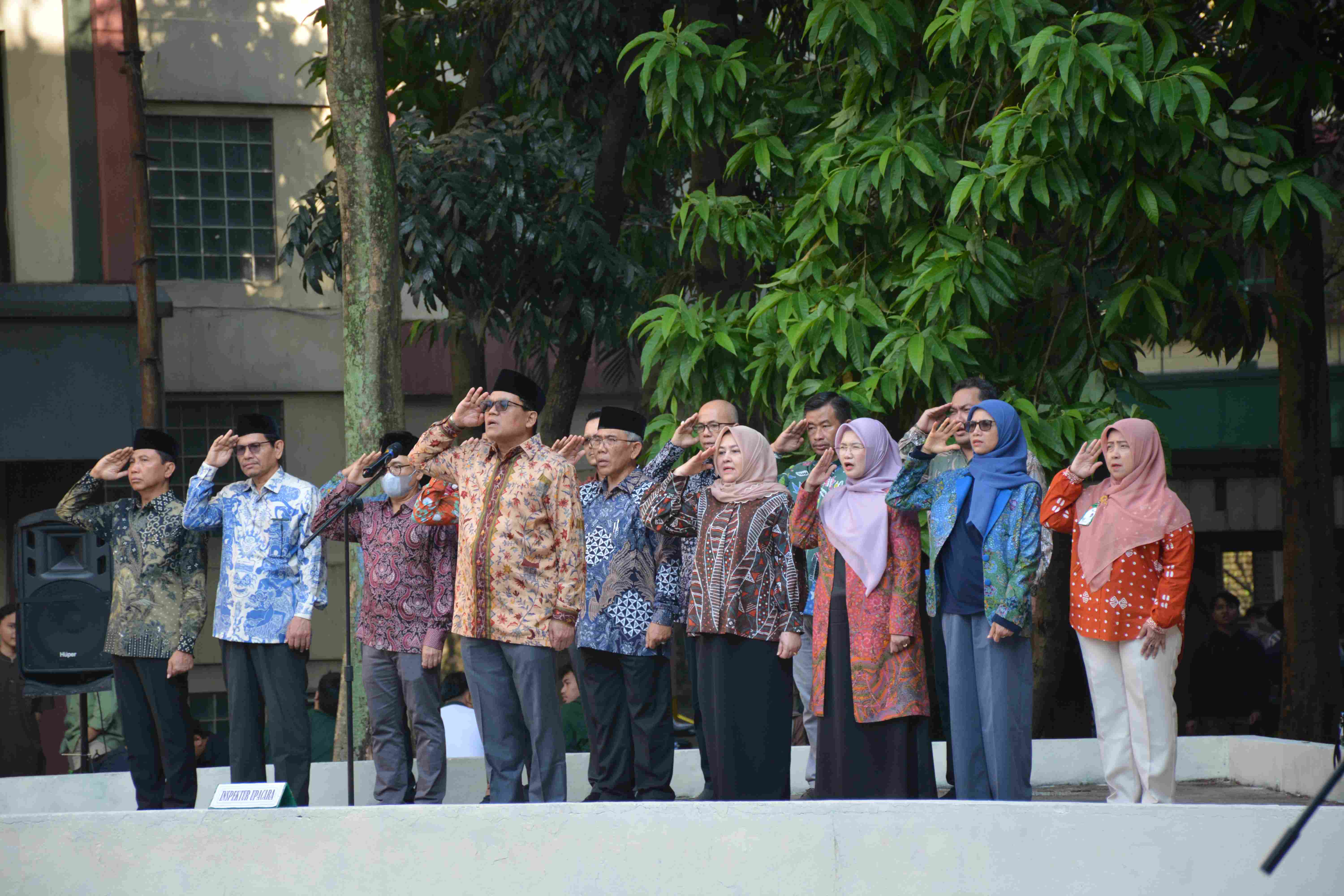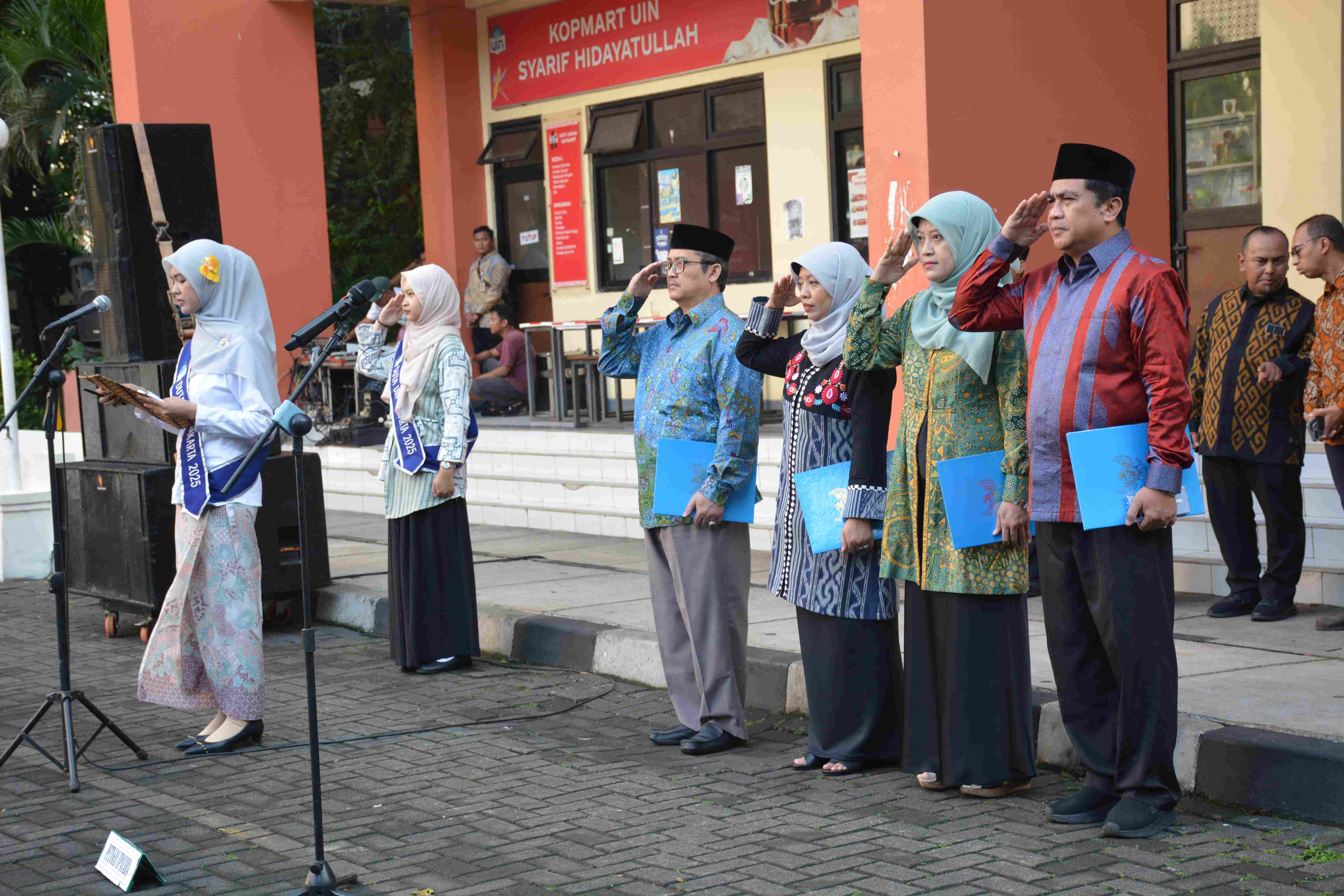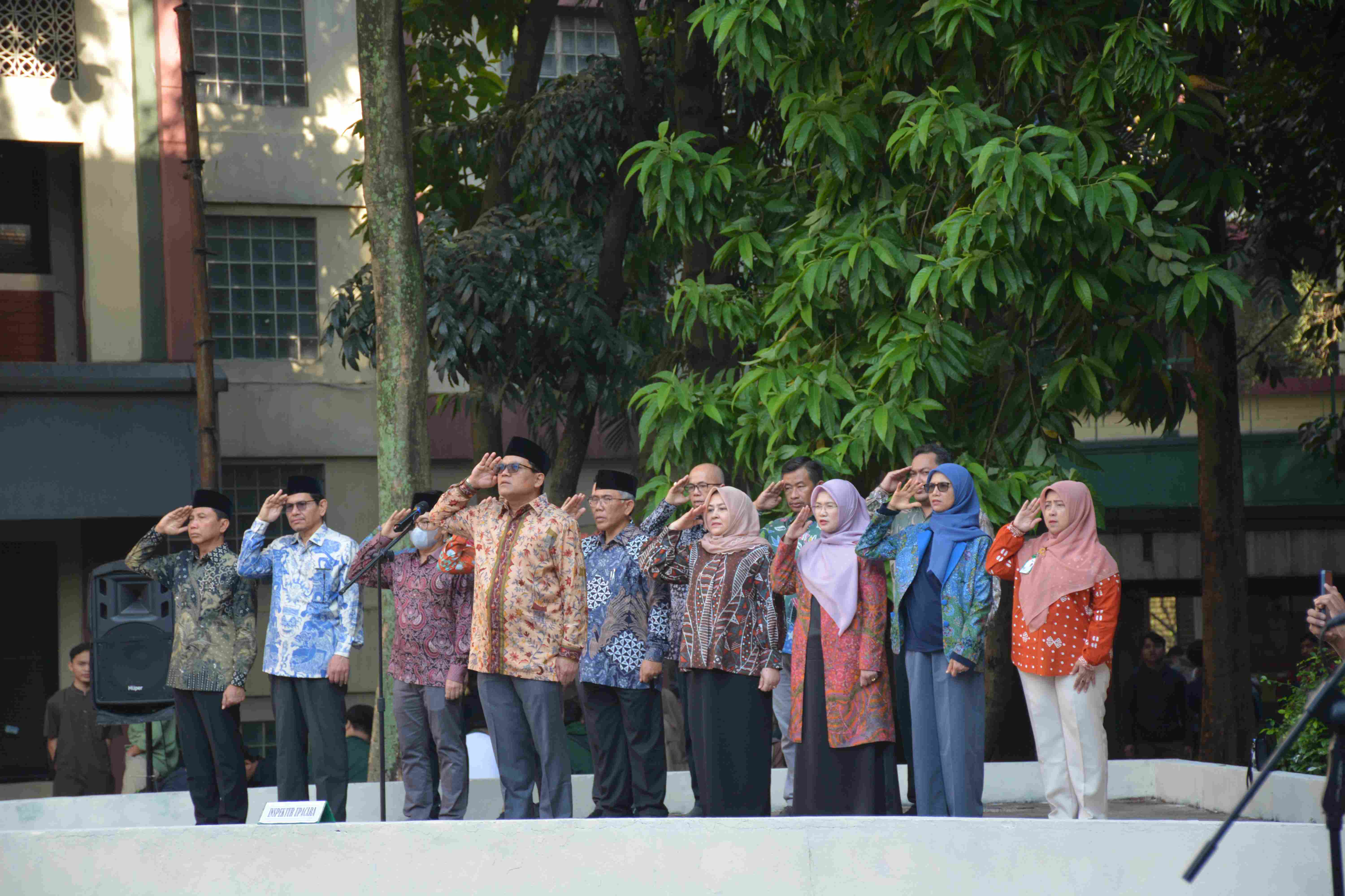 Upacara peringatan Hari Kesaktian Pancasila tahun ini dilaksanakan dalam rangka mengingatkan kembali arti penting persatuan dan keteguhan bangsa Indonesia dalam menghadapi berbagai ancaman. Rangkaian upacara dimulai dengan pengibaran bendera merah putih, mengheningkan cipta, pembacaan teks Pancasila, pembacaan teks UUD 1945, serta Ikrar Kesaktian Pancasila. Seluruh prosesi dijalankan dengan penuh penghormatan, mengingatkan kembali arti penting persatuan dan keteguhan bangsa Indonesia dalam menghadapi berbagai ancaman. Upacara ini dipimpin langsung oleh Rektor UIN Jakarta, Prof. Asep Saepudin Jahar, M.A., Ph.D., yang bertindak sebagai inspektur upacara. (Fotografer: Aqilah Qurratulaini/Teks: Muhamad Arifin Ilham/Pusat Informasi dan Humas UIN Jakarta)