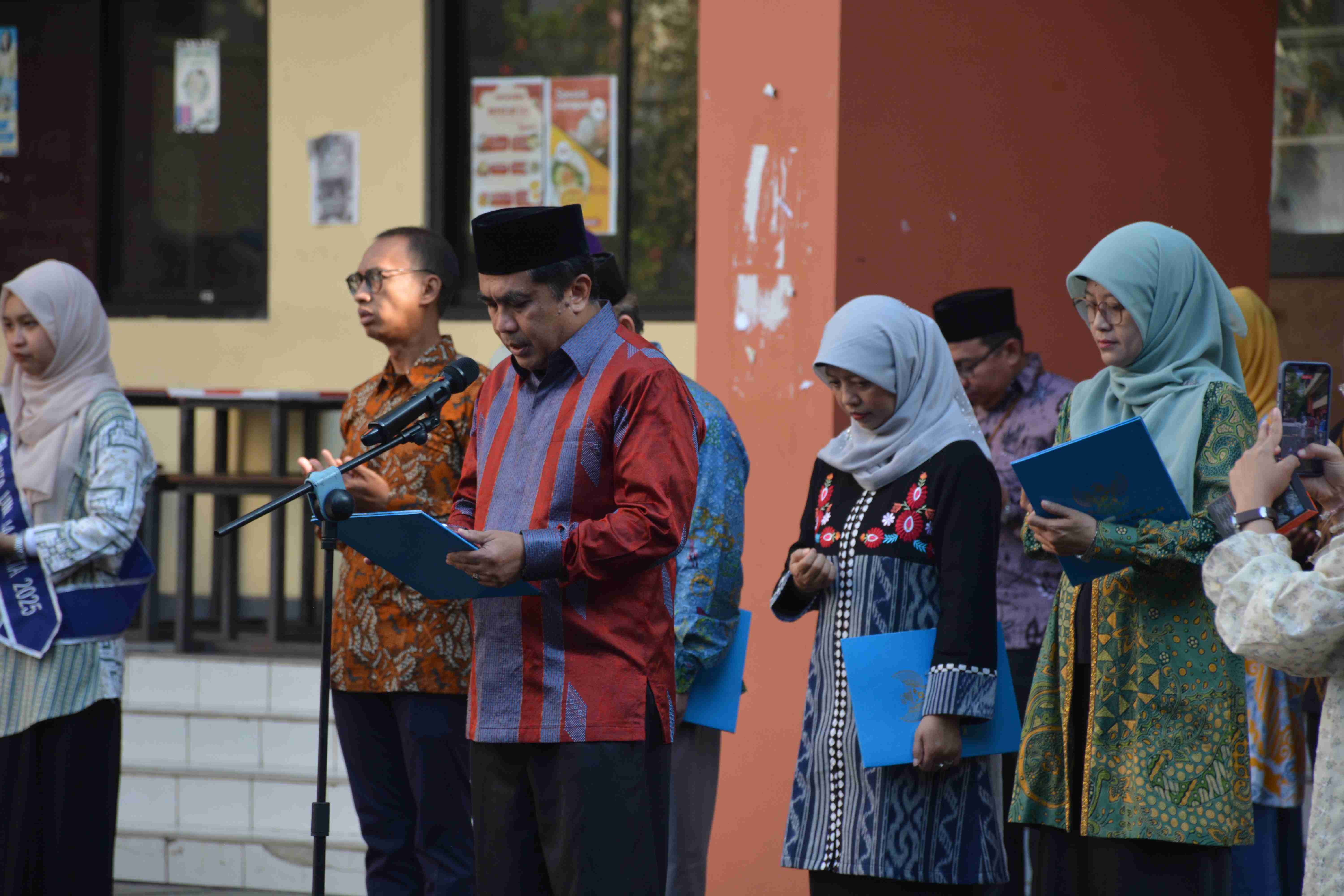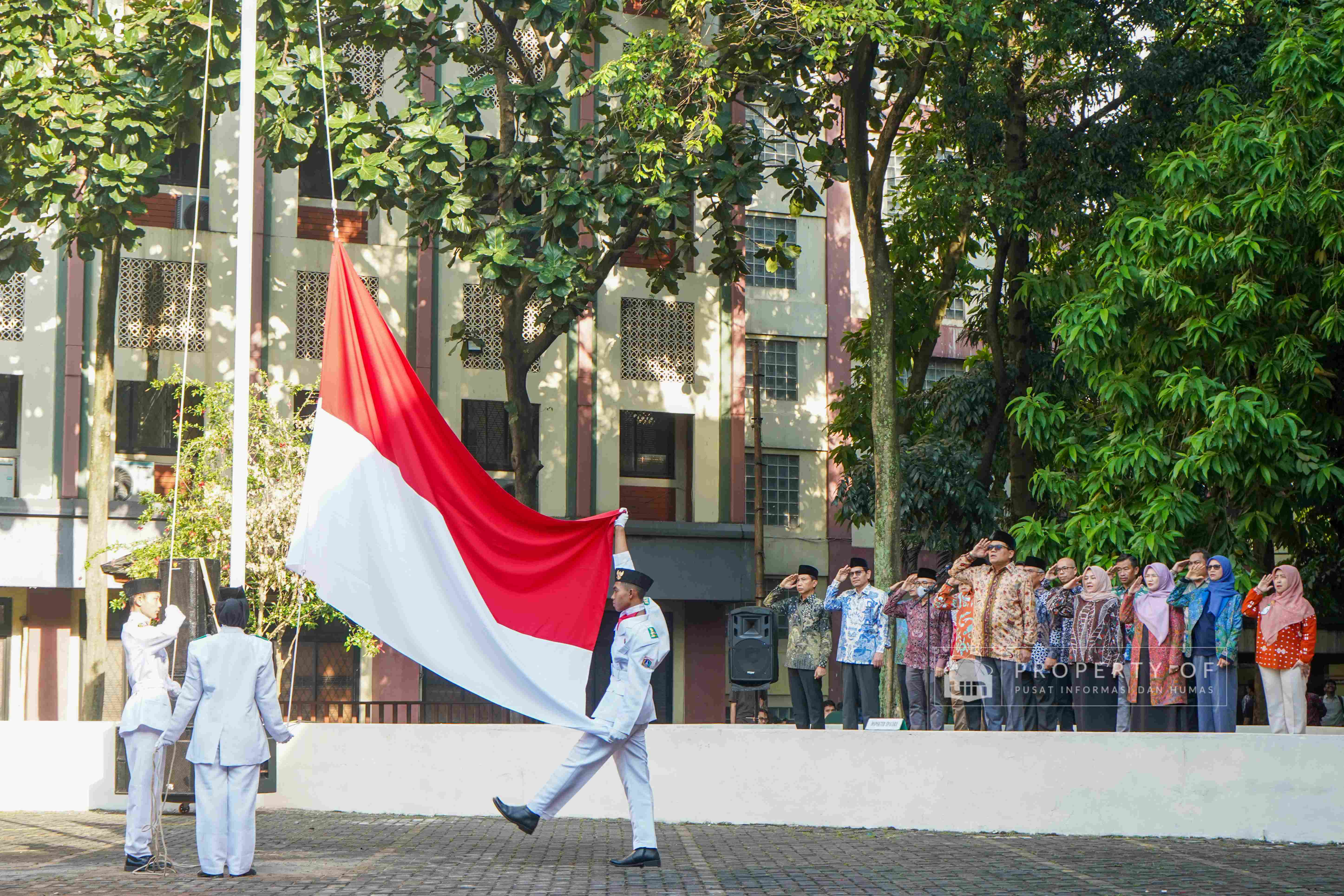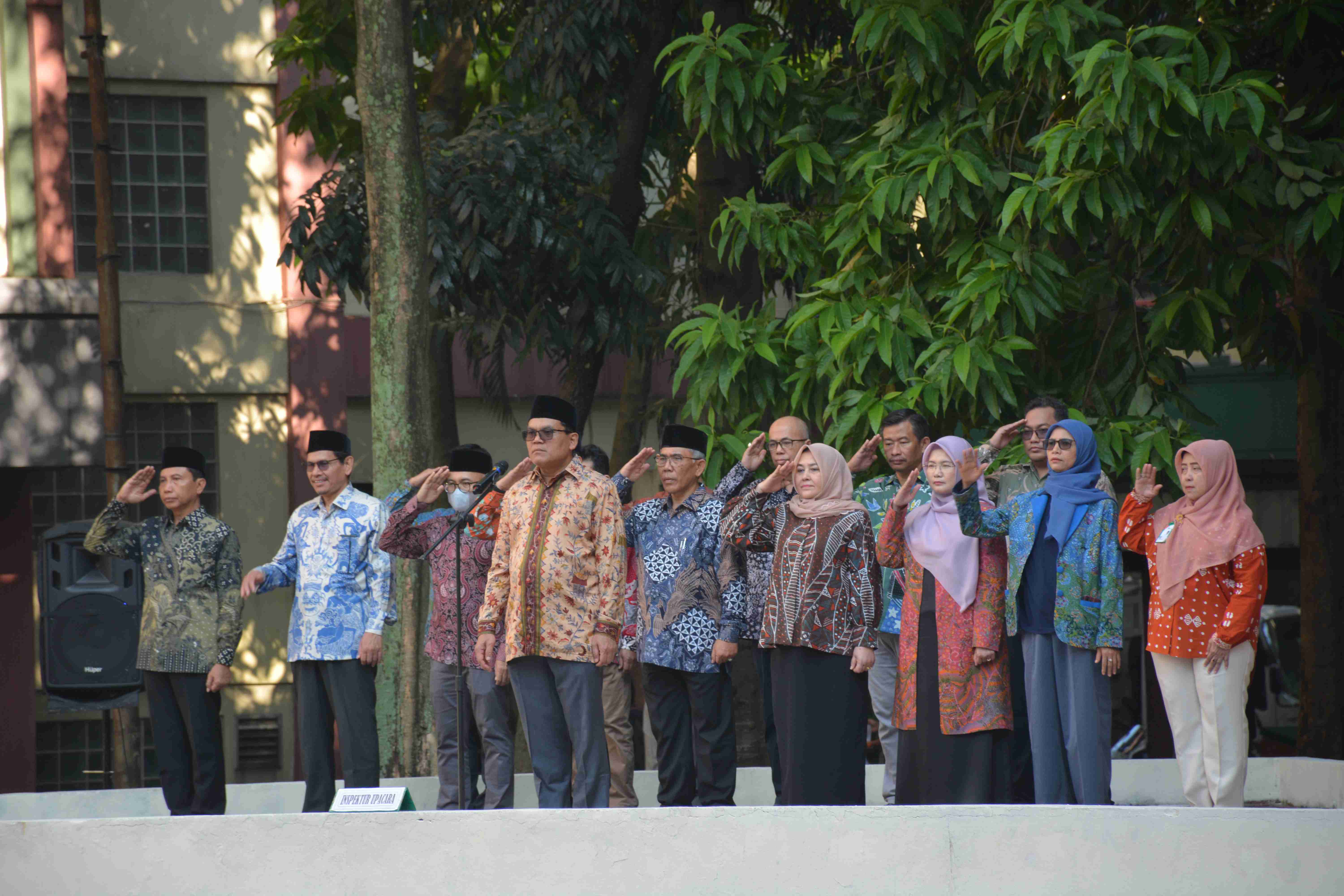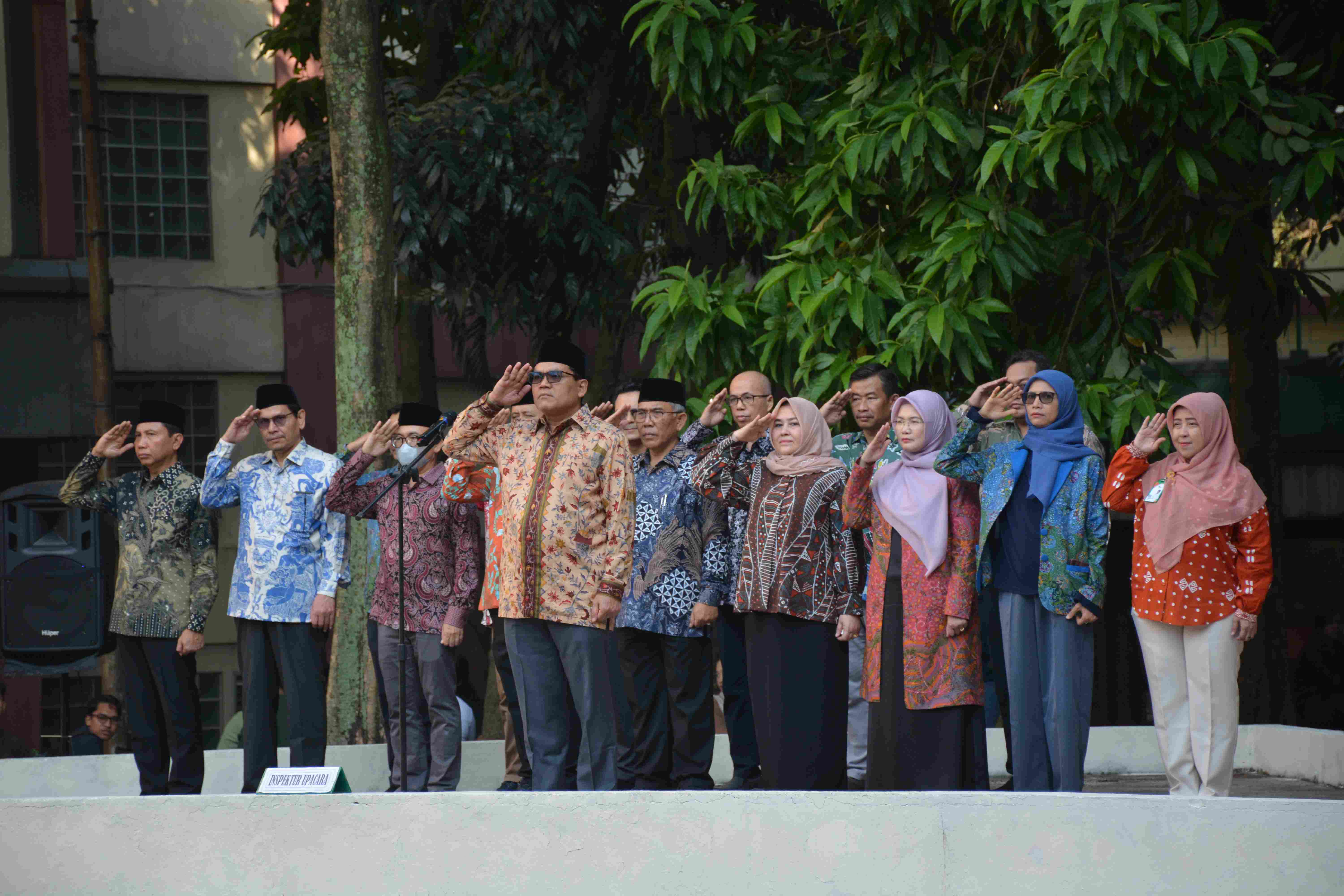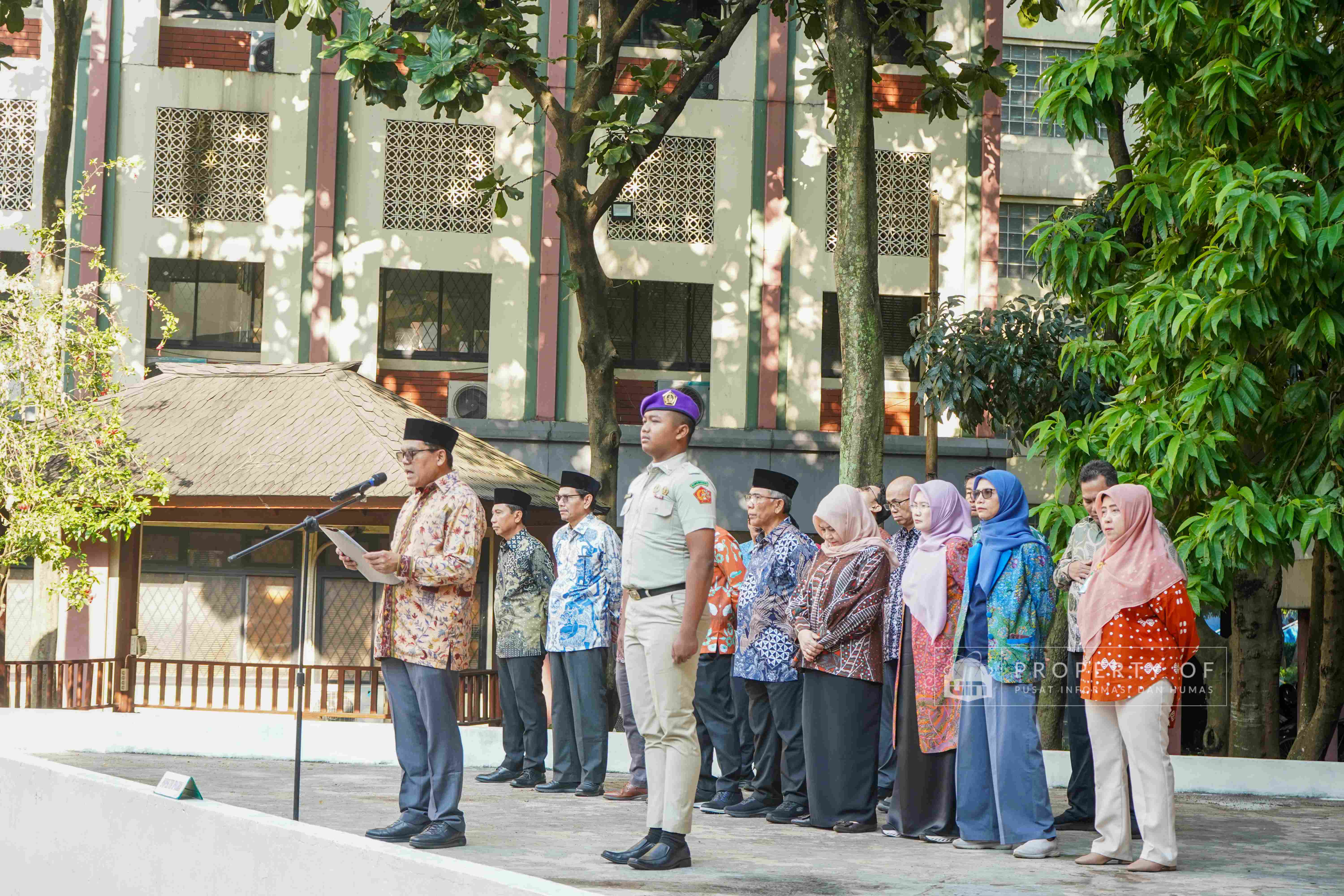 Upacara peringatan Hari Kesaktian Pancasila tahun ini dilaksanakan dalam rangka mengingatkan kembali arti penting persatuan dan keteguhan bangsa Indonesia dalam menghadapi berbagai ancaman. Rangkaian upacara dimulai dengan pengibaran bendera merah putih, mengheningkan cipta, pembacaan teks Pancasila, pembacaan teks UUD 1945, serta Ikrar Kesaktian Pancasila. Seluruh prosesi dijalankan dengan penuh penghormatan, mengingatkan kembali arti penting persatuan dan keteguhan bangsa Indonesia dalam menghadapi berbagai ancaman. Upacara ini dipimpin langsung oleh Rektor UIN Jakarta, Prof. Asep Saepudin Jahar, M.A., Ph.D., yang bertindak sebagai inspektur upacara. (Fotografer: Aqilah Qurratulaini/Teks: Muhamad Arifin Ilham/Pusat Informasi dan Humas UIN Jakarta)