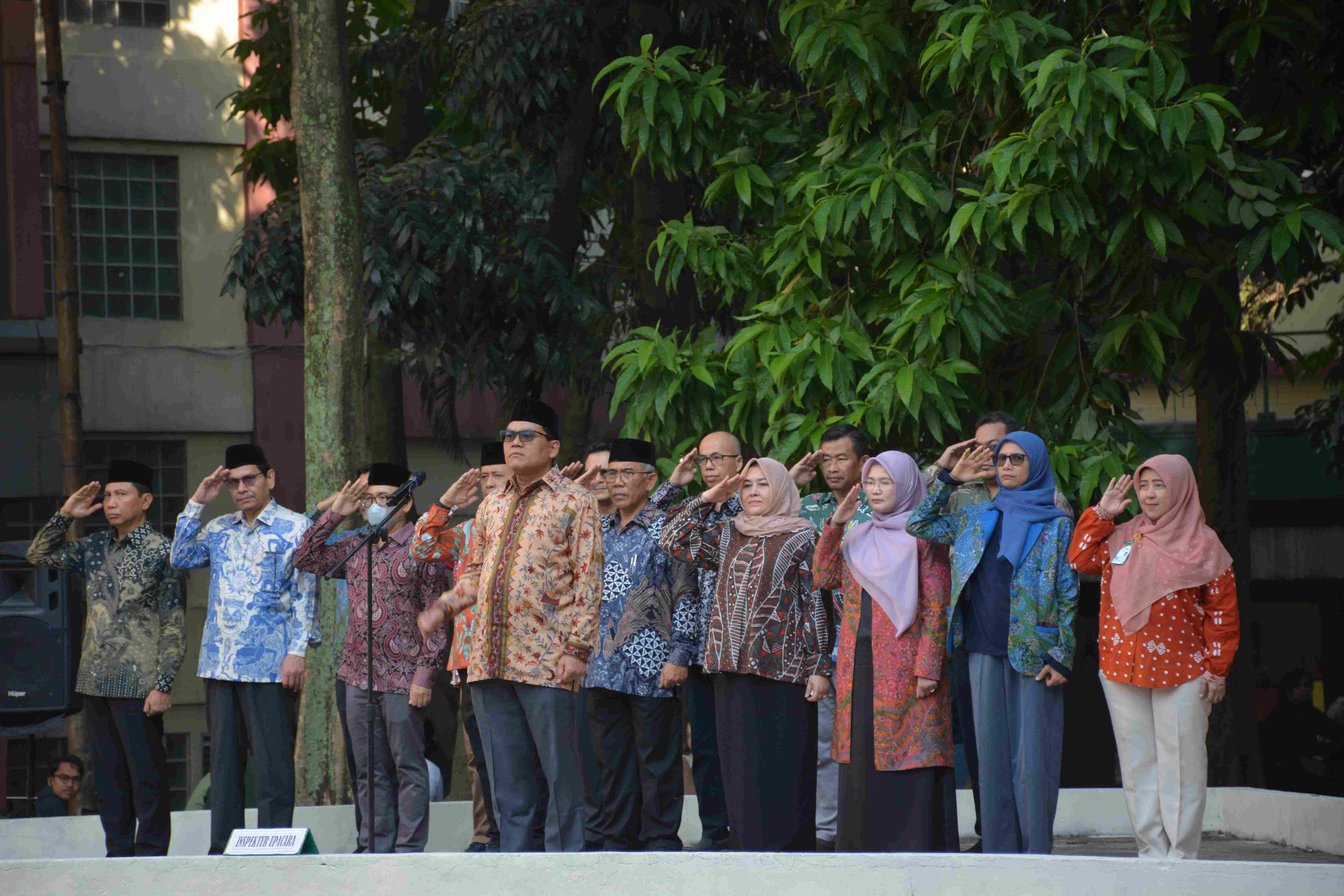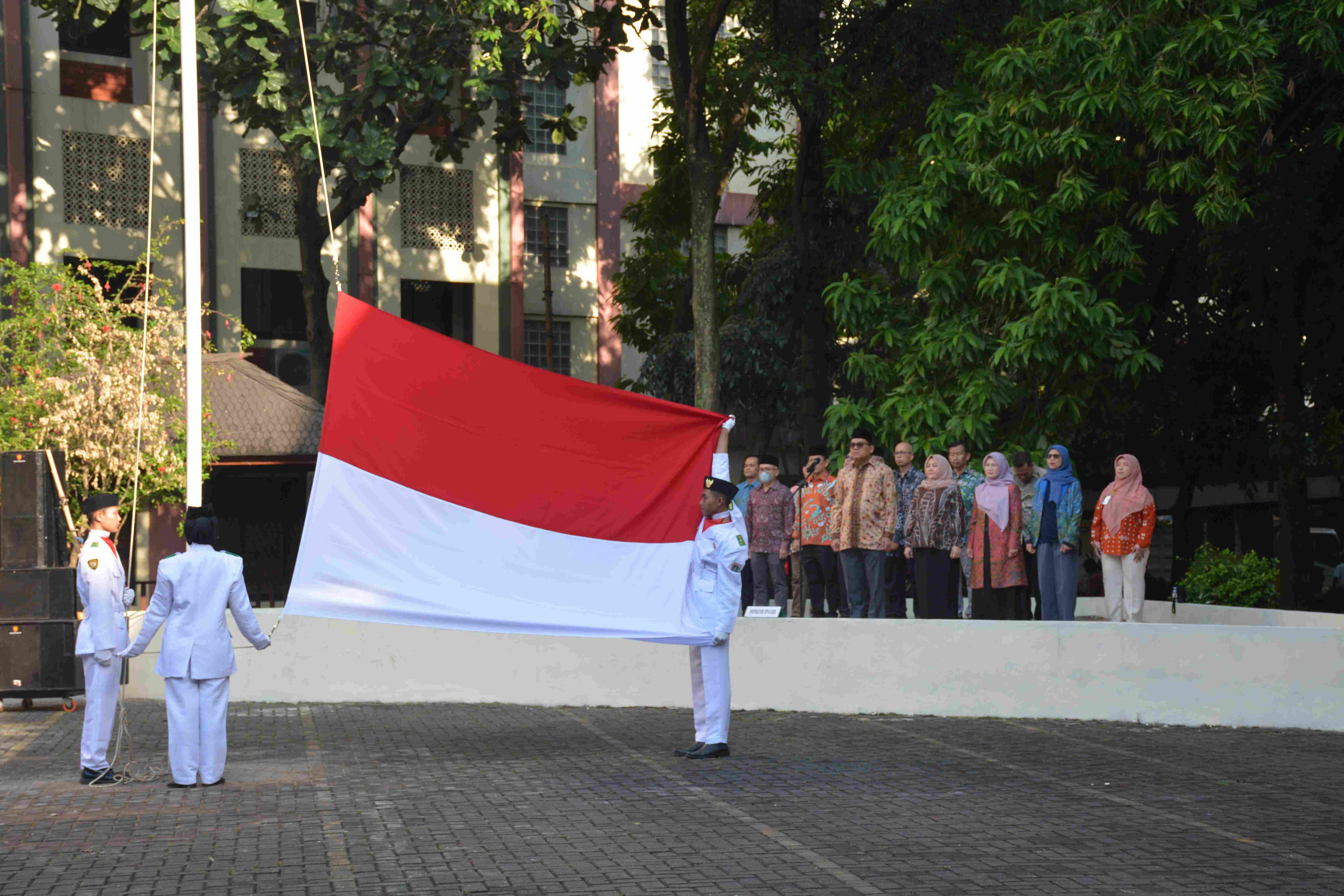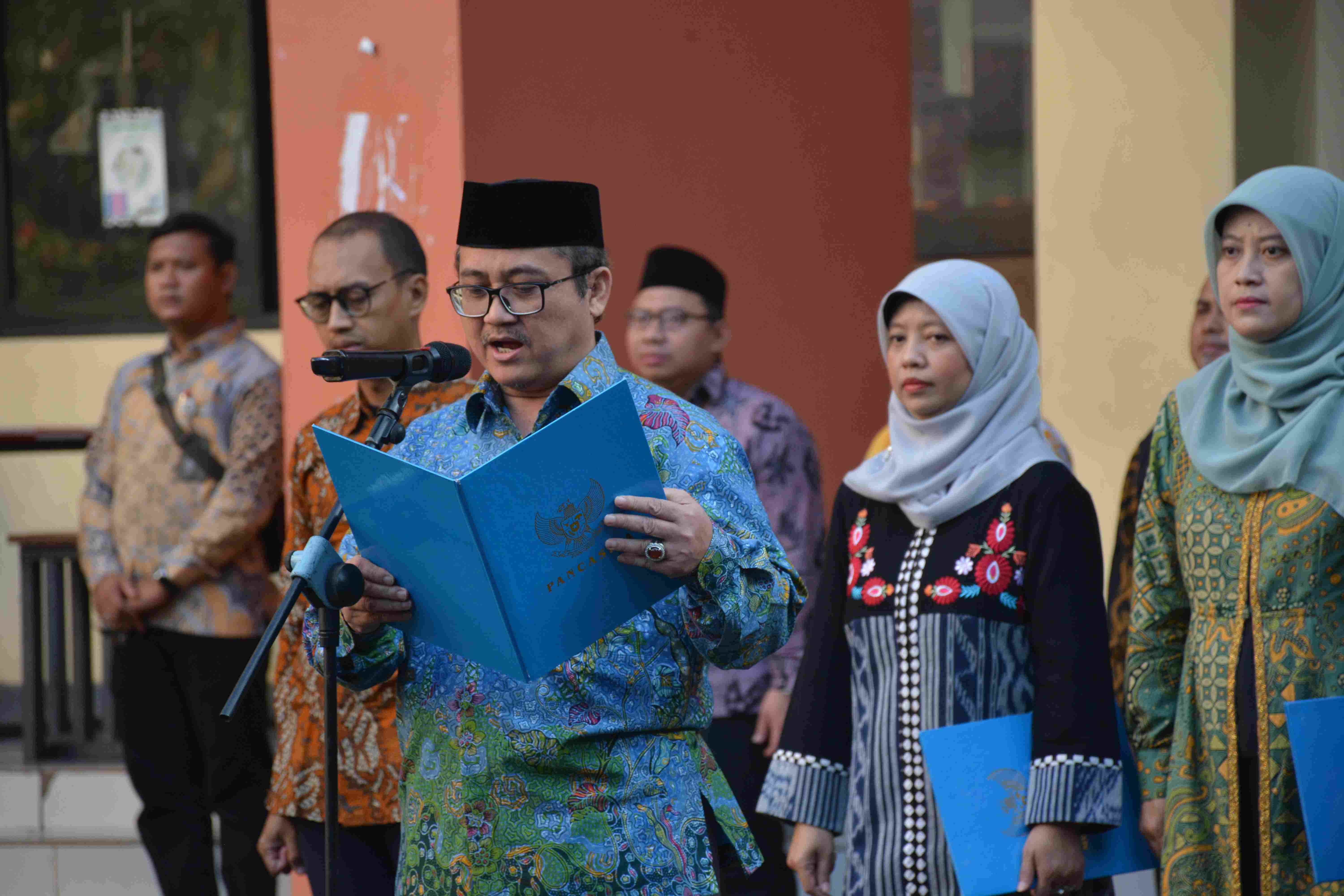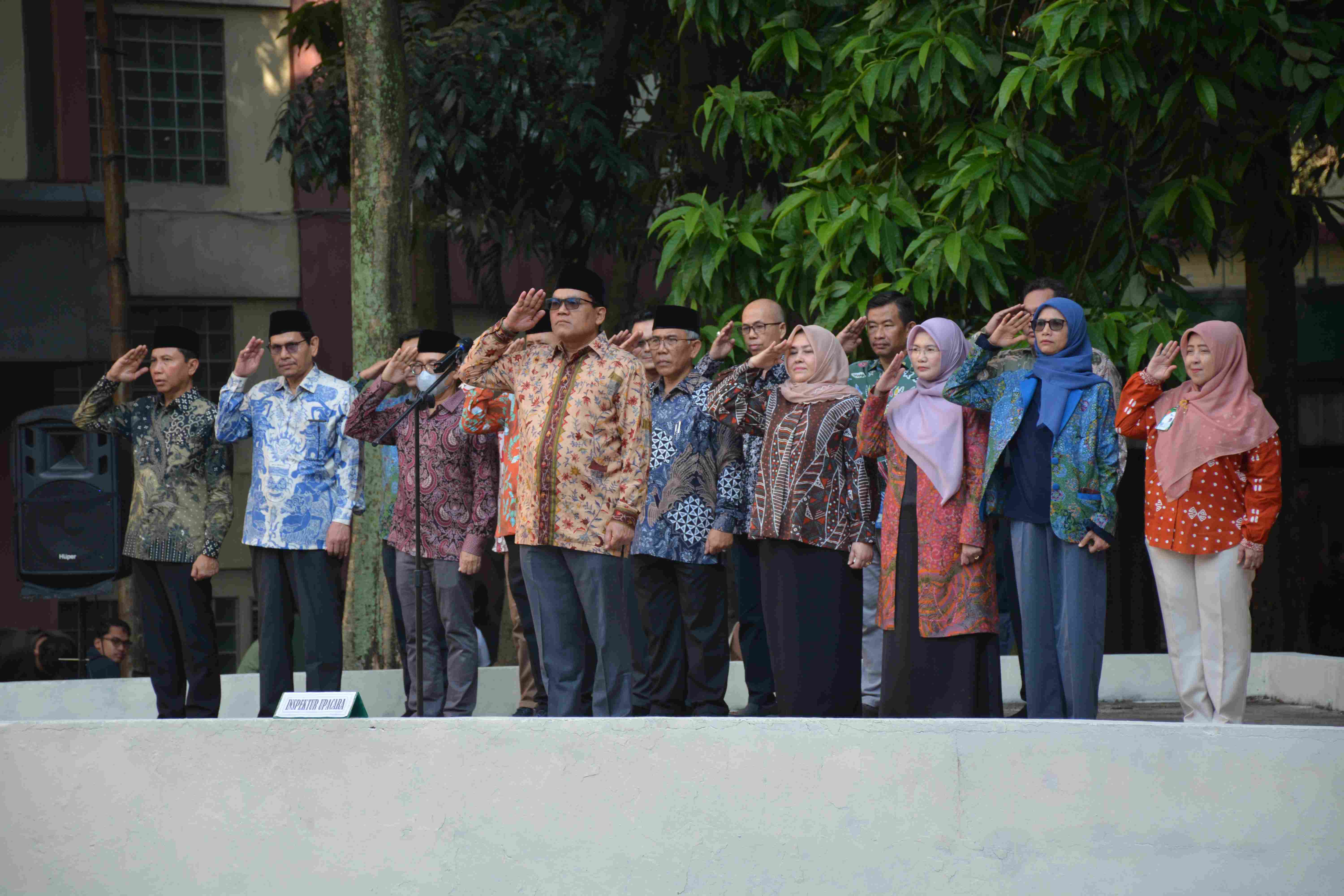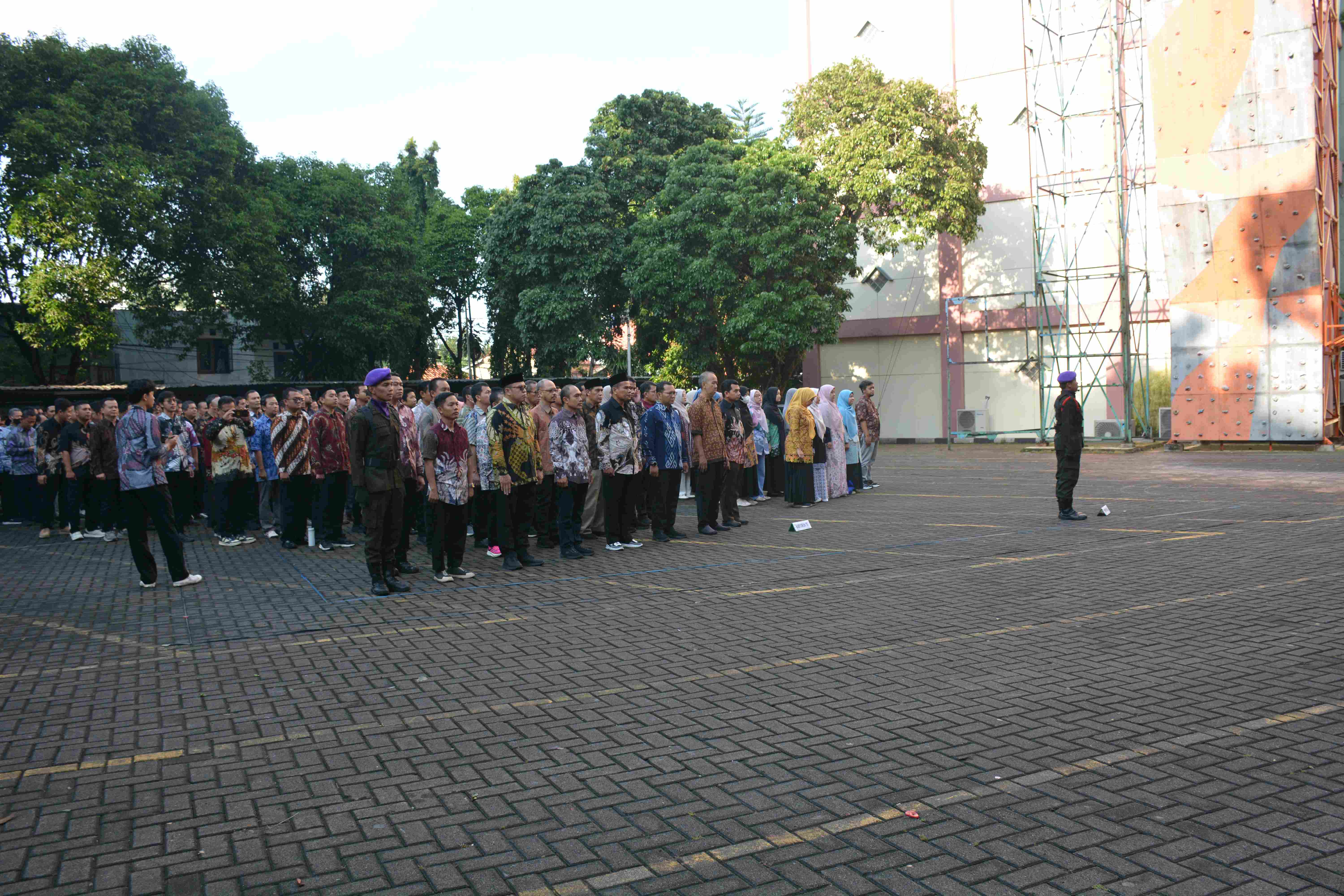 Upacara peringatan Hari Kesaktian Pancasila tahun ini dilaksanakan dalam rangka mengingatkan kembali arti penting persatuan dan keteguhan bangsa Indonesia dalam menghadapi berbagai ancaman. Rangkaian upacara dimulai dengan pengibaran bendera merah putih, mengheningkan cipta, pembacaan teks Pancasila, pembacaan teks UUD 1945, serta Ikrar Kesaktian Pancasila. Seluruh prosesi dijalankan dengan penuh penghormatan, mengingatkan kembali arti penting persatuan dan keteguhan bangsa Indonesia dalam menghadapi berbagai ancaman. Upacara ini dipimpin langsung oleh Rektor UIN Jakarta, Prof. Asep Saepudin Jahar, M.A., Ph.D., yang bertindak sebagai inspektur upacara. (Fotografer: Aqilah Qurratulaini/Teks: Muhamad Arifin Ilham/Pusat Informasi dan Humas UIN Jakarta)