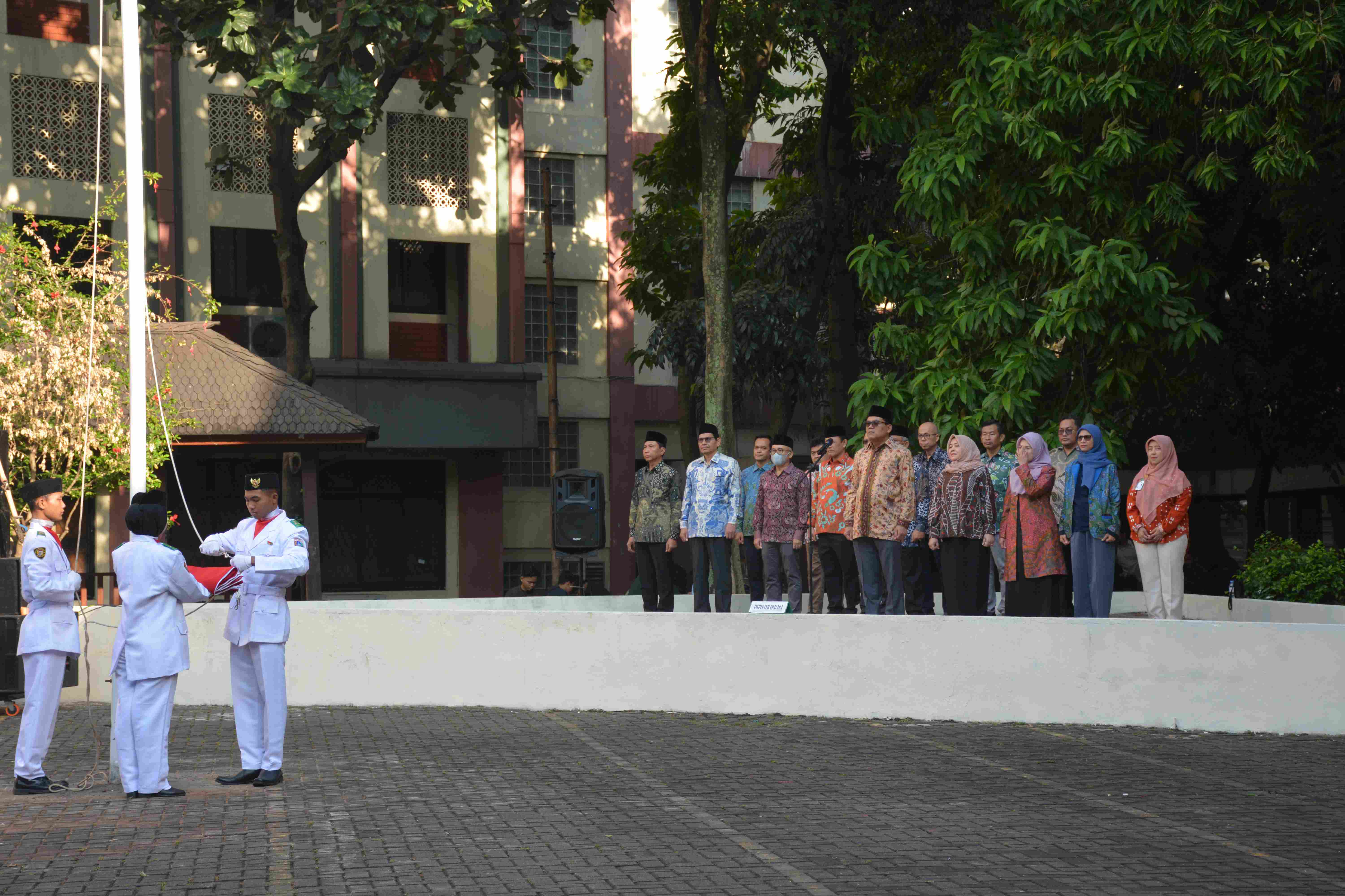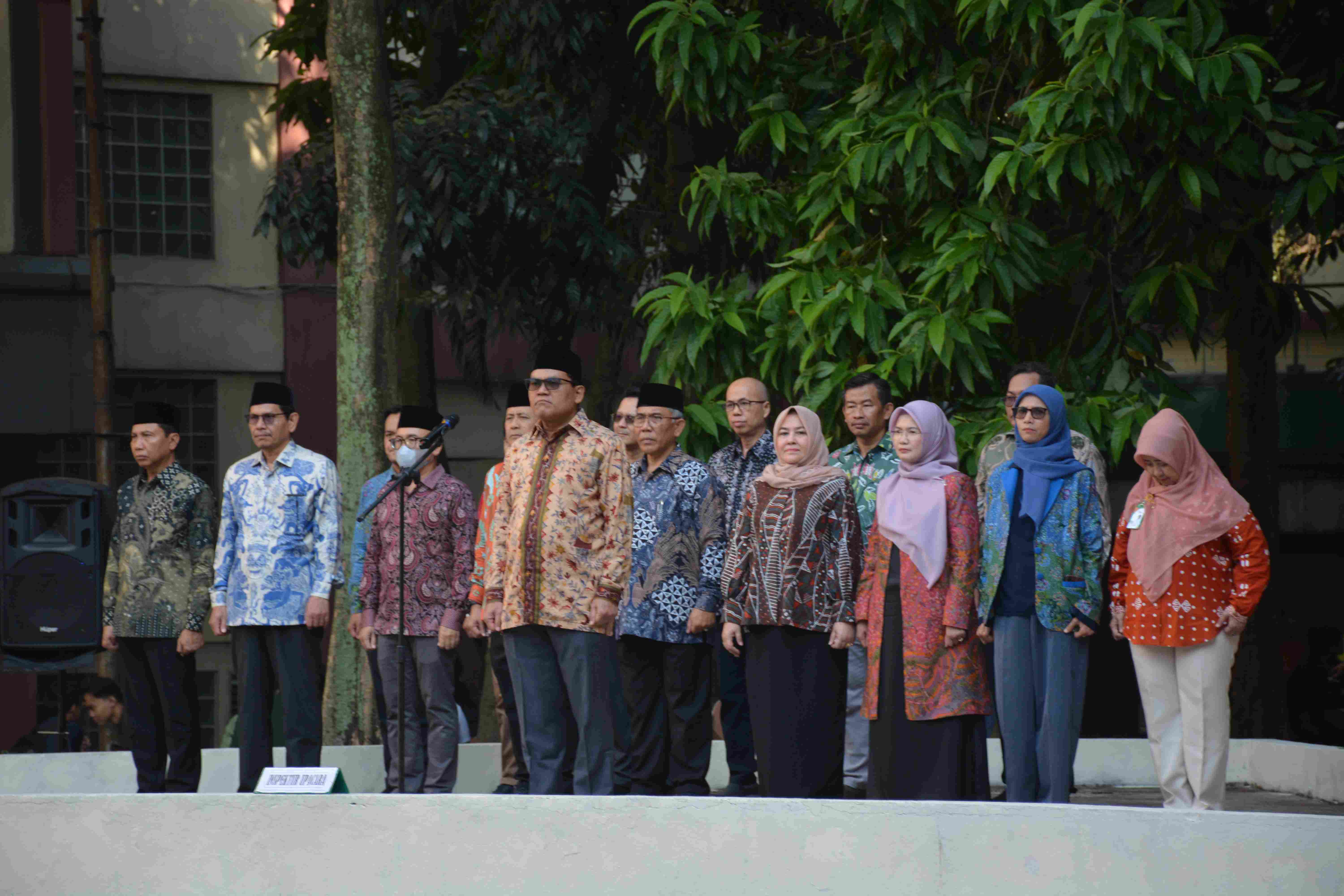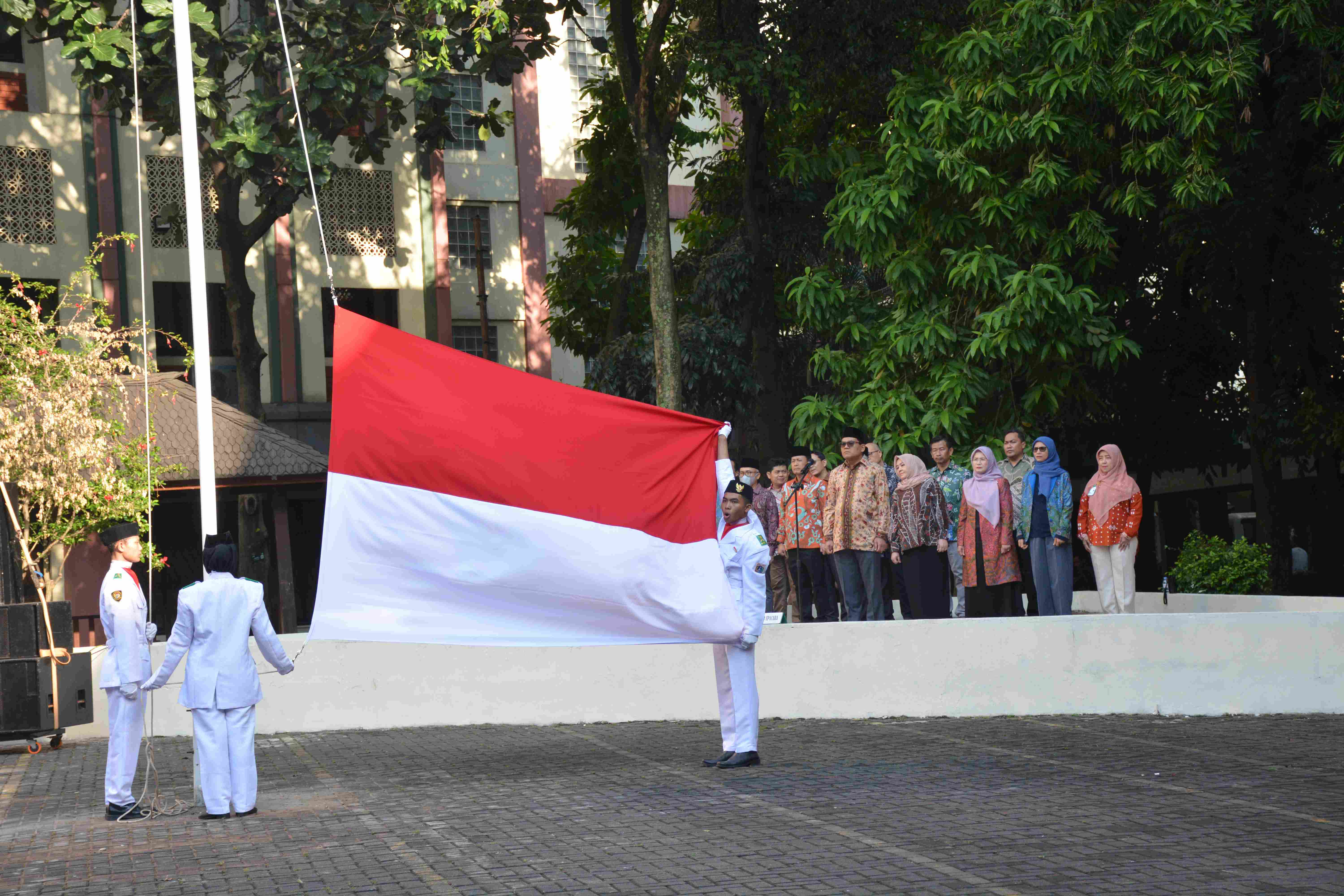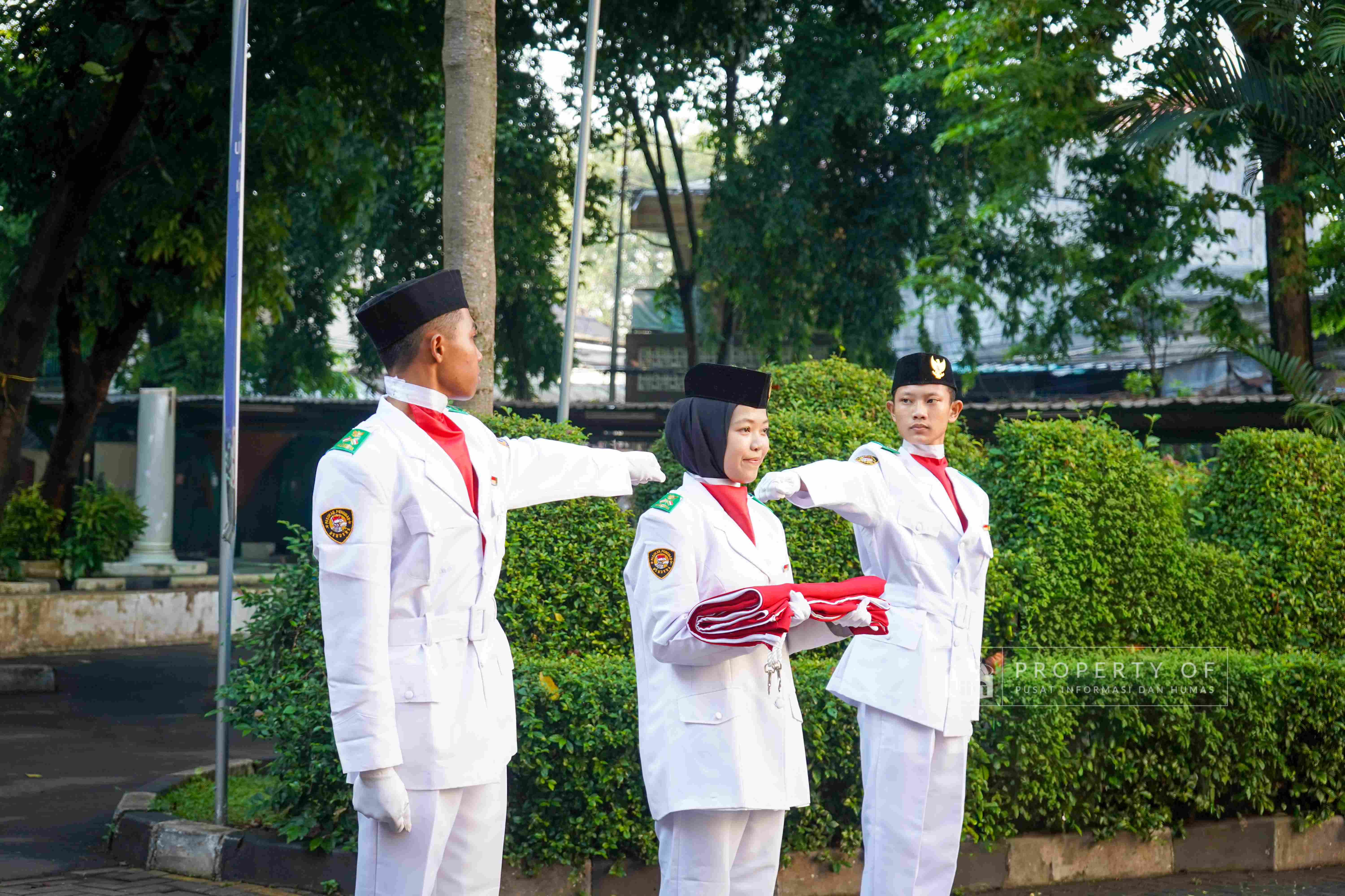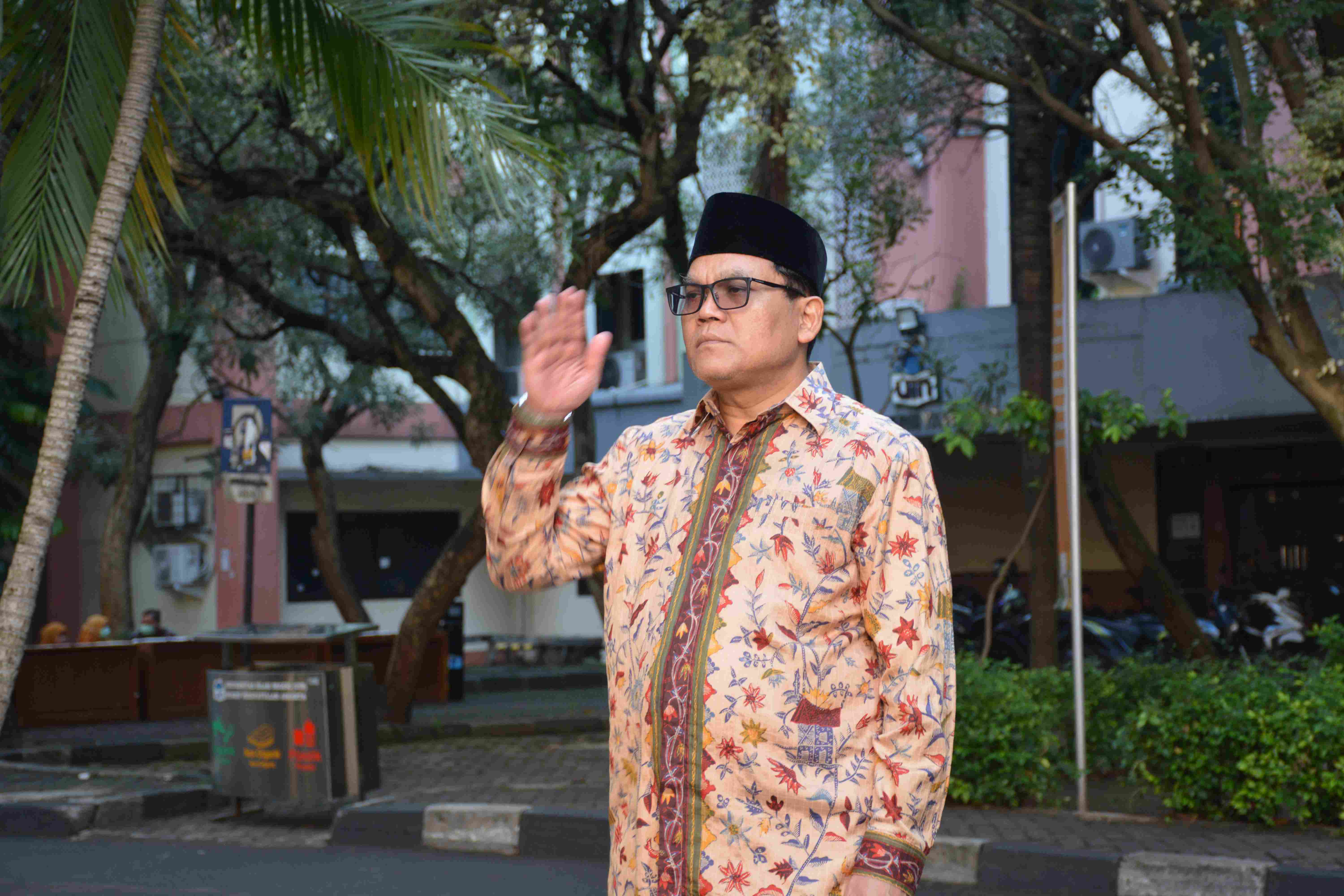 Upacara peringatan Hari Kesaktian Pancasila tahun ini dilaksanakan dalam rangka mengingatkan kembali arti penting persatuan dan keteguhan bangsa Indonesia dalam menghadapi berbagai ancaman. Rangkaian upacara dimulai dengan pengibaran bendera merah putih, mengheningkan cipta, pembacaan teks Pancasila, pembacaan teks UUD 1945, serta Ikrar Kesaktian Pancasila. Seluruh prosesi dijalankan dengan penuh penghormatan, mengingatkan kembali arti penting persatuan dan keteguhan bangsa Indonesia dalam menghadapi berbagai ancaman. Upacara ini dipimpin langsung oleh Rektor UIN Jakarta, Prof. Asep Saepudin Jahar, M.A., Ph.D., yang bertindak sebagai inspektur upacara. (Fotografer: Aqilah Qurratulaini/Teks: Muhamad Arifin Ilham/Pusat Informasi dan Humas UIN Jakarta)