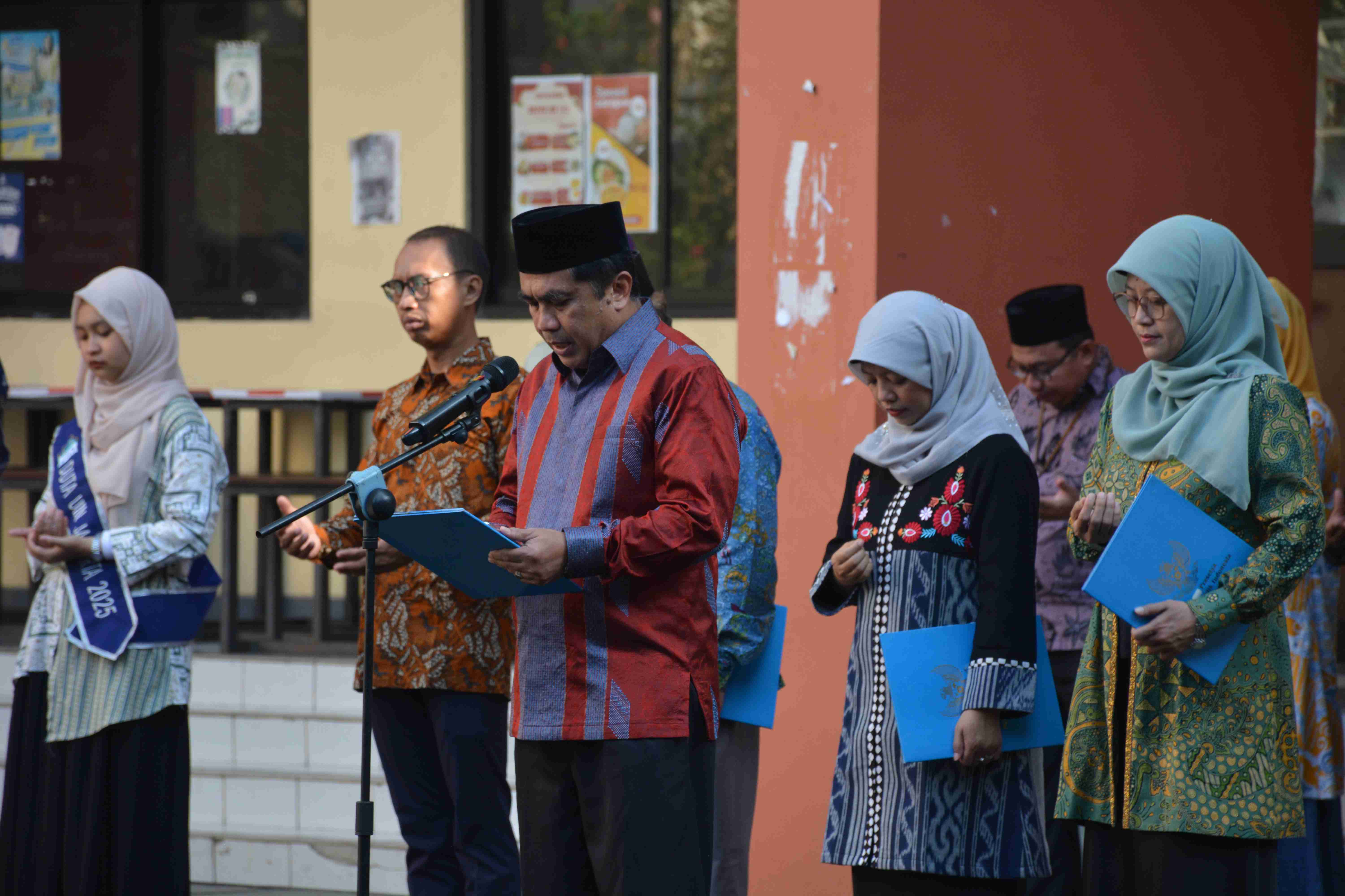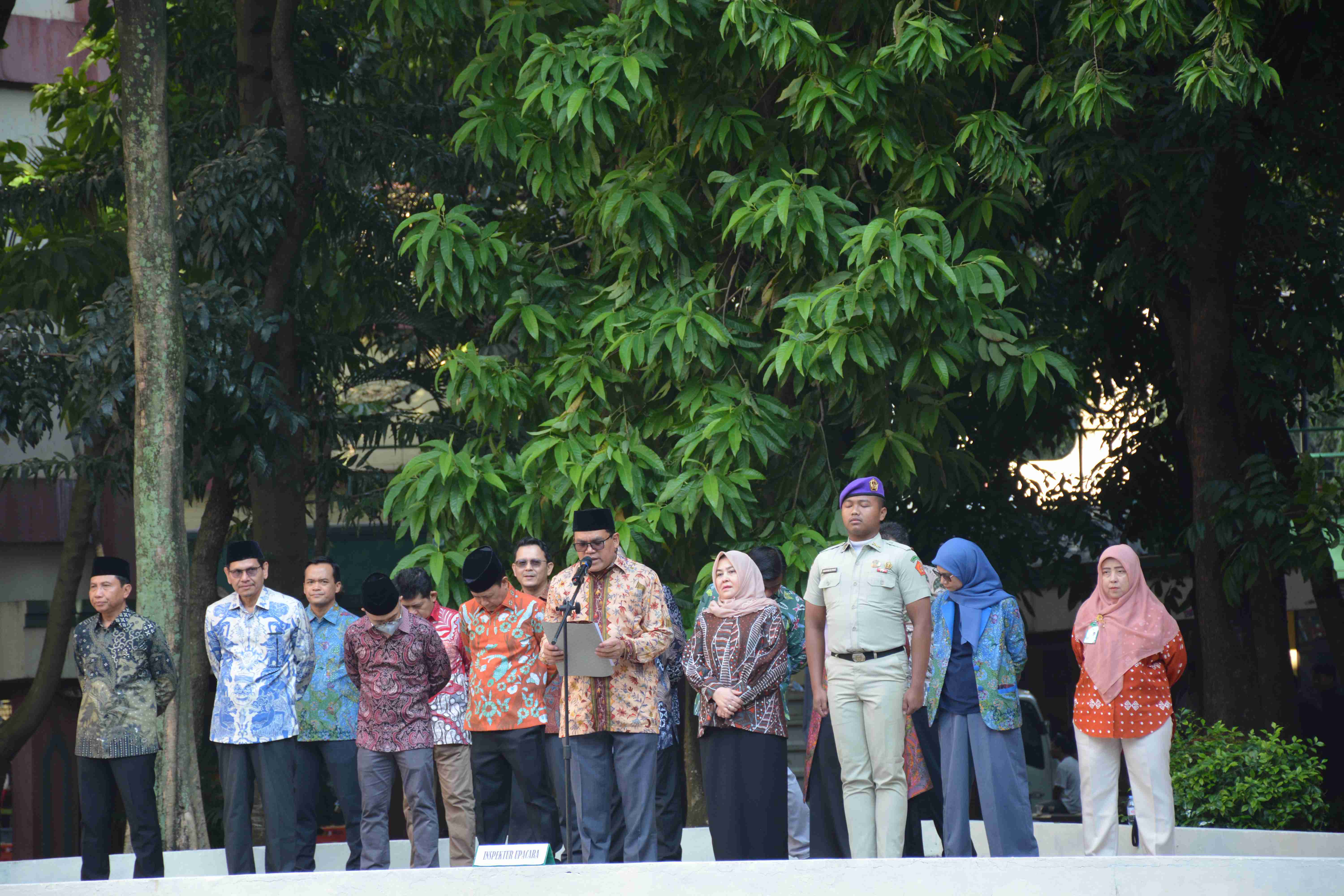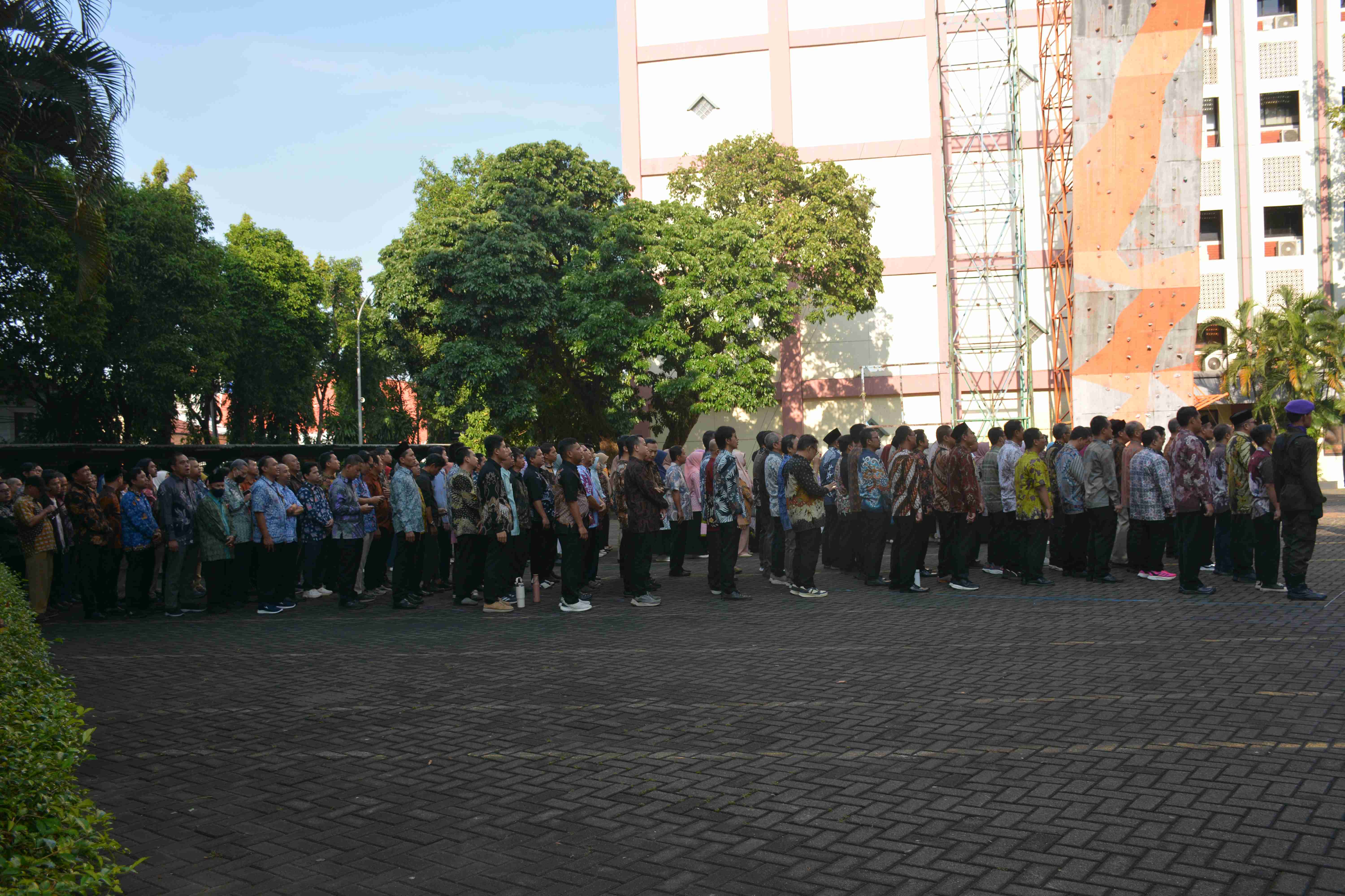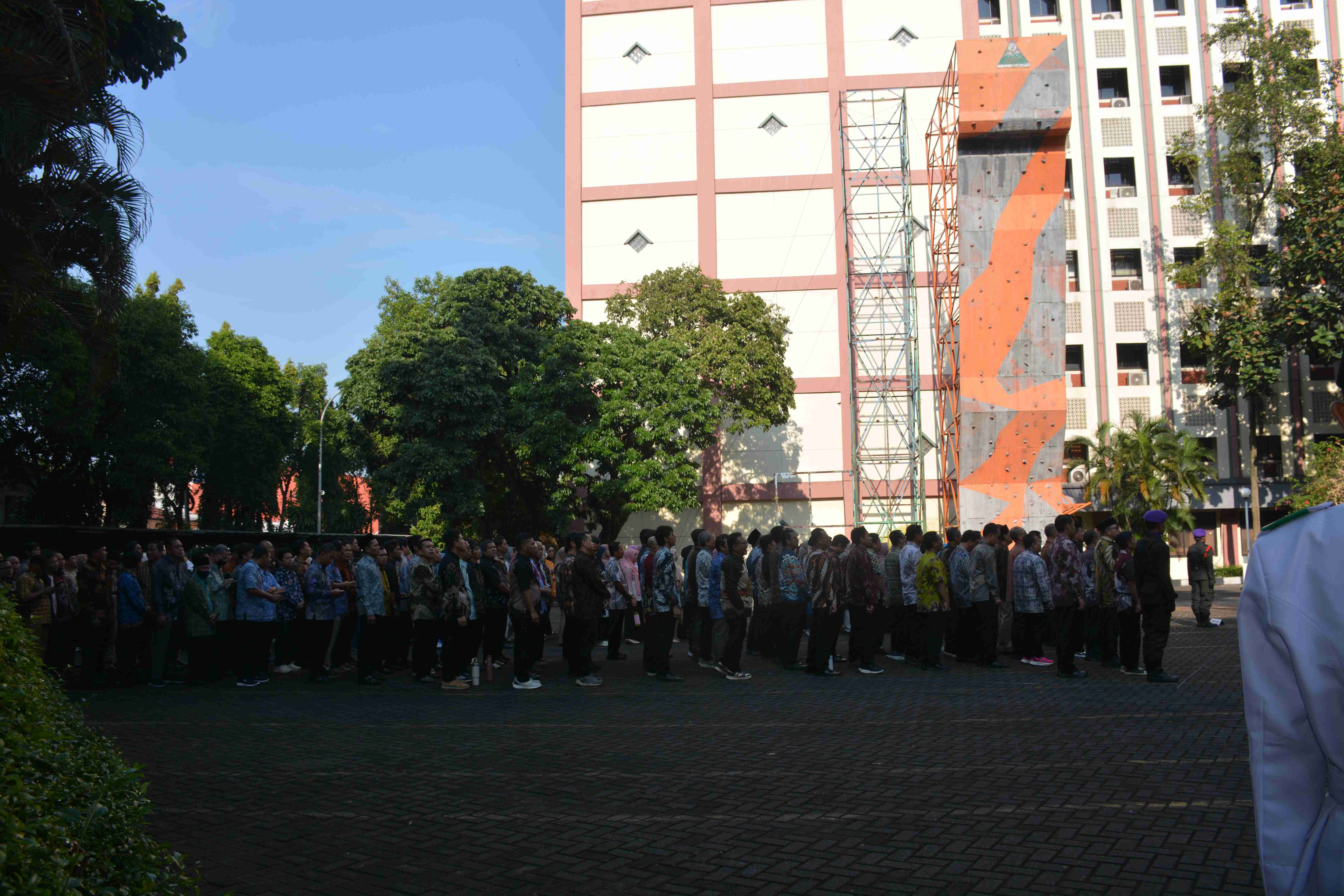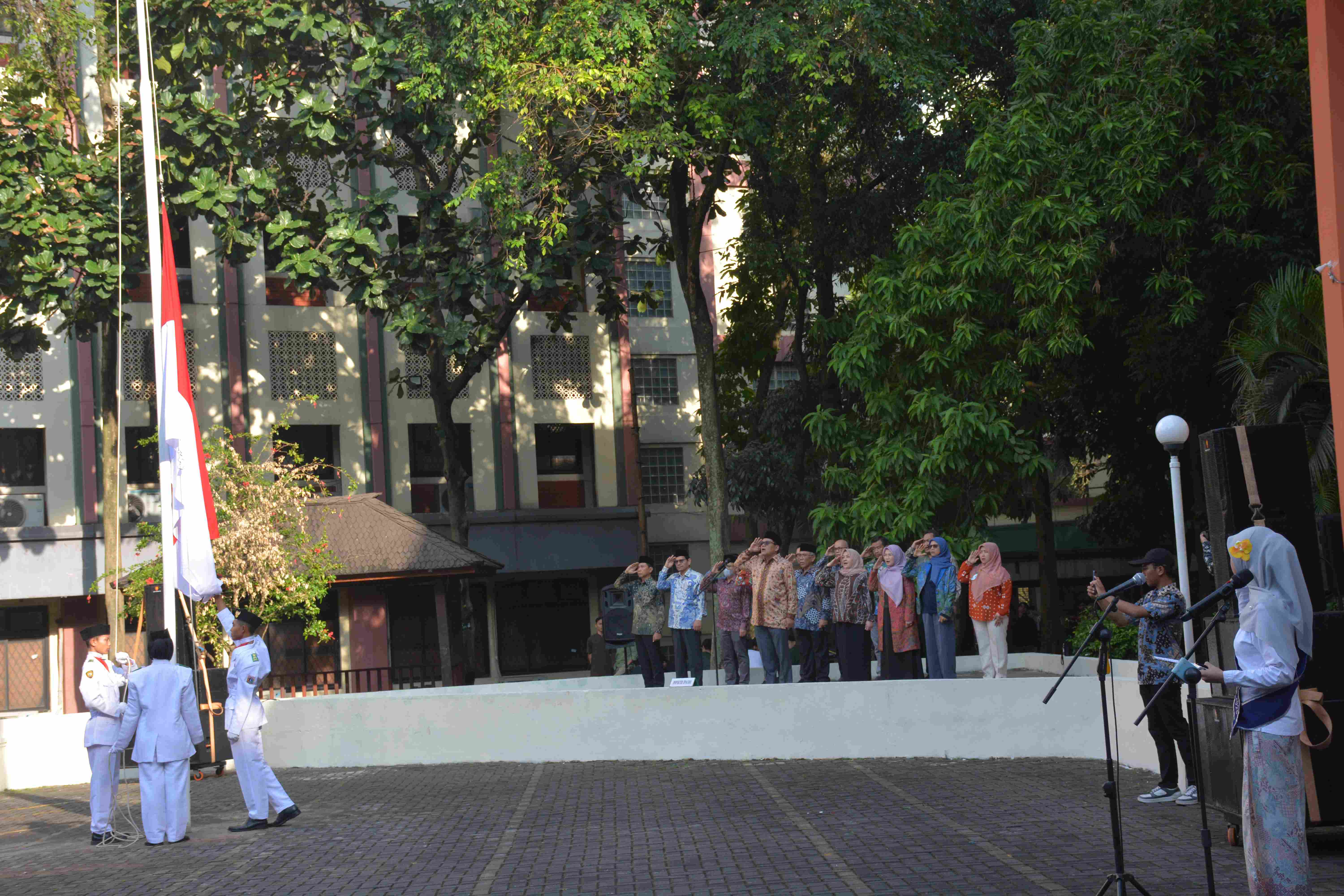 Upacara peringatan Hari Kesaktian Pancasila tahun ini dilaksanakan dalam rangka mengingatkan kembali arti penting persatuan dan keteguhan bangsa Indonesia dalam menghadapi berbagai ancaman. Rangkaian upacara dimulai dengan pengibaran bendera merah putih, mengheningkan cipta, pembacaan teks Pancasila, pembacaan teks UUD 1945, serta Ikrar Kesaktian Pancasila. Seluruh prosesi dijalankan dengan penuh penghormatan, mengingatkan kembali arti penting persatuan dan keteguhan bangsa Indonesia dalam menghadapi berbagai ancaman. Upacara ini dipimpin langsung oleh Rektor UIN Jakarta, Prof. Asep Saepudin Jahar, M.A., Ph.D., yang bertindak sebagai inspektur upacara. (Fotografer: Aqilah Qurratulaini/Teks: Muhamad Arifin Ilham/Pusat Informasi dan Humas UIN Jakarta)