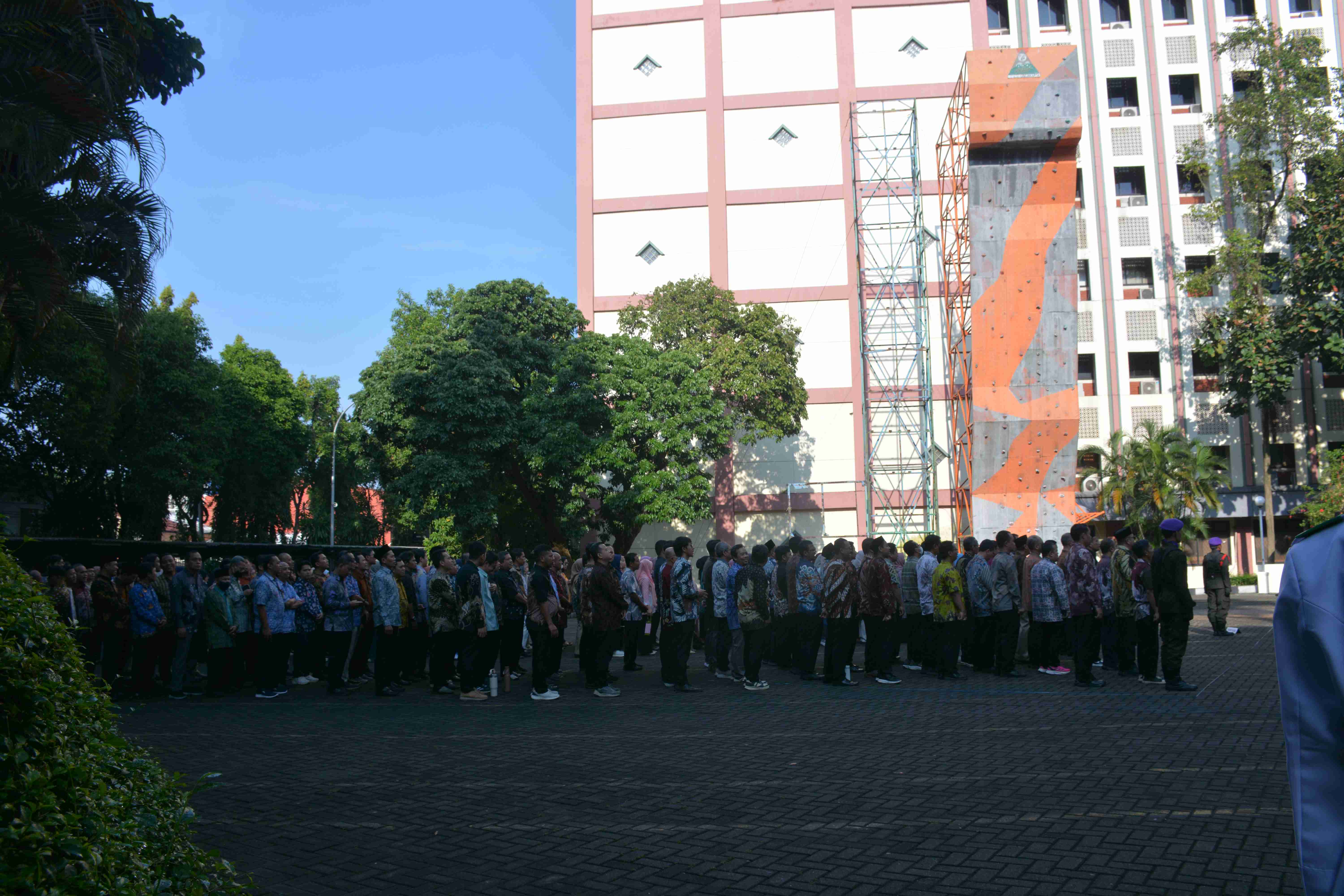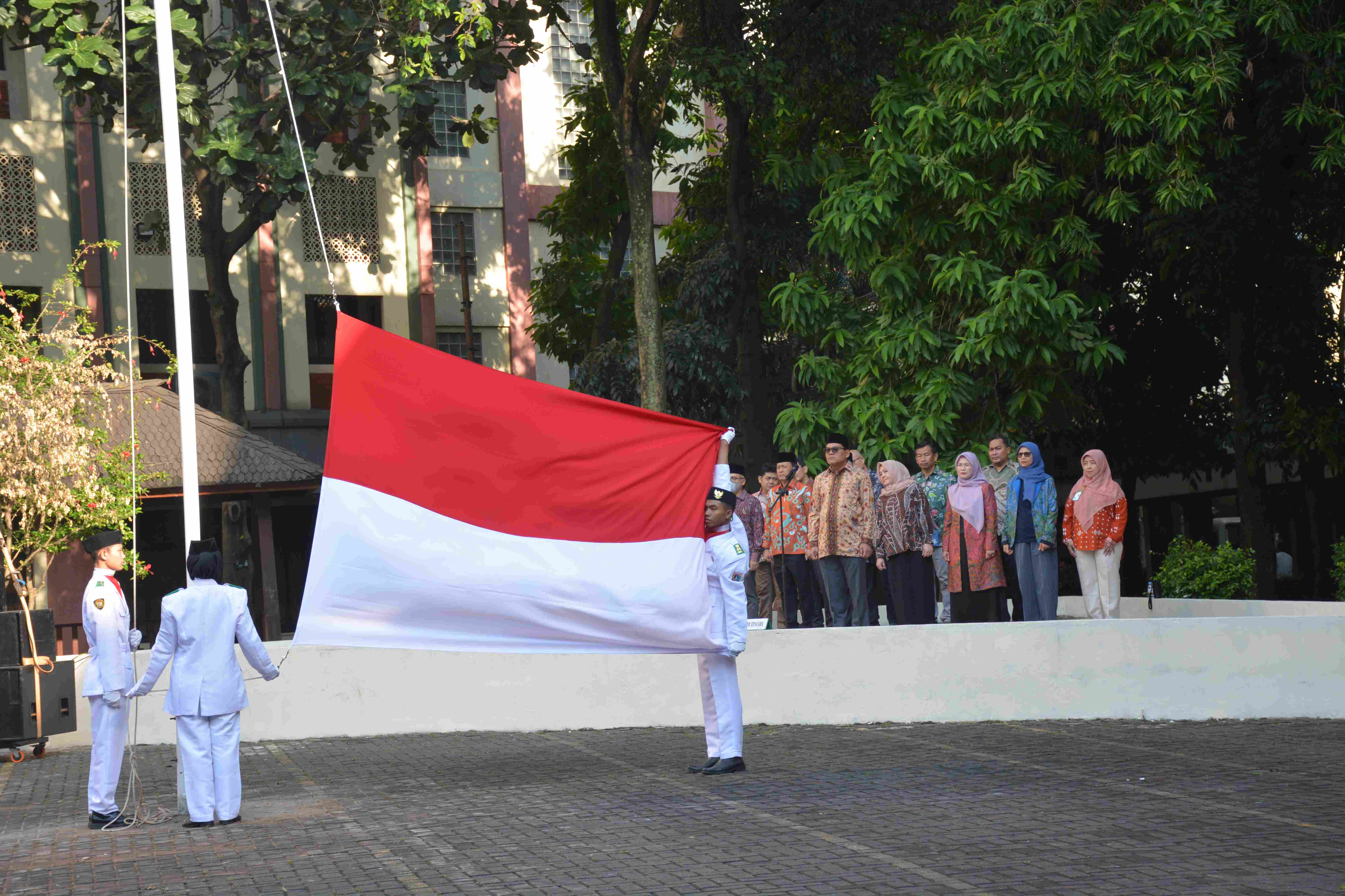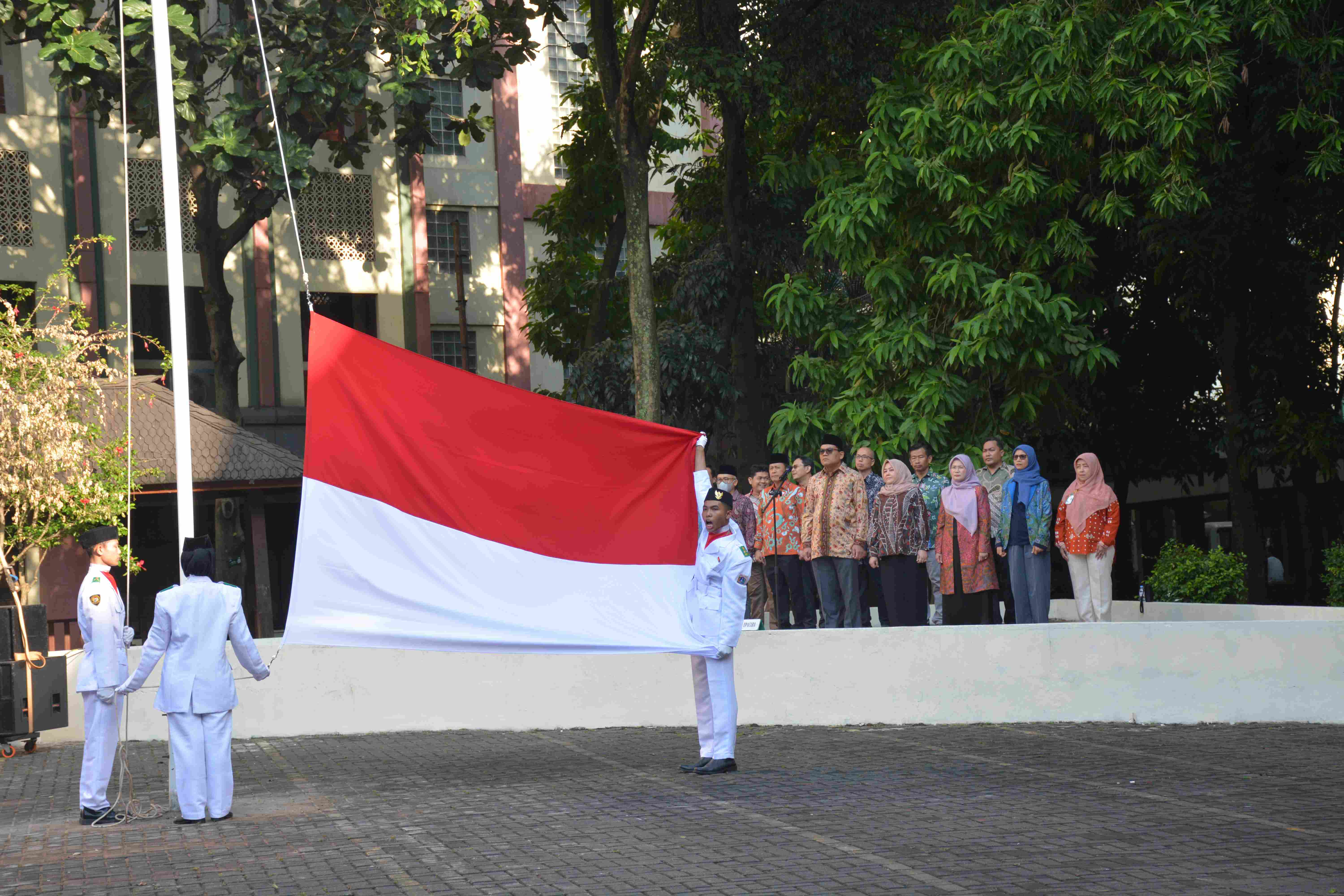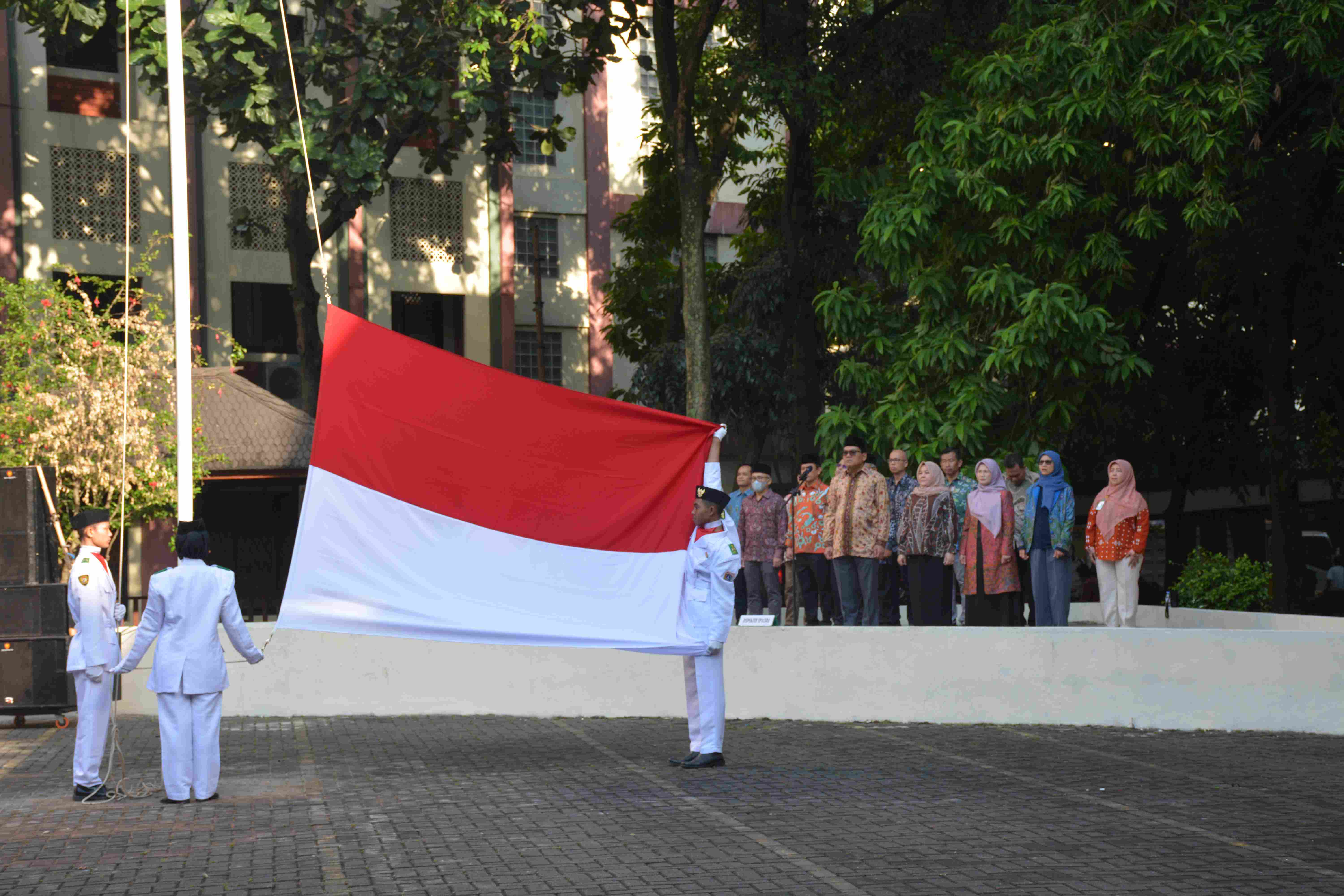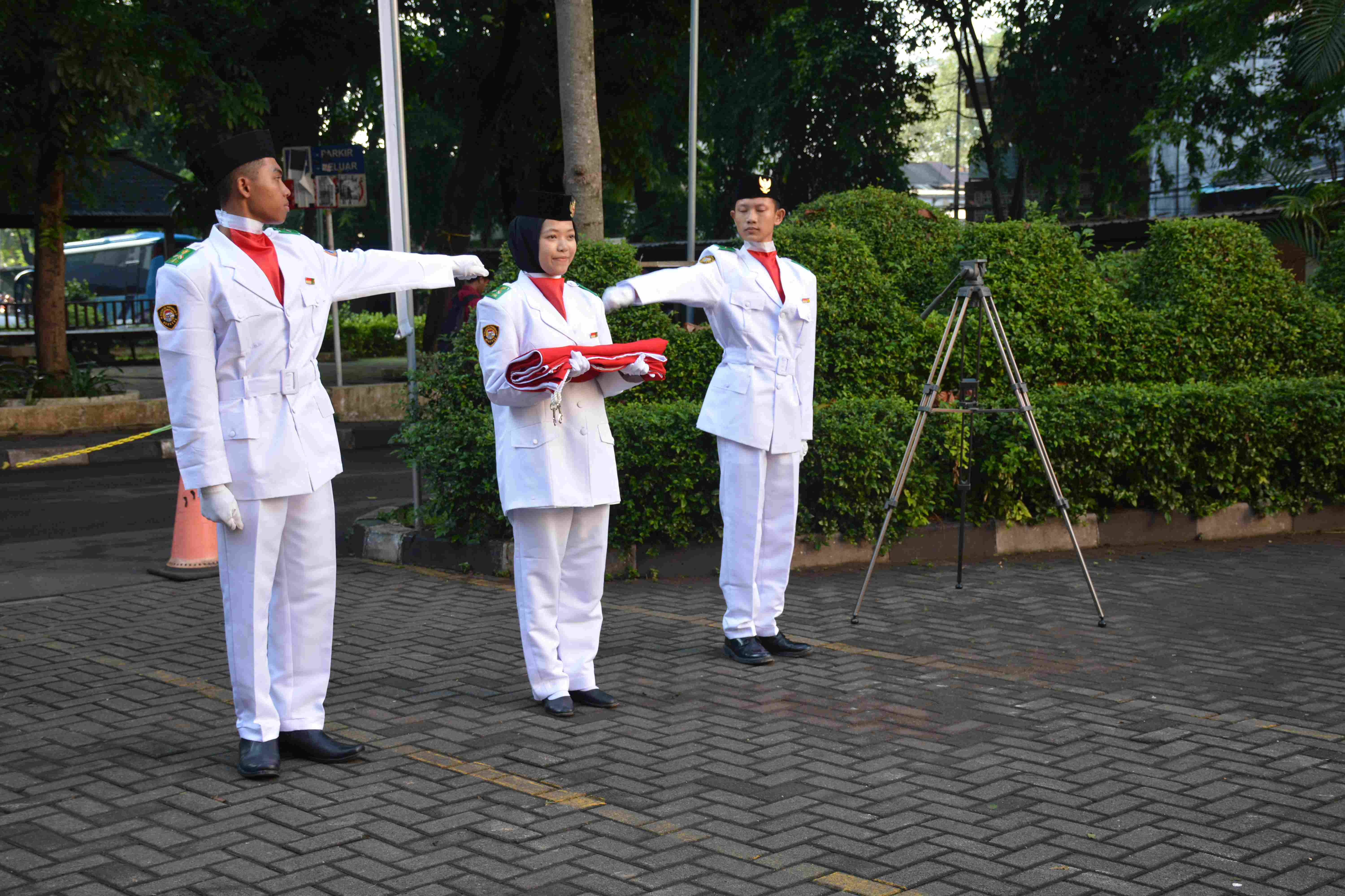 Upacara peringatan Hari Kesaktian Pancasila tahun ini dilaksanakan dalam rangka mengingatkan kembali arti penting persatuan dan keteguhan bangsa Indonesia dalam menghadapi berbagai ancaman. Rangkaian upacara dimulai dengan pengibaran bendera merah putih, mengheningkan cipta, pembacaan teks Pancasila, pembacaan teks UUD 1945, serta Ikrar Kesaktian Pancasila. Seluruh prosesi dijalankan dengan penuh penghormatan, mengingatkan kembali arti penting persatuan dan keteguhan bangsa Indonesia dalam menghadapi berbagai ancaman. Upacara ini dipimpin langsung oleh Rektor UIN Jakarta, Prof. Asep Saepudin Jahar, M.A., Ph.D., yang bertindak sebagai inspektur upacara. (Fotografer: Aqilah Qurratulaini/Teks: Muhamad Arifin Ilham/Pusat Informasi dan Humas UIN Jakarta)