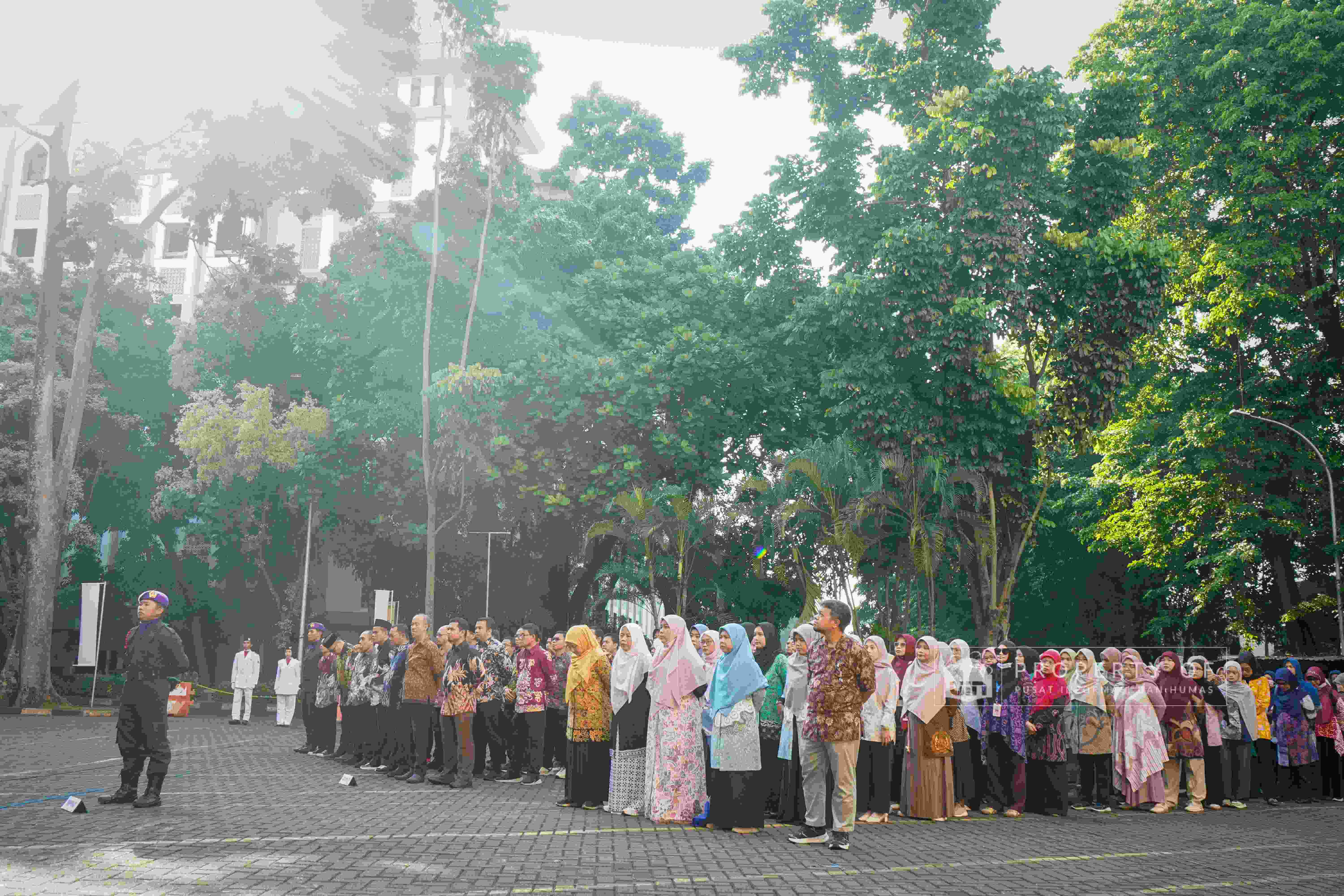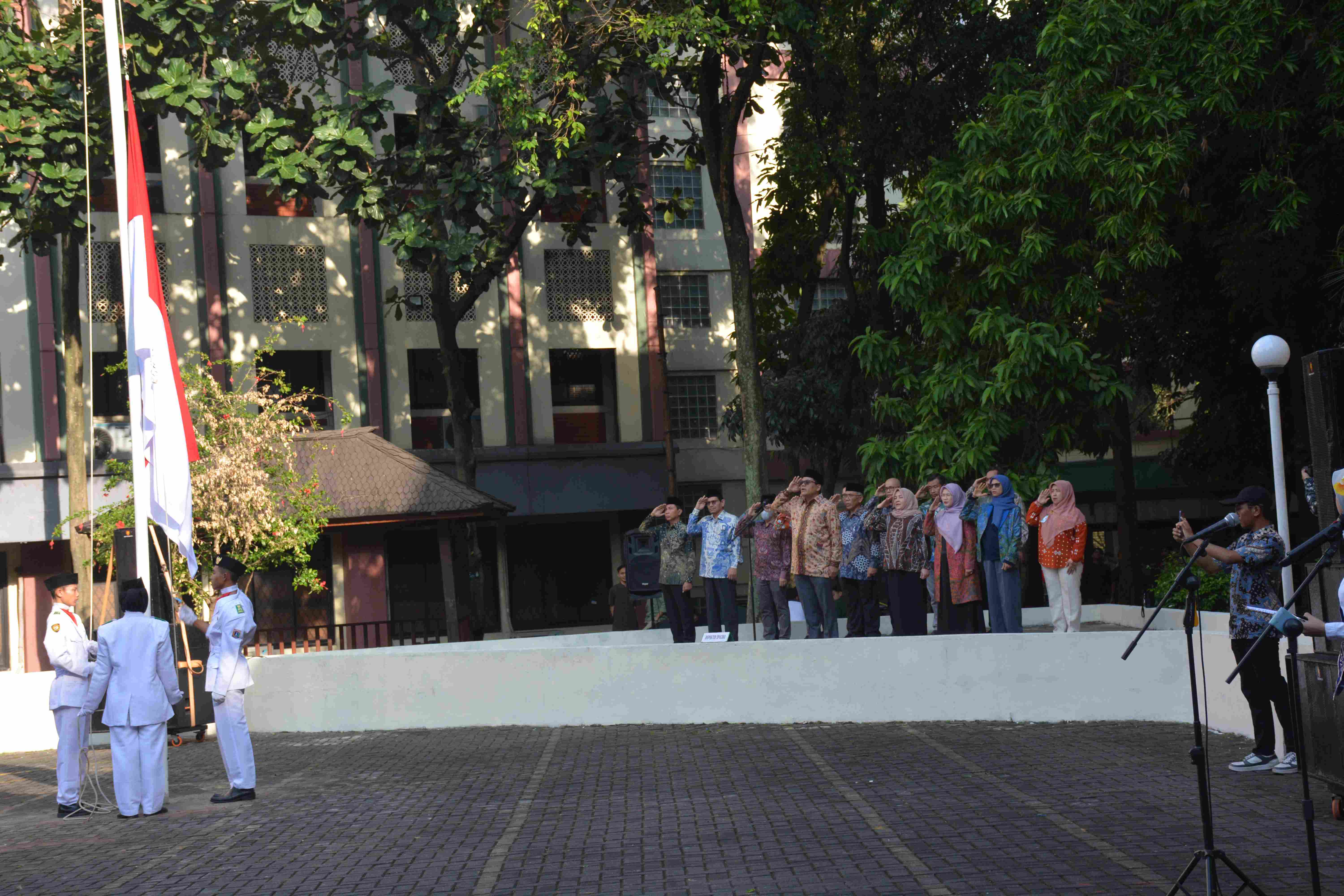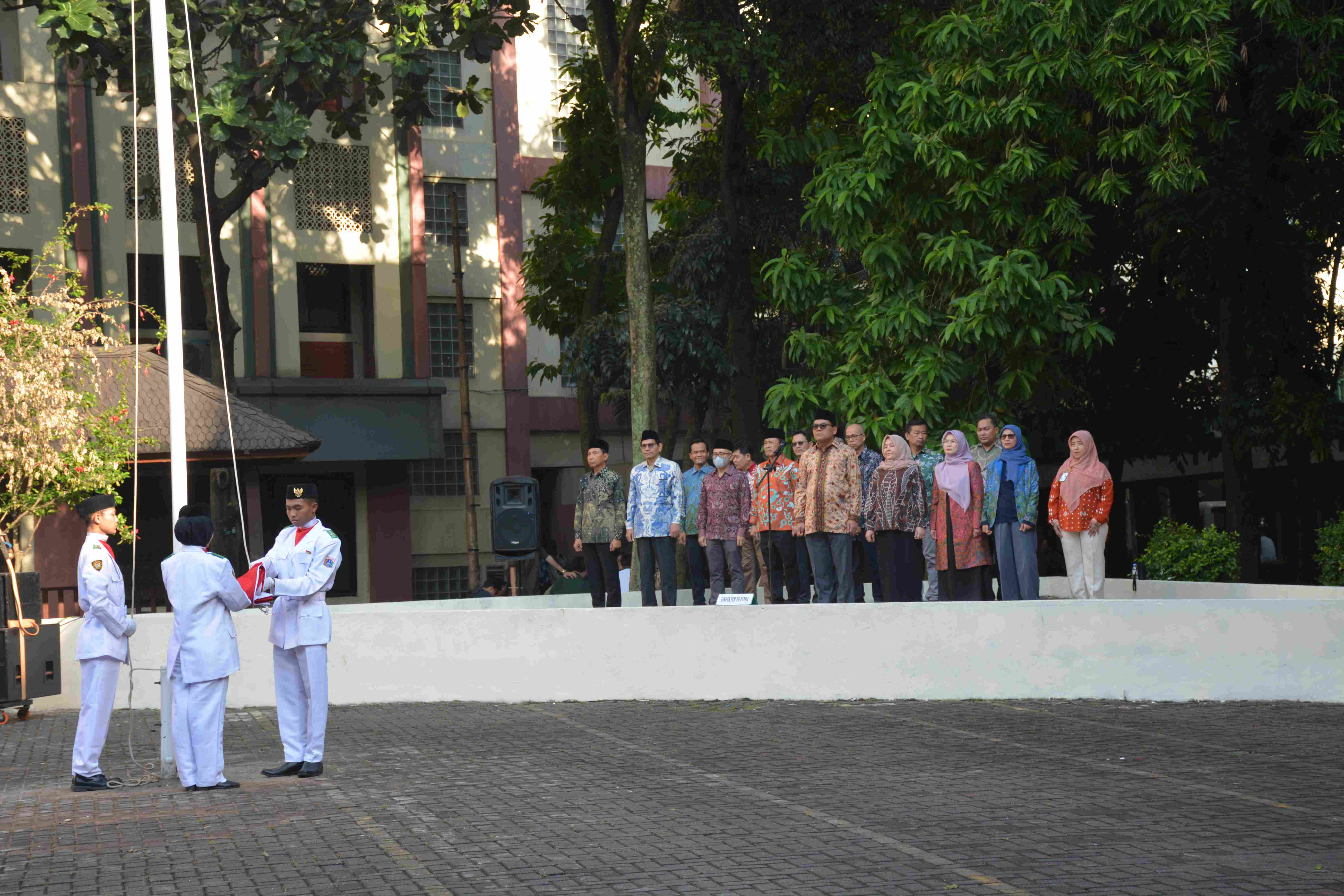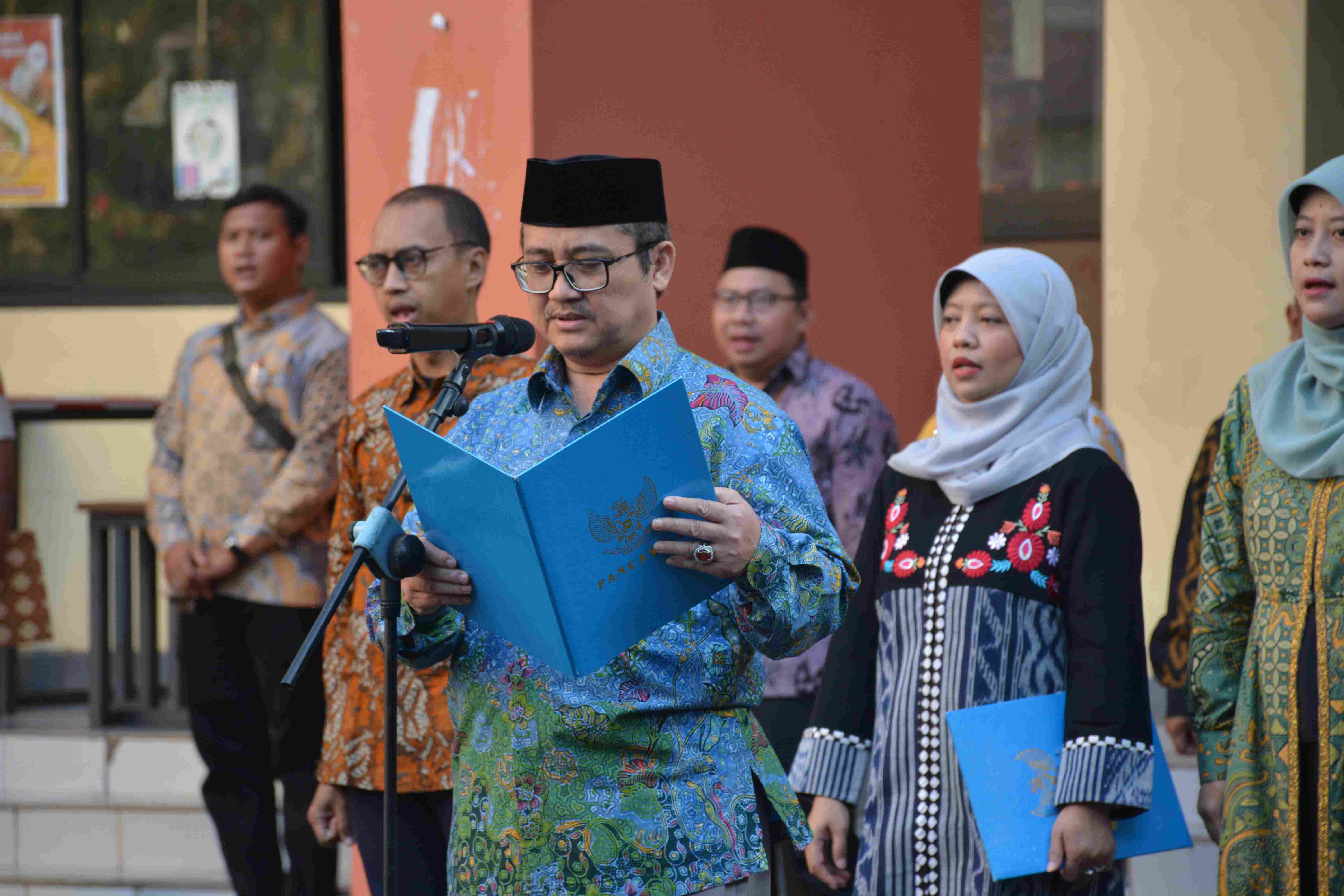Upacara peringatan Hari Kesaktian Pancasila tahun ini dilaksanakan dalam rangka mengingatkan kembali arti penting persatuan dan keteguhan bangsa Indonesia dalam menghadapi berbagai ancaman. Rangkaian upacara dimulai dengan pengibaran bendera merah putih, mengheningkan cipta, pembacaan teks Pancasila, pembacaan teks UUD 1945, serta Ikrar Kesaktian Pancasila. Seluruh prosesi dijalankan dengan penuh penghormatan, mengingatkan kembali arti penting persatuan dan keteguhan bangsa Indonesia dalam menghadapi berbagai ancaman. Upacara ini dipimpin langsung oleh Rektor UIN Jakarta, Prof. Asep Saepudin Jahar, M.A., Ph.D., yang bertindak sebagai inspektur upacara. (Fotografer: Aqilah Qurratulaini/Teks: Muhamad Arifin Ilham/Pusat Informasi dan Humas UIN Jakarta)