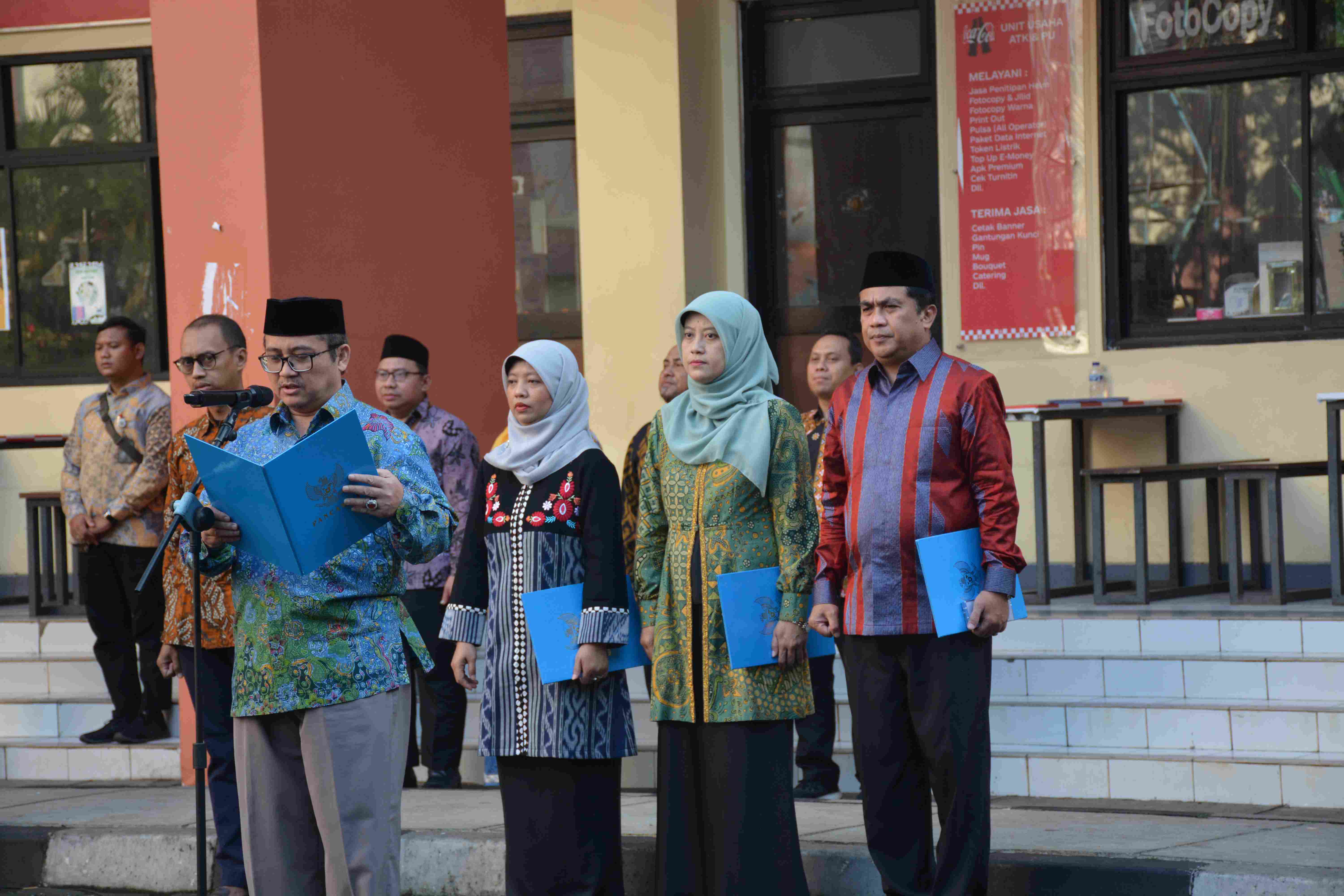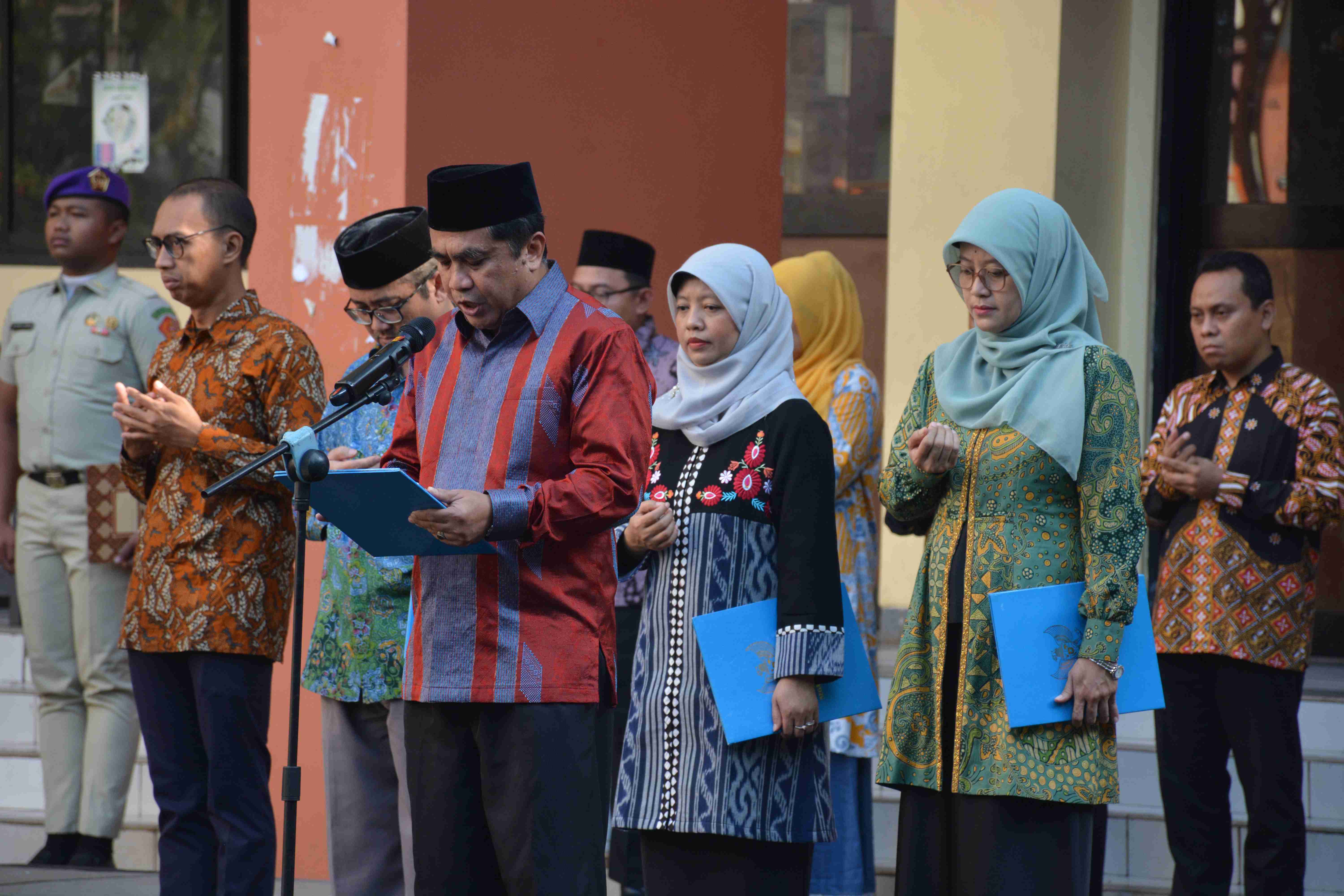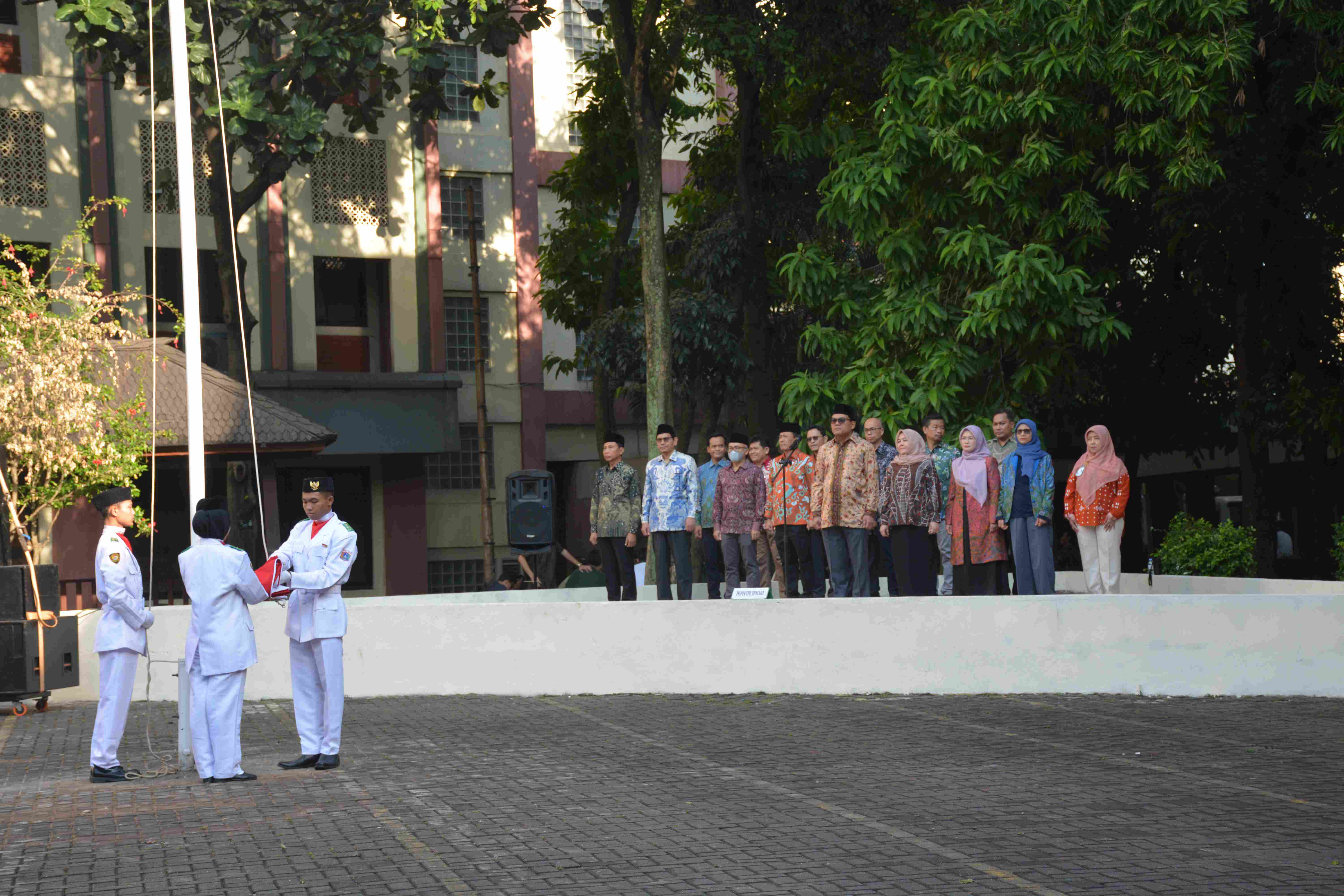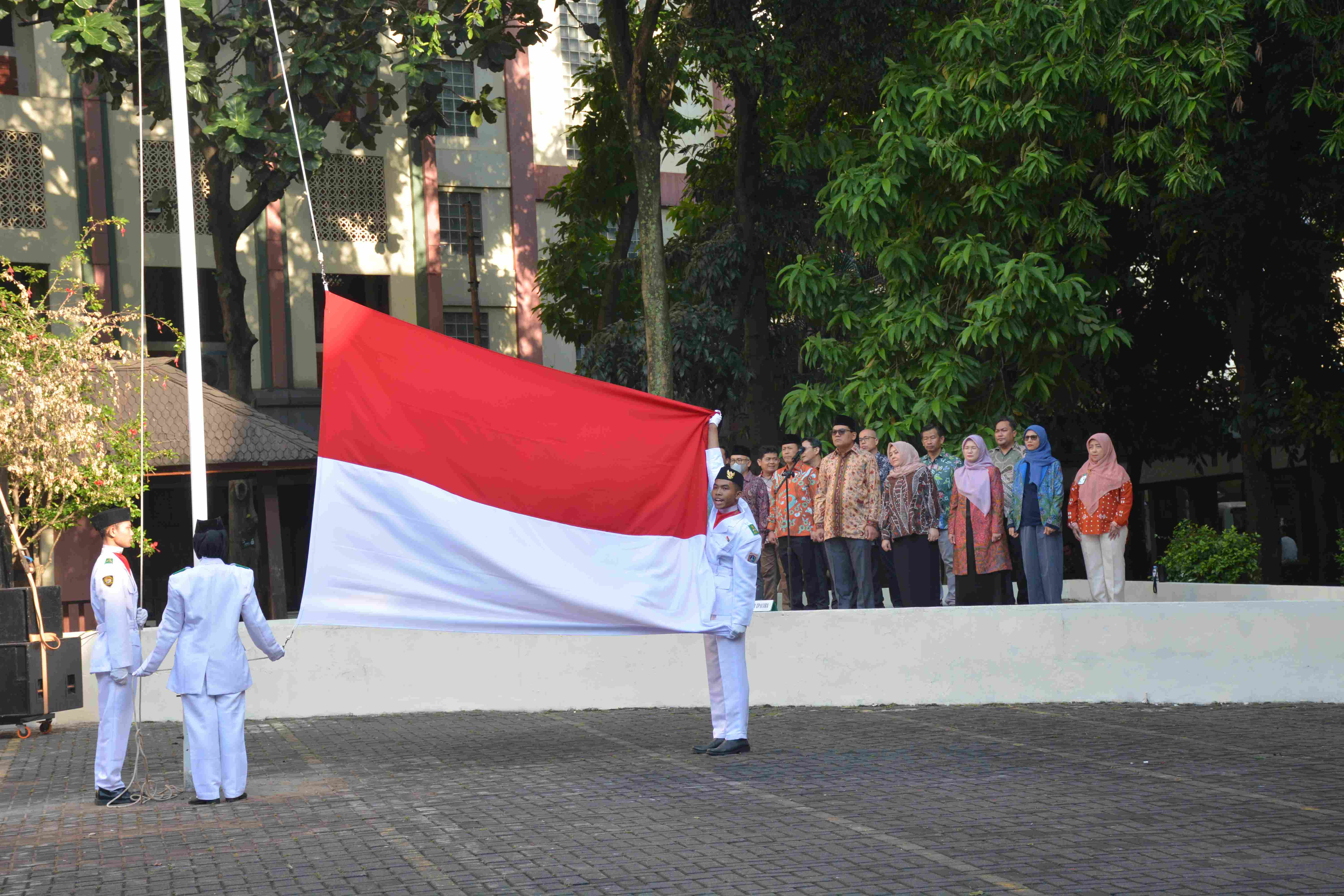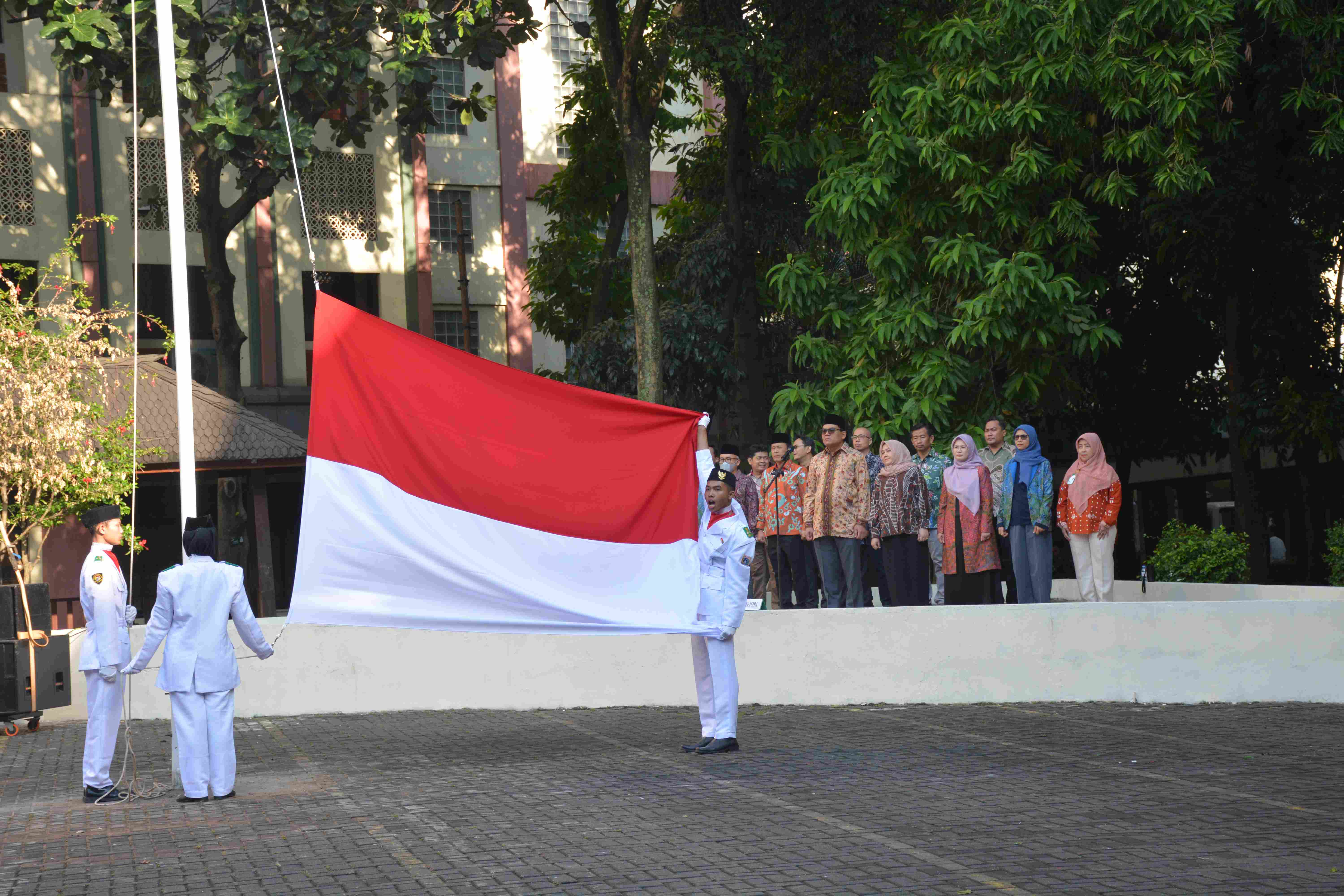 Upacara peringatan Hari Kesaktian Pancasila tahun ini dilaksanakan dalam rangka mengingatkan kembali arti penting persatuan dan keteguhan bangsa Indonesia dalam menghadapi berbagai ancaman. Rangkaian upacara dimulai dengan pengibaran bendera merah putih, mengheningkan cipta, pembacaan teks Pancasila, pembacaan teks UUD 1945, serta Ikrar Kesaktian Pancasila. Seluruh prosesi dijalankan dengan penuh penghormatan, mengingatkan kembali arti penting persatuan dan keteguhan bangsa Indonesia dalam menghadapi berbagai ancaman. Upacara ini dipimpin langsung oleh Rektor UIN Jakarta, Prof. Asep Saepudin Jahar, M.A., Ph.D., yang bertindak sebagai inspektur upacara. (Fotografer: Aqilah Qurratulaini/Teks: Muhamad Arifin Ilham/Pusat Informasi dan Humas UIN Jakarta)