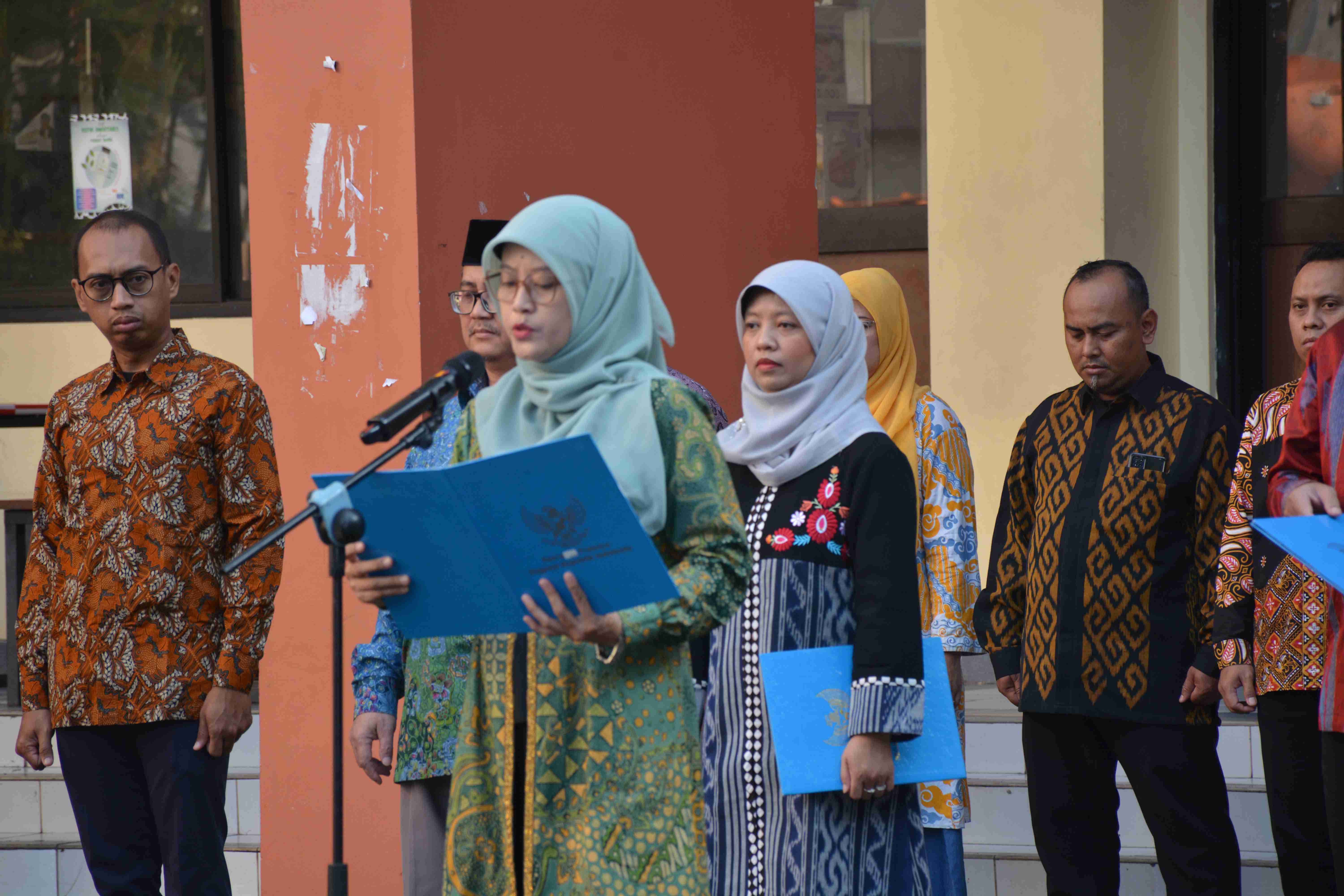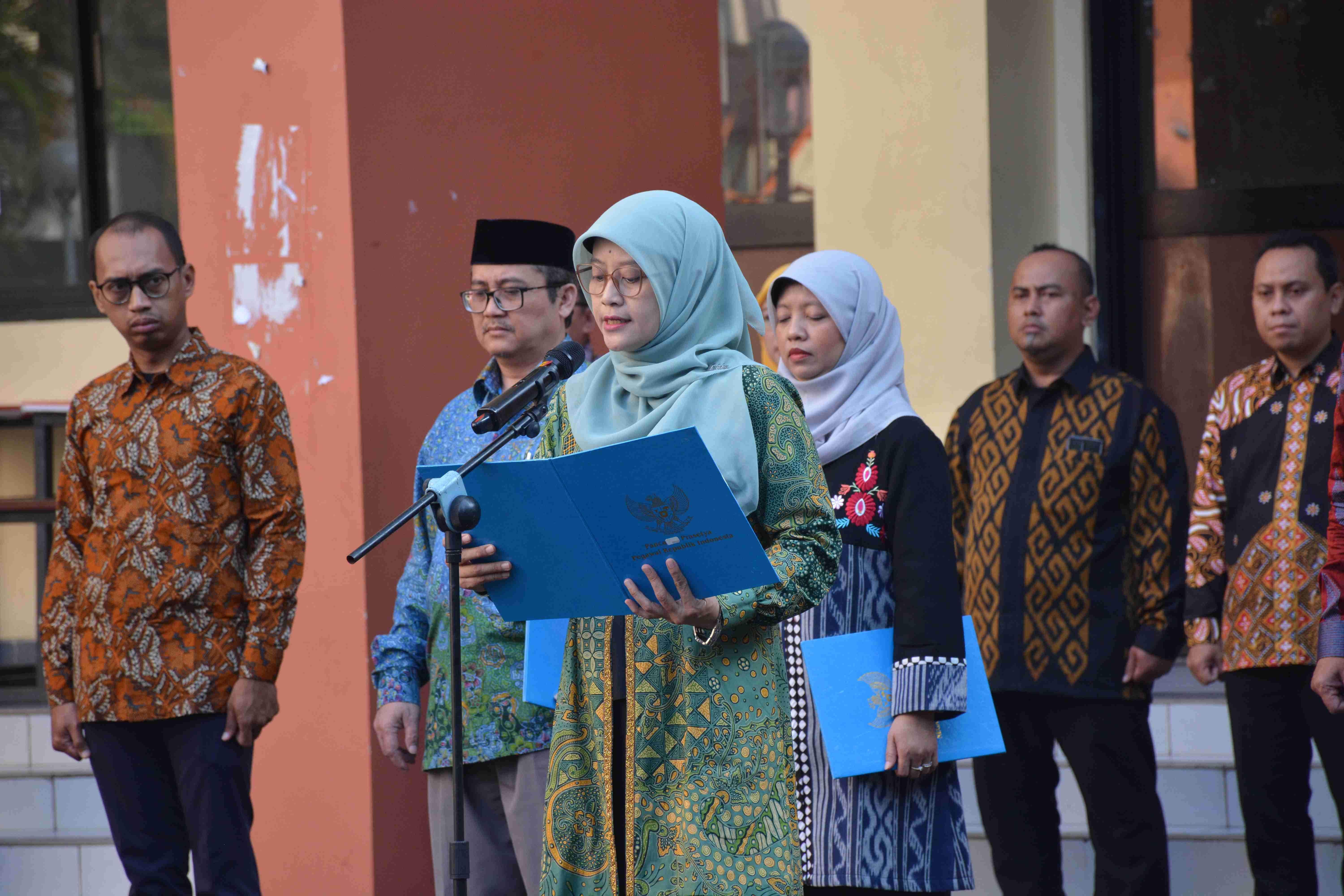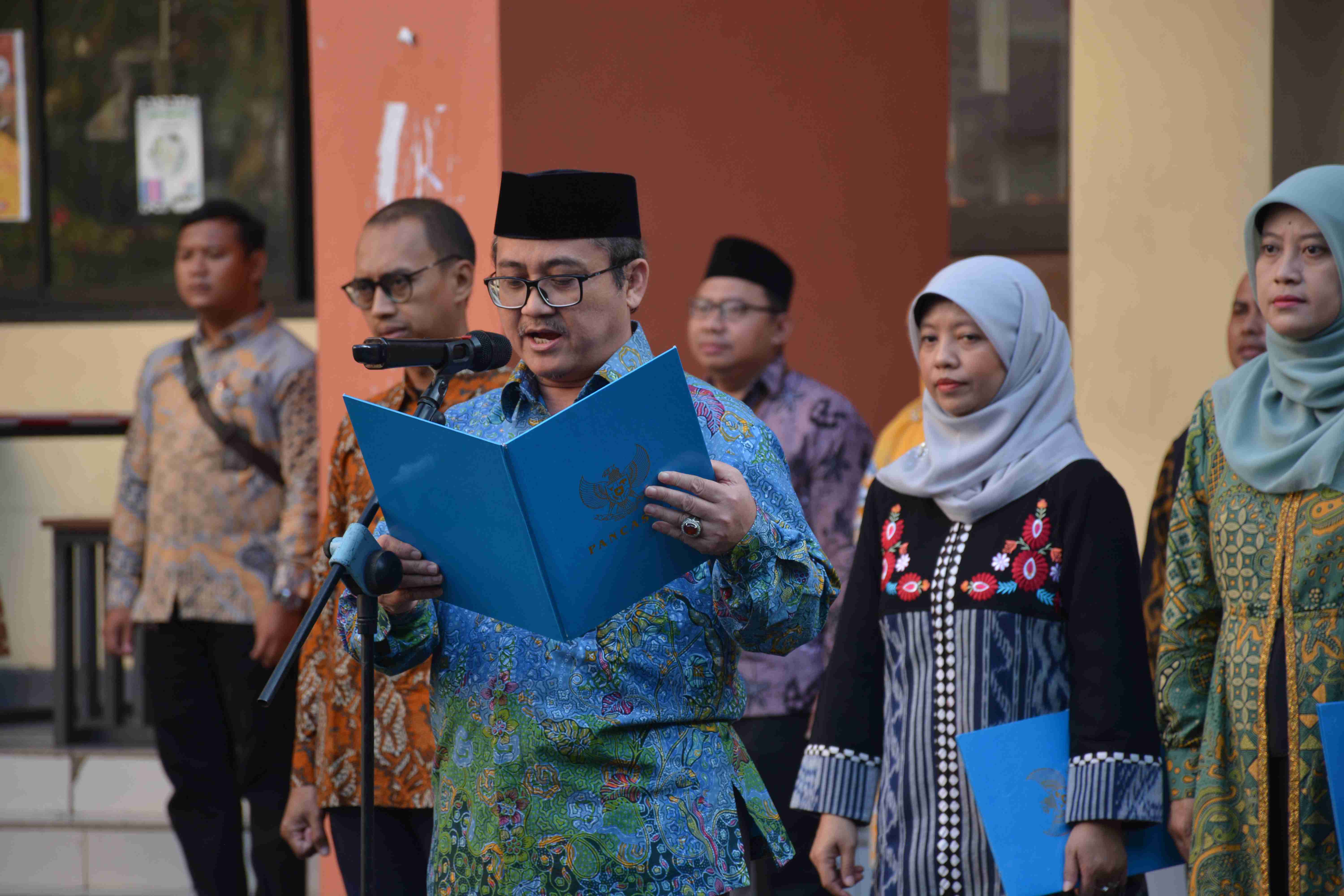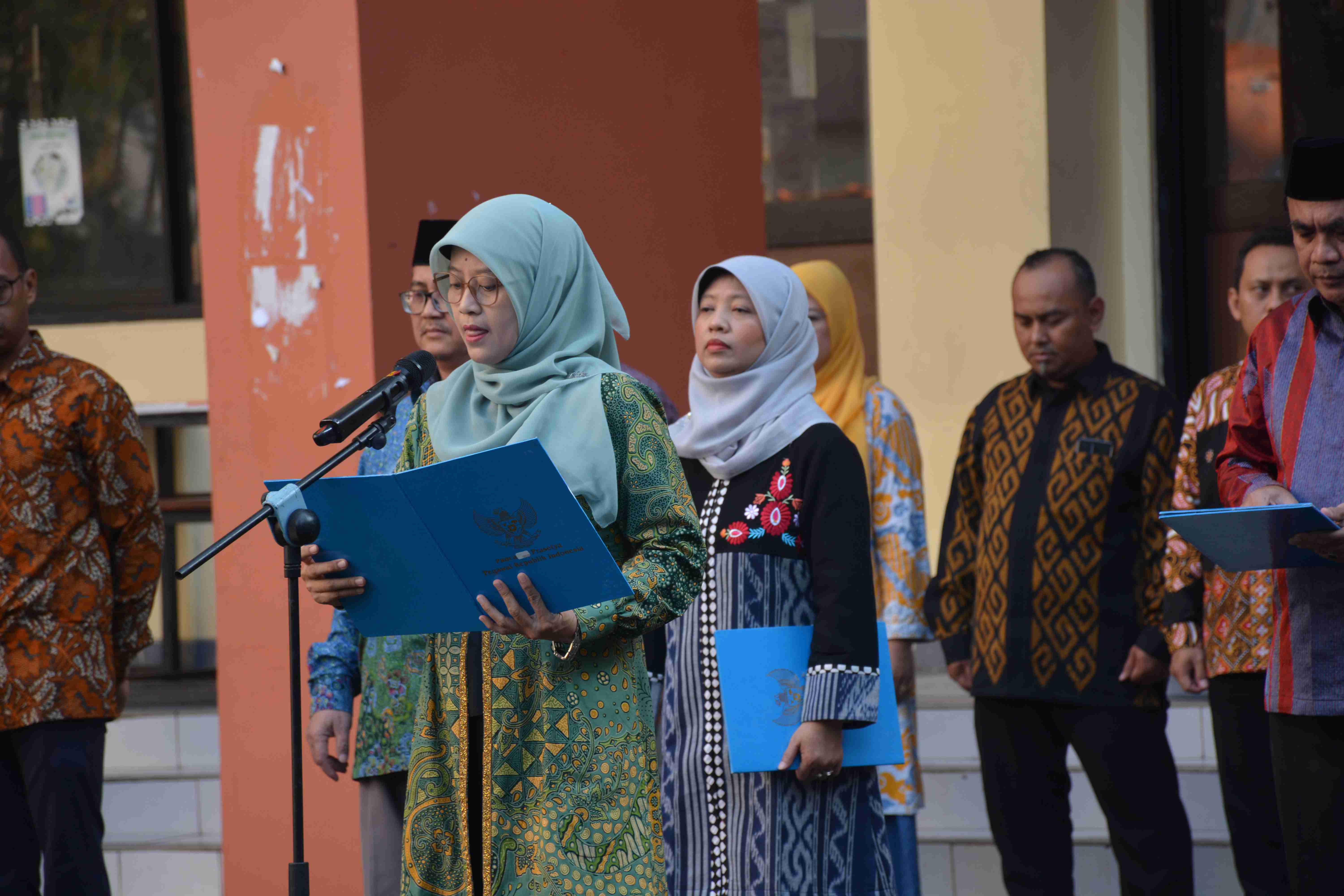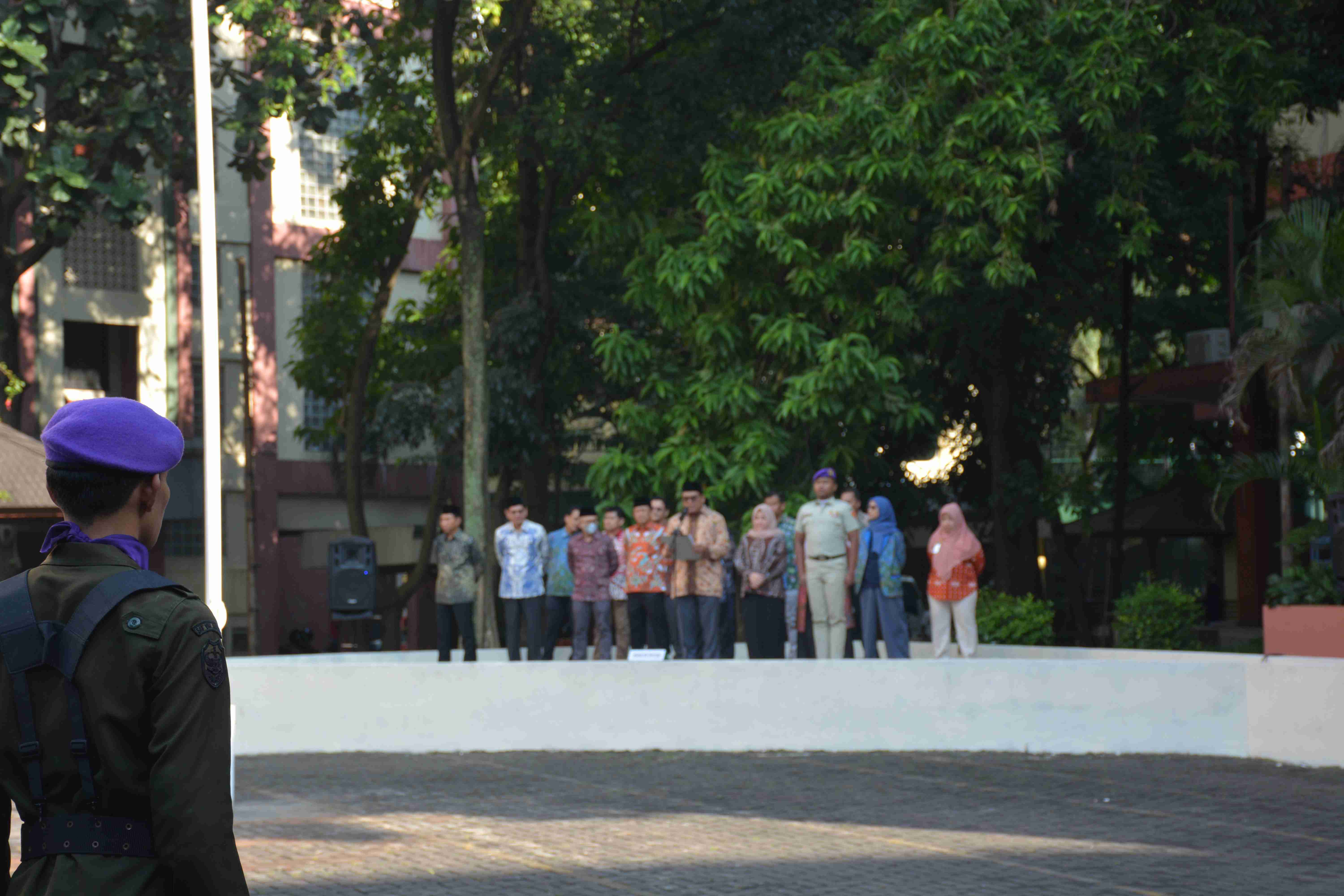 Upacara peringatan Hari Kesaktian Pancasila tahun ini dilaksanakan dalam rangka mengingatkan kembali arti penting persatuan dan keteguhan bangsa Indonesia dalam menghadapi berbagai ancaman. Rangkaian upacara dimulai dengan pengibaran bendera merah putih, mengheningkan cipta, pembacaan teks Pancasila, pembacaan teks UUD 1945, serta Ikrar Kesaktian Pancasila. Seluruh prosesi dijalankan dengan penuh penghormatan, mengingatkan kembali arti penting persatuan dan keteguhan bangsa Indonesia dalam menghadapi berbagai ancaman. Upacara ini dipimpin langsung oleh Rektor UIN Jakarta, Prof. Asep Saepudin Jahar, M.A., Ph.D., yang bertindak sebagai inspektur upacara. (Fotografer: Aqilah Qurratulaini/Teks: Muhamad Arifin Ilham/Pusat Informasi dan Humas UIN Jakarta)