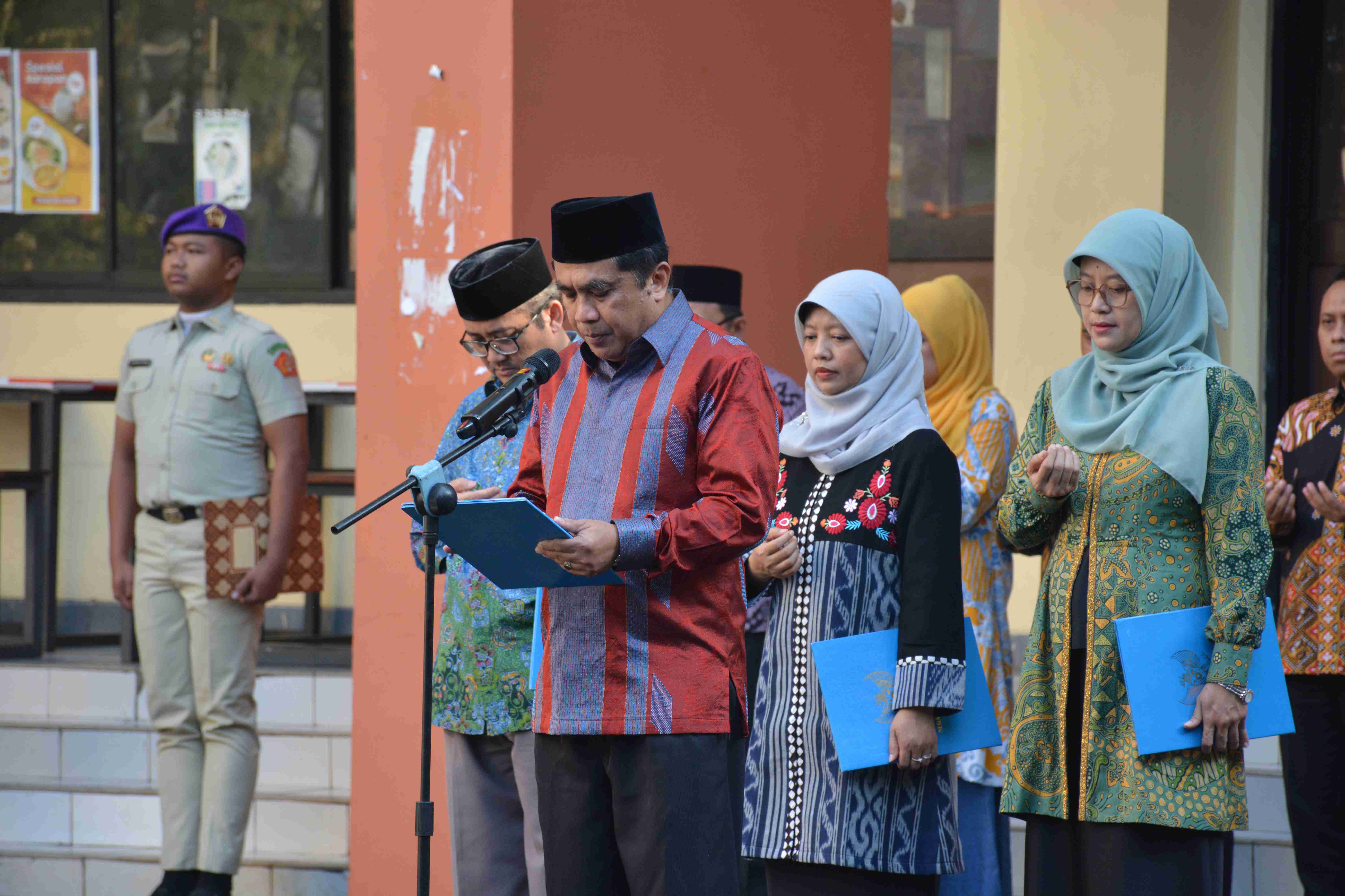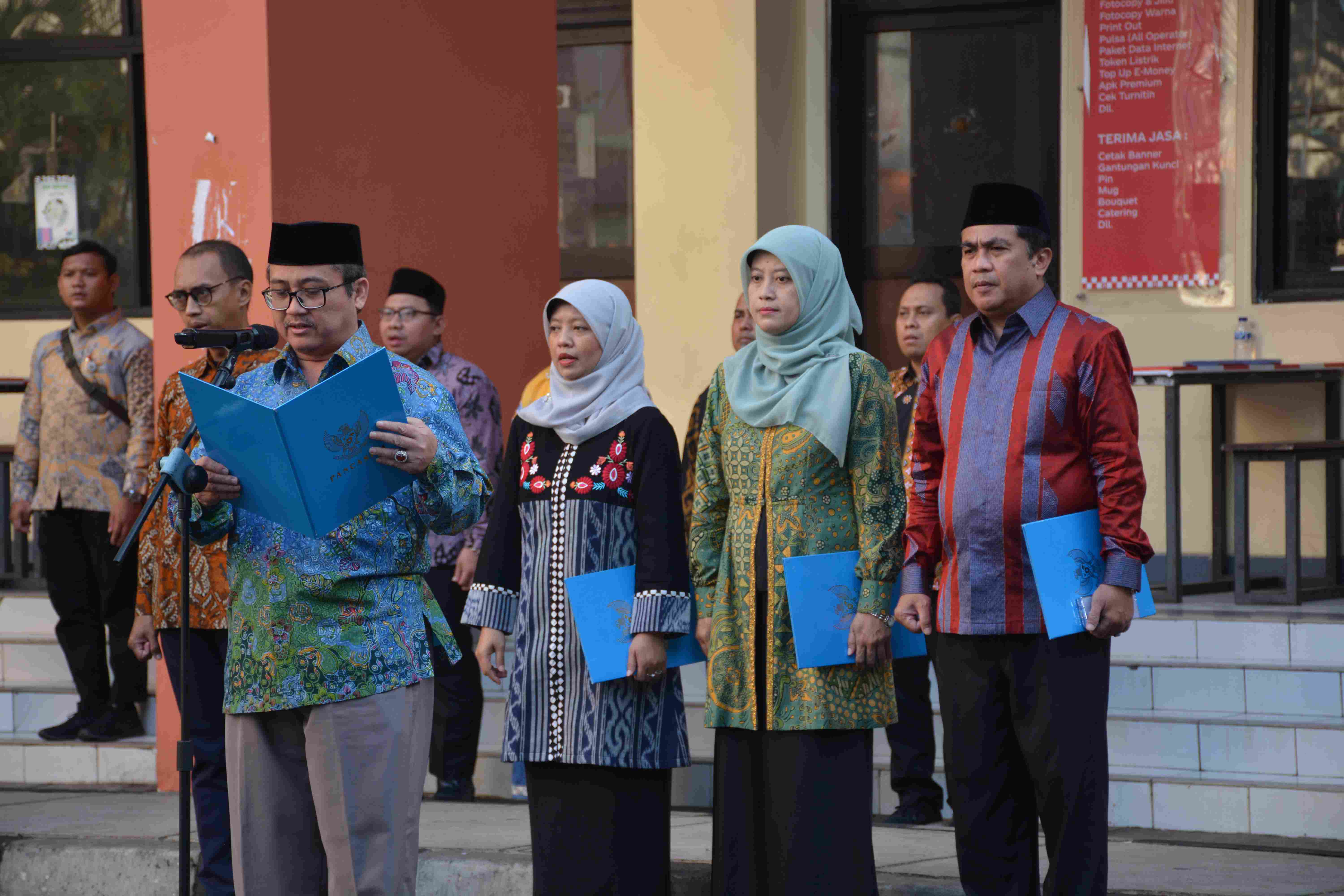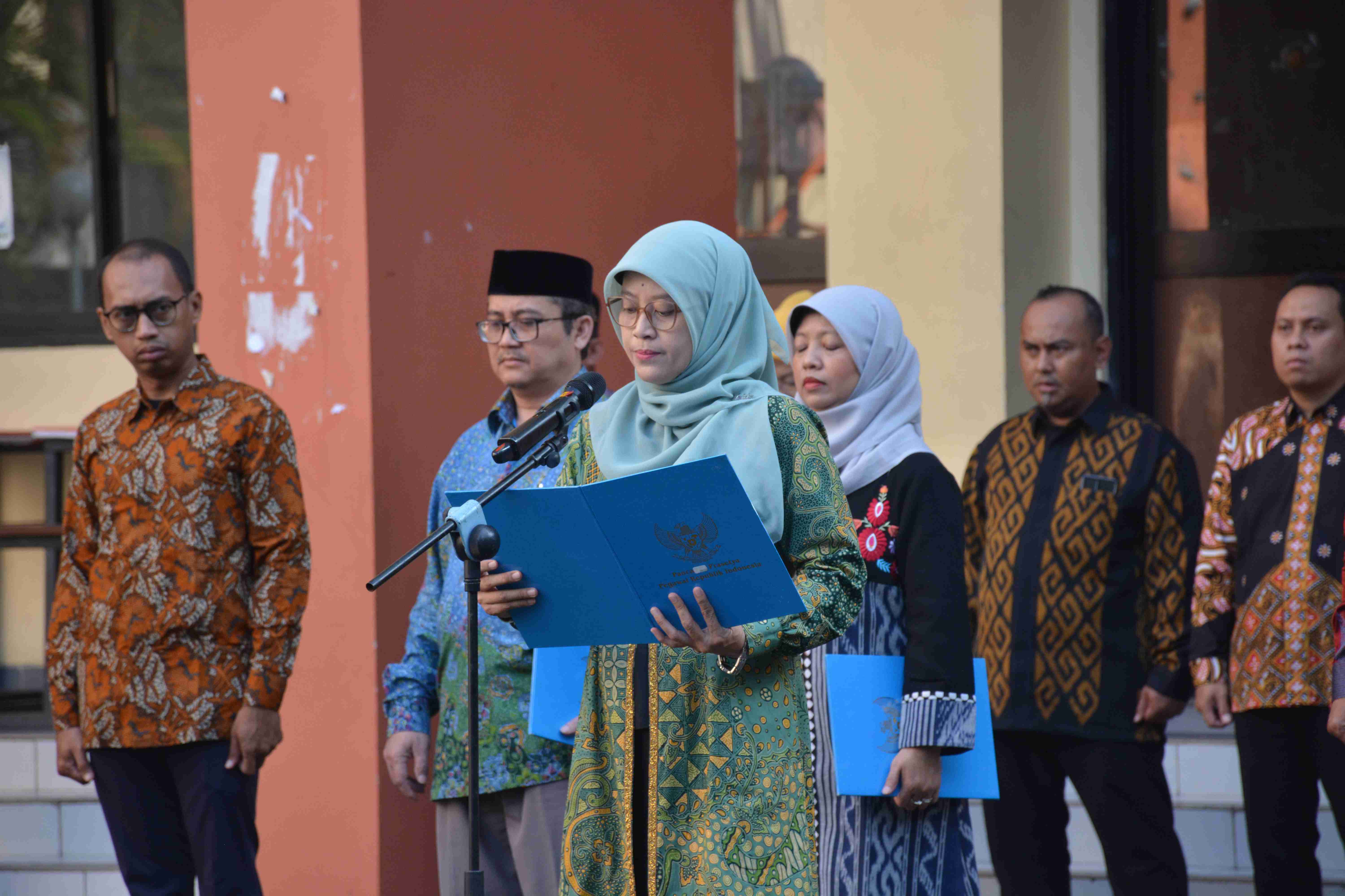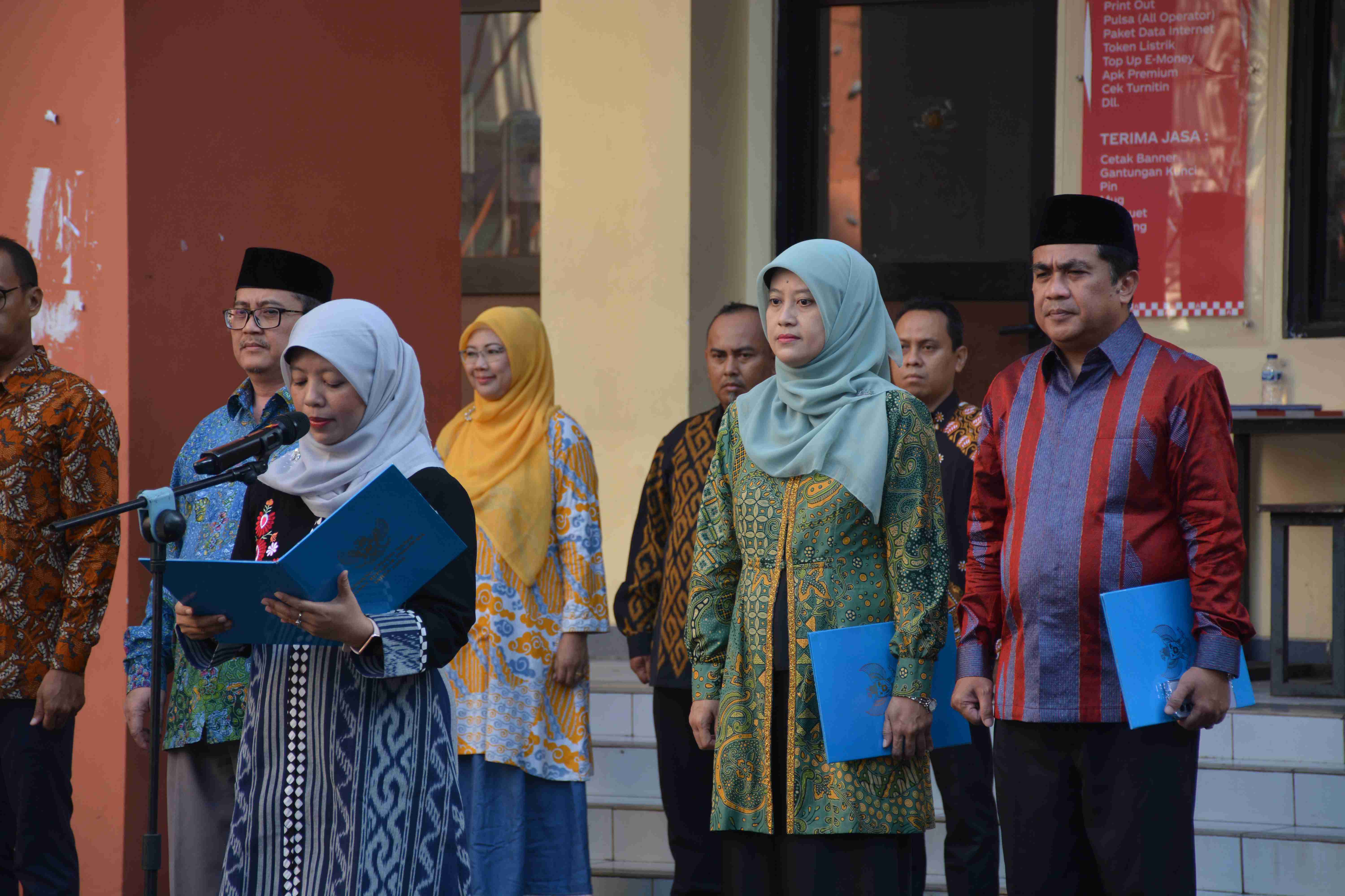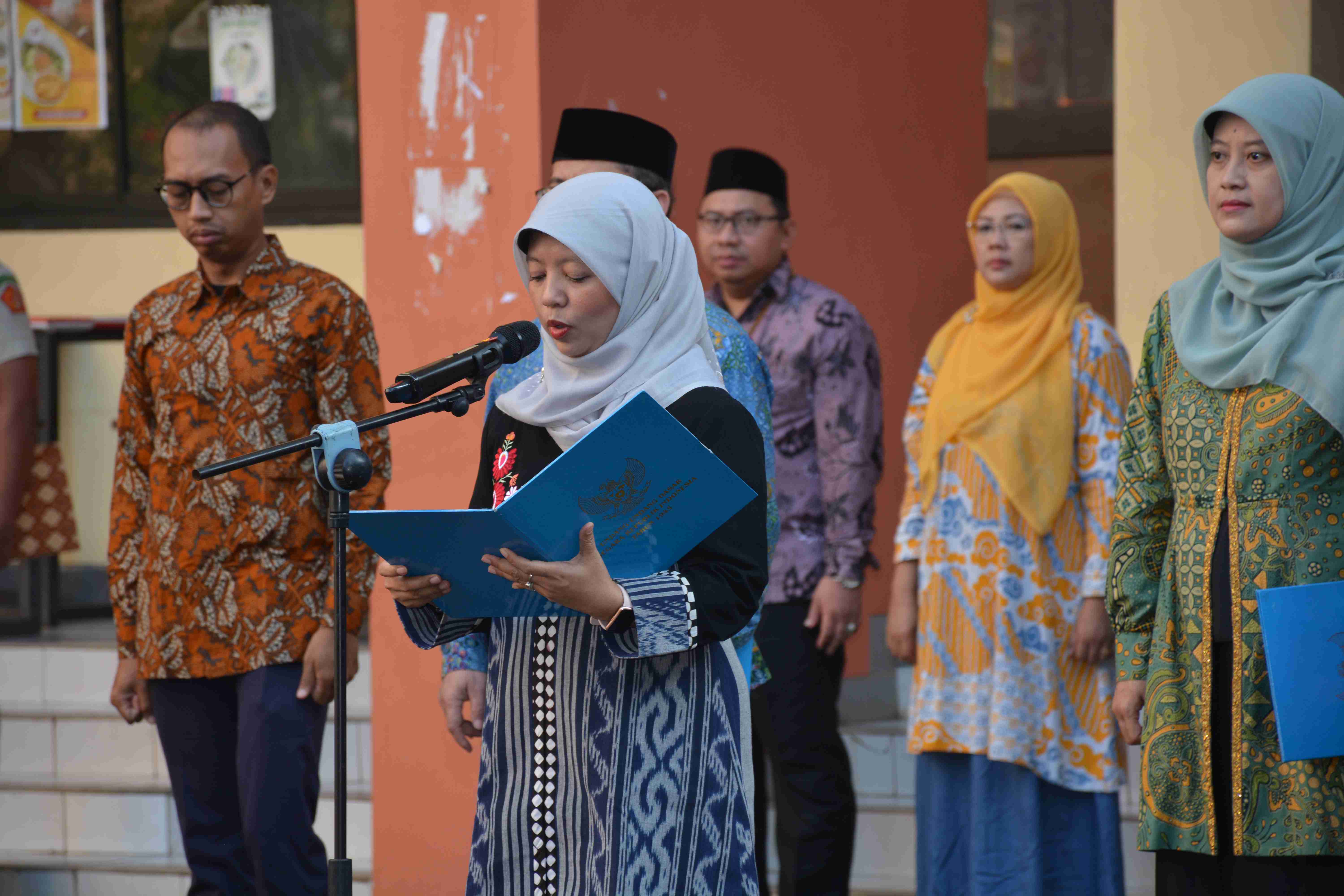 Upacara peringatan Hari Kesaktian Pancasila tahun ini dilaksanakan dalam rangka mengingatkan kembali arti penting persatuan dan keteguhan bangsa Indonesia dalam menghadapi berbagai ancaman. Rangkaian upacara dimulai dengan pengibaran bendera merah putih, mengheningkan cipta, pembacaan teks Pancasila, pembacaan teks UUD 1945, serta Ikrar Kesaktian Pancasila. Seluruh prosesi dijalankan dengan penuh penghormatan, mengingatkan kembali arti penting persatuan dan keteguhan bangsa Indonesia dalam menghadapi berbagai ancaman. Upacara ini dipimpin langsung oleh Rektor UIN Jakarta, Prof. Asep Saepudin Jahar, M.A., Ph.D., yang bertindak sebagai inspektur upacara. (Fotografer: Aqilah Qurratulaini/Teks: Muhamad Arifin Ilham/Pusat Informasi dan Humas UIN Jakarta)