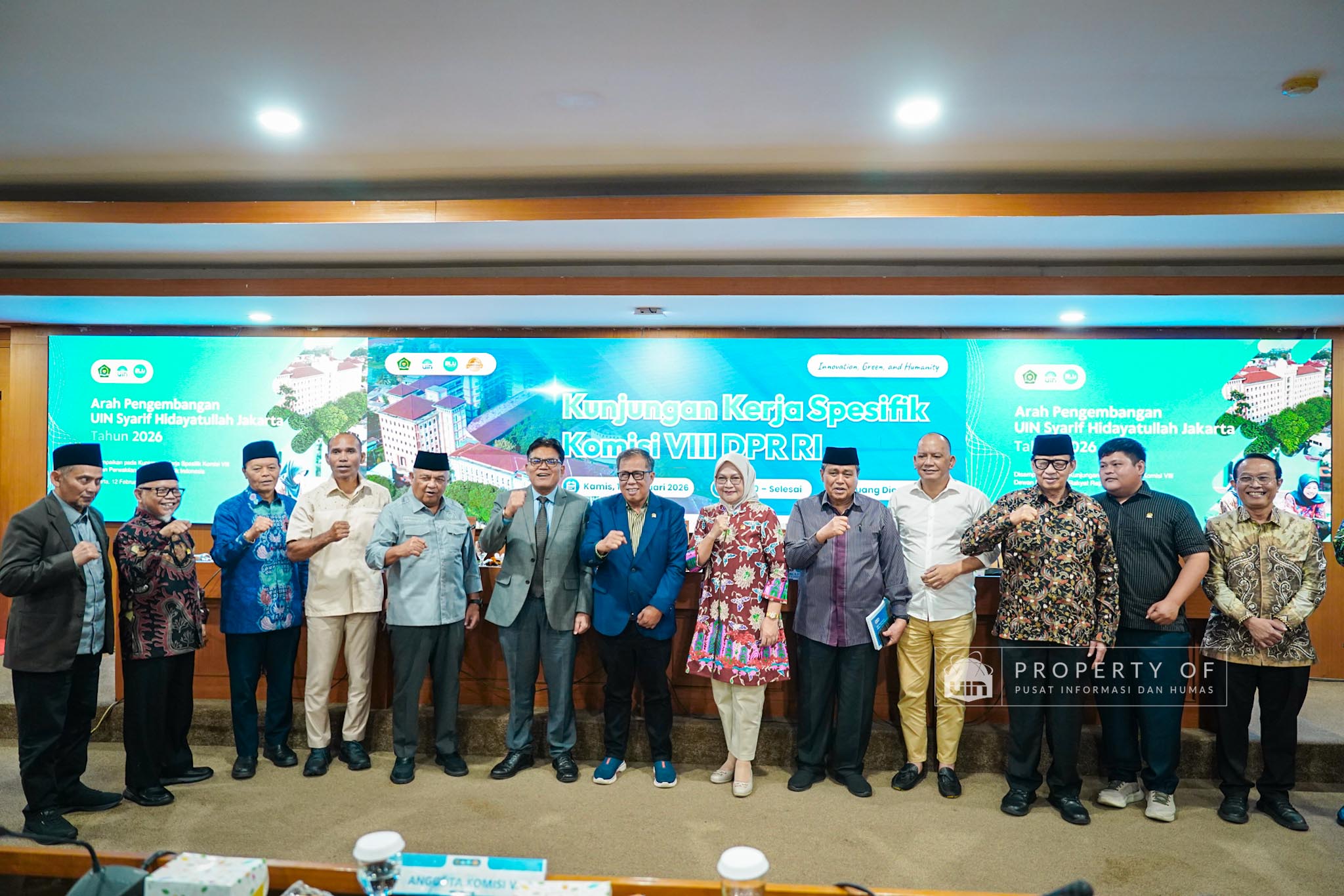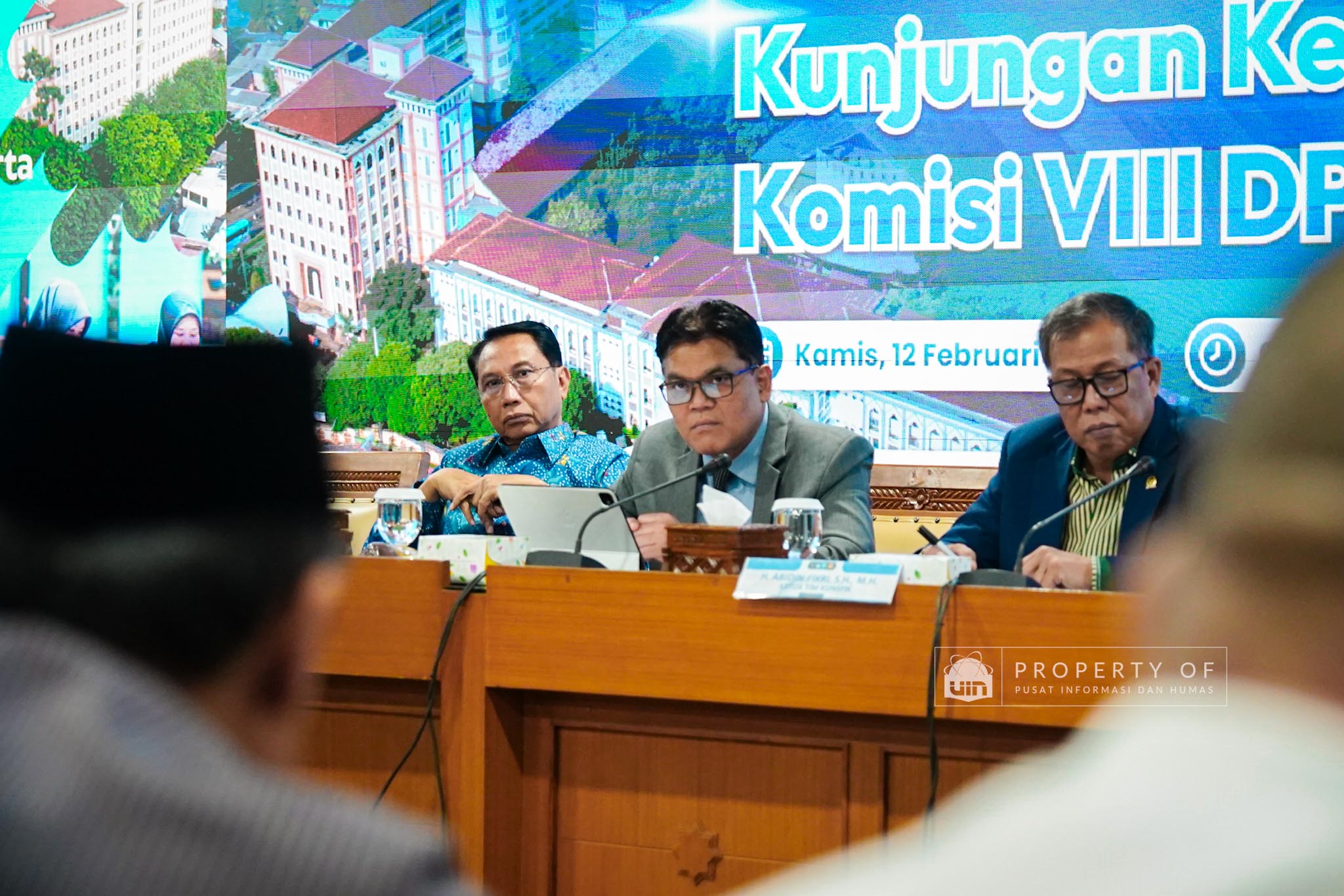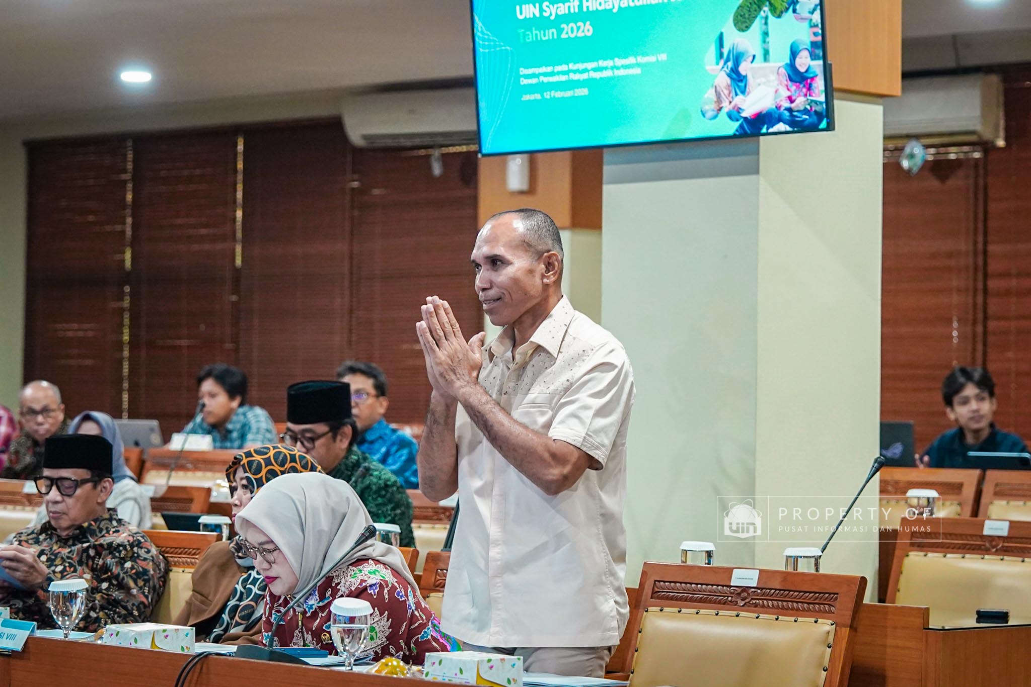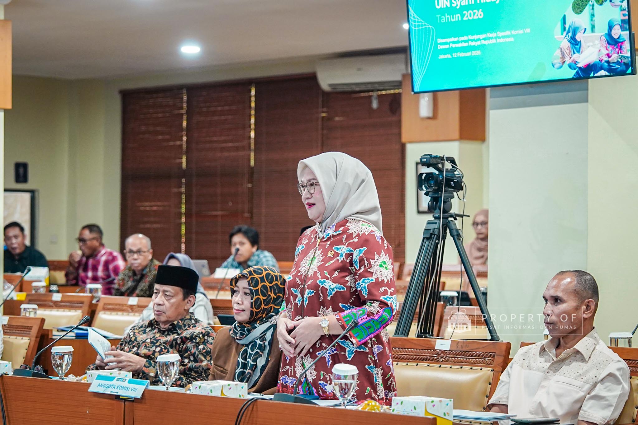 UIN Syarif Hidayatullah Jakarta menerima Kunjungan Kerja Spesifik Komisi VIII DPR RI untuk meninjau kesiapan dan pengembangan pendidikan tinggi keagamaan, di Ruang Diorama, Kamis (12/02/2026). Rektor UIN Jakarta memaparkan roadmap 2025-2029 yang menekankan digitalisasi, transformasi menuju PTN-BH, serta konsep Green Campus. (Fotografer: Azka Raysa Pratama/Teks: Tiara Septiana Dewi/Pusat Informasi dan Humas UIN Jakarta)