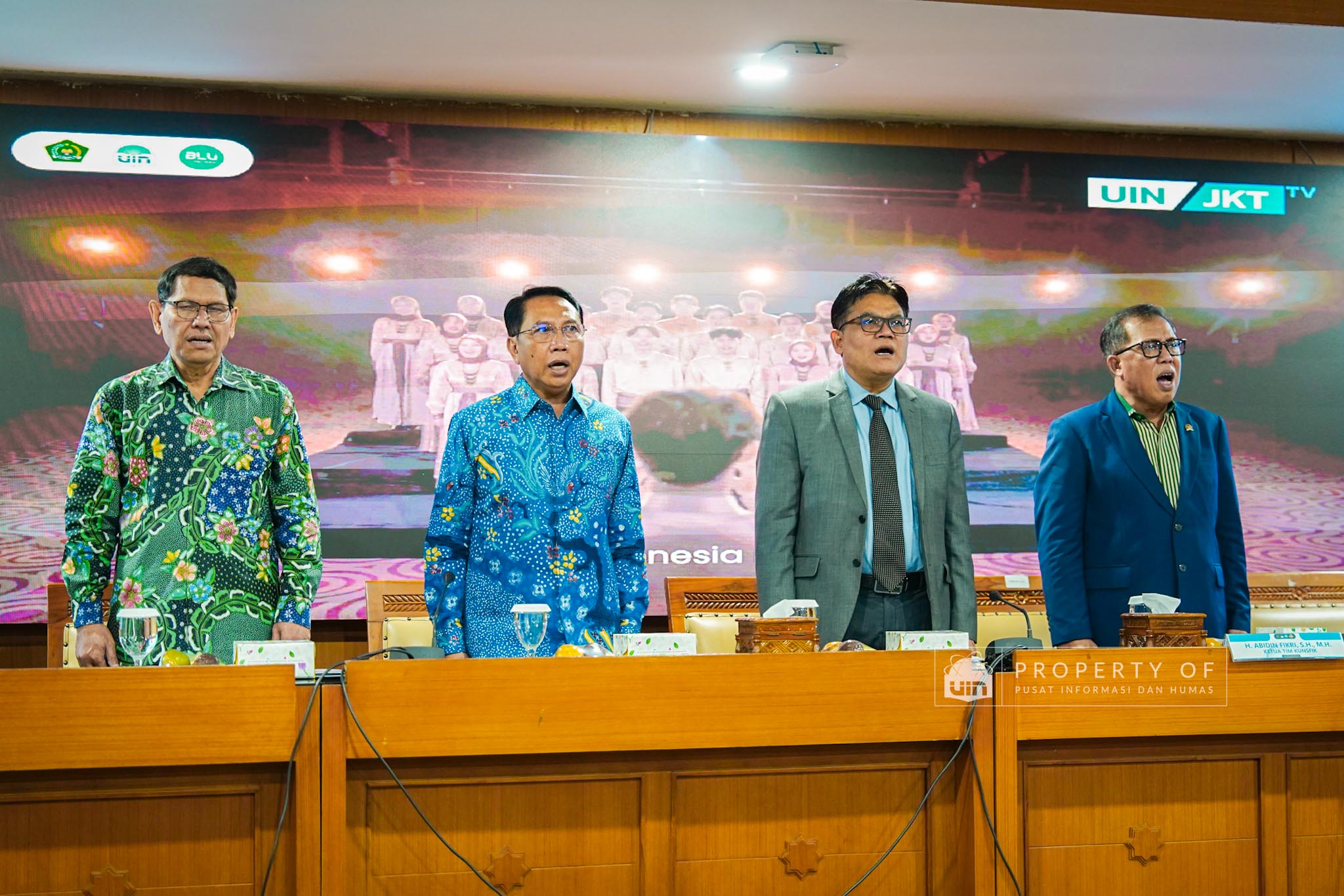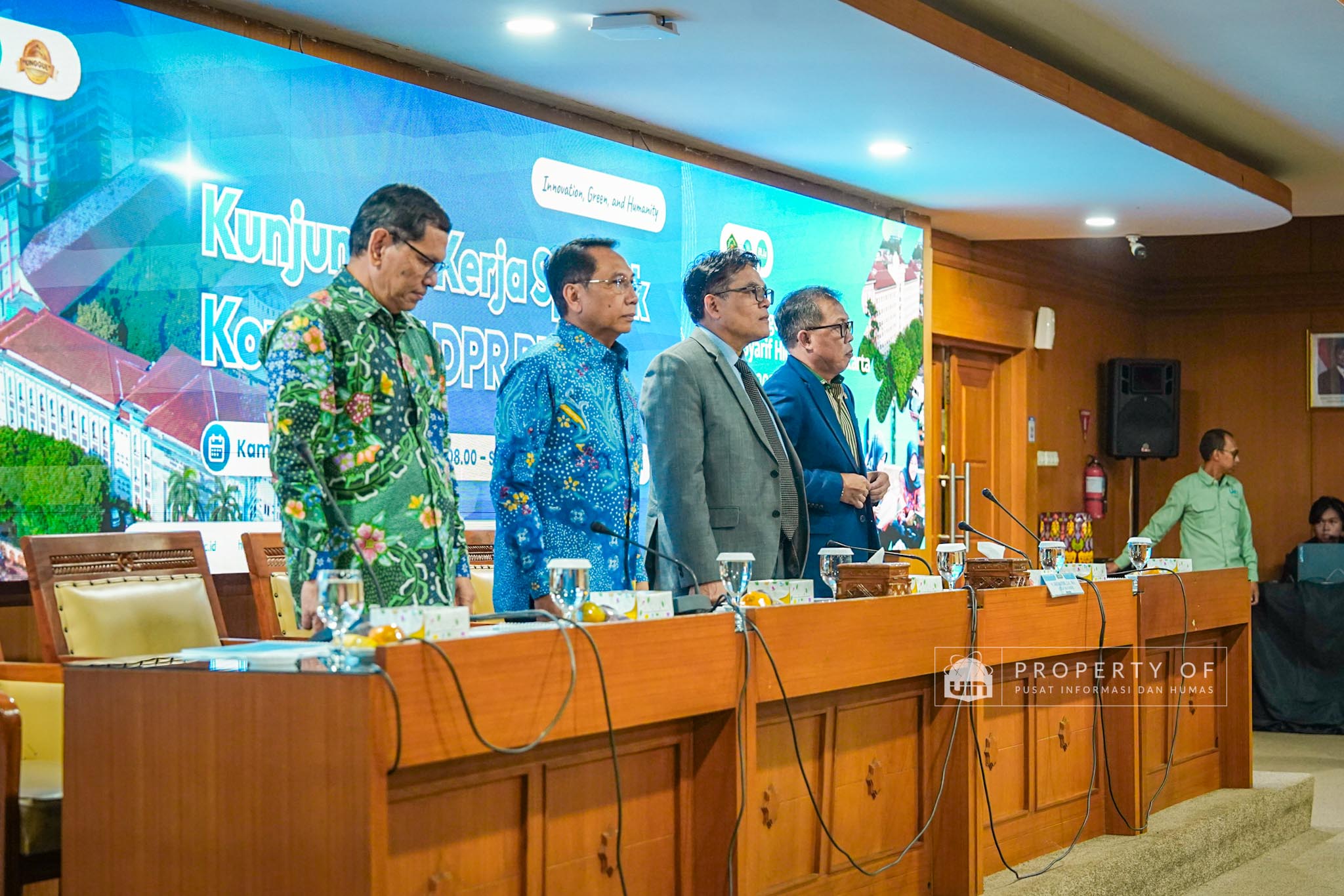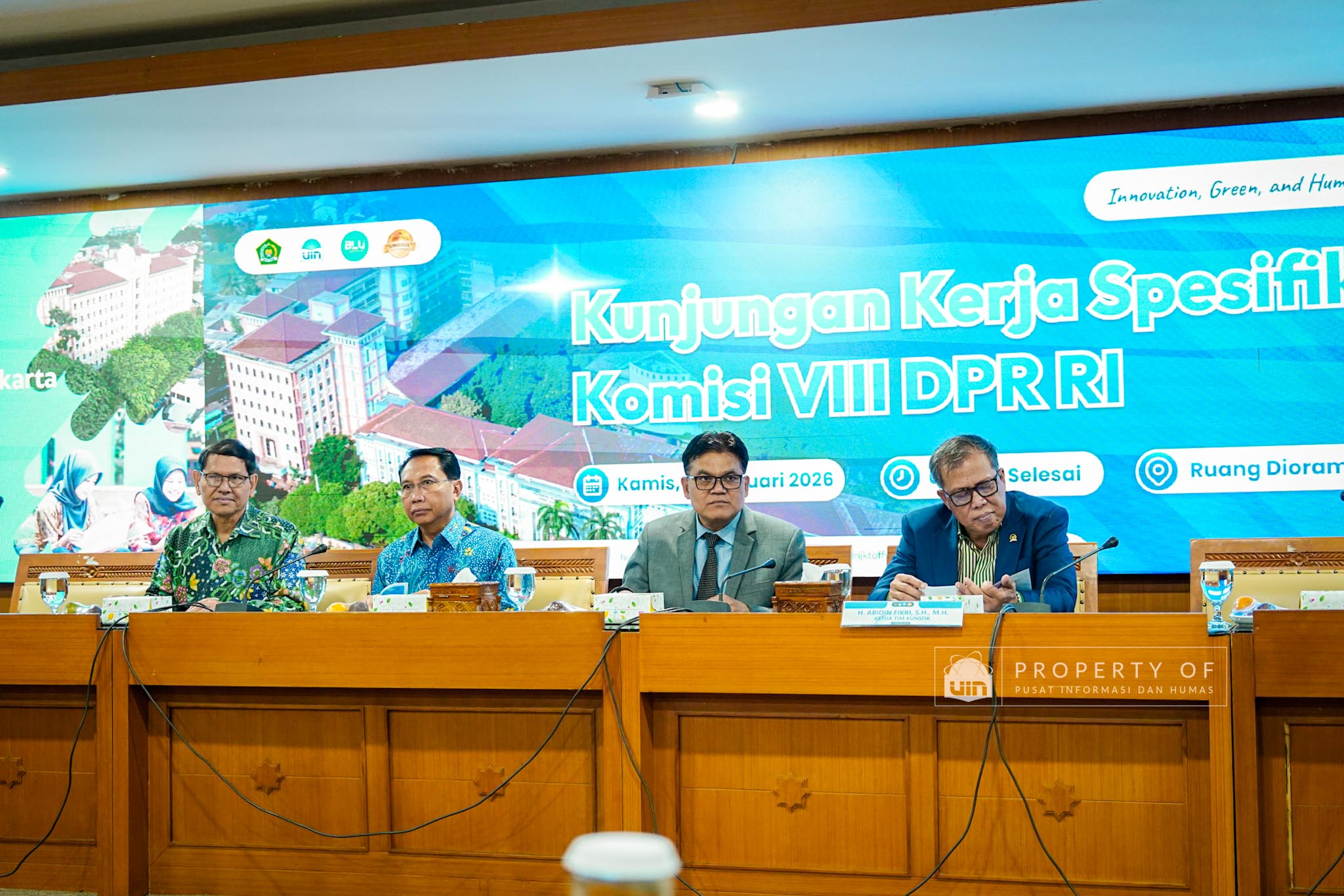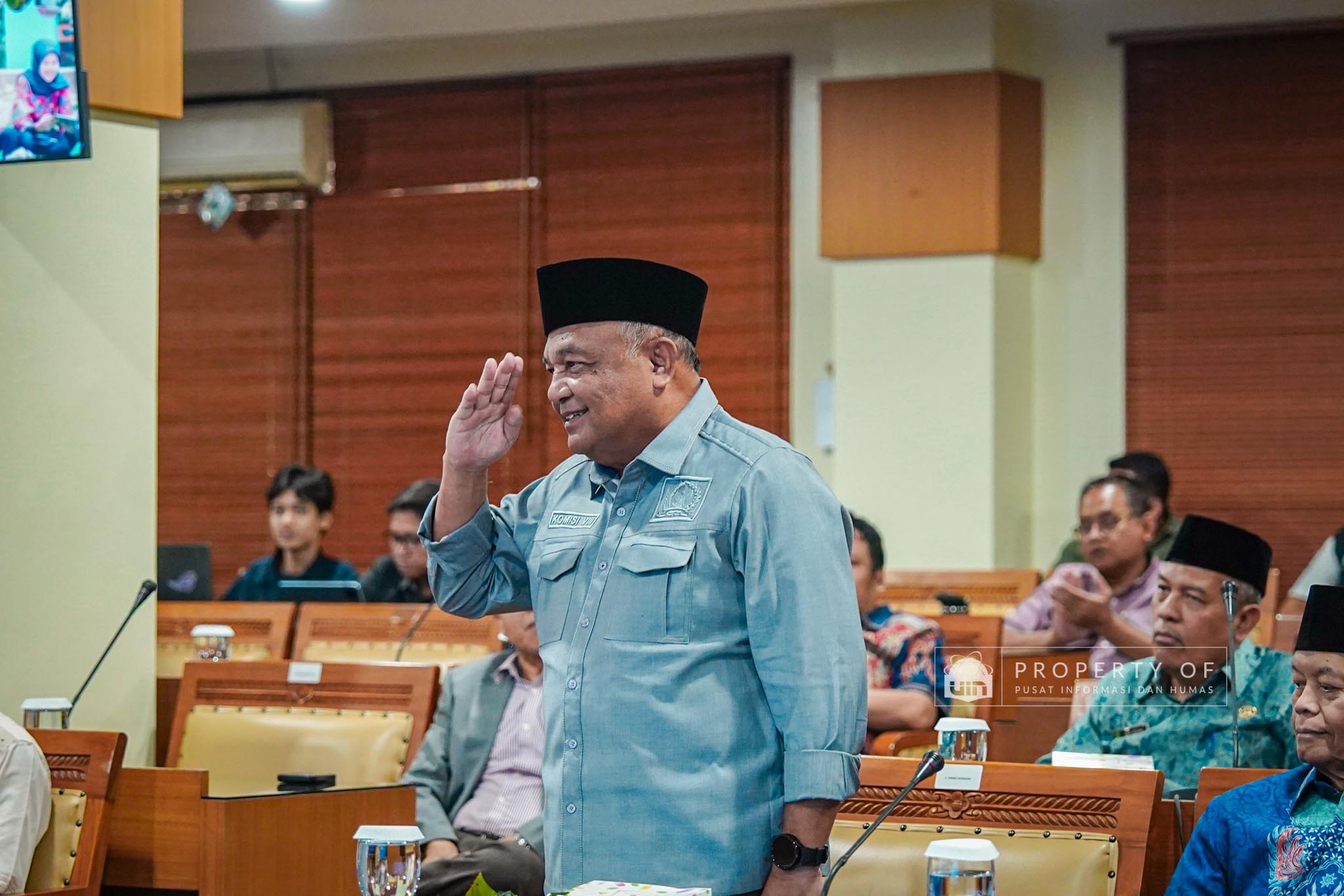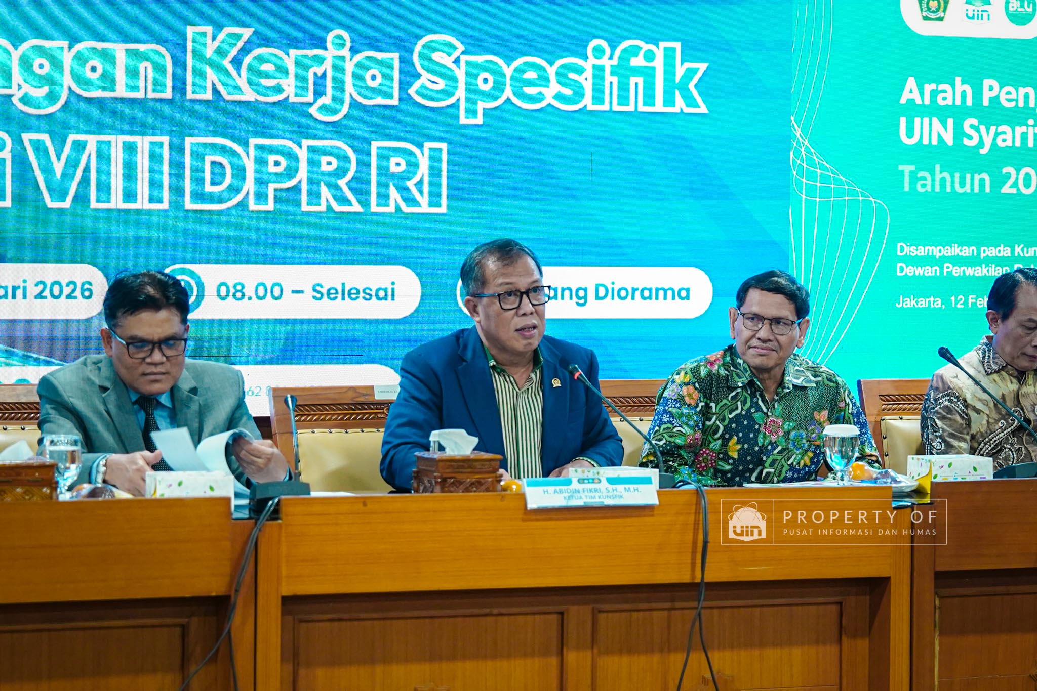 UIN Syarif Hidayatullah Jakarta menerima Kunjungan Kerja Spesifik Komisi VIII DPR RI untuk meninjau kesiapan dan pengembangan pendidikan tinggi keagamaan, di Ruang Diorama, Kamis (12/02/2026). Rektor UIN Jakarta memaparkan roadmap 2025-2029 yang menekankan digitalisasi, transformasi menuju PTN-BH, serta konsep Green Campus. (Fotografer: Azka Raysa Pratama/Teks: Tiara Septiana Dewi/Pusat Informasi dan Humas UIN Jakarta)