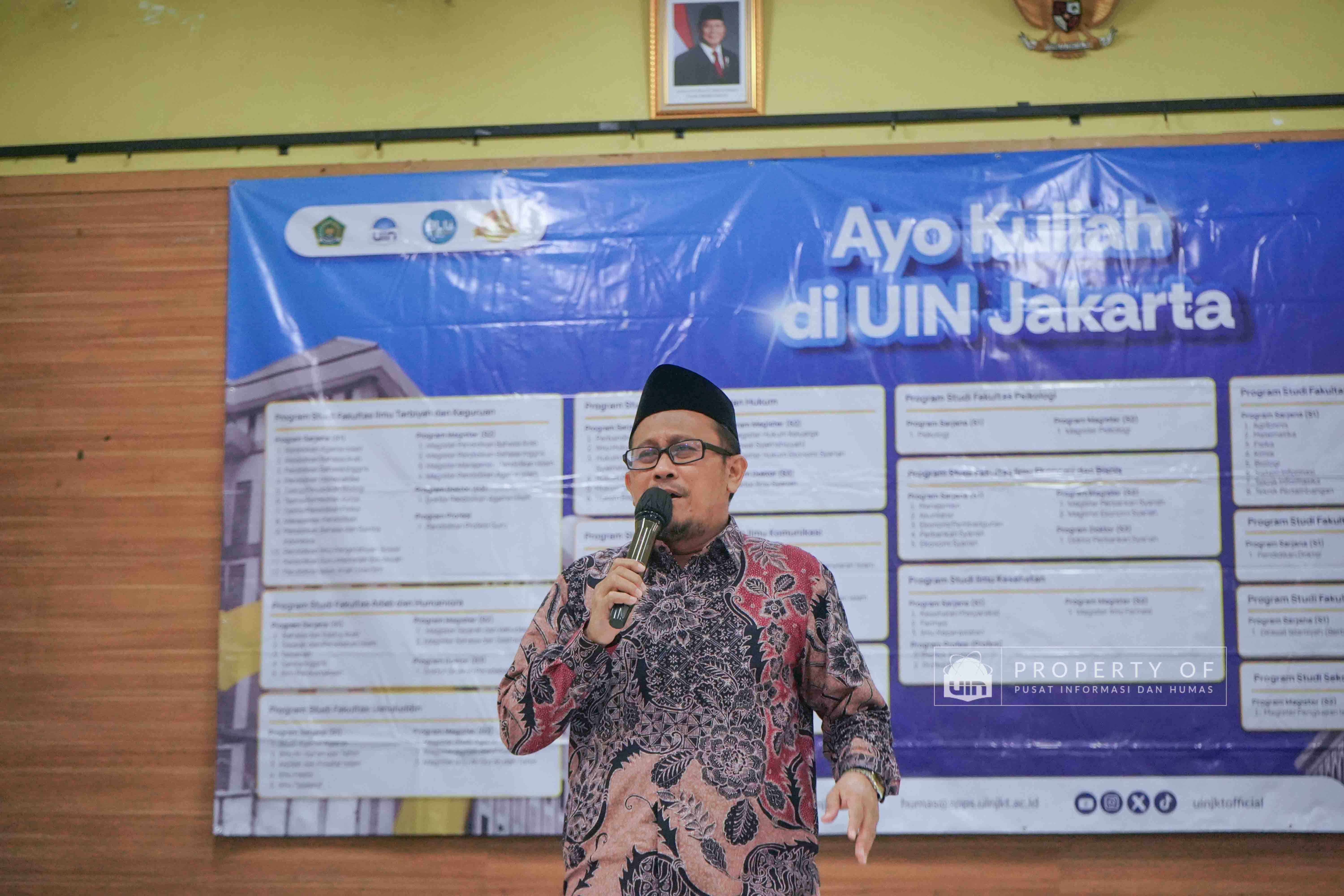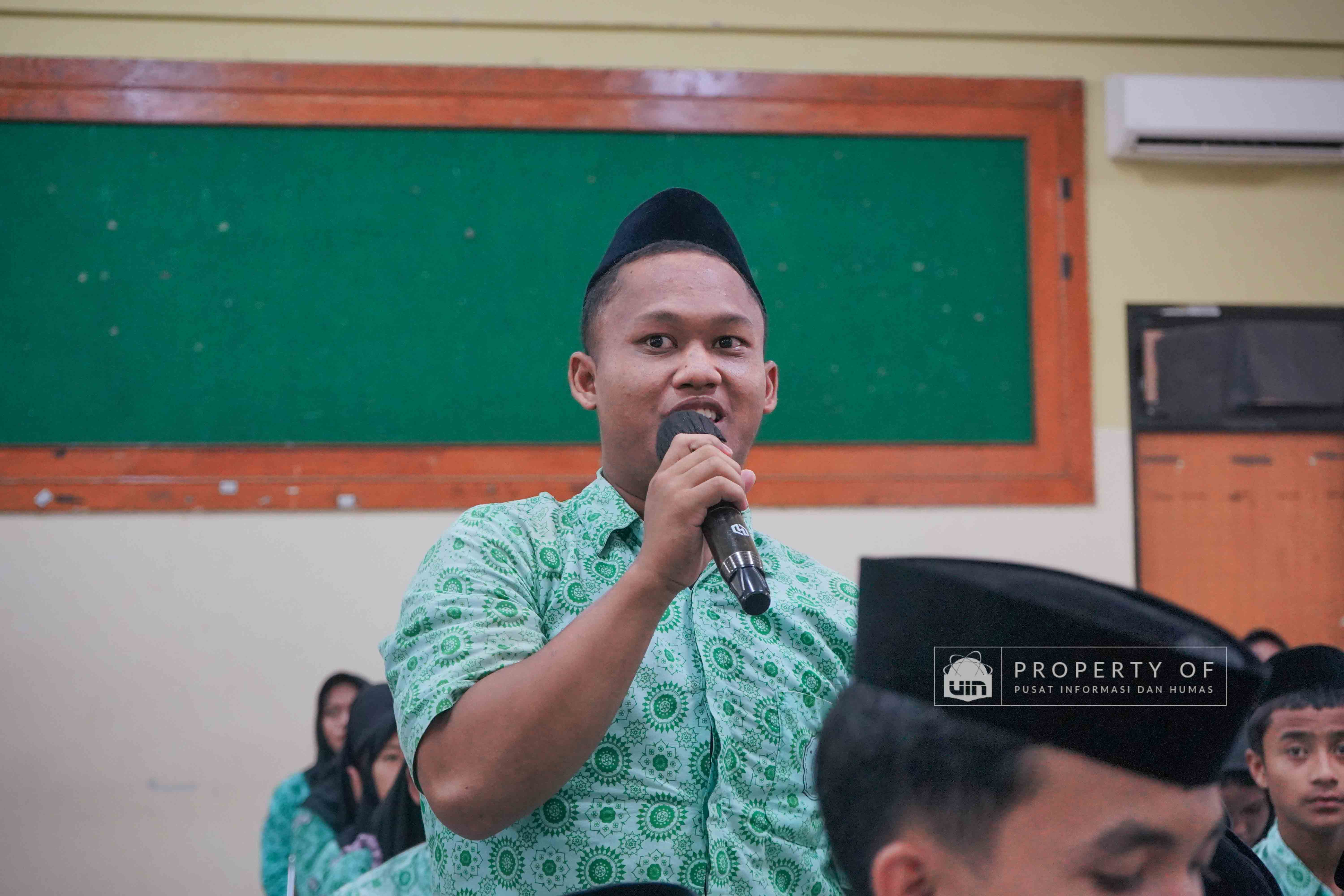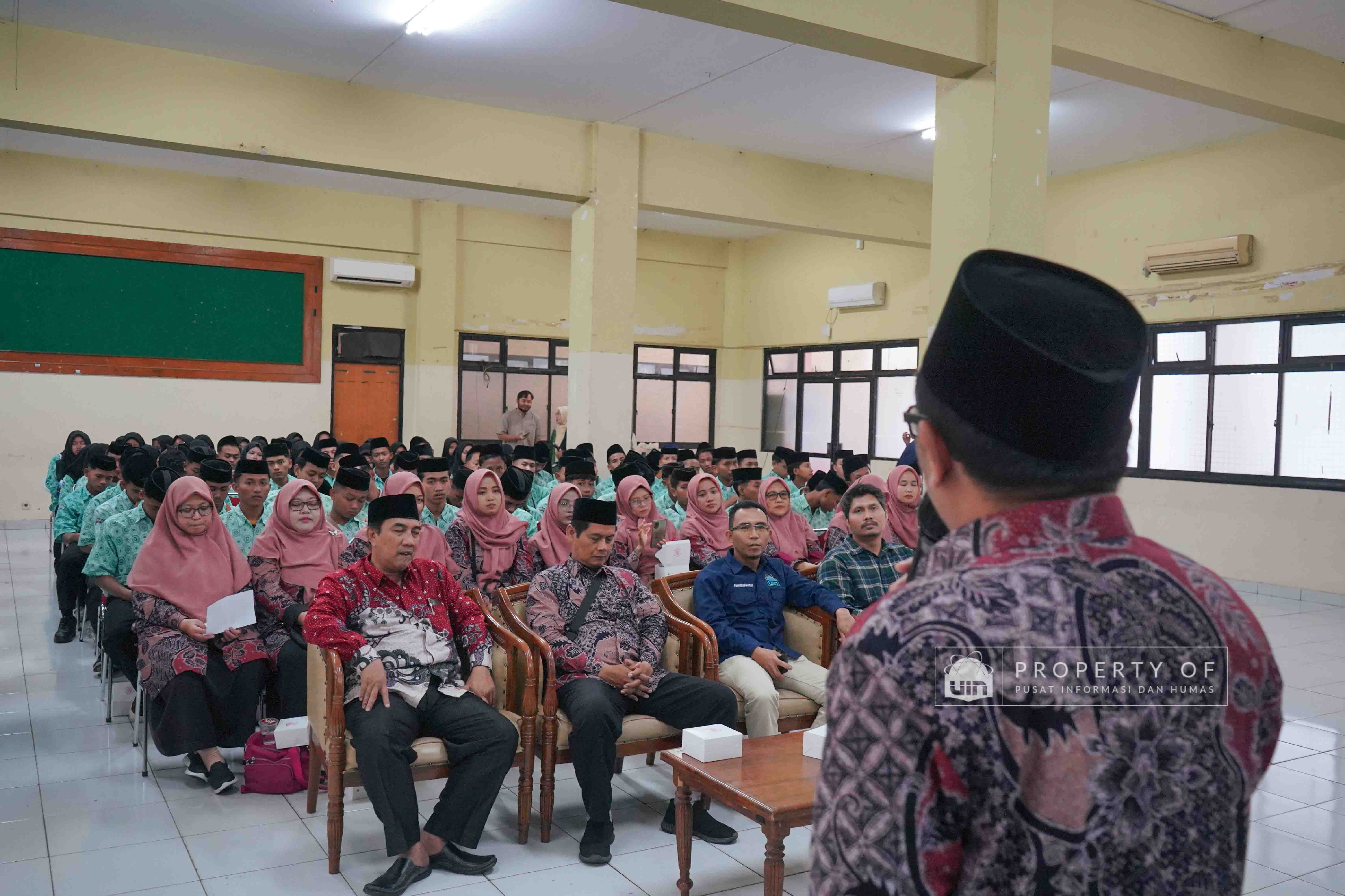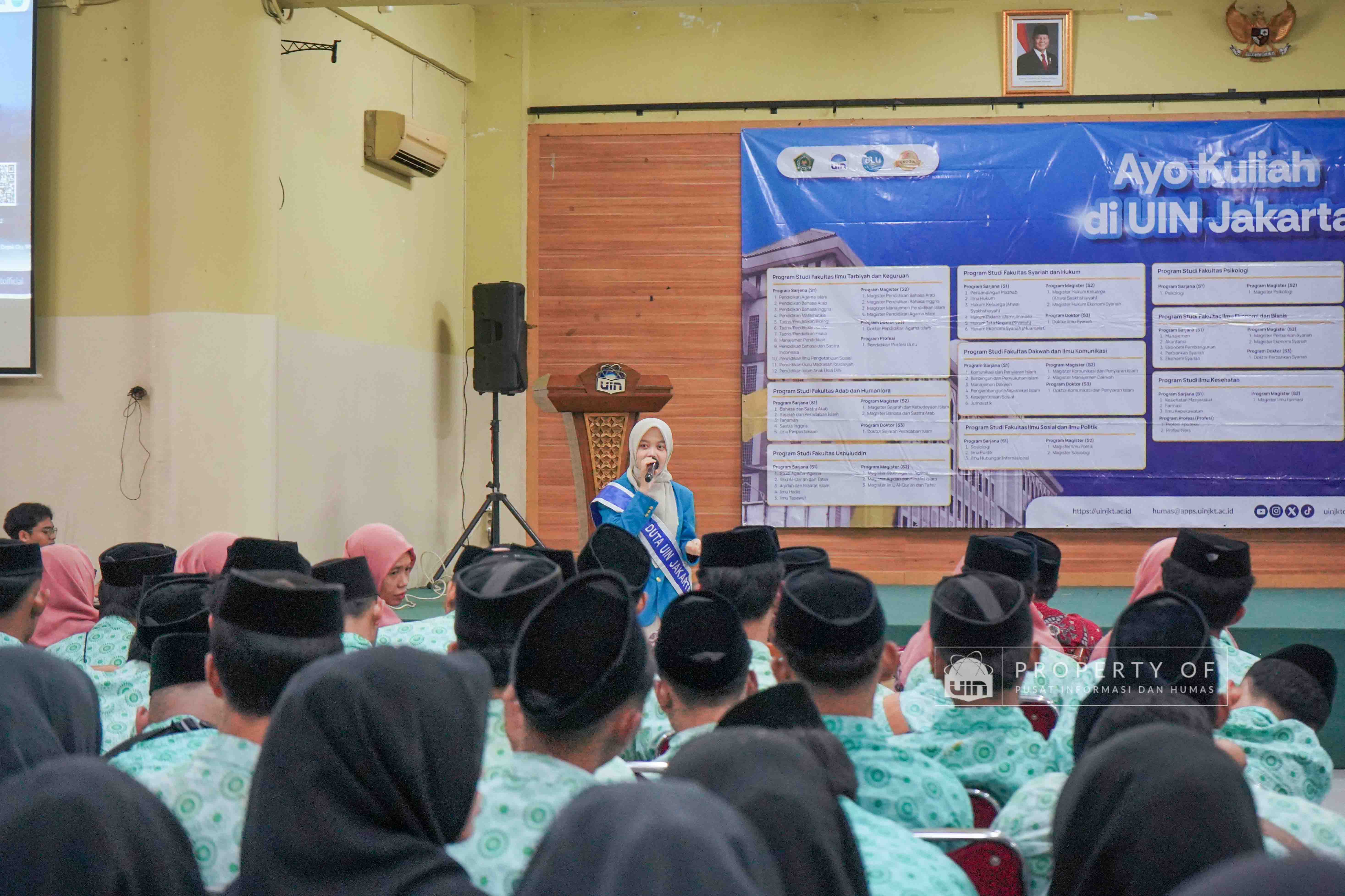 UIN Syarif Hidayatullah Jakarta menyambut kunjungan 200 siswa dan 20 tenaga pendidik dari MA Assalafiyah Luwungragi Brebes, Jawa Tengah, dalam kegiatan rihlah ilmiah yang berlangsung di Aula Student Center UIN Jakarta, Kamis (15/01/2026). Kegiatan ini bertujuan memberikan gambaran tentang kehidupan akademik di perguruan tinggi, termasuk pengenalan fakultas, jalur masuk, serta peluang beasiswa di UIN Jakarta. Dalam kesempatan tersebut, Ketua Tim Kemahasiswaan dan Alumni UIN Jakarta, Muhammad Furqon, S.Pd.I., M.A., menyampaikan kesiapan UIN Jakarta dalam menerima lulusan dari berbagai daerah serta peningkatan kuota penerimaan mahasiswa baru tahun 2026, sekaligus mendorong para siswa untuk melanjutkan pendidikan tinggi sesuai minat dan potensi mereka. (Fotografer: Rajif Ramadhan/Teks: Tiara Septiana Dewi/Pusat Informasi dan Humas UIN Jakarta)