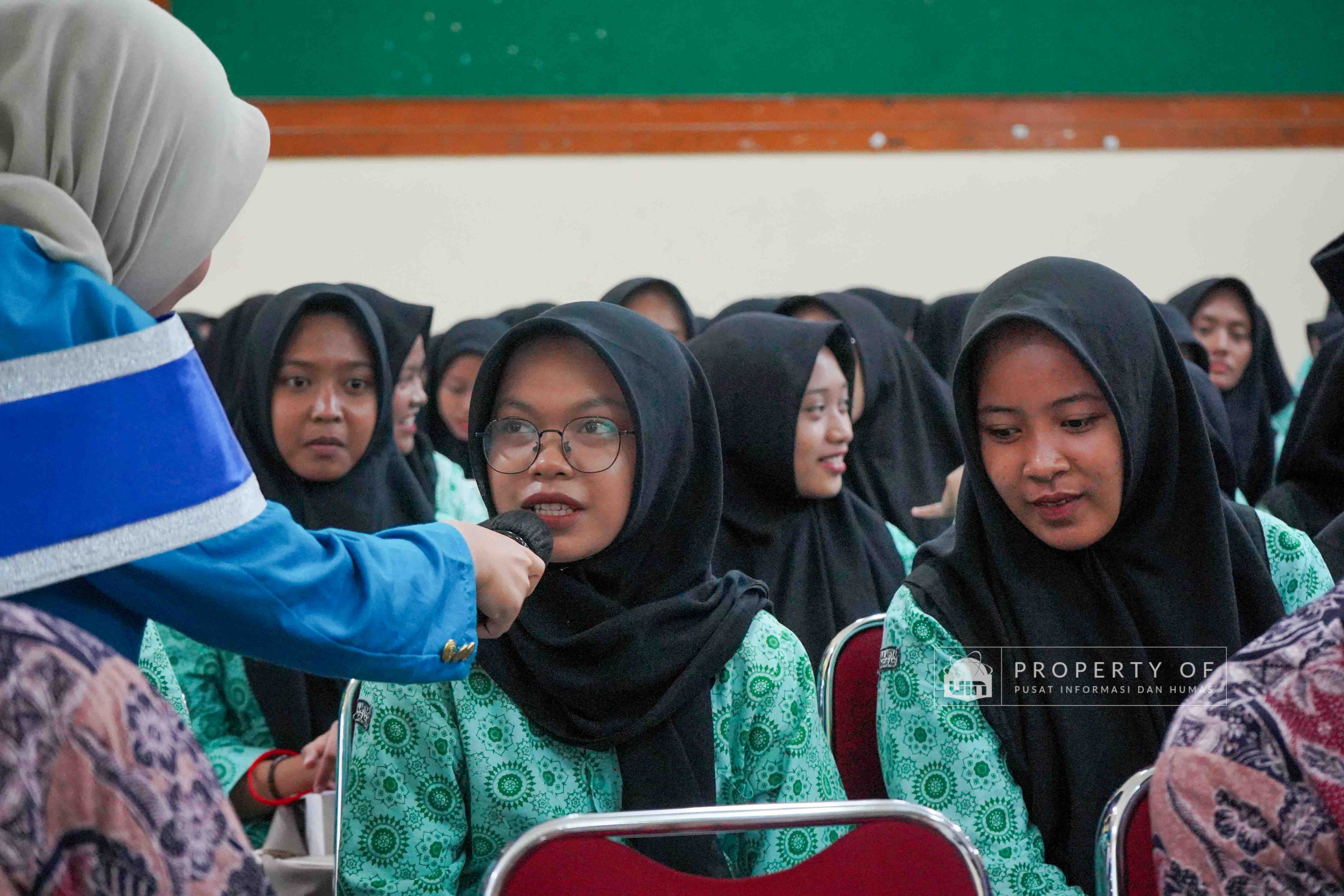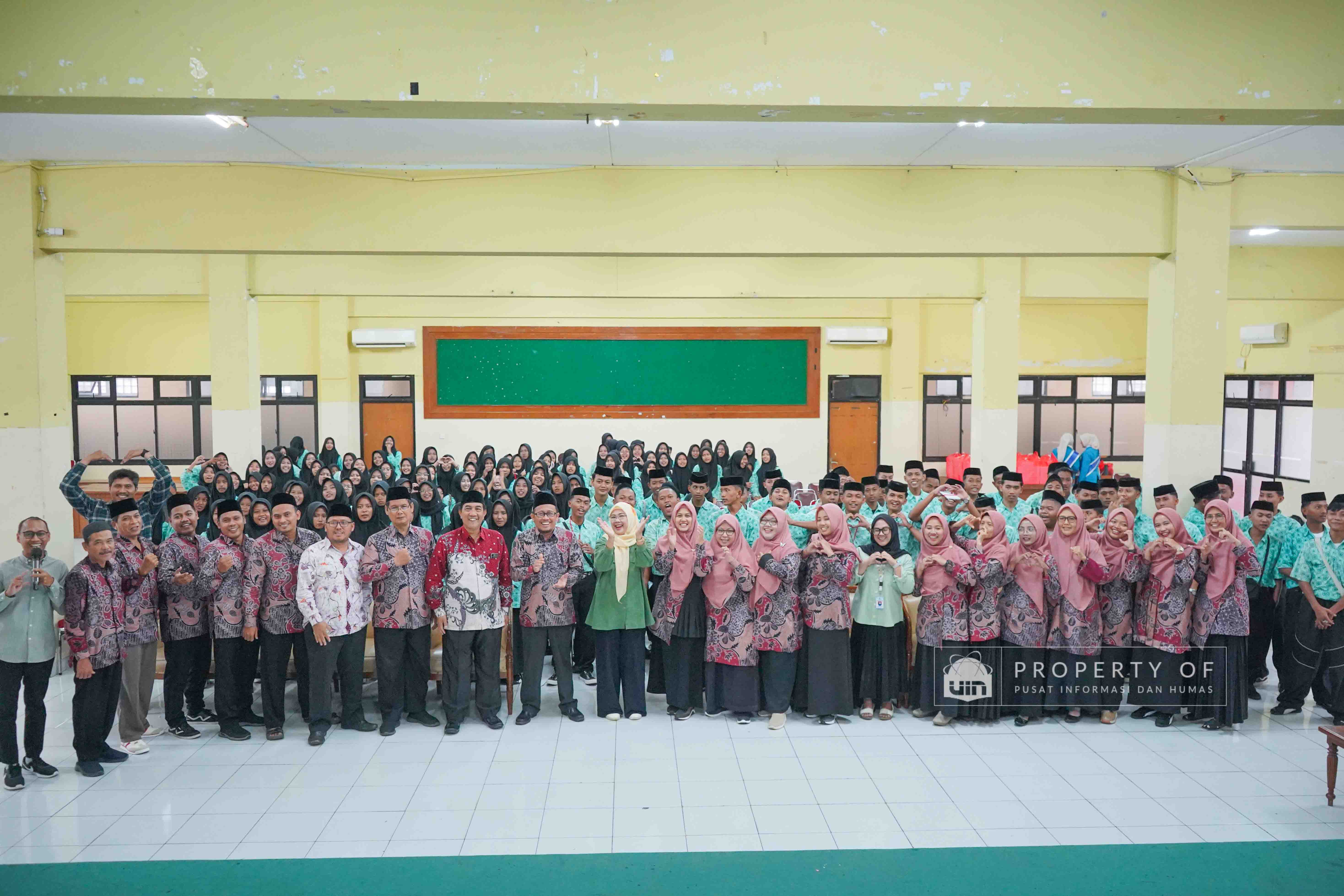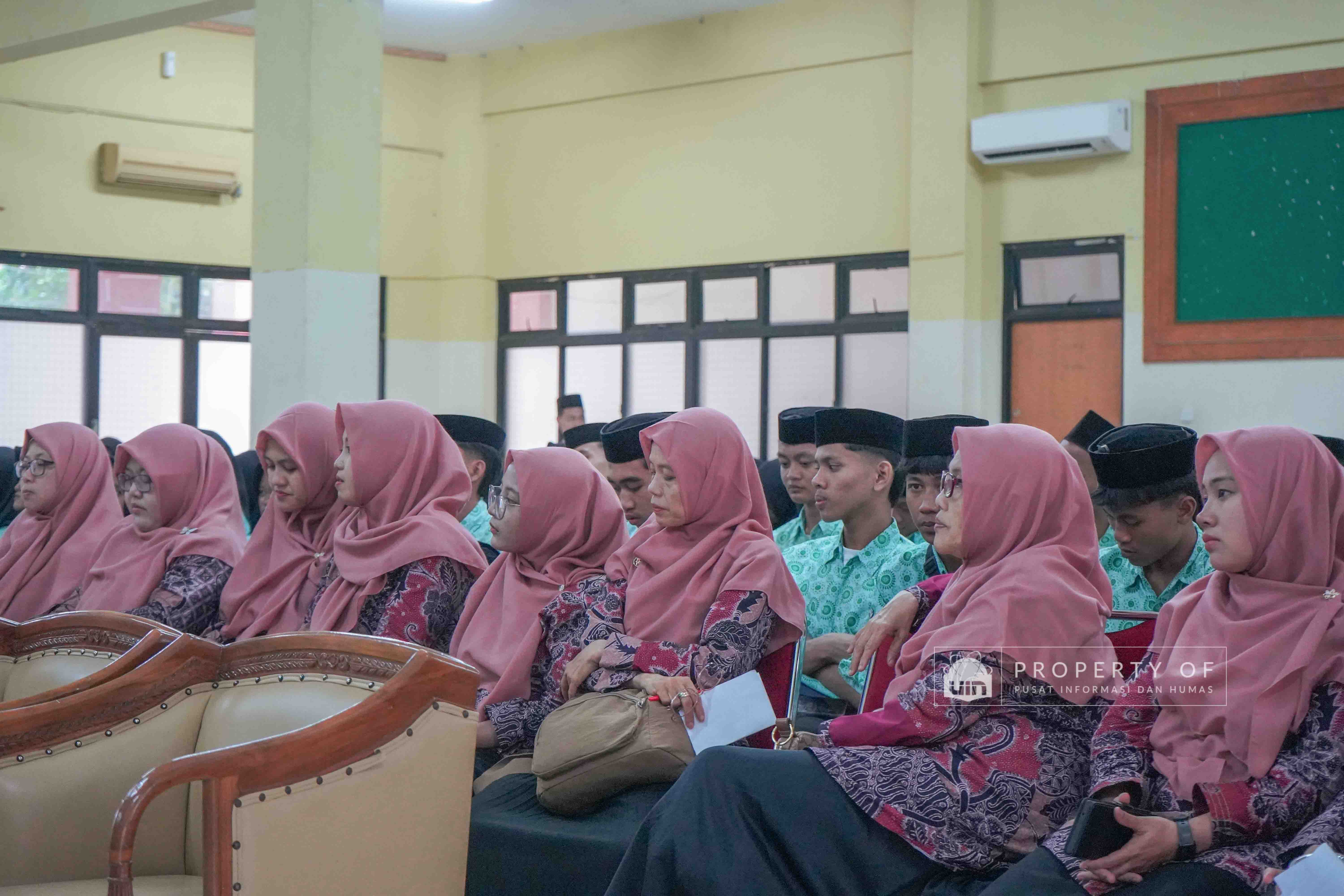 UIN Syarif Hidayatullah Jakarta menyambut kunjungan 200 siswa dan 20 tenaga pendidik dari MA Assalafiyah Luwungragi Brebes, Jawa Tengah, dalam kegiatan rihlah ilmiah yang berlangsung di Aula Student Center UIN Jakarta, Kamis (15/01/2026). Kegiatan ini bertujuan memberikan gambaran tentang kehidupan akademik di perguruan tinggi, termasuk pengenalan fakultas, jalur masuk, serta peluang beasiswa di UIN Jakarta. Dalam kesempatan tersebut, Ketua Tim Kemahasiswaan dan Alumni UIN Jakarta, Muhammad Furqon, S.Pd.I., M.A., menyampaikan kesiapan UIN Jakarta dalam menerima lulusan dari berbagai daerah serta peningkatan kuota penerimaan mahasiswa baru tahun 2026, sekaligus mendorong para siswa untuk melanjutkan pendidikan tinggi sesuai minat dan potensi mereka. (Fotografer: Rajif Ramadhan/Teks: Tiara Septiana Dewi/Pusat Informasi dan Humas UIN Jakarta)