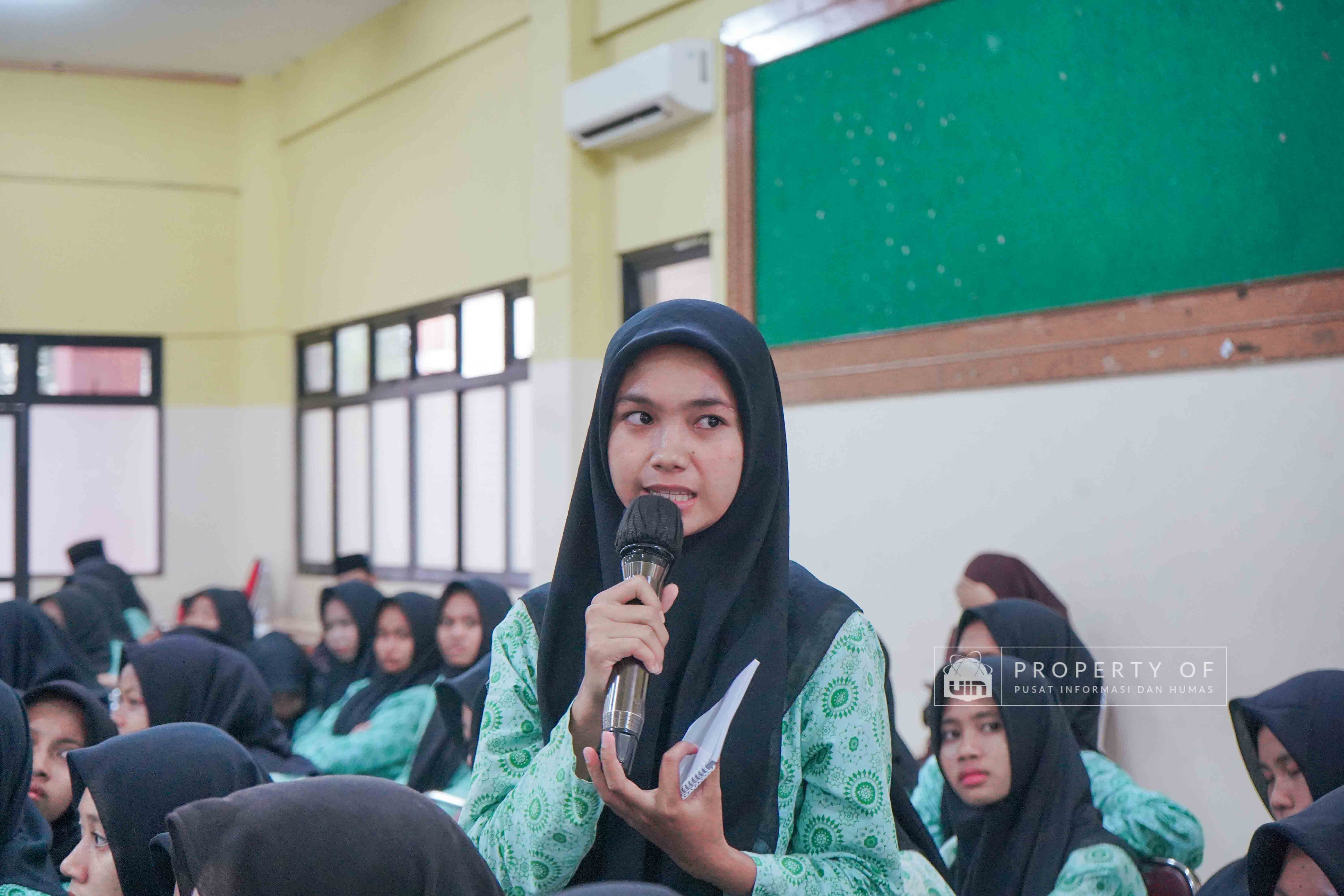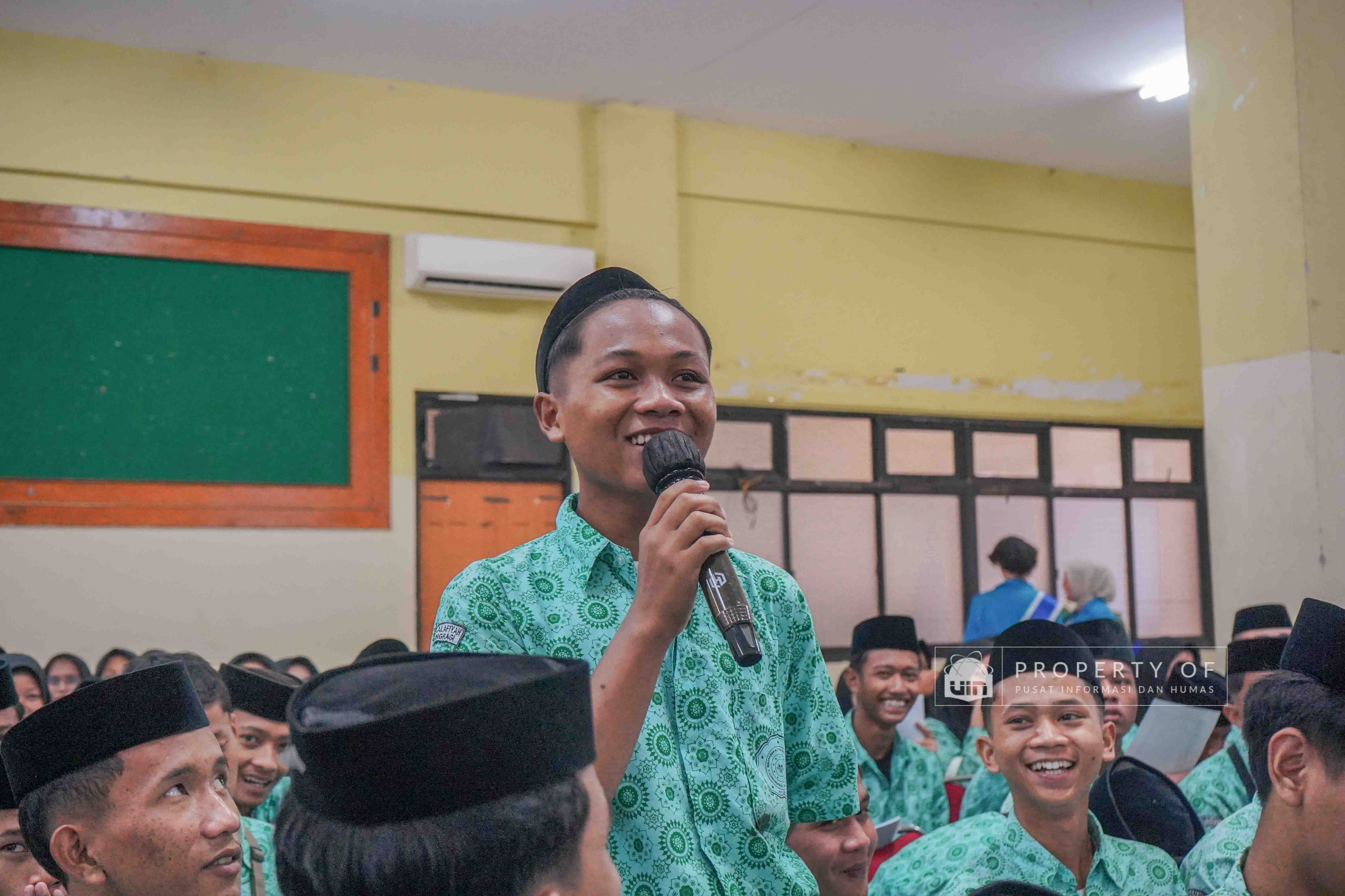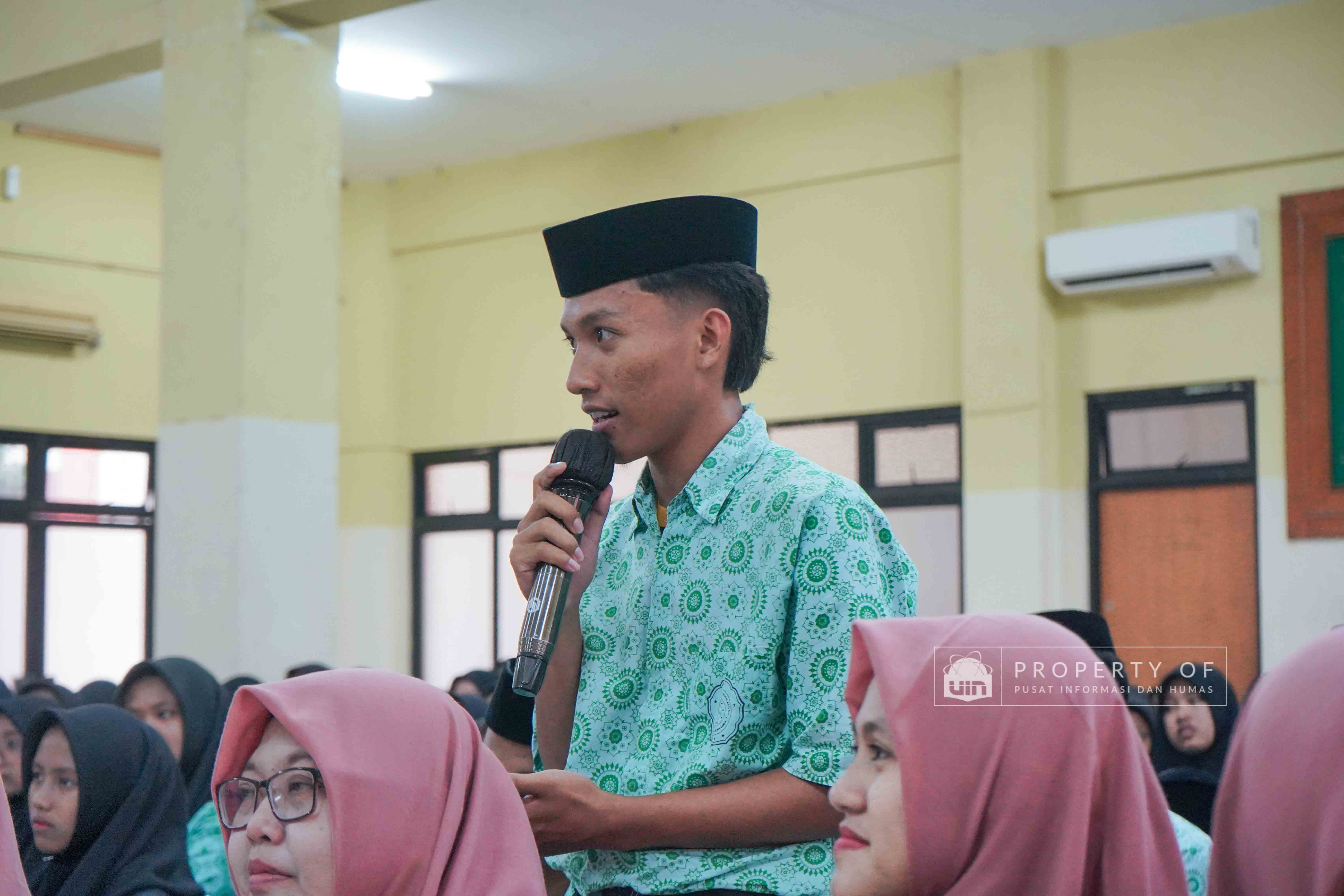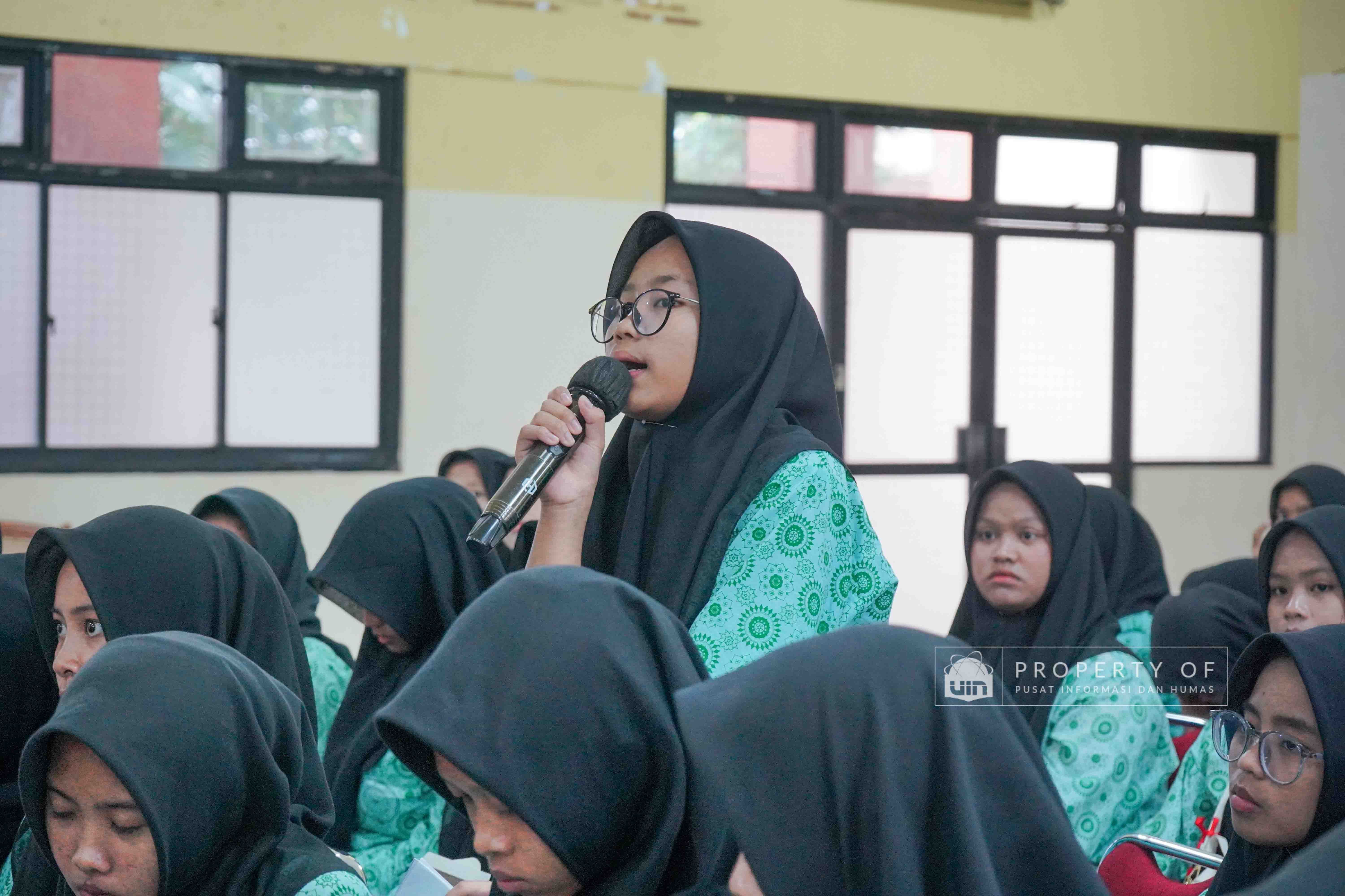 UIN Syarif Hidayatullah Jakarta menyambut kunjungan 200 siswa dan 20 tenaga pendidik dari MA Assalafiyah Luwungragi Brebes, Jawa Tengah, dalam kegiatan rihlah ilmiah yang berlangsung di Aula Student Center UIN Jakarta, Kamis (15/01/2026). Kegiatan ini bertujuan memberikan gambaran tentang kehidupan akademik di perguruan tinggi, termasuk pengenalan fakultas, jalur masuk, serta peluang beasiswa di UIN Jakarta. Dalam kesempatan tersebut, Ketua Tim Kemahasiswaan dan Alumni UIN Jakarta, Muhammad Furqon, S.Pd.I., M.A., menyampaikan kesiapan UIN Jakarta dalam menerima lulusan dari berbagai daerah serta peningkatan kuota penerimaan mahasiswa baru tahun 2026, sekaligus mendorong para siswa untuk melanjutkan pendidikan tinggi sesuai minat dan potensi mereka. (Fotografer: Rajif Ramadhan/Teks: Tiara Septiana Dewi/Pusat Informasi dan Humas UIN Jakarta)