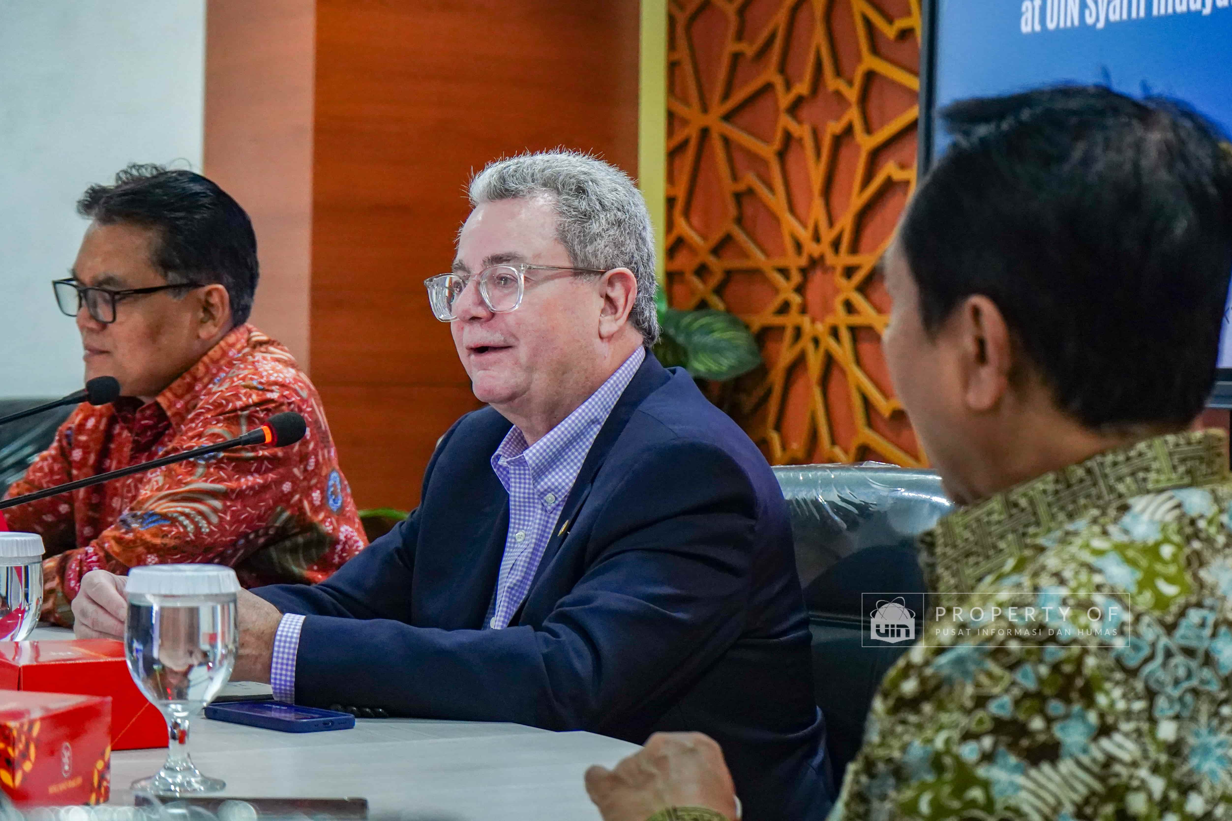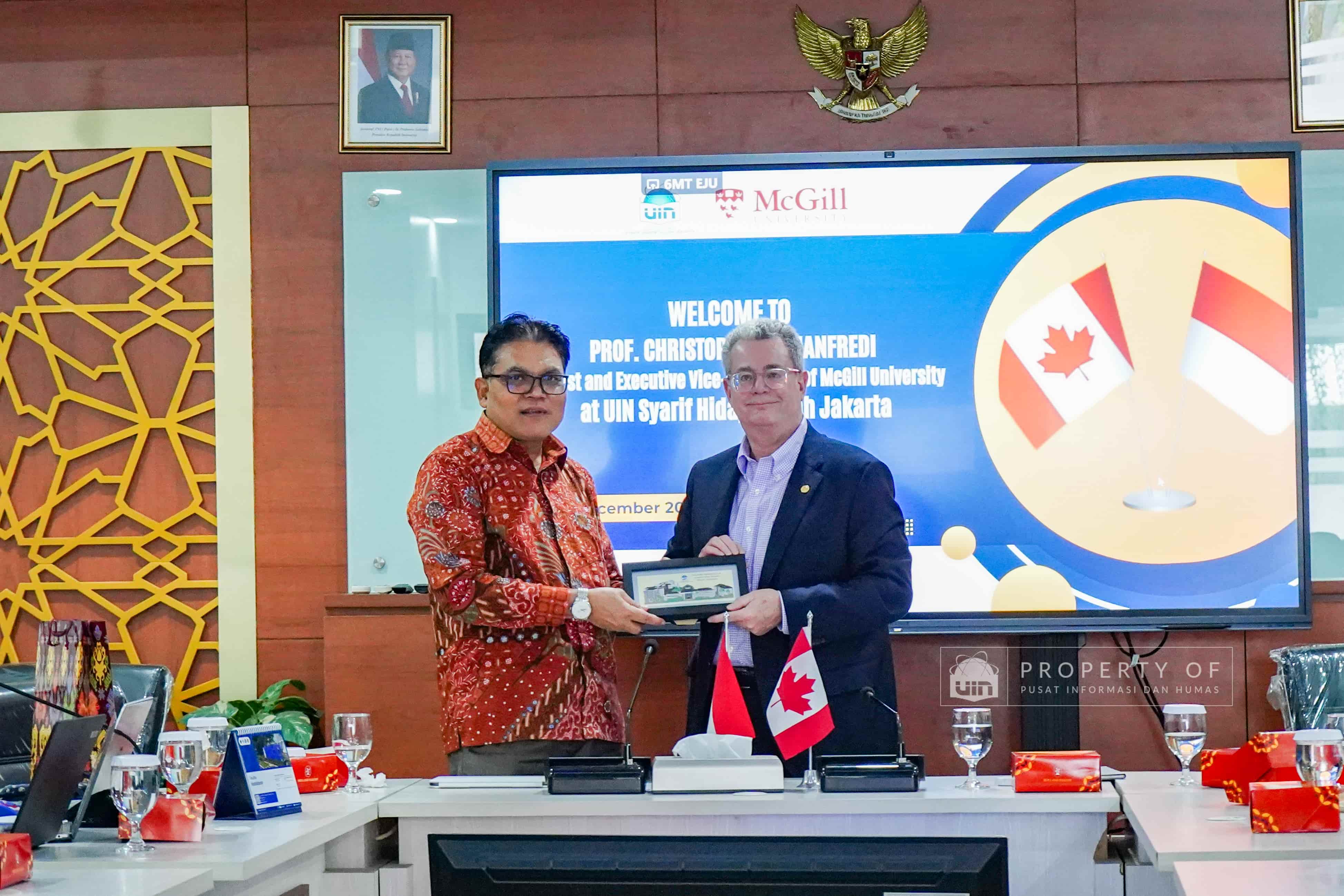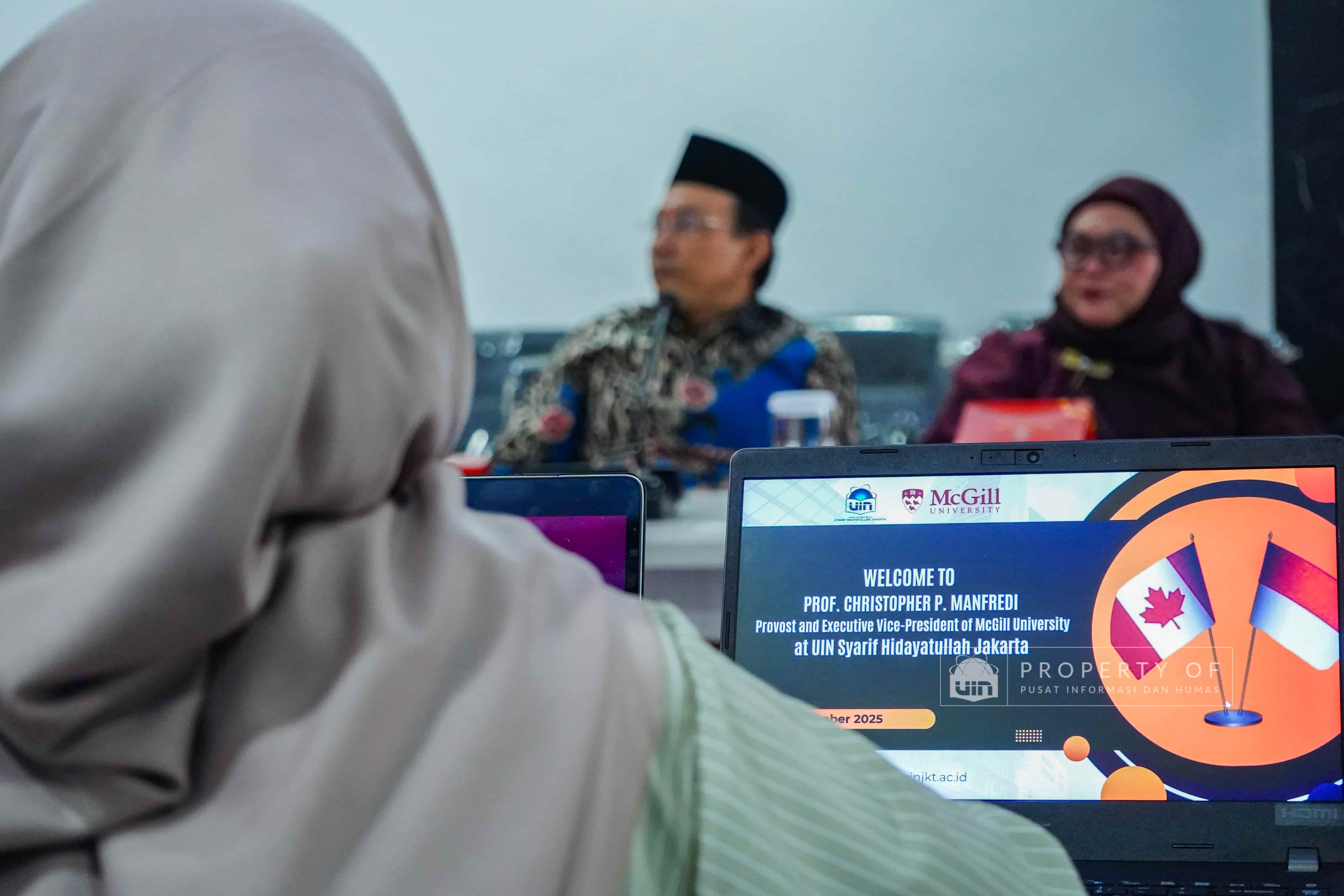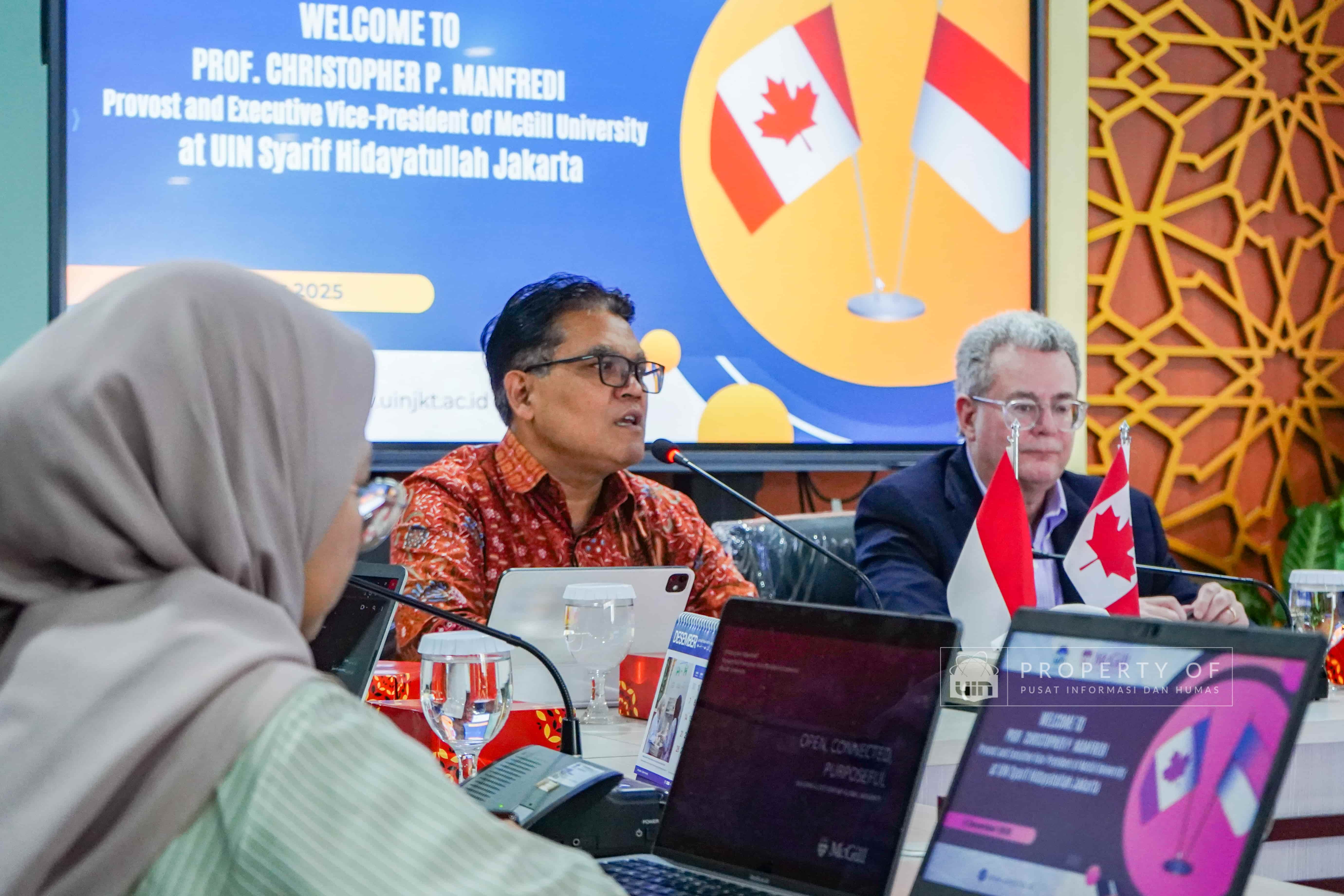 UIN Syarif Hidayatullah Jakarta sambut kunjungan resmi Provost and Executive Vice-President dari McGill University, Prof. Christopher P. Manfredi, Jumat (5/12/2025). Kunjungan ini diadakan untuk menjalin kerjasama UIN Jakarta pada tingkat internasional dalam hal pengembangan program akademik yang komprehensif. Acara ini dihadiri oleh Rektor UIN Jakarta, Prof. Asep Saepudin Jahar, M.A., Ph.D., dalam sambutannya mengatakan adanya kunjungan ini dilaksanakan untuk memperluas peluang kolaborasi dengan Universitas McGill, Kanada, khususnya di bidang akademik. (Fotografer: Fajri Raisa dan Tiara Abdhie/Teks: Fajri Nafisa/Pusat Informasi dan Humas UIN Jakarta)