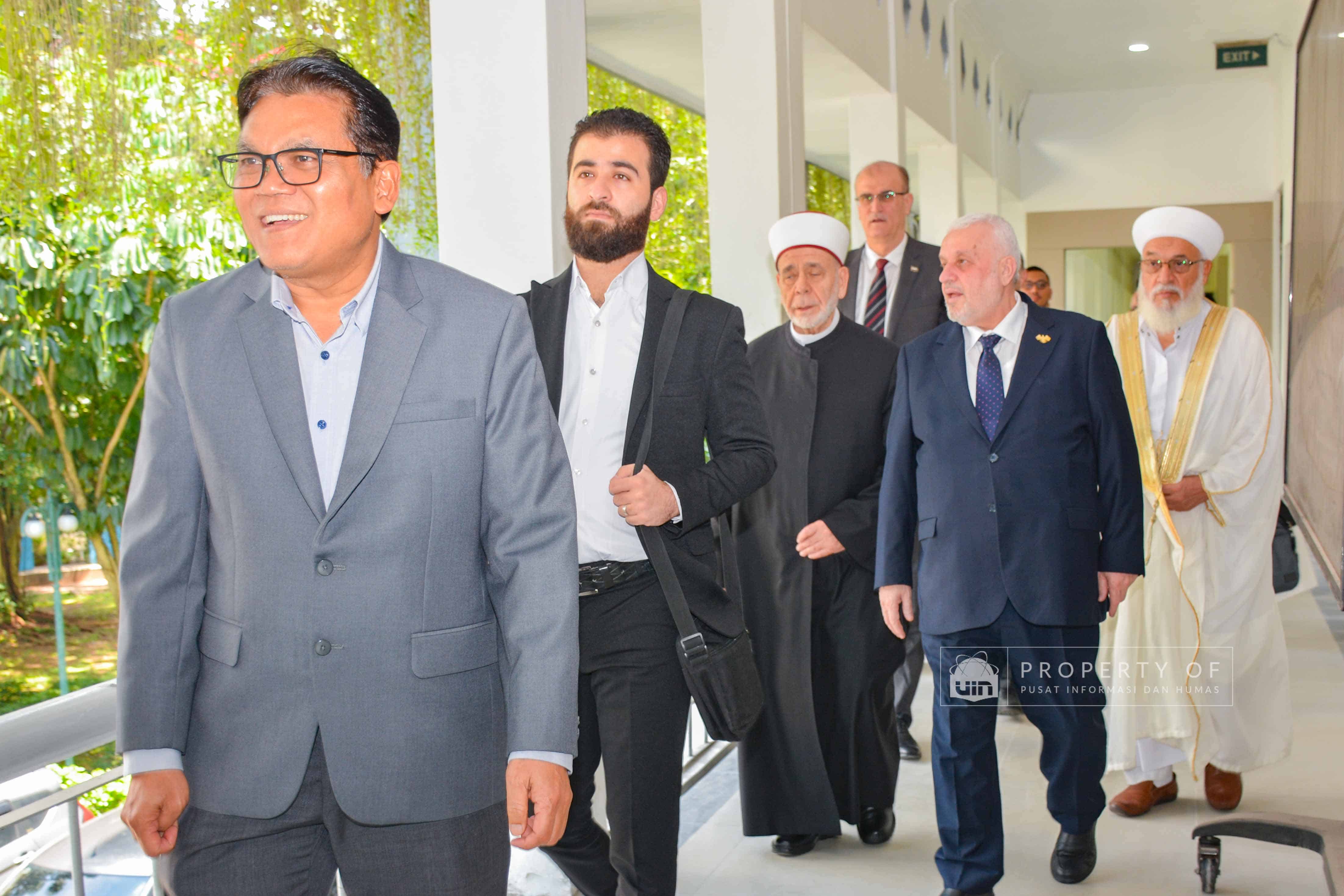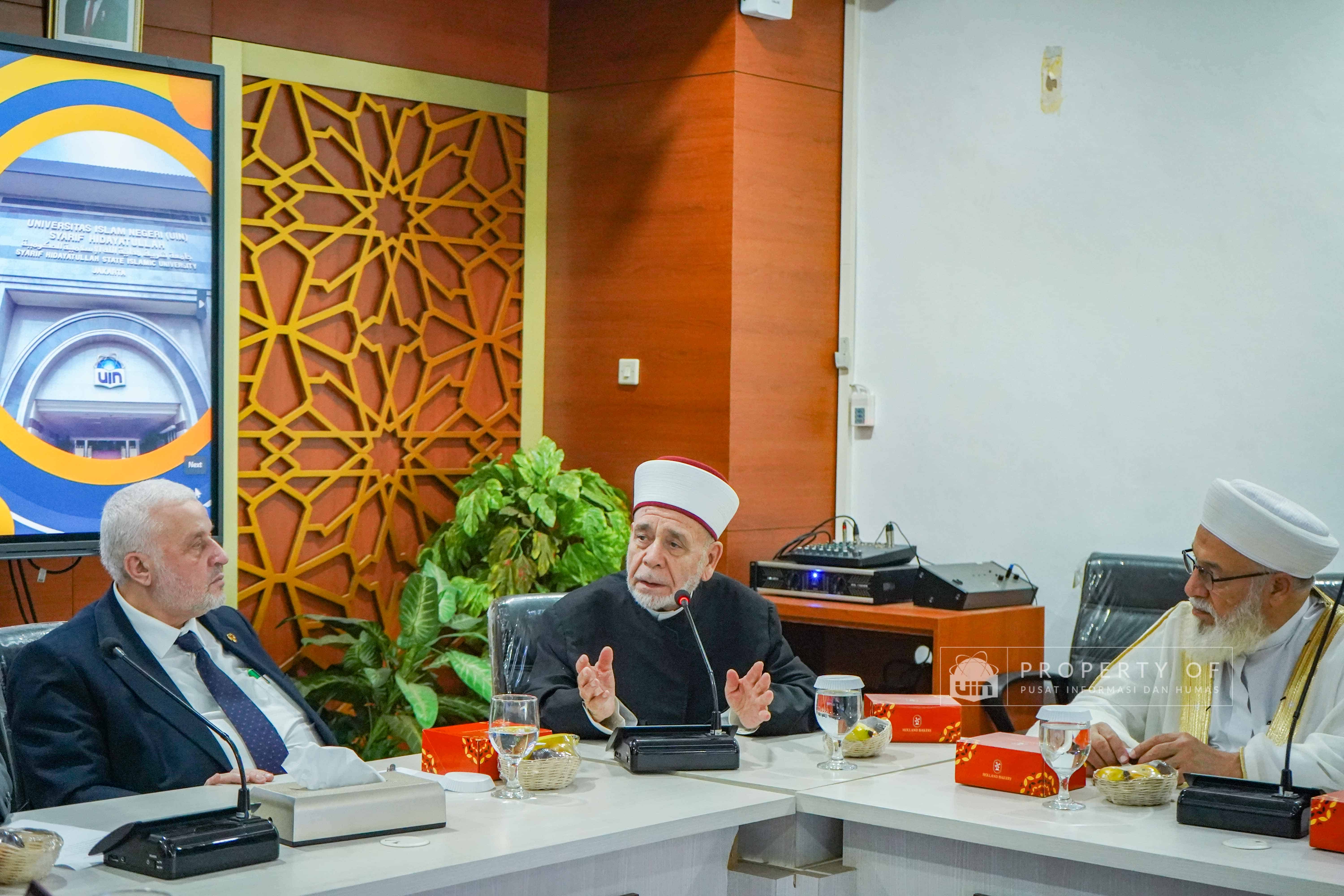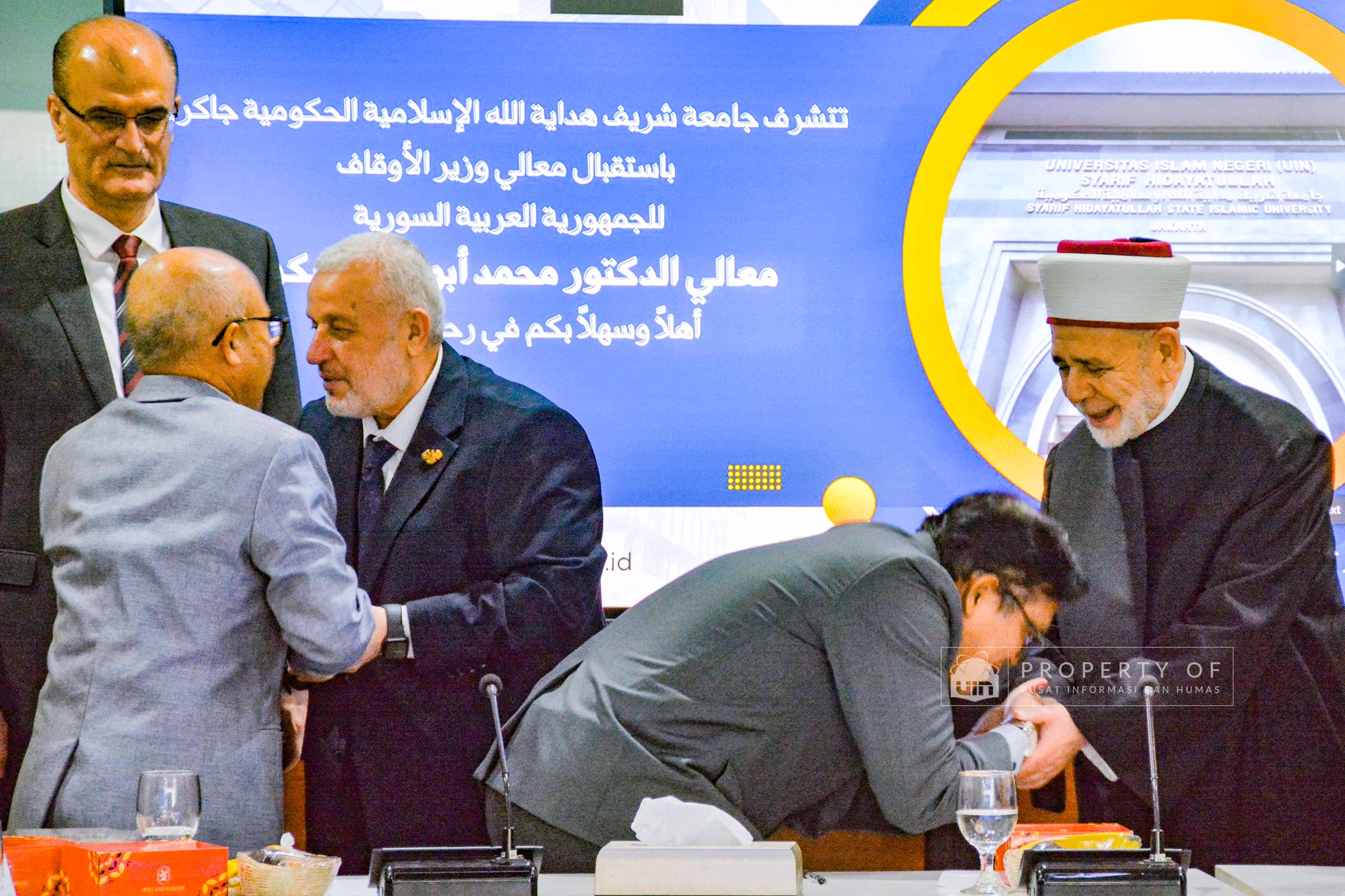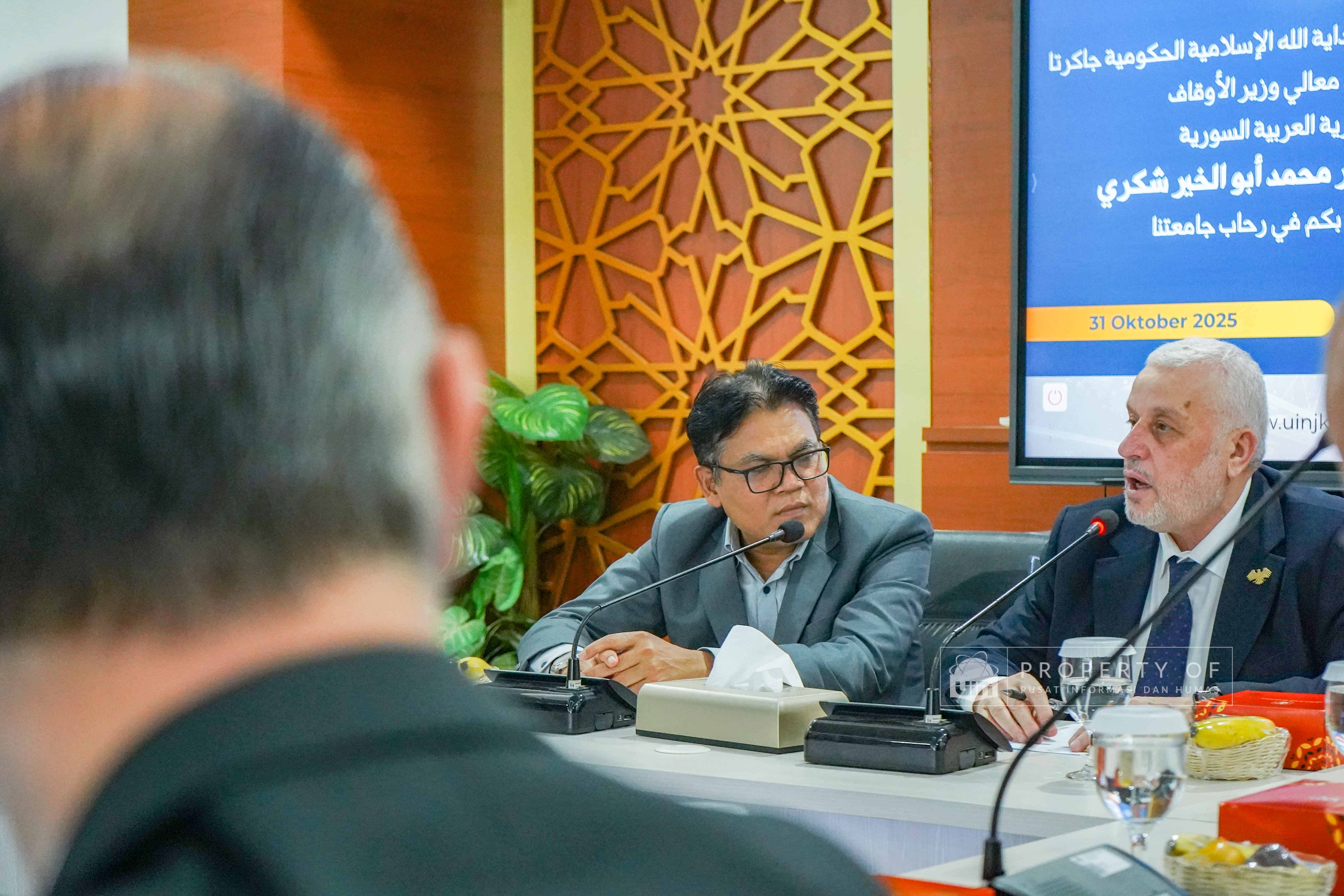 UIN Syarif Hidayatullah Jakarta mengundang tamu kehormatan internasional yakni Menteri Wakaf Suriah Moh. Abo Al-Kheir Chukri di Ruang Sidang Utama dari Gedung Rektorat Lantai 2 pada Jum'at (31/10/2025) (Fotografer: Hermanuddin dan Tiara Abdhie/Teks: Muhamad Arifin Ilham/Pusat Informasi dan Humas UIN Jakarta)