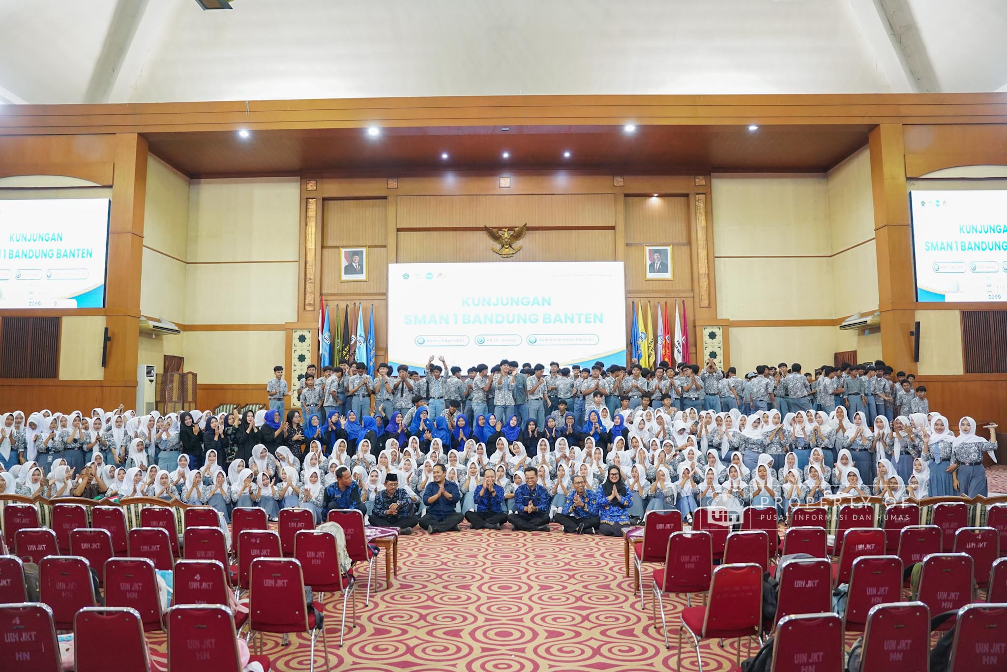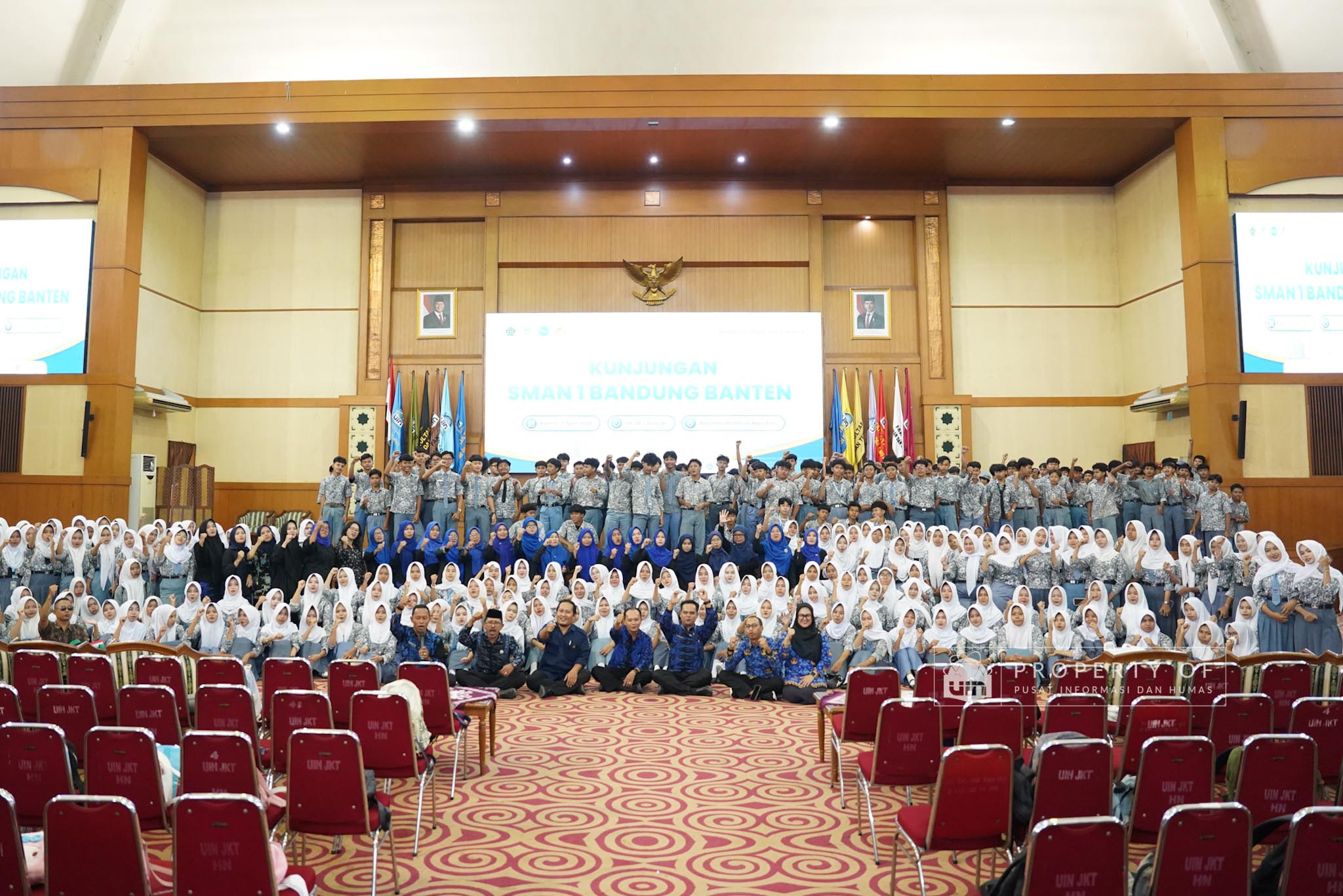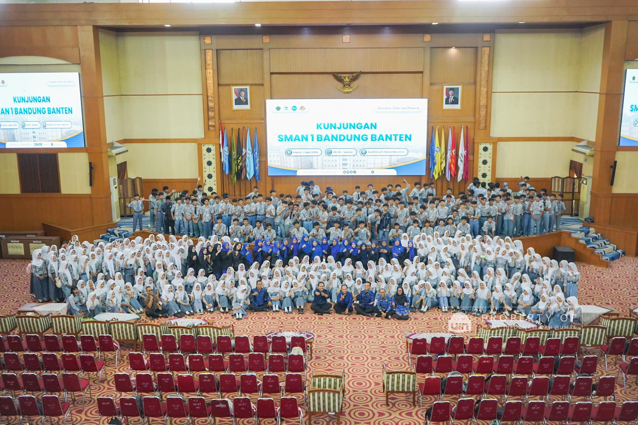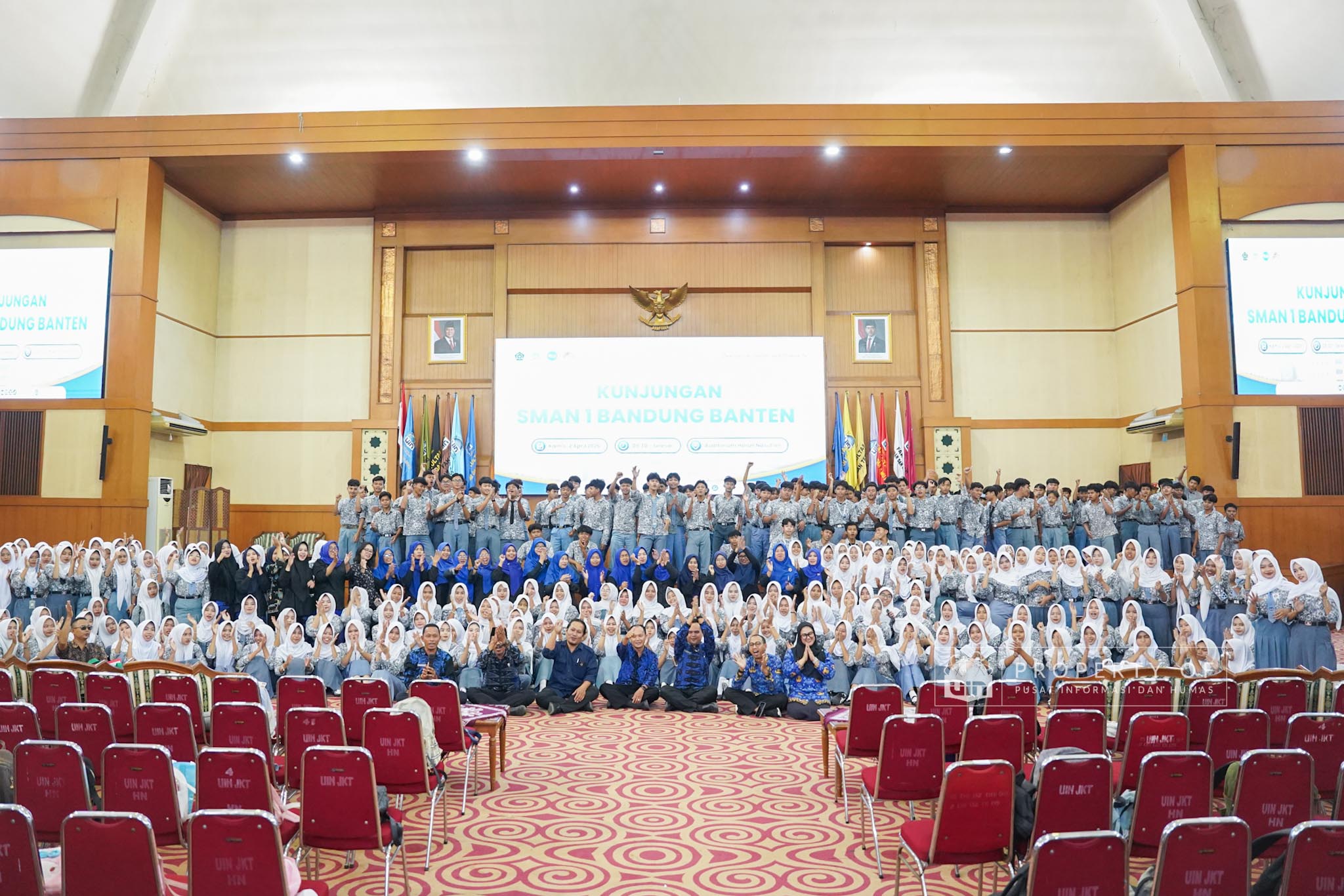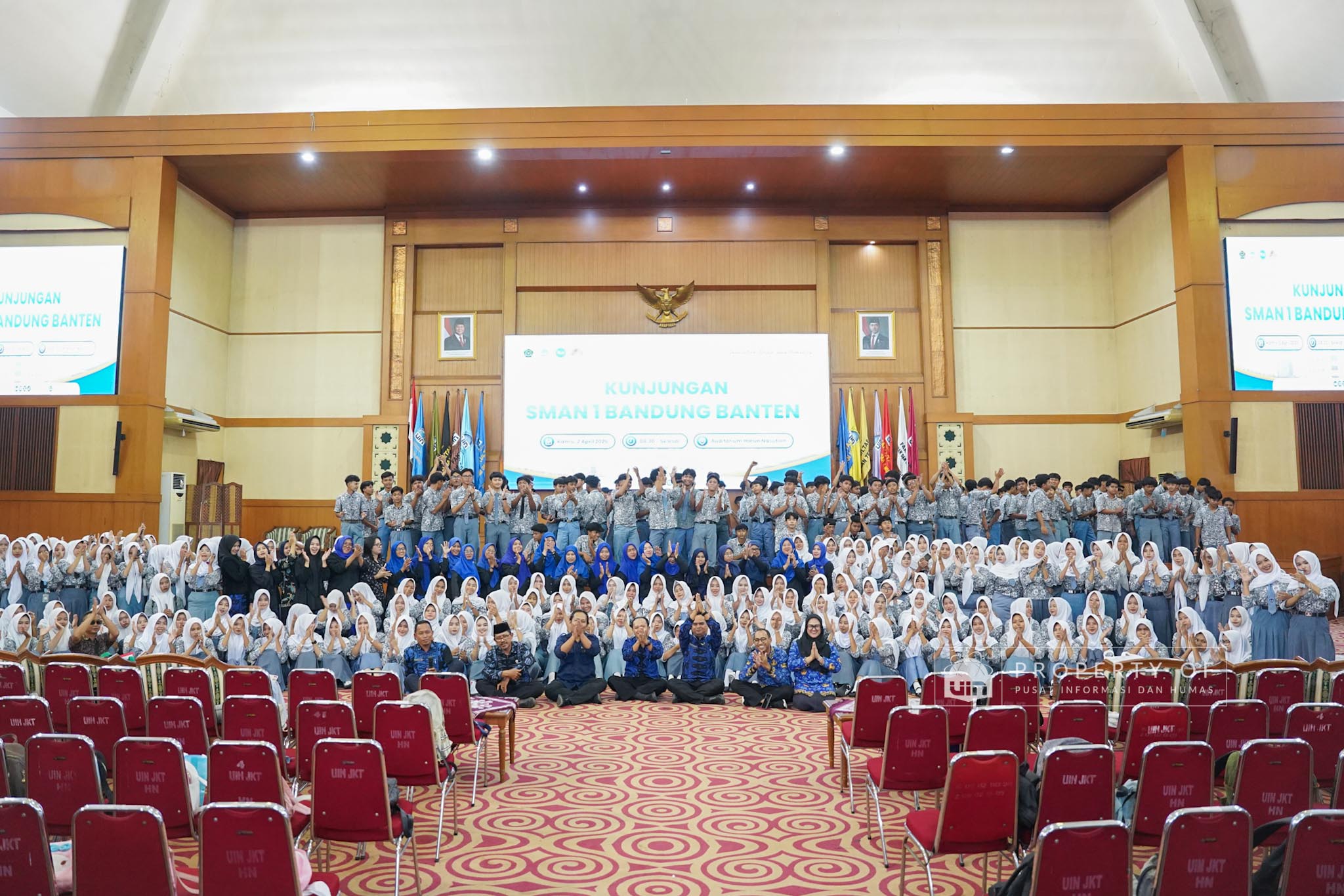UIN Syarif Hidayatullah Jakarta menerima kunjungan 306 siswa kelas XI beserta guru pendamping dari SMAN 1 Bandung, Kabupaten Serang, Banten, yang berlangsung di Auditorium Harun Nasution UIN Jakarta, Kamis (02/04/2026). Kegiatan ini bertujuan memberikan gambaran mengenai profil program studi, fasilitas kampus, serta mekanisme penerimaan mahasiswa baru, melalui pemaparan dari Tim Pusat Informasi dan Humas UIN Jakarta. (Fotografer: Azka Raysa Pratama dan Rajif Ramadhan/Teks: Tiara Septiana Dewi/Pusat Informasi dan Humas UIN Jakarta)