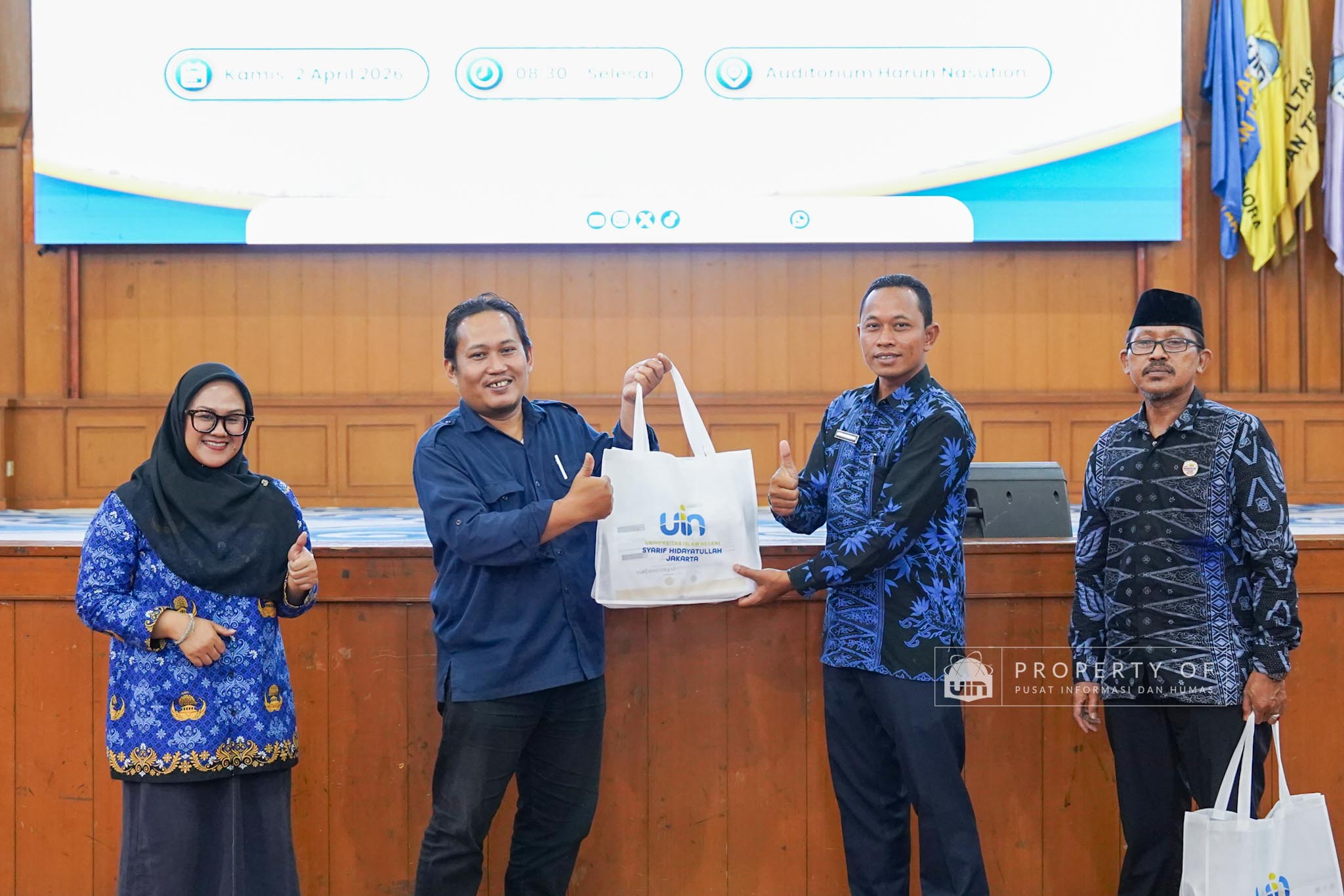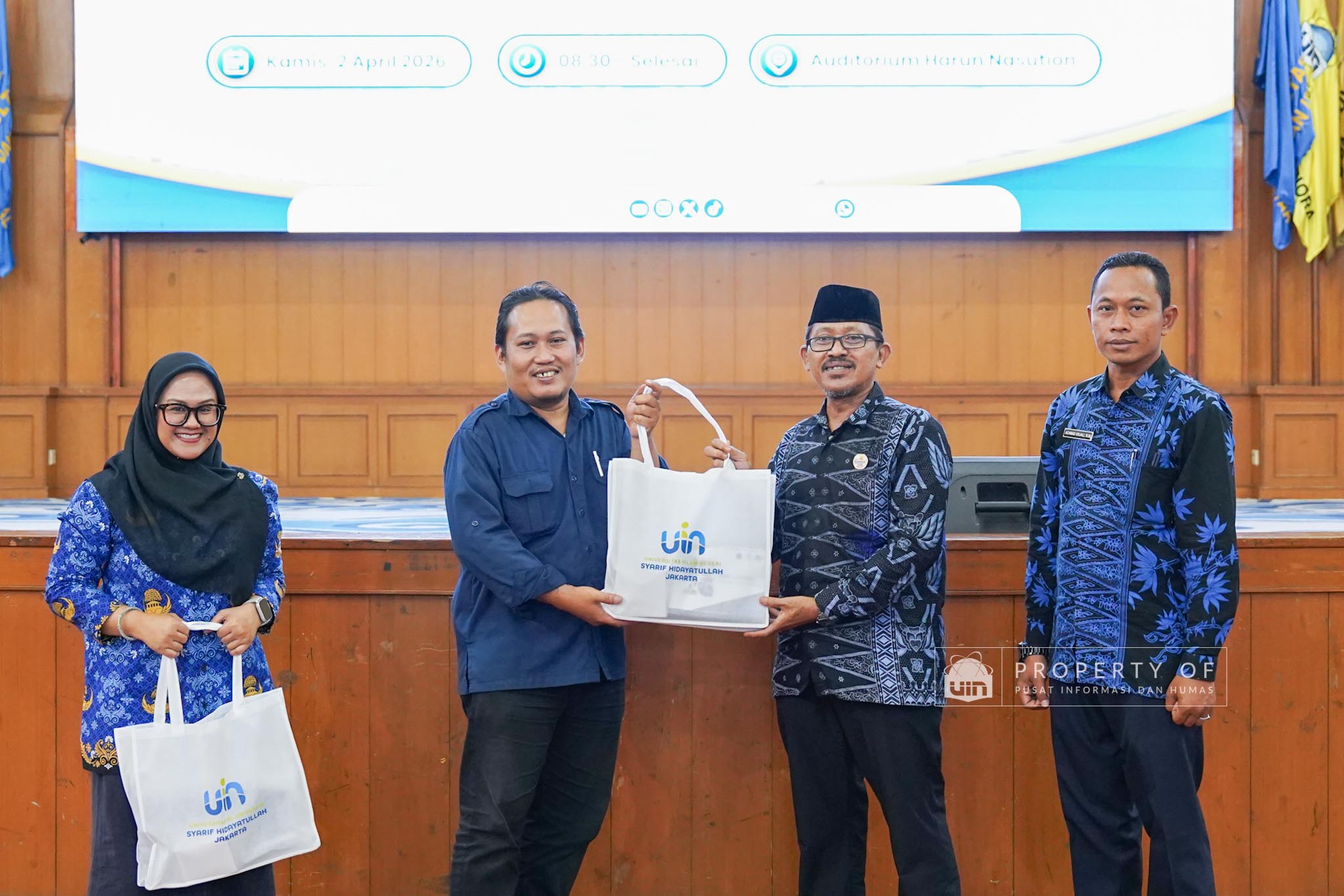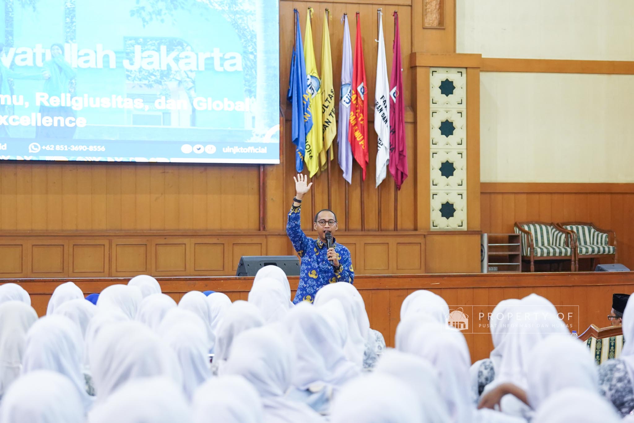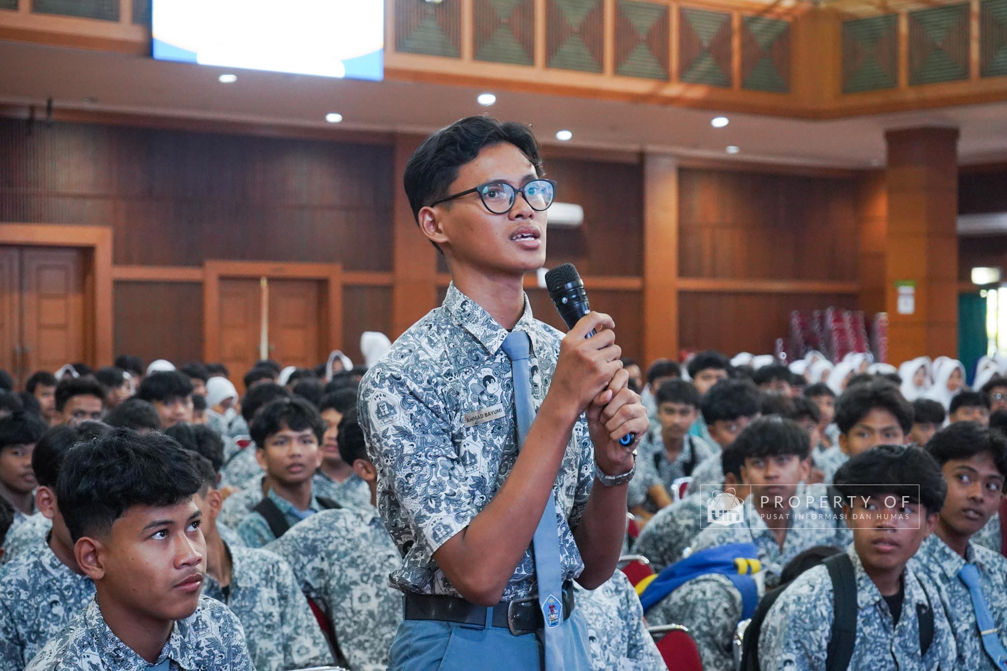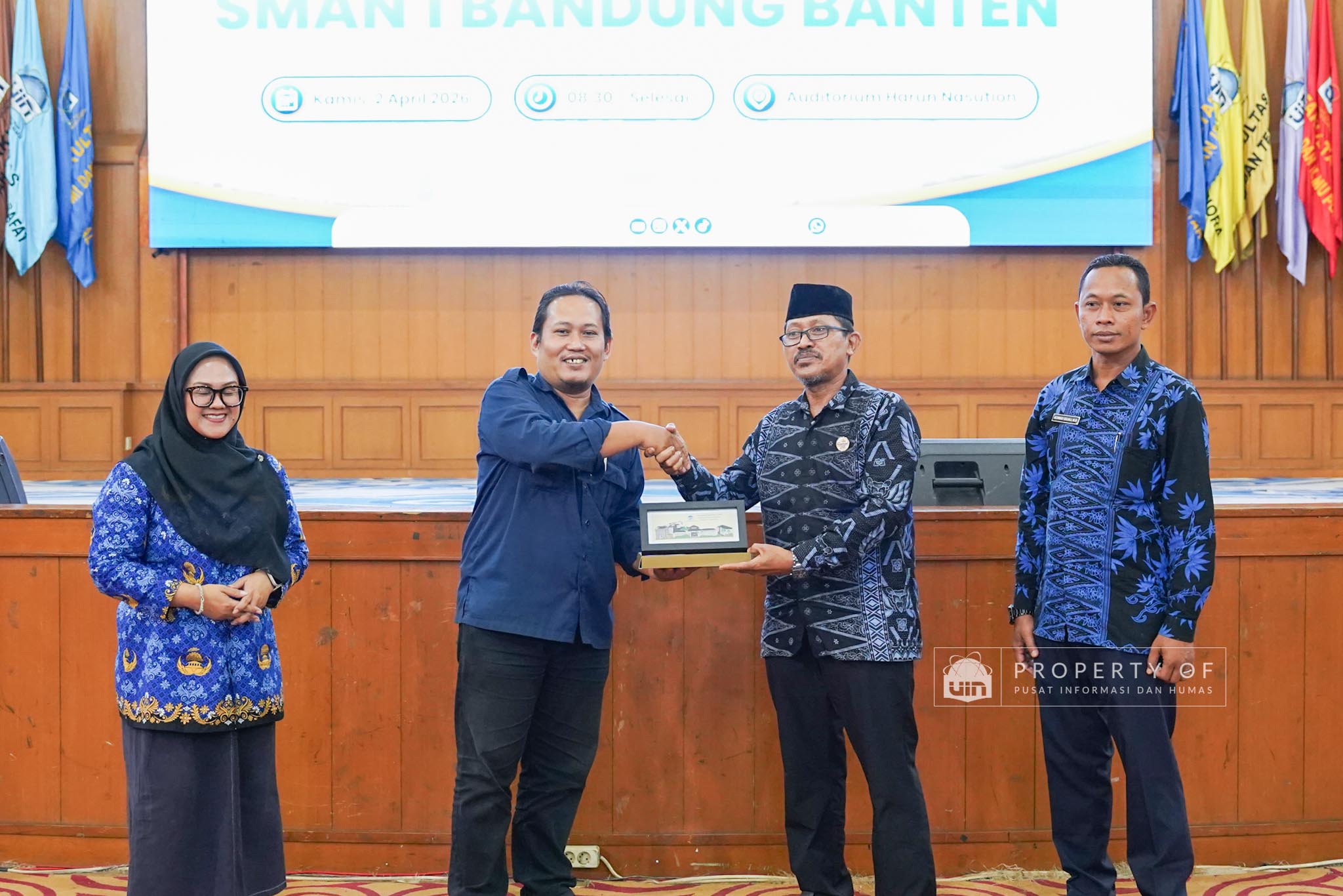 UIN Syarif Hidayatullah Jakarta menerima kunjungan 306 siswa kelas XI beserta guru pendamping dari SMAN 1 Bandung, Kabupaten Serang, Banten, yang berlangsung di Auditorium Harun Nasution UIN Jakarta, Kamis (02/04/2026). Kegiatan ini bertujuan memberikan gambaran mengenai profil program studi, fasilitas kampus, serta mekanisme penerimaan mahasiswa baru, melalui pemaparan dari Tim Pusat Informasi dan Humas UIN Jakarta. (Fotografer: Azka Raysa Pratama dan Rajif Ramadhan/Teks: Tiara Septiana Dewi/Pusat Informasi dan Humas UIN Jakarta)