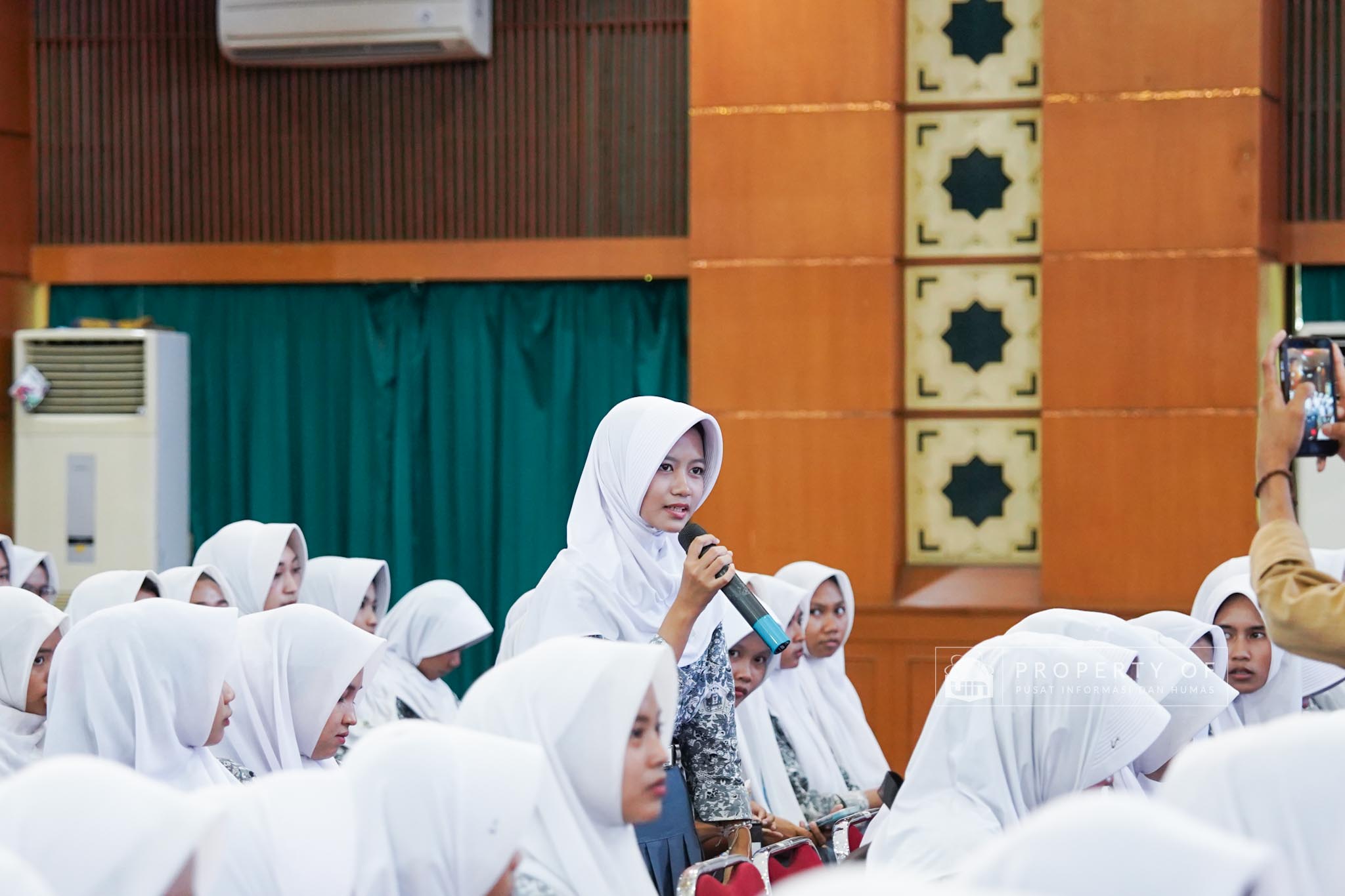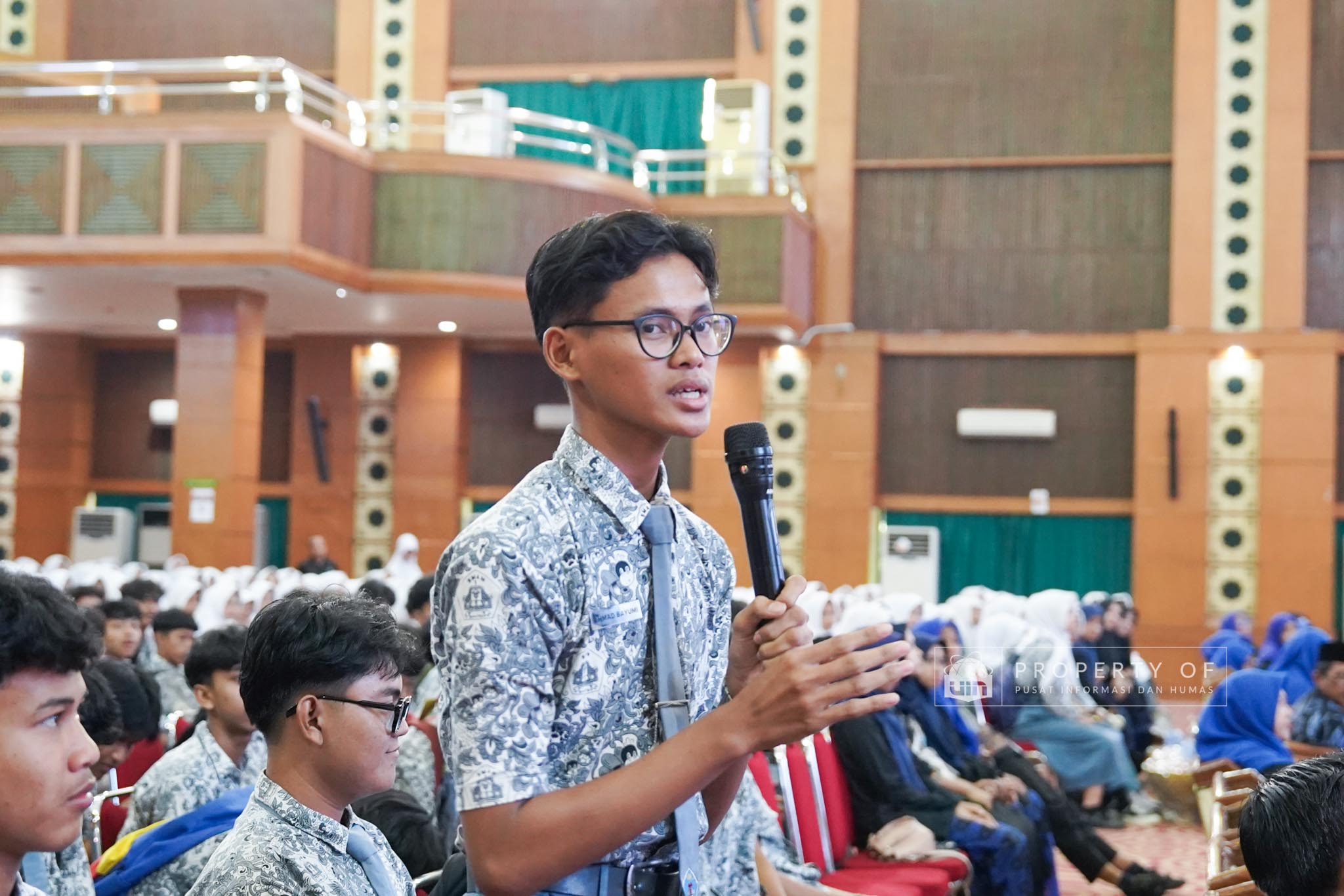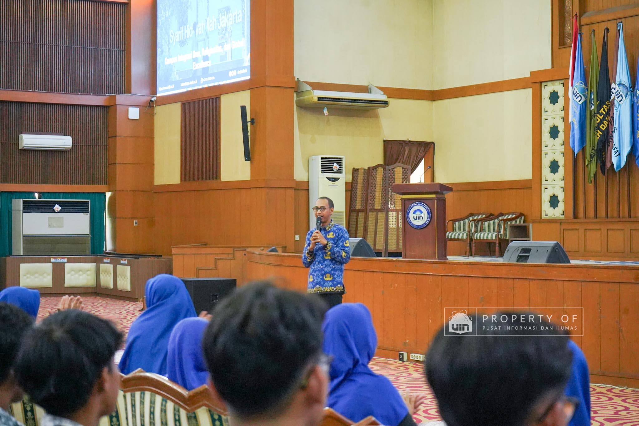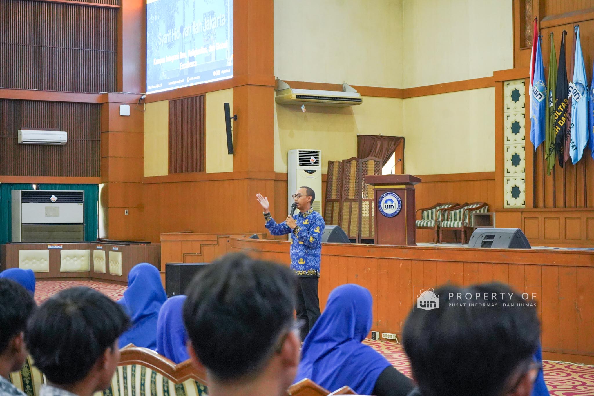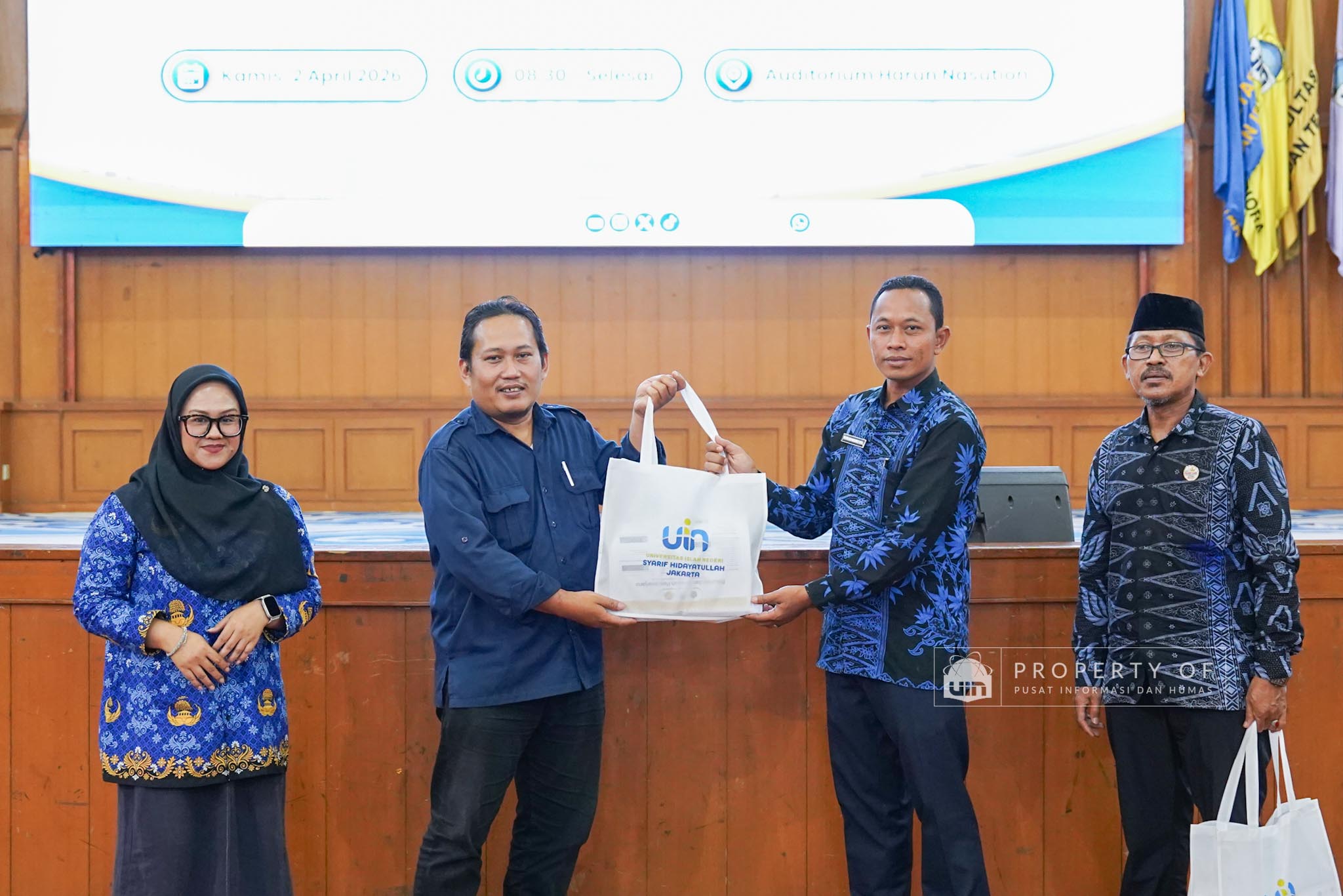 UIN Syarif Hidayatullah Jakarta menerima kunjungan 306 siswa kelas XI beserta guru pendamping dari SMAN 1 Bandung, Kabupaten Serang, Banten, yang berlangsung di Auditorium Harun Nasution UIN Jakarta, Kamis (02/04/2026). Kegiatan ini bertujuan memberikan gambaran mengenai profil program studi, fasilitas kampus, serta mekanisme penerimaan mahasiswa baru, melalui pemaparan dari Tim Pusat Informasi dan Humas UIN Jakarta. (Fotografer: Azka Raysa Pratama dan Rajif Ramadhan/Teks: Tiara Septiana Dewi/Pusat Informasi dan Humas UIN Jakarta)