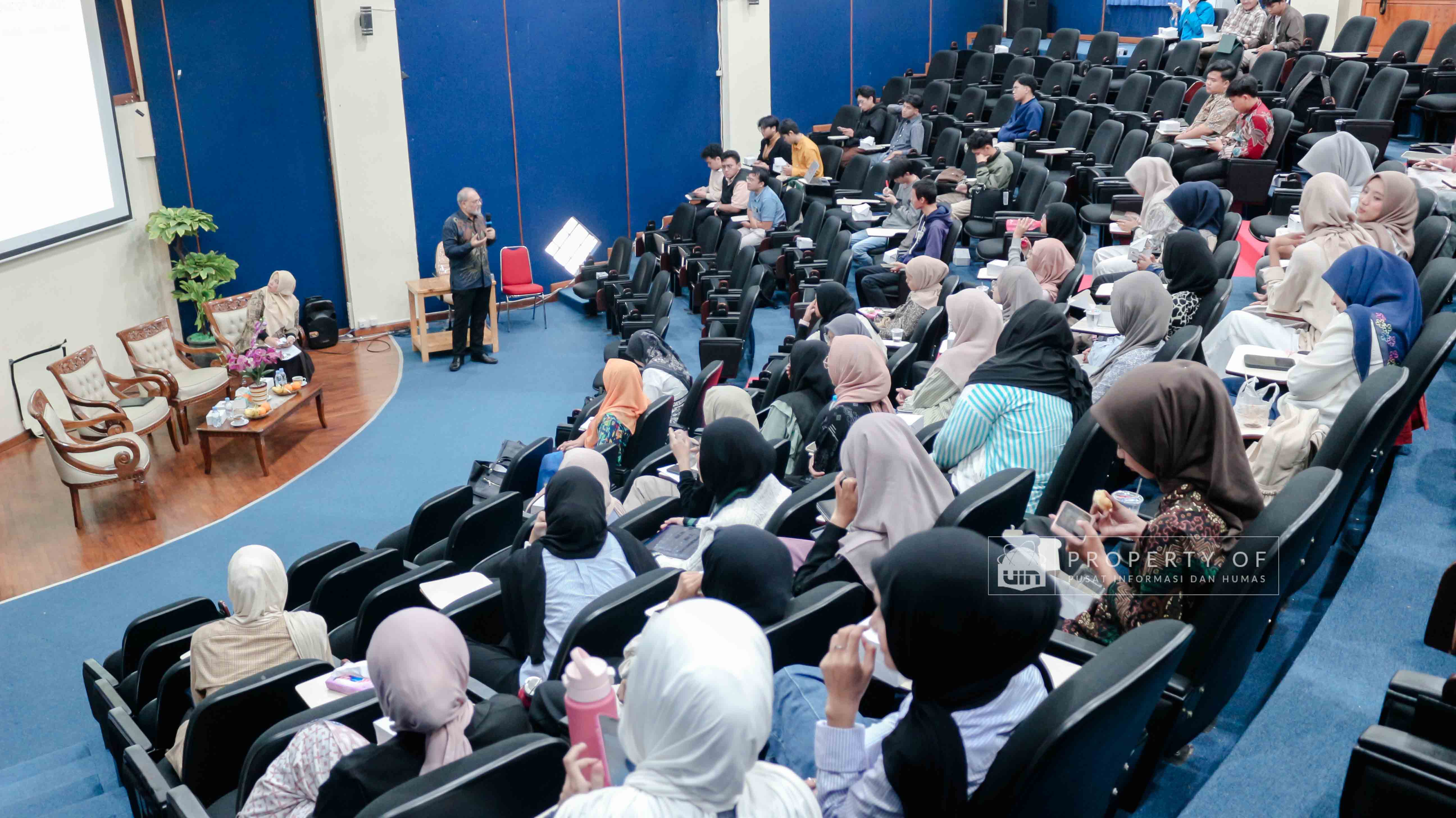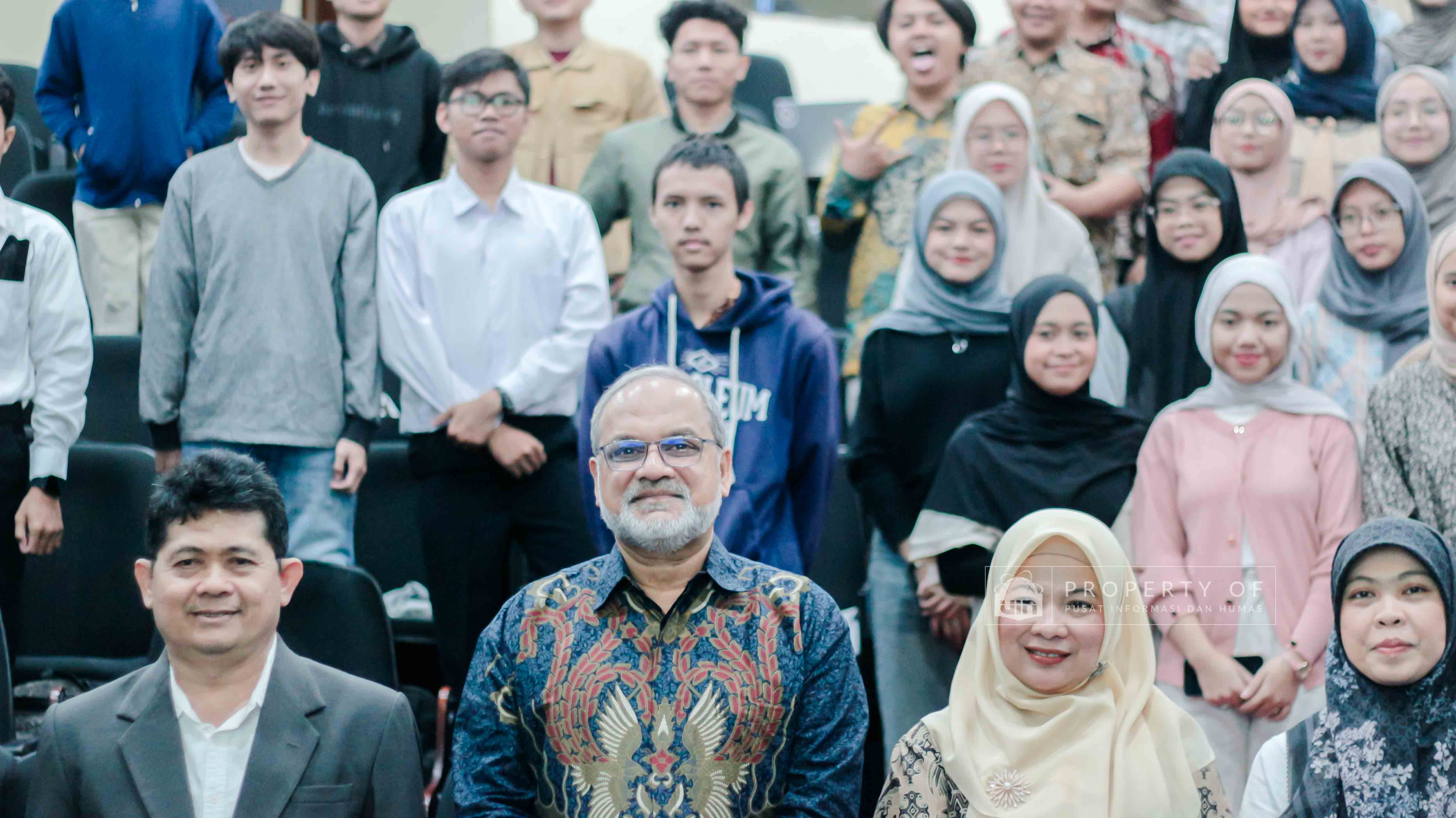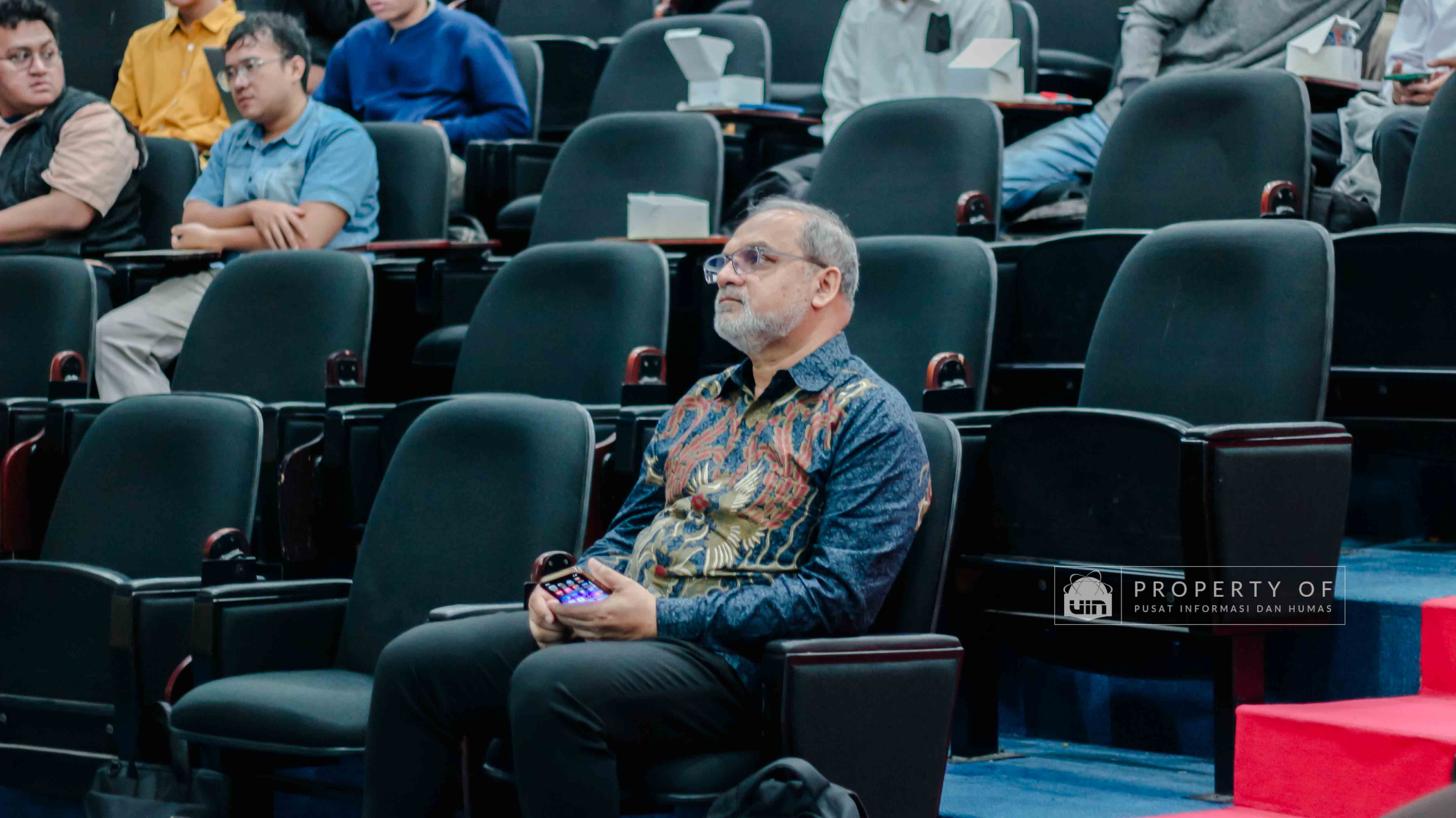 Fakultas Ekonomi dan Bisnis UIN Syarif Hidayatullah Jakarta menggelar kegiatan Visiting Professor bertema “The Extended Family of Islamic Banking” pada Senin (8/12/2025) di Ruang Theater Lt. 2, Kampus 1 FEB UIN Jakarta. Acara ini menghadirkan dua narasumber, yaitu Dekan FEB UIN Jakarta, Prof. Dr. Ibnu Qizam, S.E., M.Si., Ak., CA., serta Professor Habib Ahmed dari Sharjah Chair in Islamic Law and Finance dari Durham University sebagai pembicara utama. (Fotografer: Talitha Zafirah Qutratu'ain/Teks: Tiara Septiana Dewi/Pusat Informasi dan Humas UIN Jakarta)
