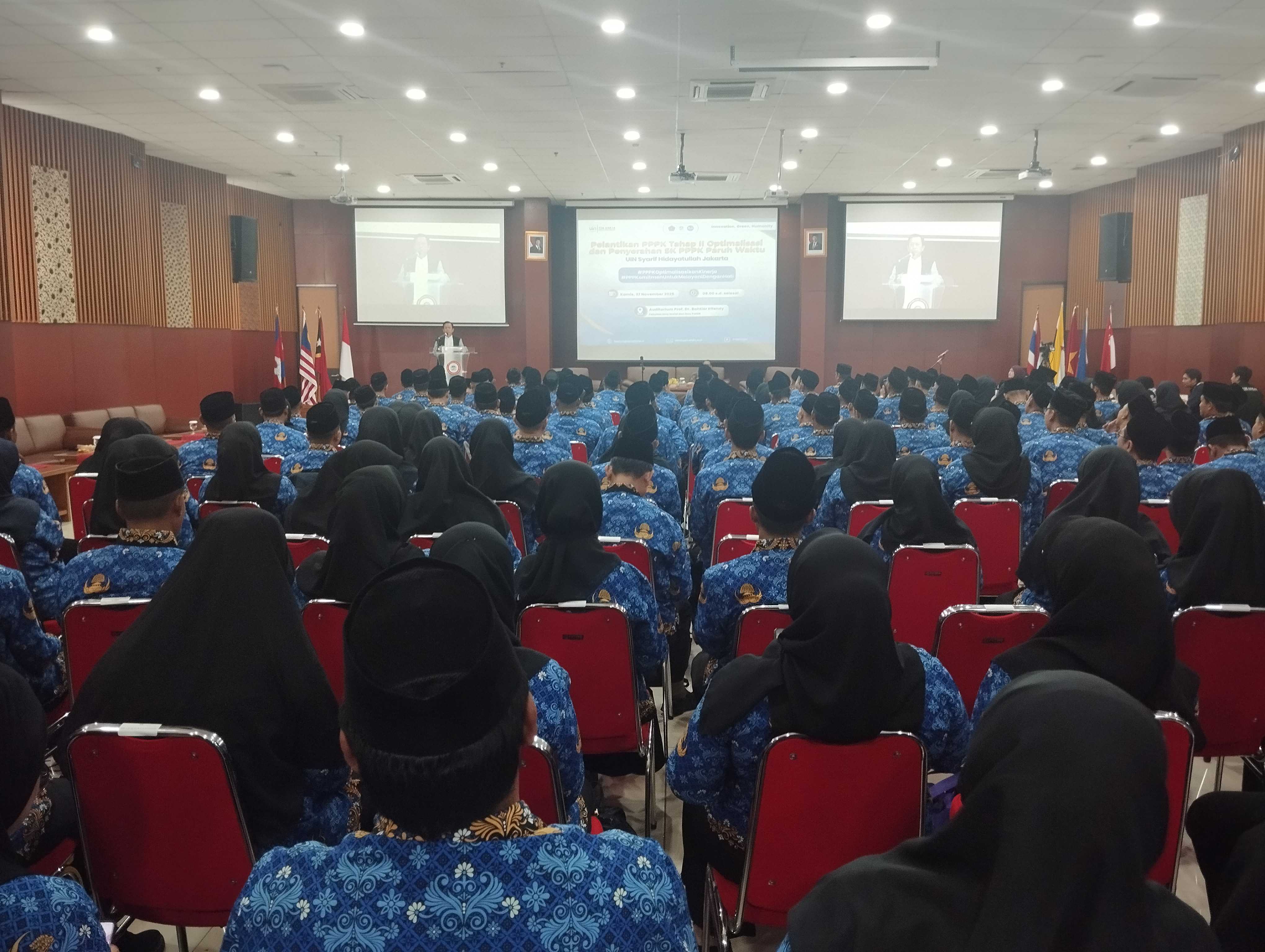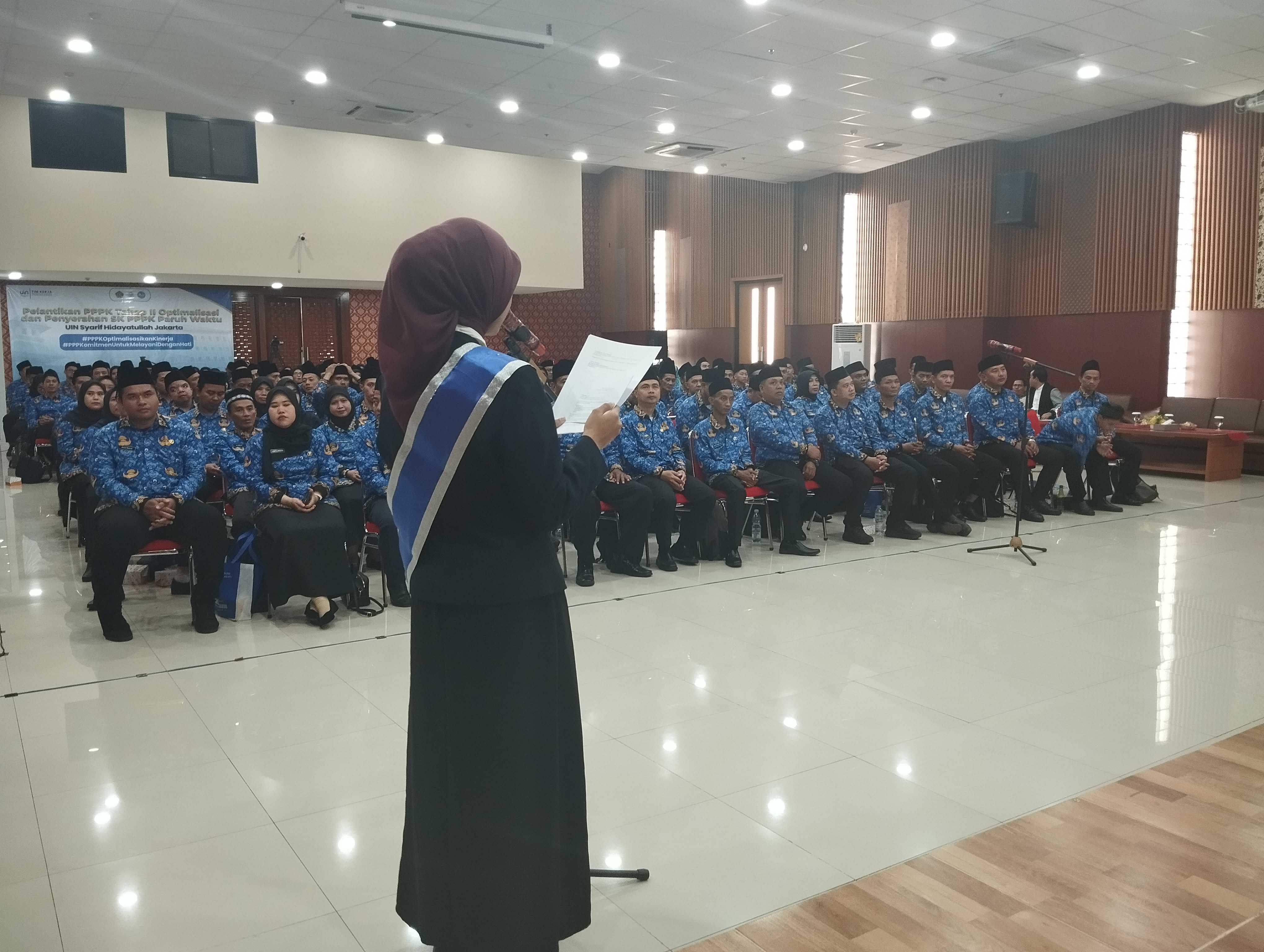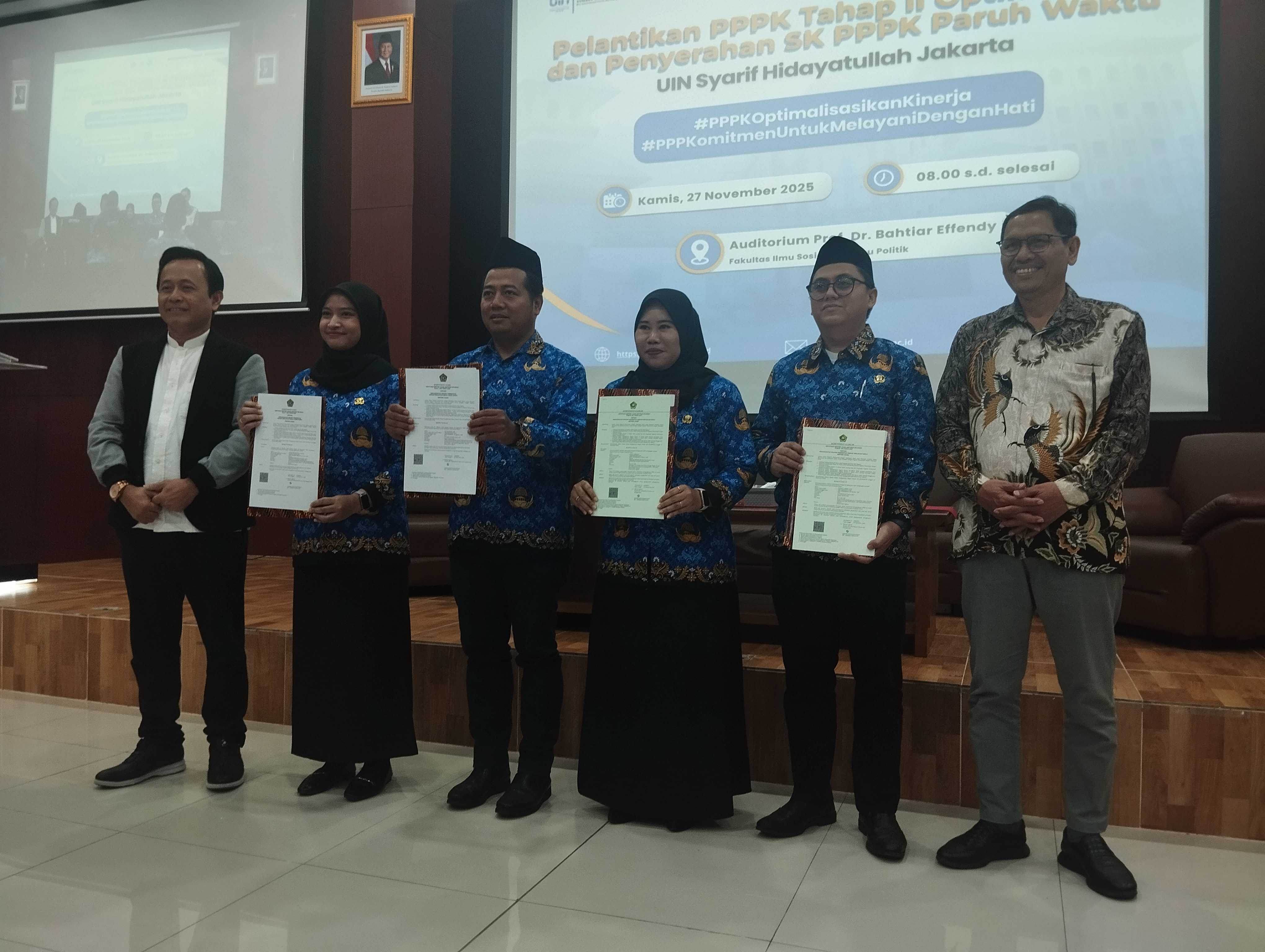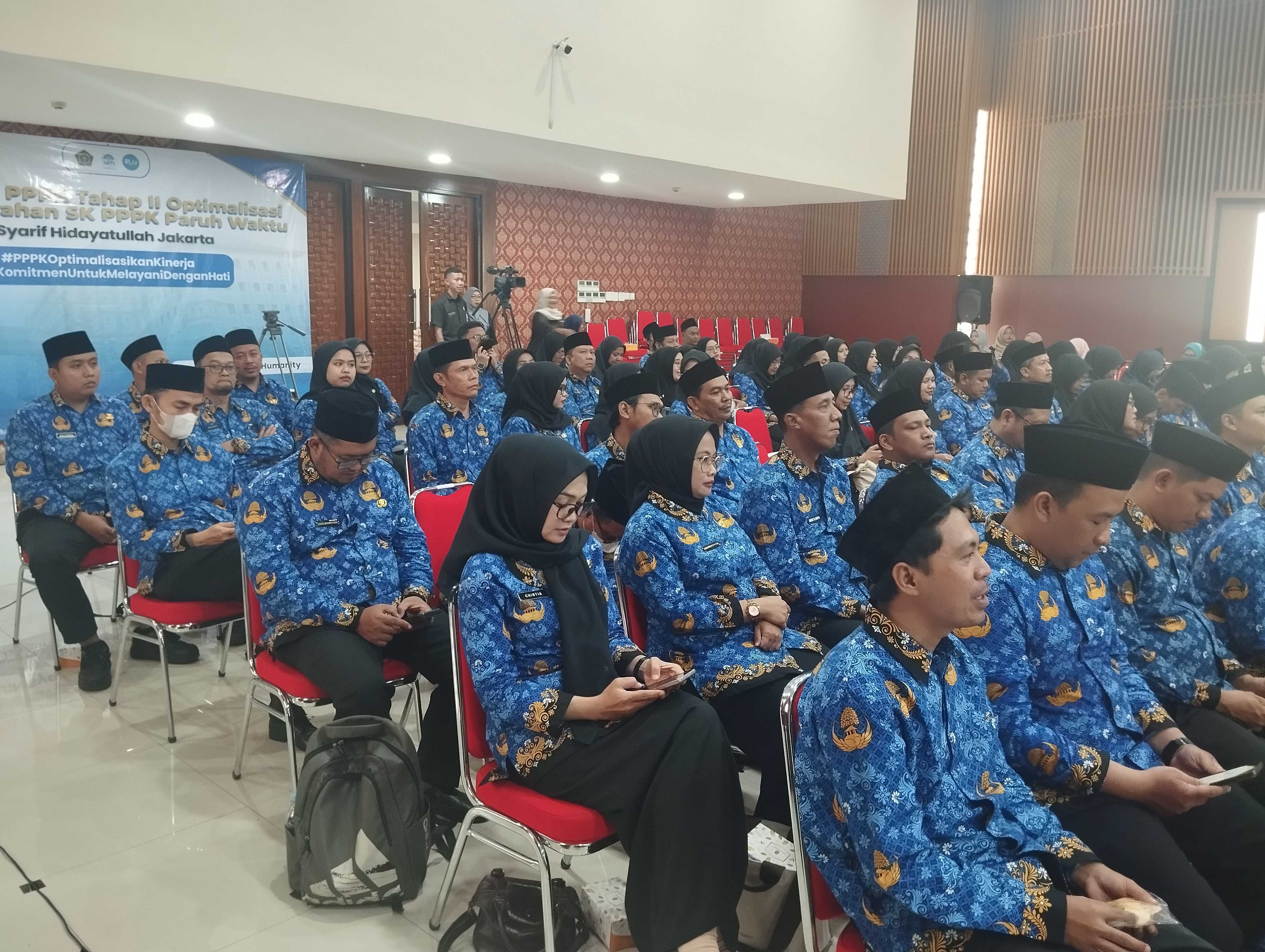 UIN Syarif Hidayatullah Jakarta gelar Pelantikan PPPK Tahap II dan Penyerahan SK PPPK Paruh Waktu di Auditorium Prof. Dr. Bachtiar Effendy pada Kamis (27/11/2025). Sehubung dengan Keputusan Menteri Agama (KMA), 105 PPPK Paruh Waktu dan 83 PPPK Optimalisasi sukses dilantik pada acara ini yang diselenggarakan oleh Kemenag RI. (Fotografer: Muhamad Arifin Ilham/Teks: Muhamad Arifin Ilham/Pusat Informasi dan Humas UIN Jakarta)