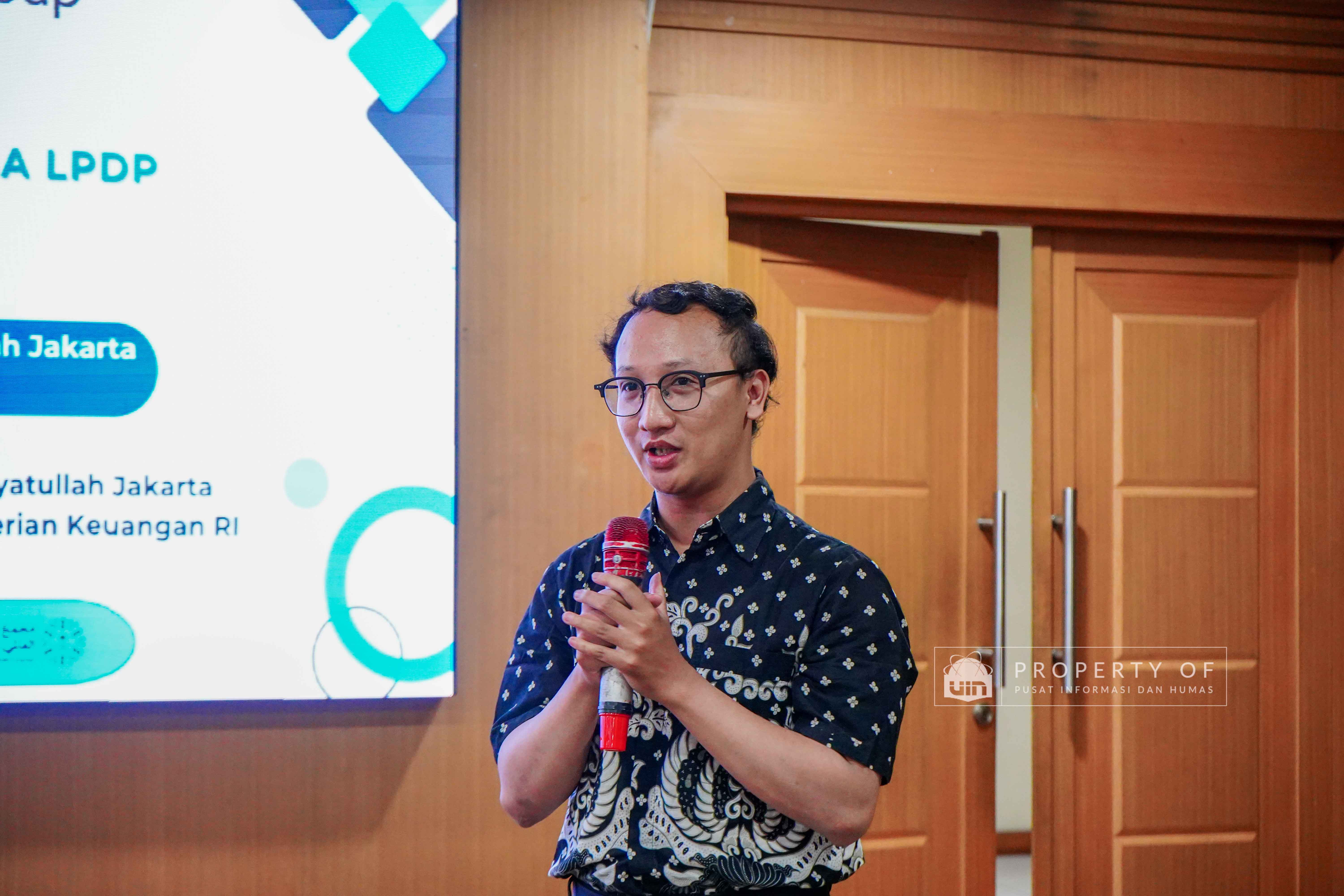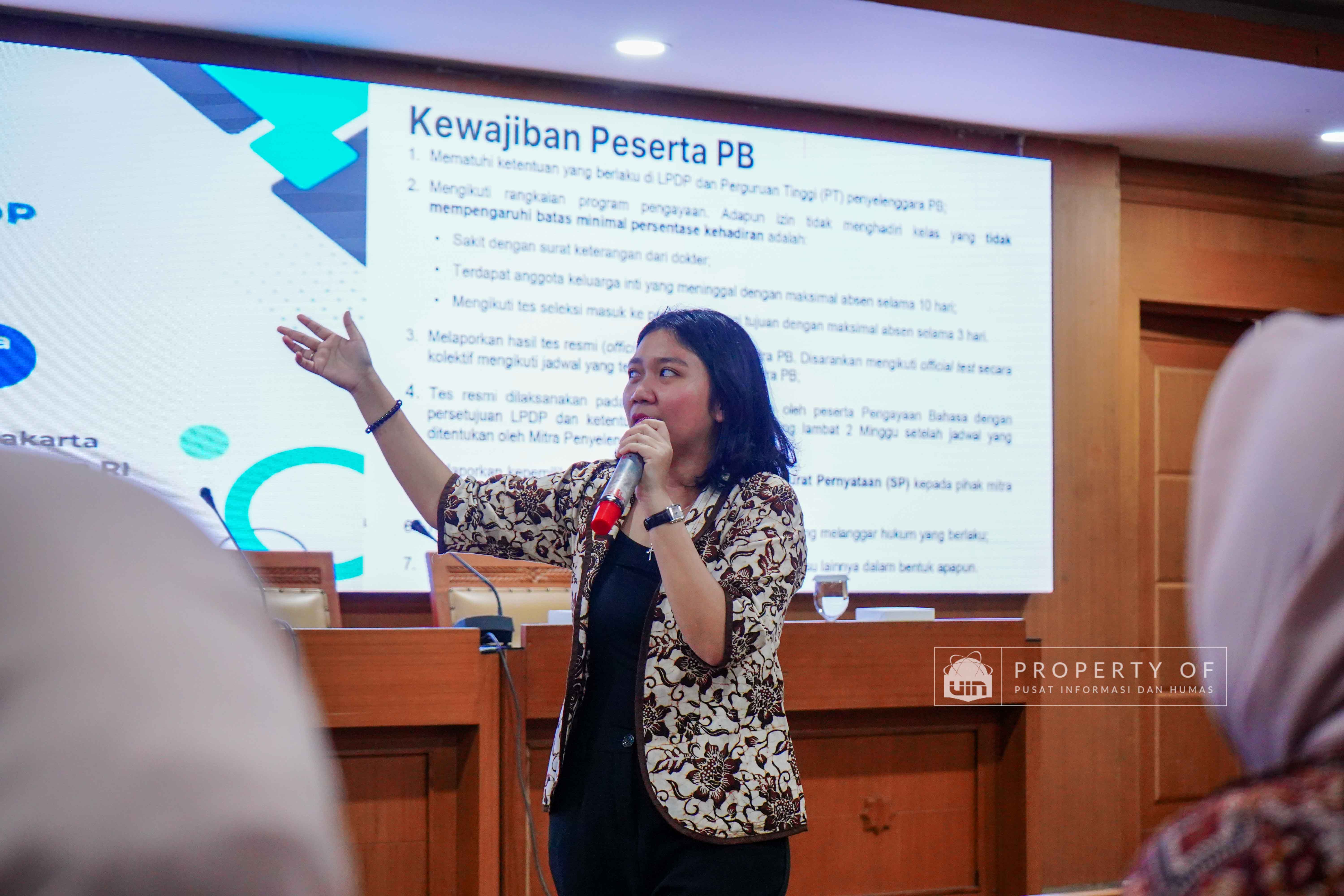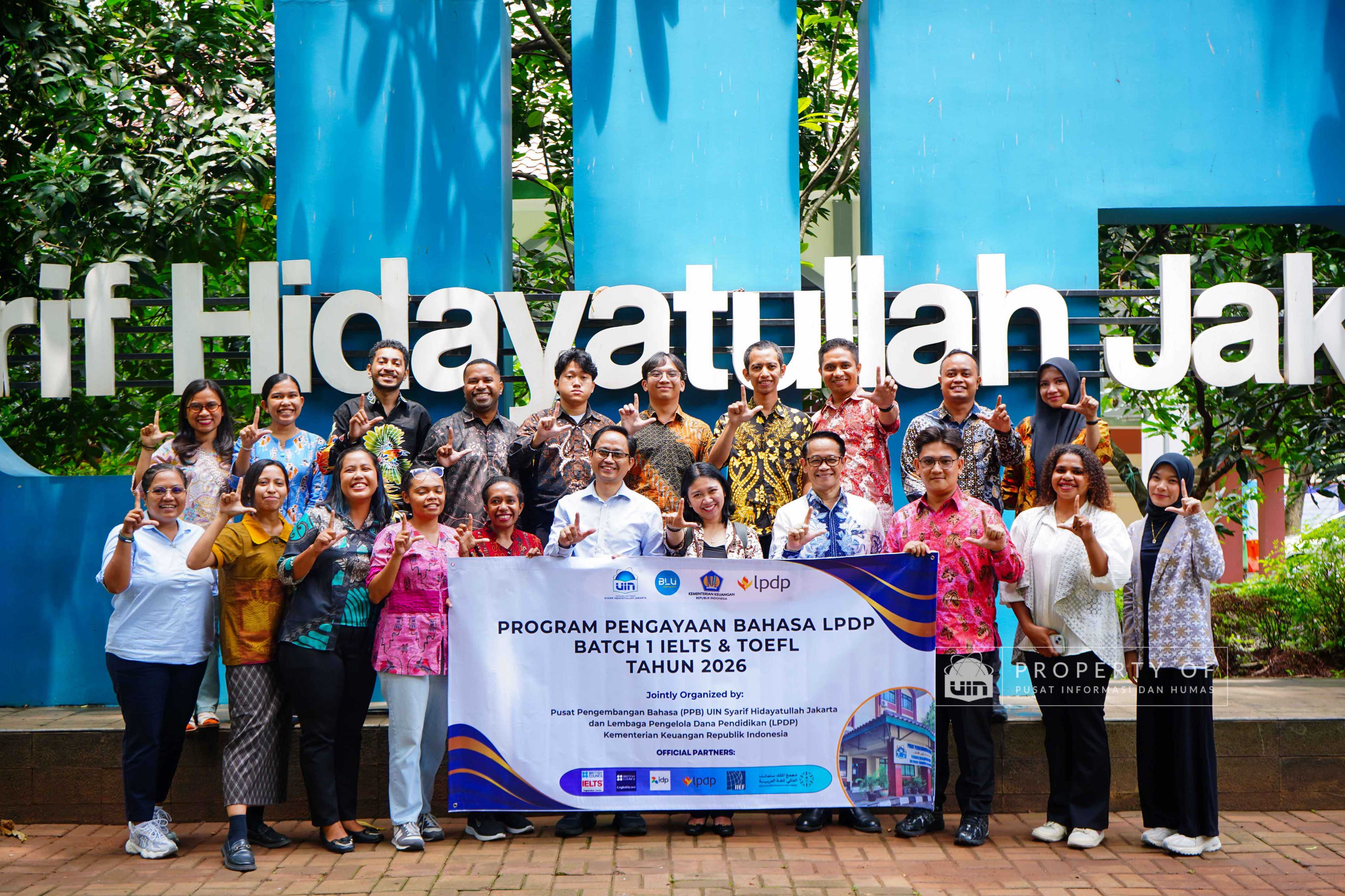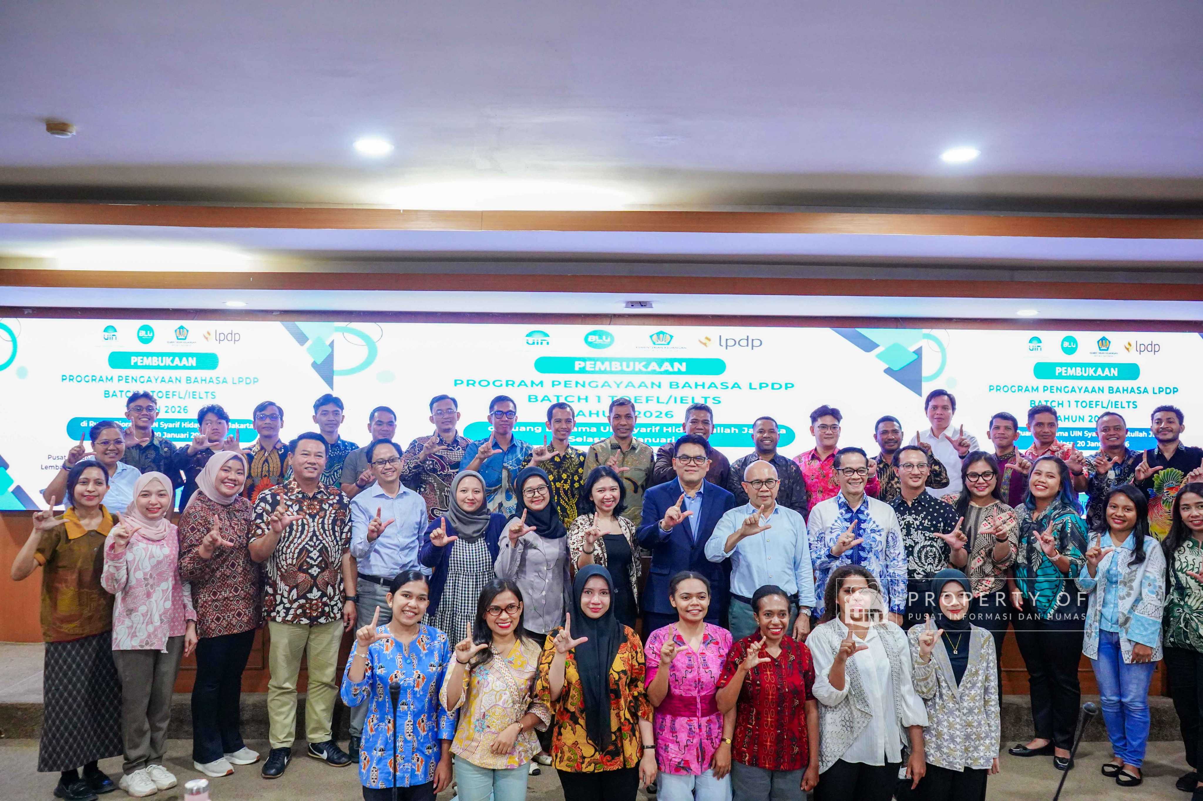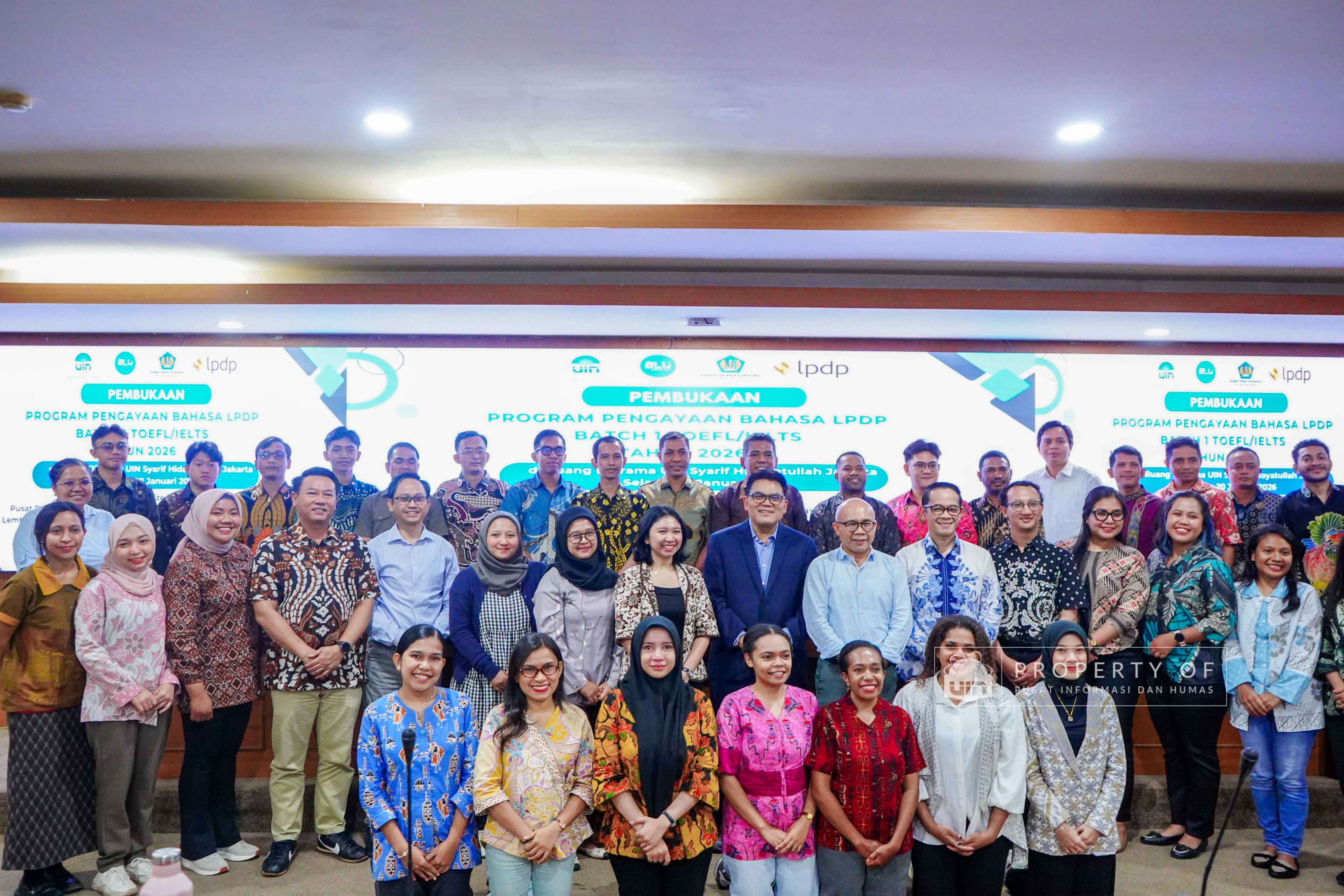 UIN Syarif Hidayatullah Jakarta membuka Program Pengayaan Bahasa LPDP Batch 1 Tahun 2026 hasil kerja sama dengan Lembaga Pengelola Dana Pendidikan (LPDP) yang berlangsung di Ruang Diorama Auditorium Harun Nasution UIN Jakarta, Selasa (20/1/2026). Program ini ditujukan bagi calon penerima beasiswa LPDP untuk meningkatkan kemampuan bahasa sebagai persiapan studi lanjut. (Fotografer: Rajif Ramadhan/Teks: Tiara Septiana Dewi/Pusat Informasi dan Humas UIN Jakarta)