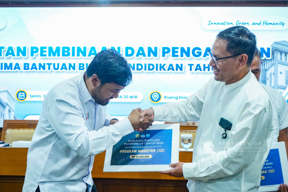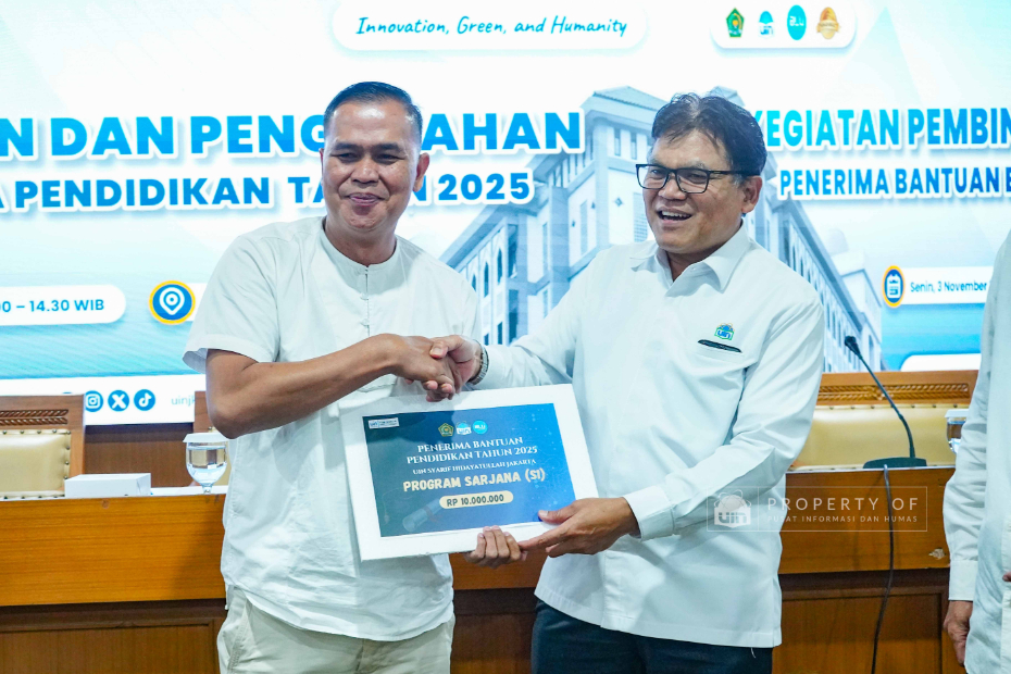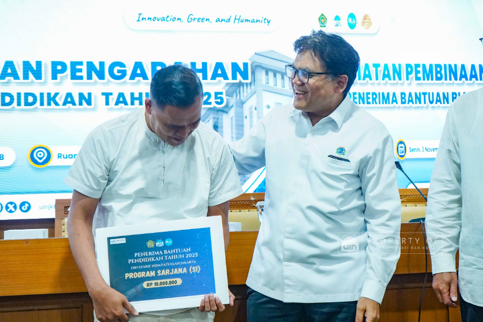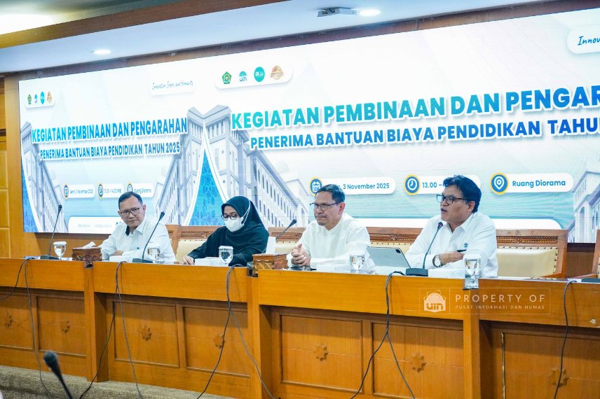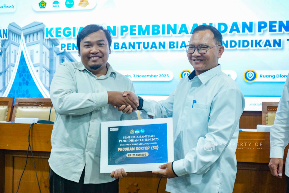 UIN Syarif Hidayatullah Jakarta menggelar Pembinaan dan Pengarahan bagi 138 dosen, tendik, dan pegawai penerima Bantuan Biaya Pendidikan Tahun 2025 di Ruang Diorama pada Senin (3/11/2025). Rektor, Prof. Asep Saepudin Jahar, berharap bantuan ini dapat memajukan UIN Jakarta, menyebut pendidikan sebagai modal penting untuk pelayanan dan reputasi universitas. Wakil Rektor Bidang Administrasi Umum, Prof. Dr. Imam Subchi, menyoroti peningkatan signifikan total bantuan tahun ini menjadi sekitar Rp. 2,8 Miliar, yang ia sebut sebagai "tahun ledakan" dan bukti komitmen pimpinan untuk memperkuat SDM. Salah satu penerima, Srihidayati, mengungkapkan bahwa bantuan S3 tersebut sangat berharga dan memotivasinya untuk segera menyelesaikan studi. (Fotografer: Tiara Abdhie/ Teks: Nabila Azzahra Syawal/Pusat Informasi dan Humas UIN Jakarta)