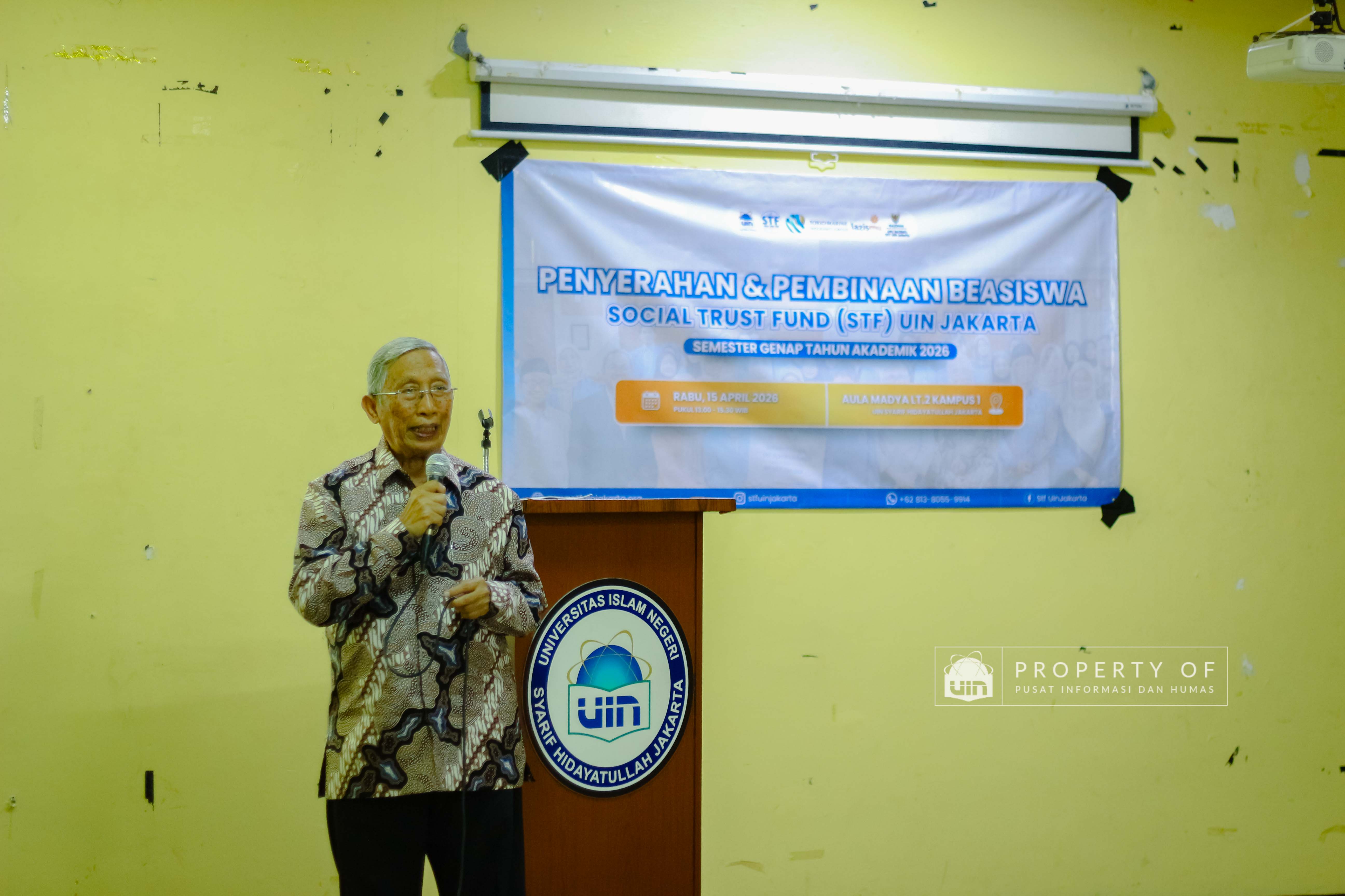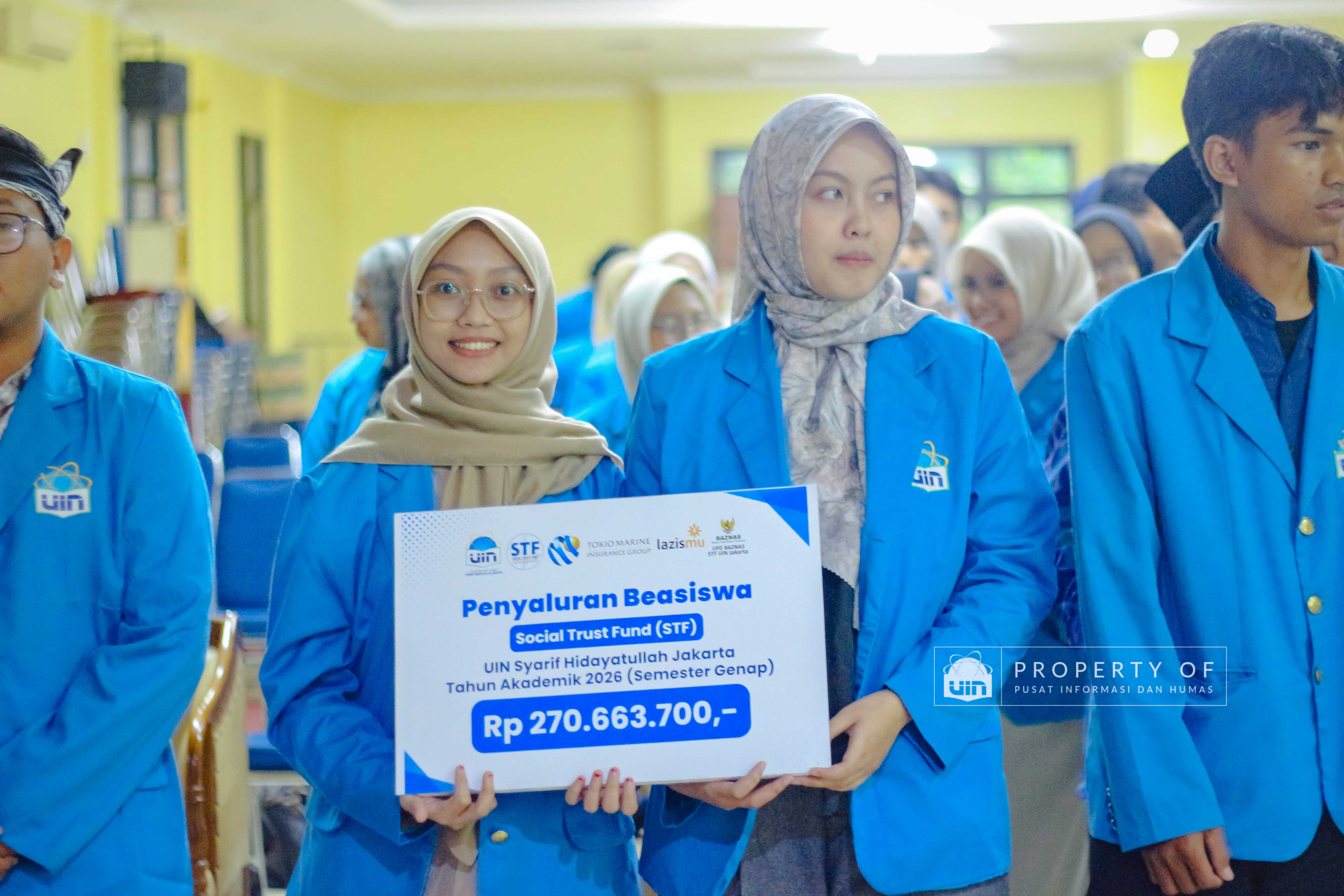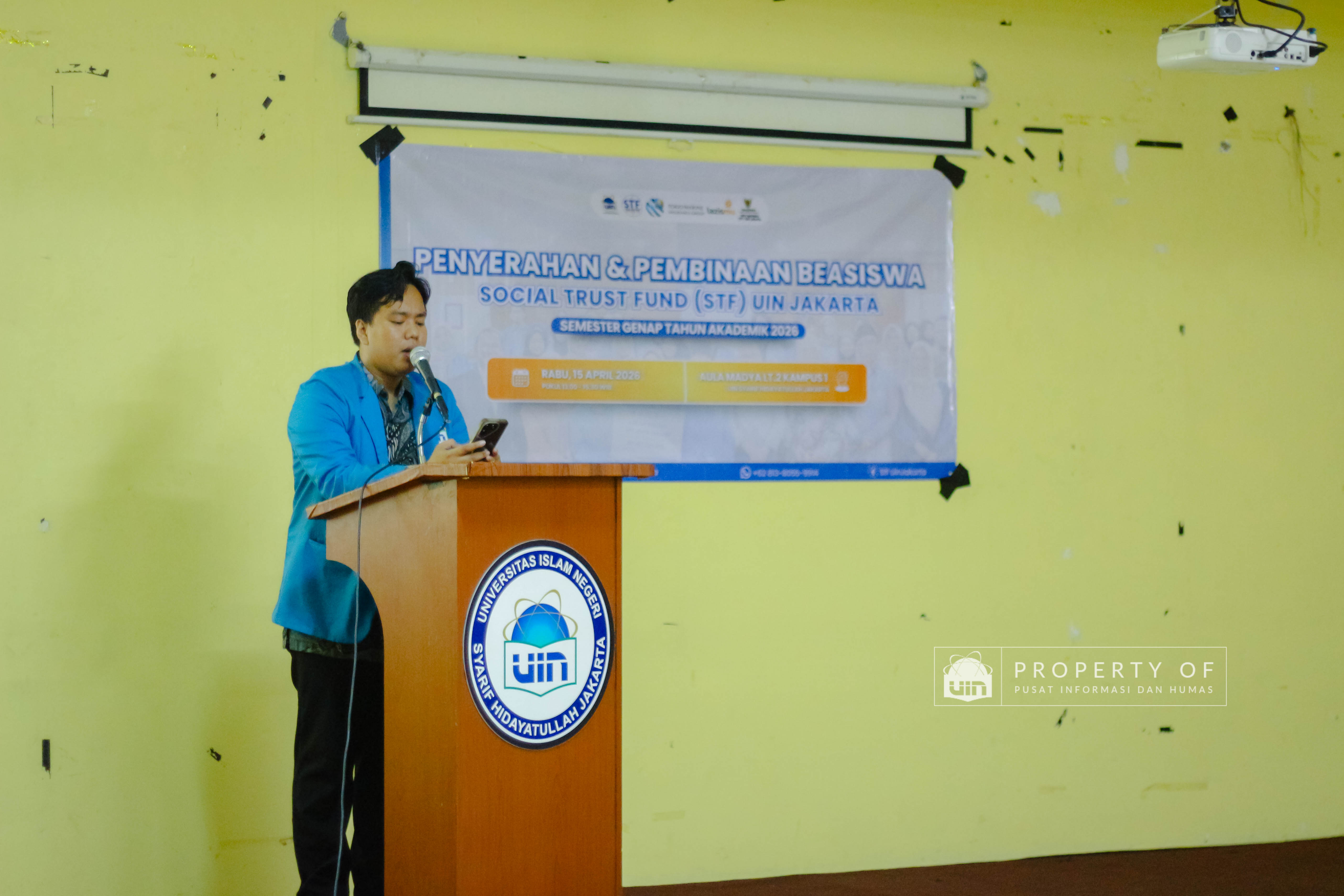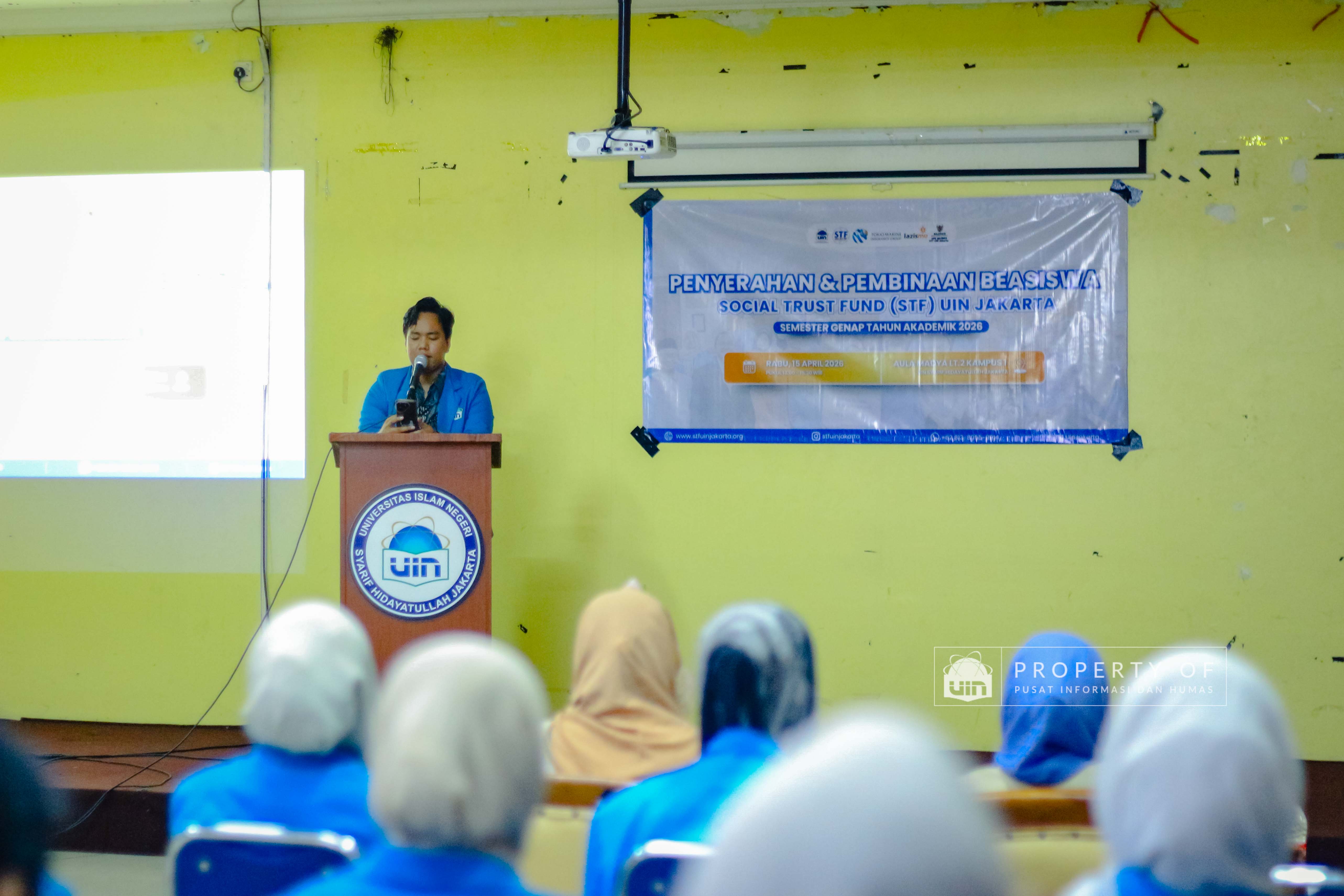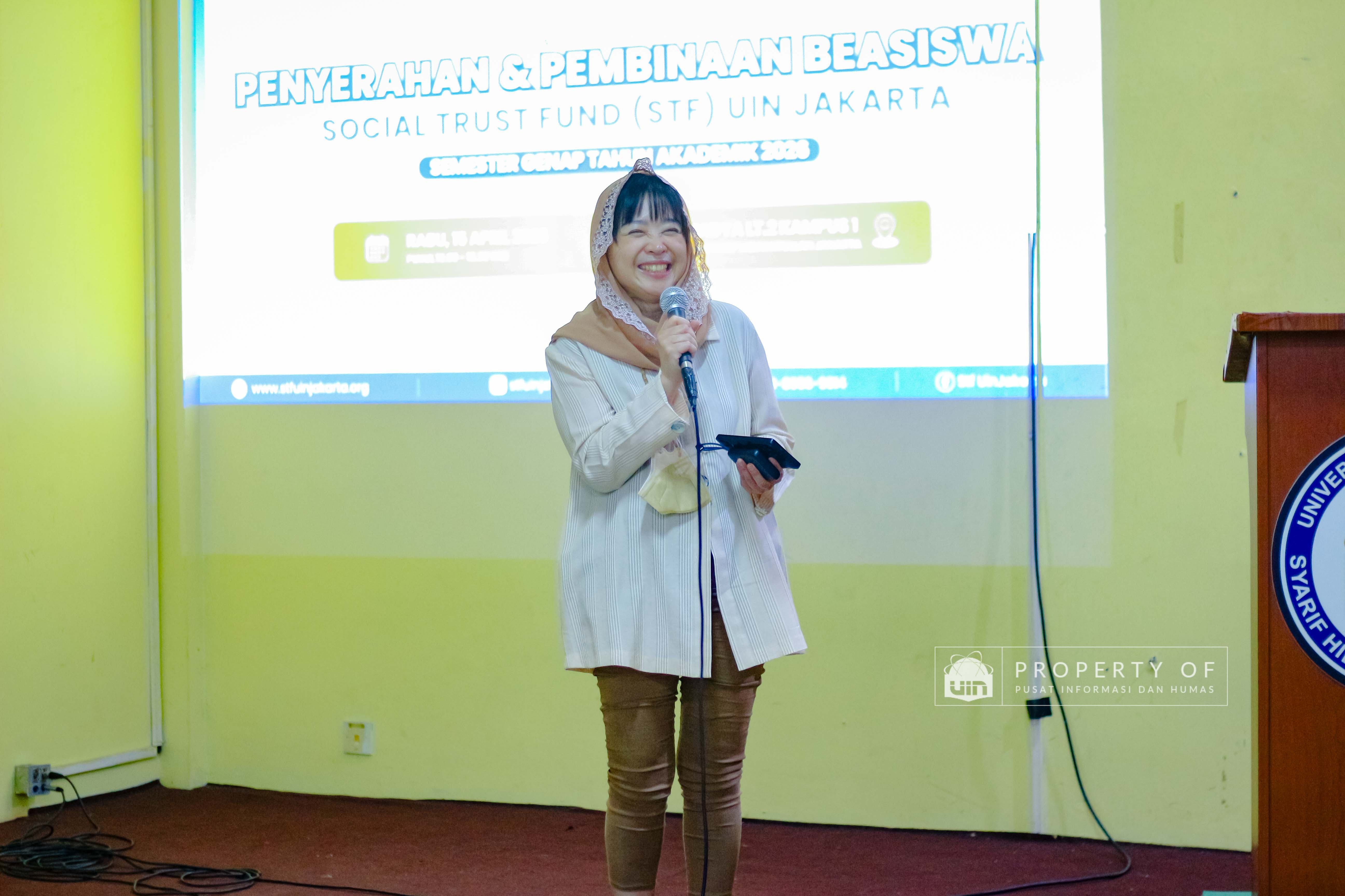 Social Trust Fund (STF) UIN Syarif Hidayatullah Jakarta kembali menegaskan komitmennya dalam mendukung keberlanjutan pendidikan mahasiswa melalui acara penyerahan beasiswa tahun 2026 di Aula Madya, Rabu (15/04/2026). Dalam kesempatan tersebut, Direktur STF, Prof. Dr. Amelia Fauzia, M.A., Ph.D., menyampaikan apresiasi kepada seluruh pihak yang terus mendukung program ini dan melaporkan bahwa pada semester ini STF berhasil menjaring 73 mahasiswa sebagai penerima manfaat, dengan harapan jumlah tersebut dapat terus bertambah di masa mendatang. ((Fotografer: Azka Raysa P./Teks: Fajri Nafisa/Pusat Informasi dan Humas UIN Jakarta)