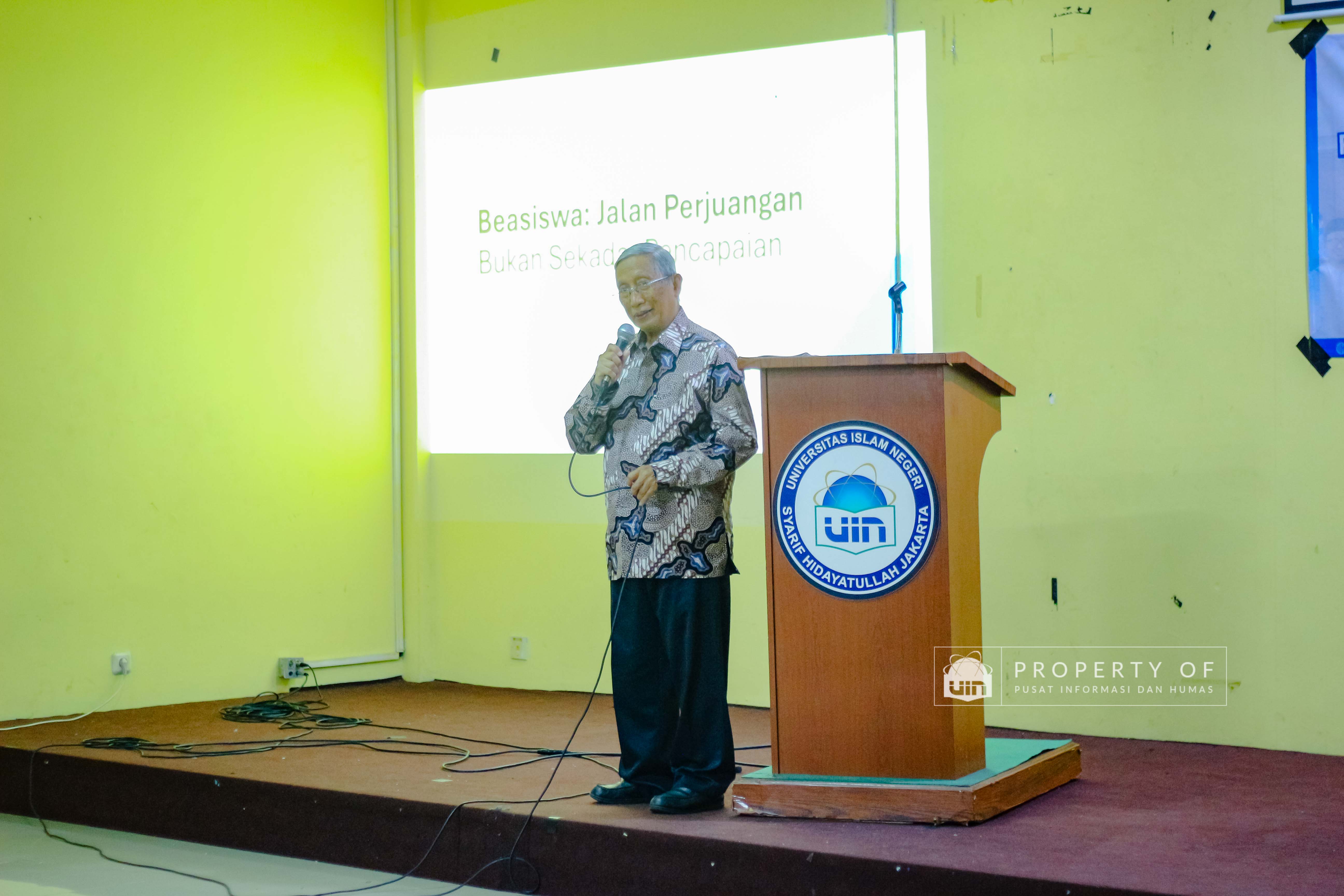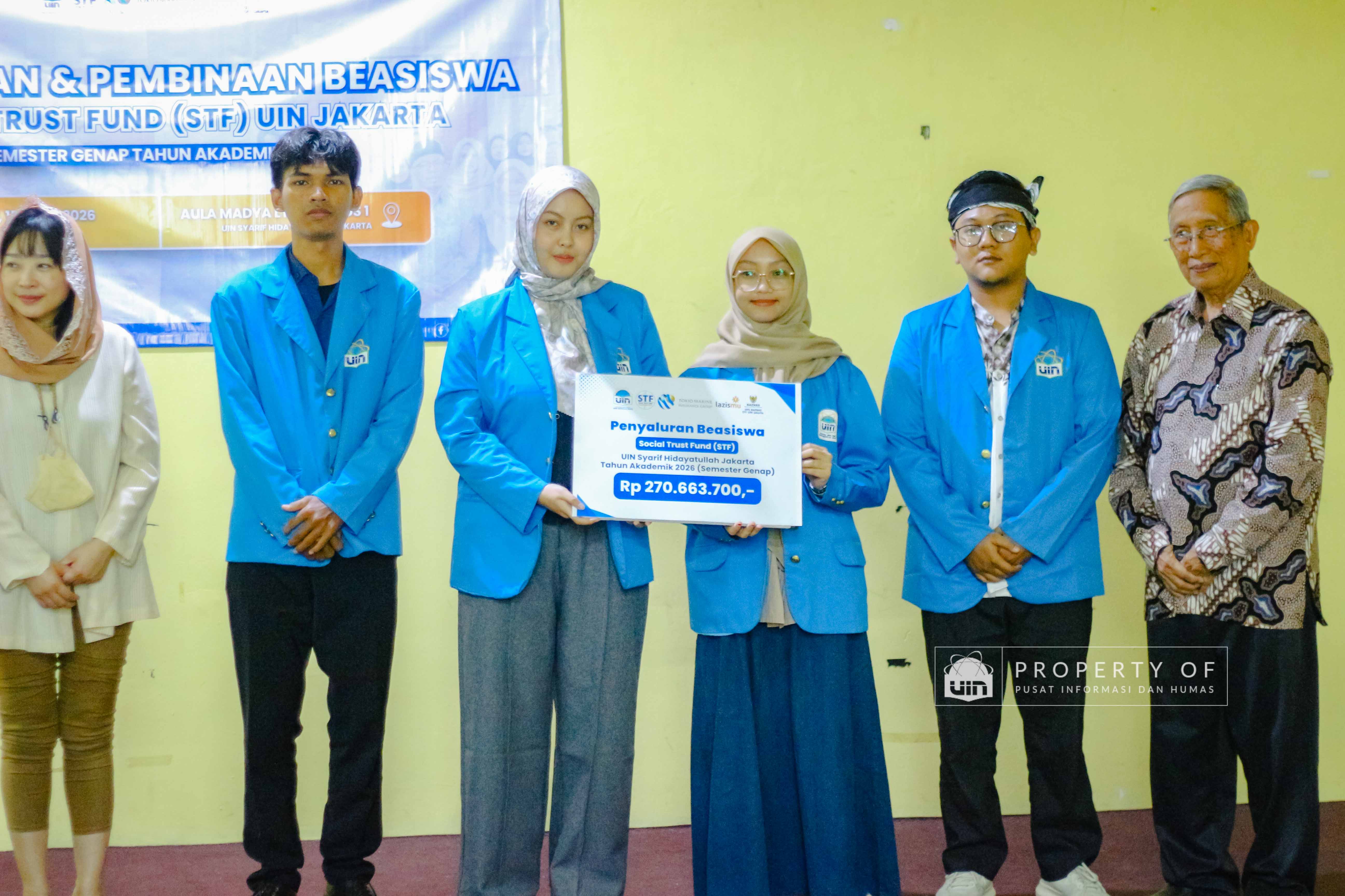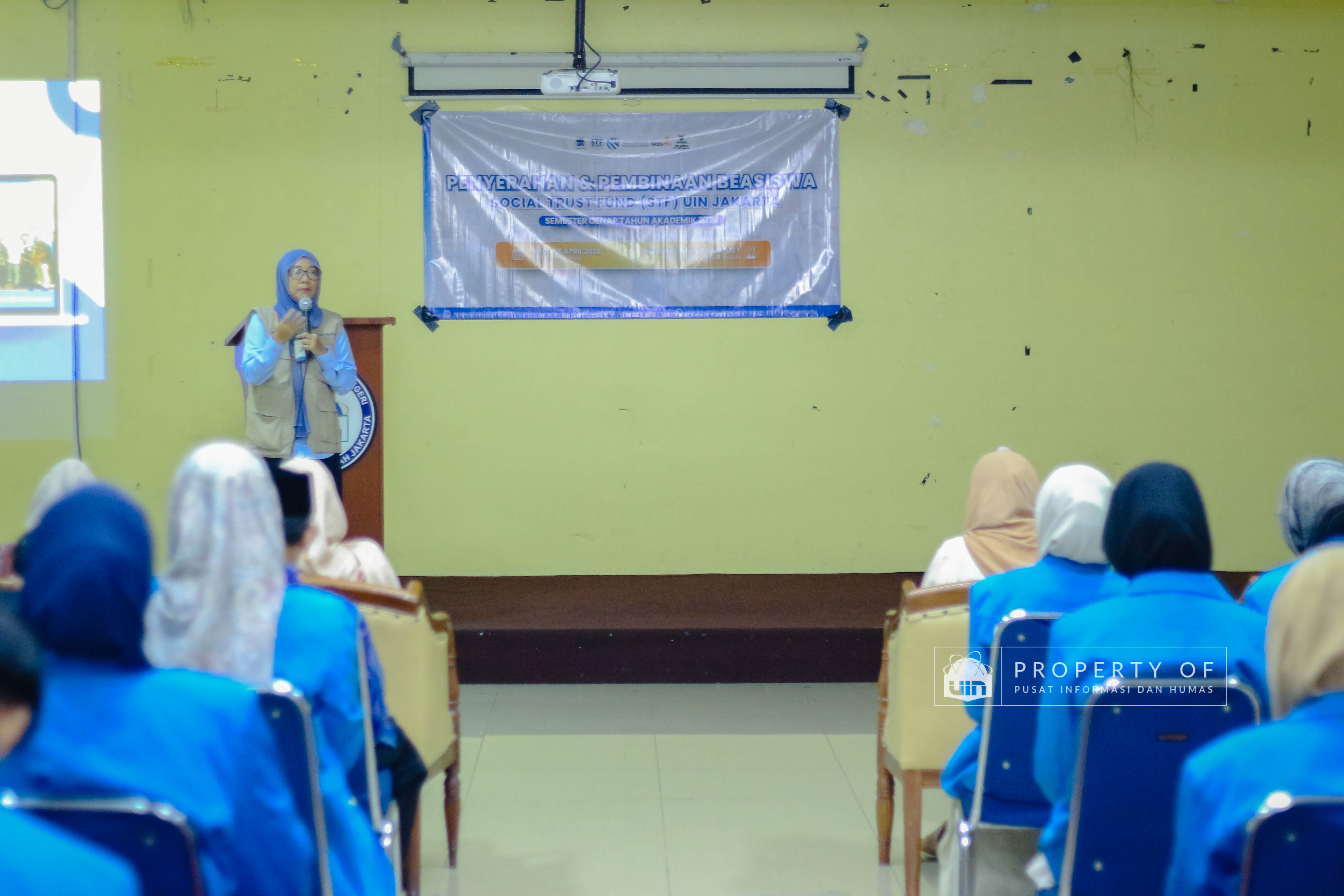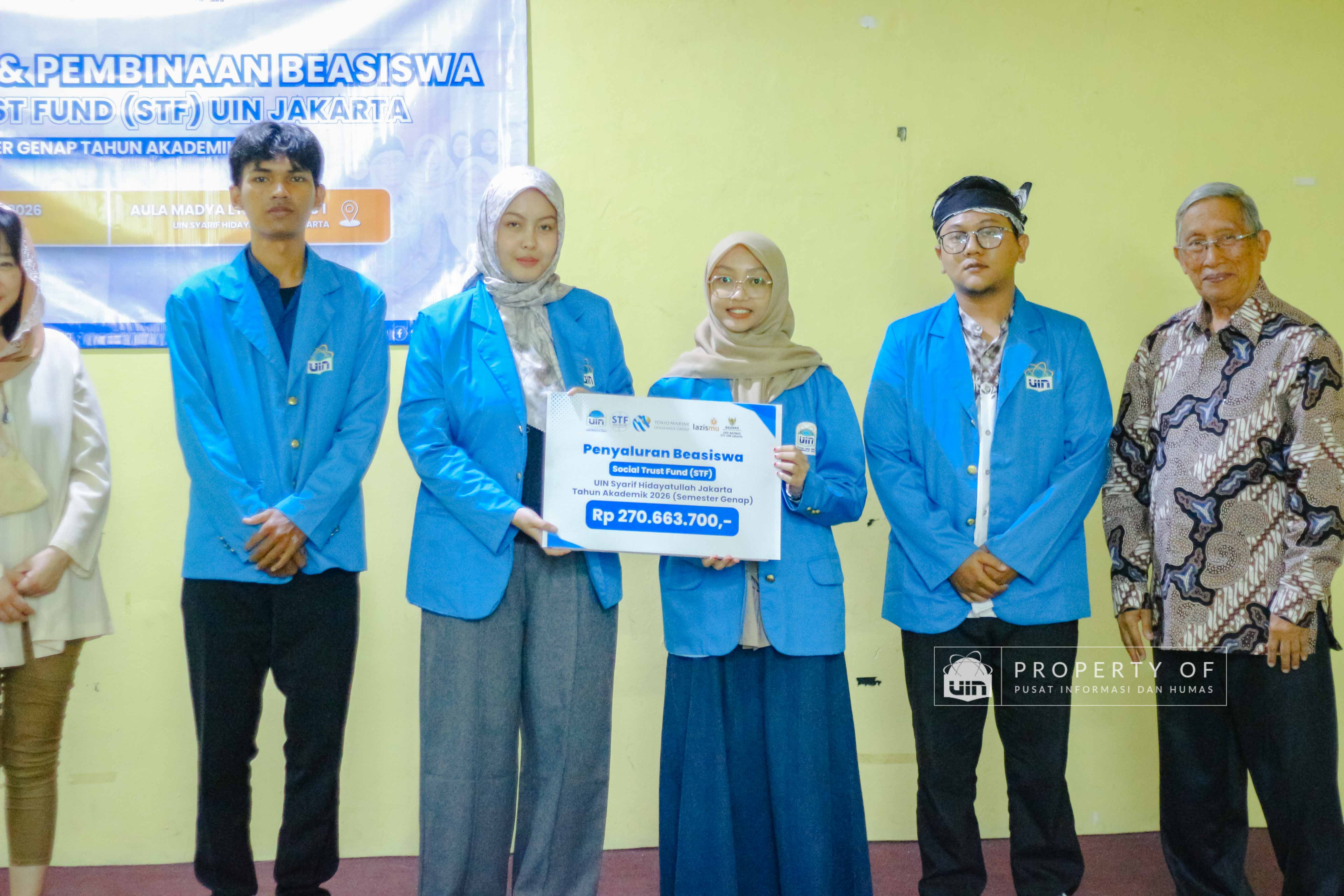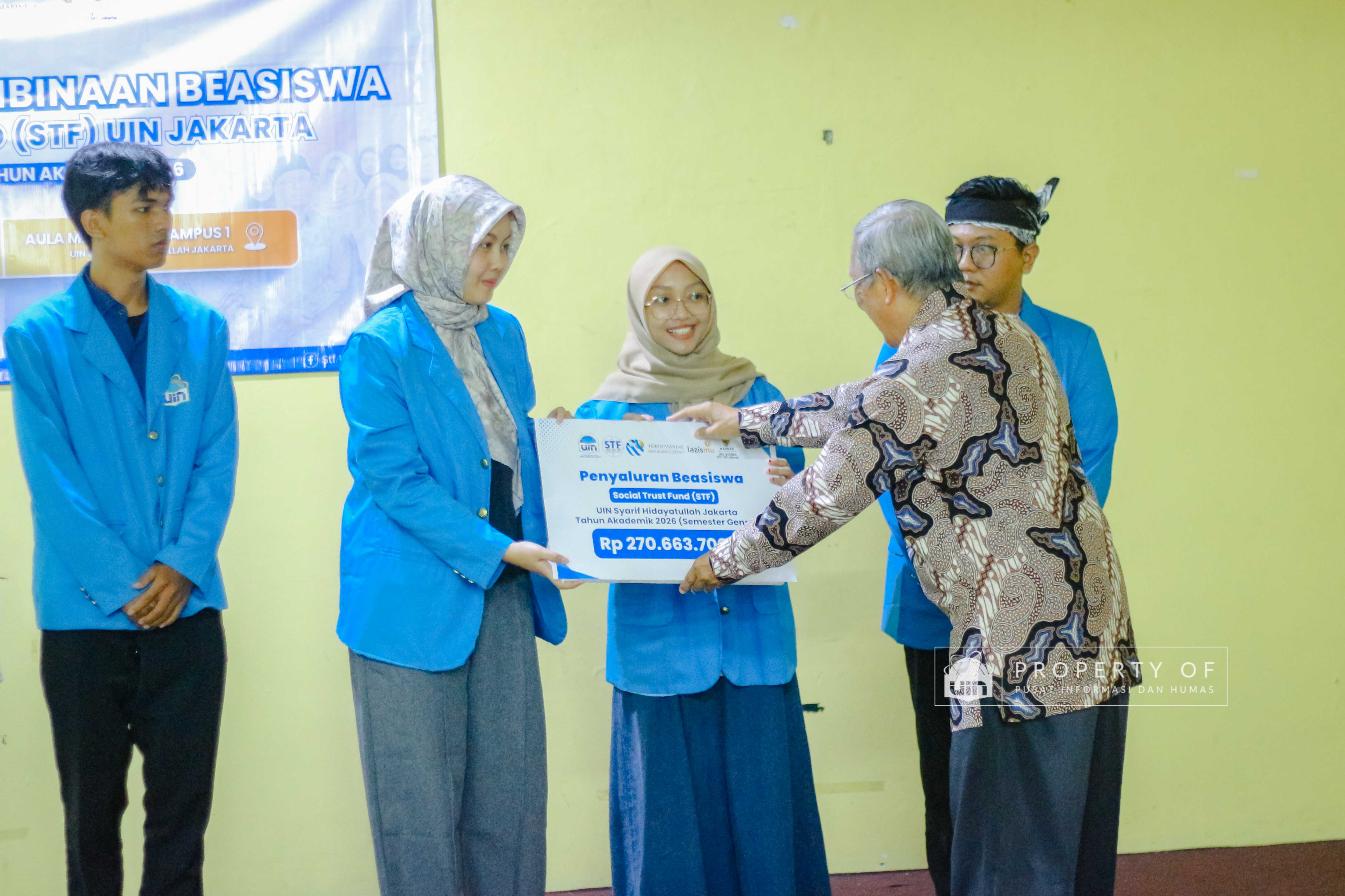 Social Trust Fund (STF) UIN Syarif Hidayatullah Jakarta kembali menegaskan komitmennya dalam mendukung keberlanjutan pendidikan mahasiswa melalui acara penyerahan beasiswa tahun 2026 di Aula Madya, Rabu (15/04/2026). Dalam kesempatan tersebut, Direktur STF, Prof. Dr. Amelia Fauzia, M.A., Ph.D., menyampaikan apresiasi kepada seluruh pihak yang terus mendukung program ini dan melaporkan bahwa pada semester ini STF berhasil menjaring 73 mahasiswa sebagai penerima manfaat, dengan harapan jumlah tersebut dapat terus bertambah di masa mendatang. ((Fotografer: Azka Raysa P./Teks: Fajri Nafisa/Pusat Informasi dan Humas UIN Jakarta)