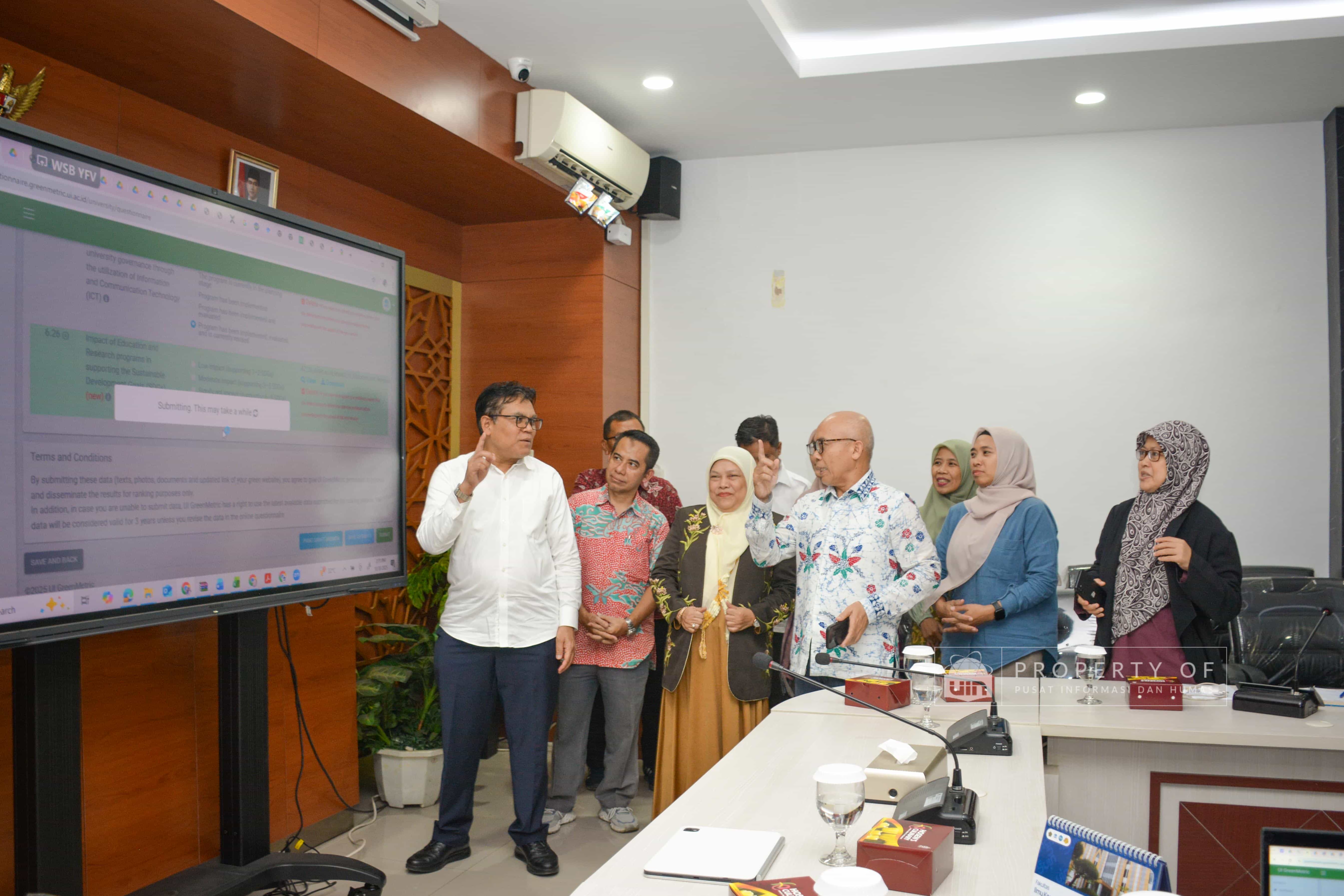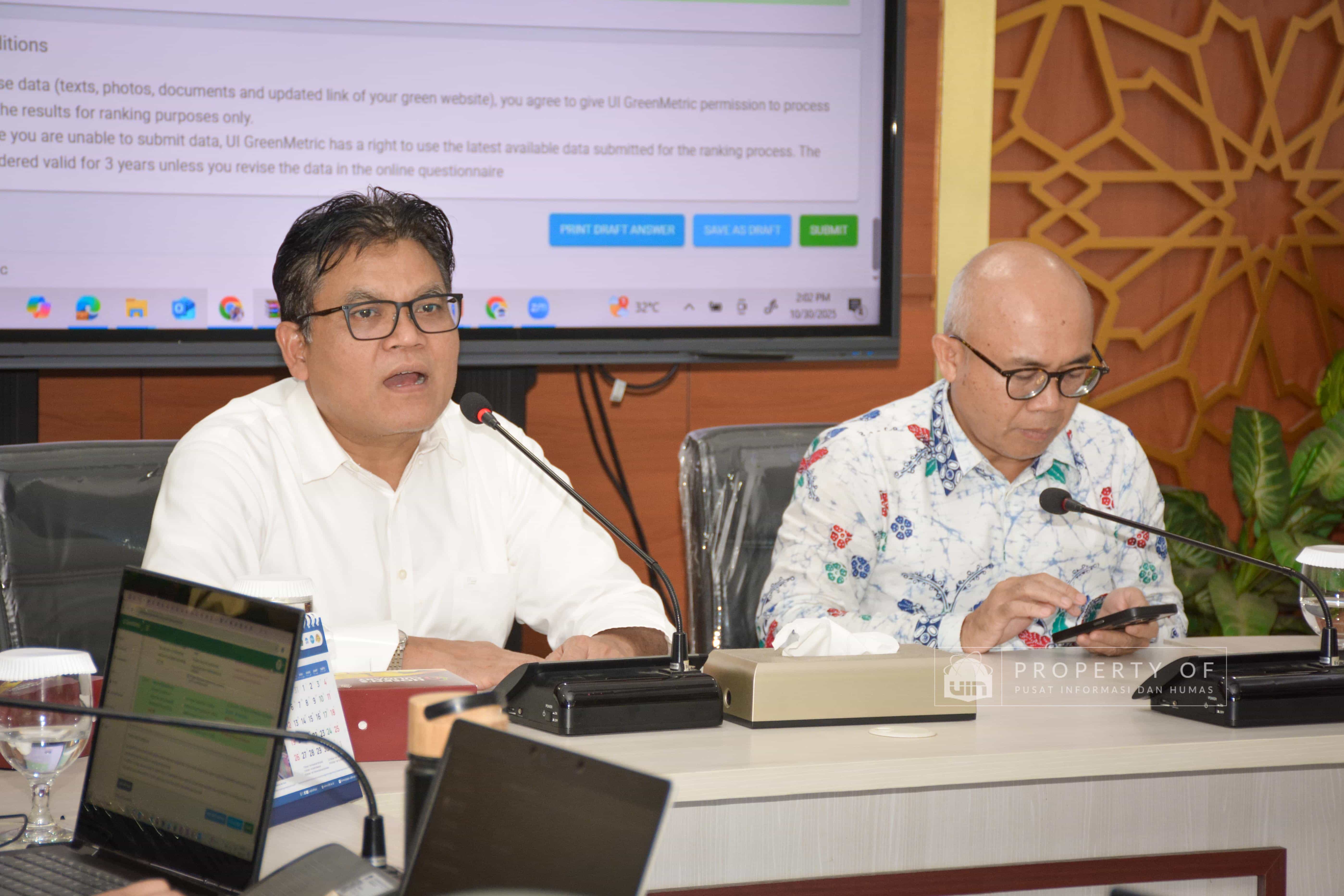 Dalam rangka memperkuat komitmen UIN Jakarta dalam membangun visi Green Campus berbasis SDGs, akademisi dari berbagai fakultas dikumpulkan dalam Summit Green Campus 2025 pada Kamis (30/10/2025). Rapat tahunan ini digelar untuk mendiskusikan strategi jangka panjang UIN Jakarta dalam menerapkan keseimbangan lingkungan dengan mengorganisir suplai air, manajemen pembuangan sampah, penghematan listrik, dan pencemaran udara. (Fotografer: Aqilah Qurratulaini/Teks: Muhamad Arifin Ilham/Pusat Informasi dan Humas UIN Jakarta)