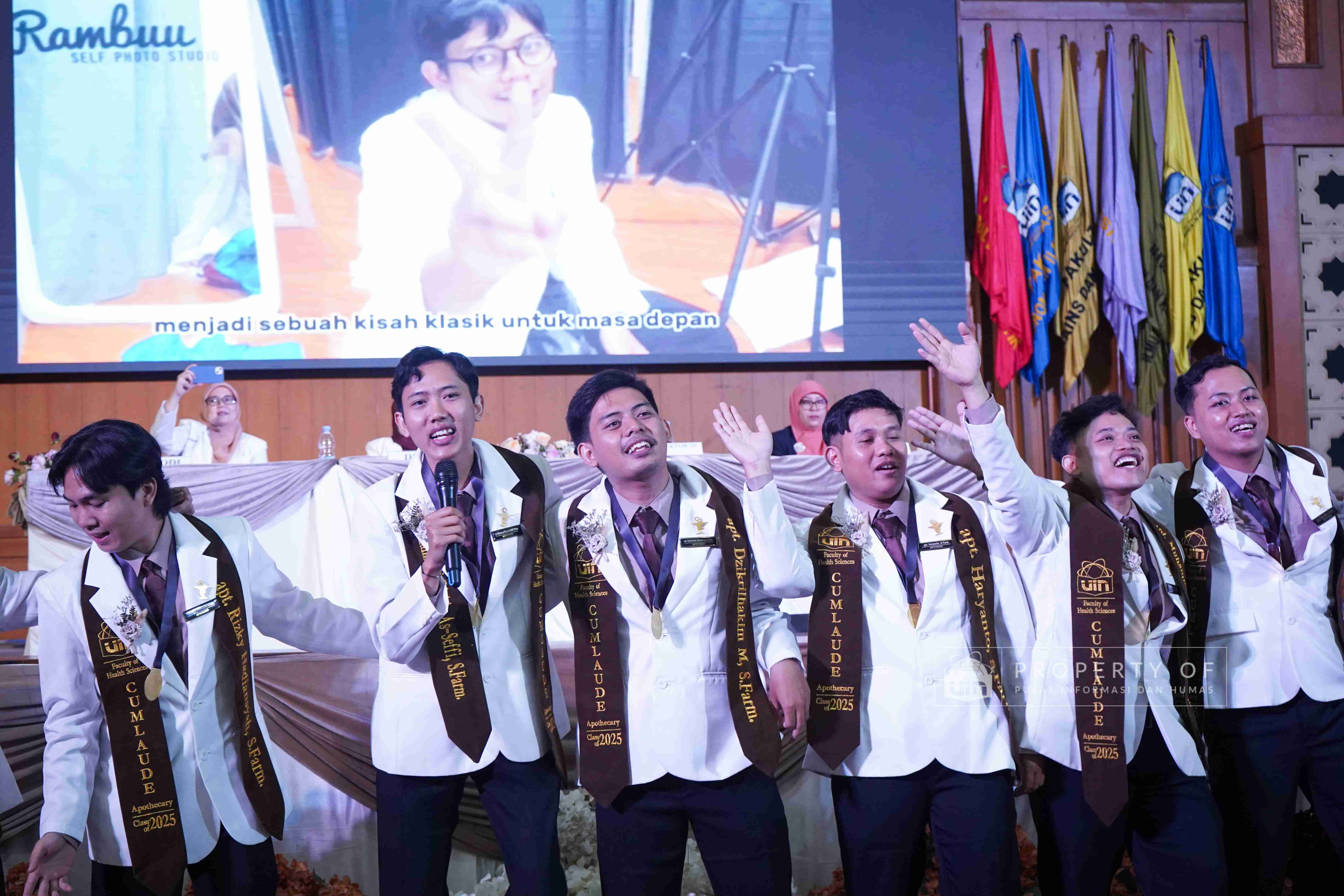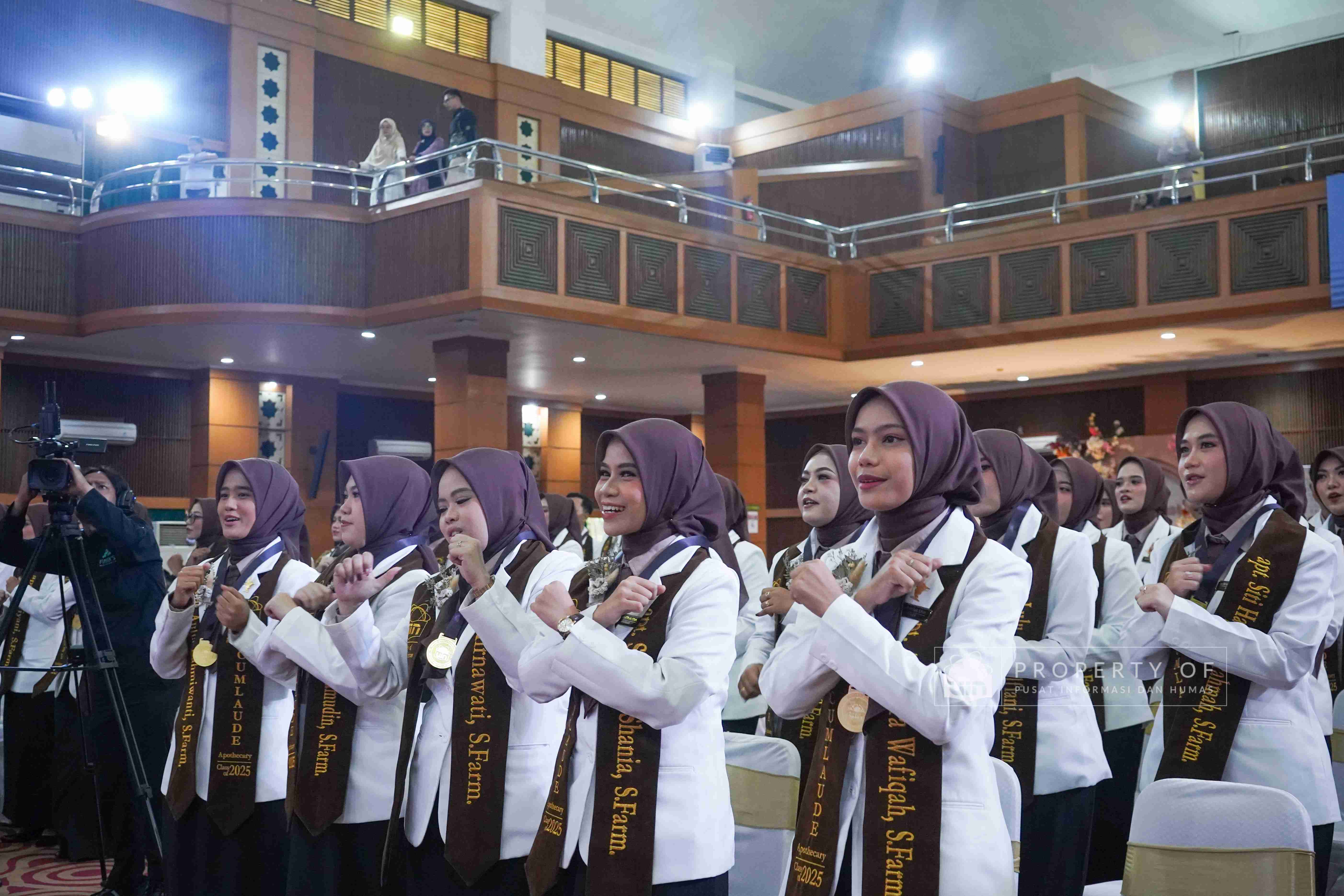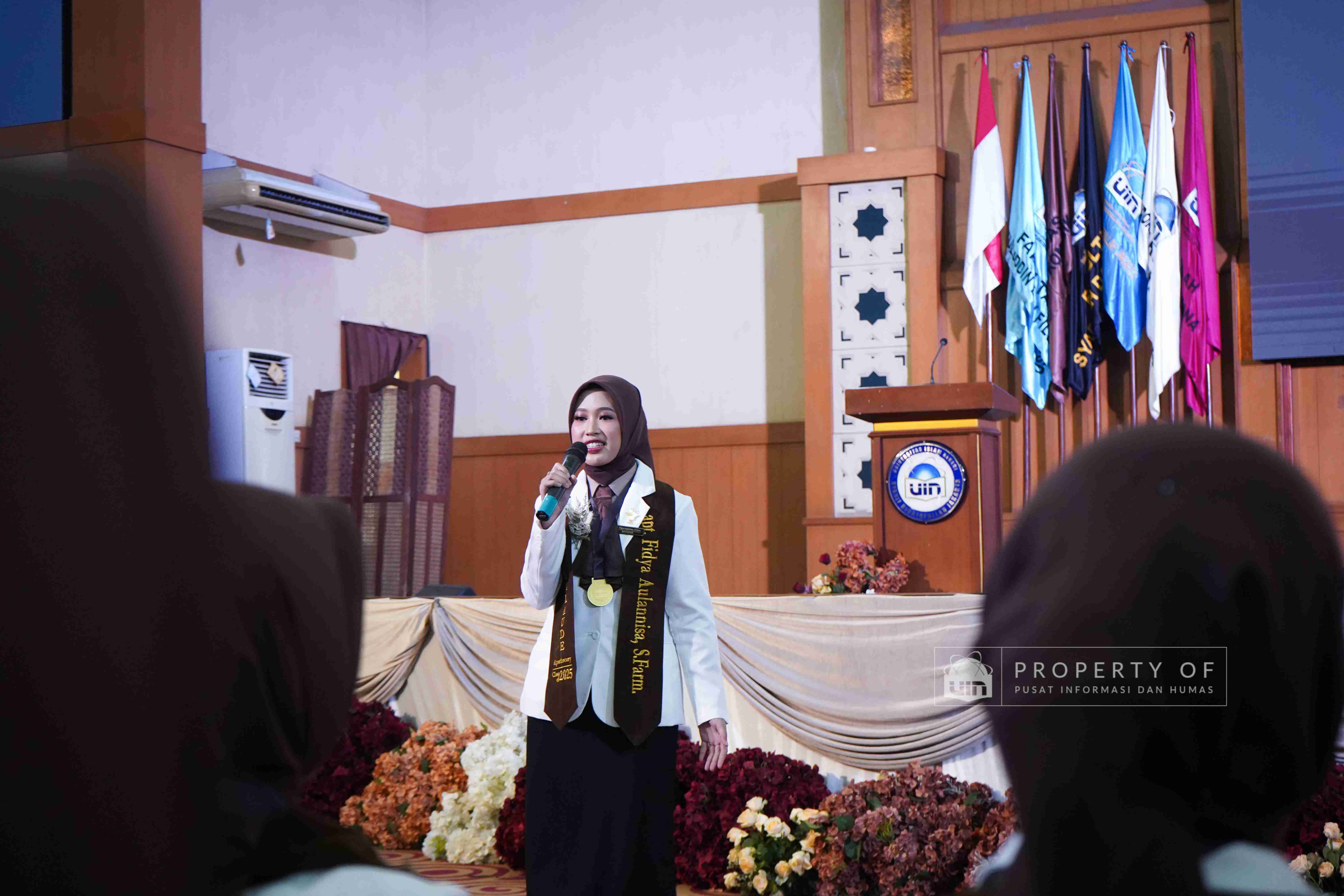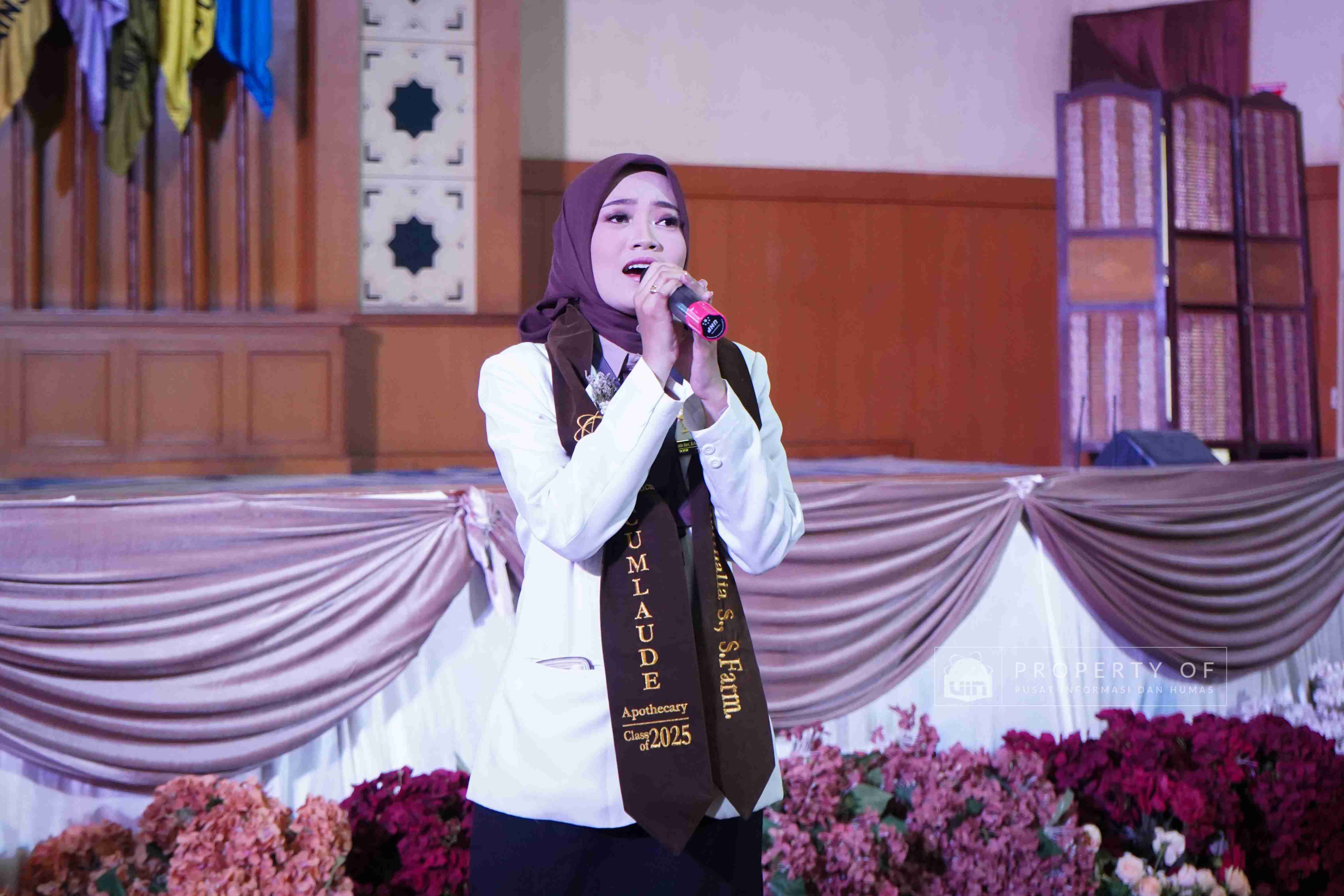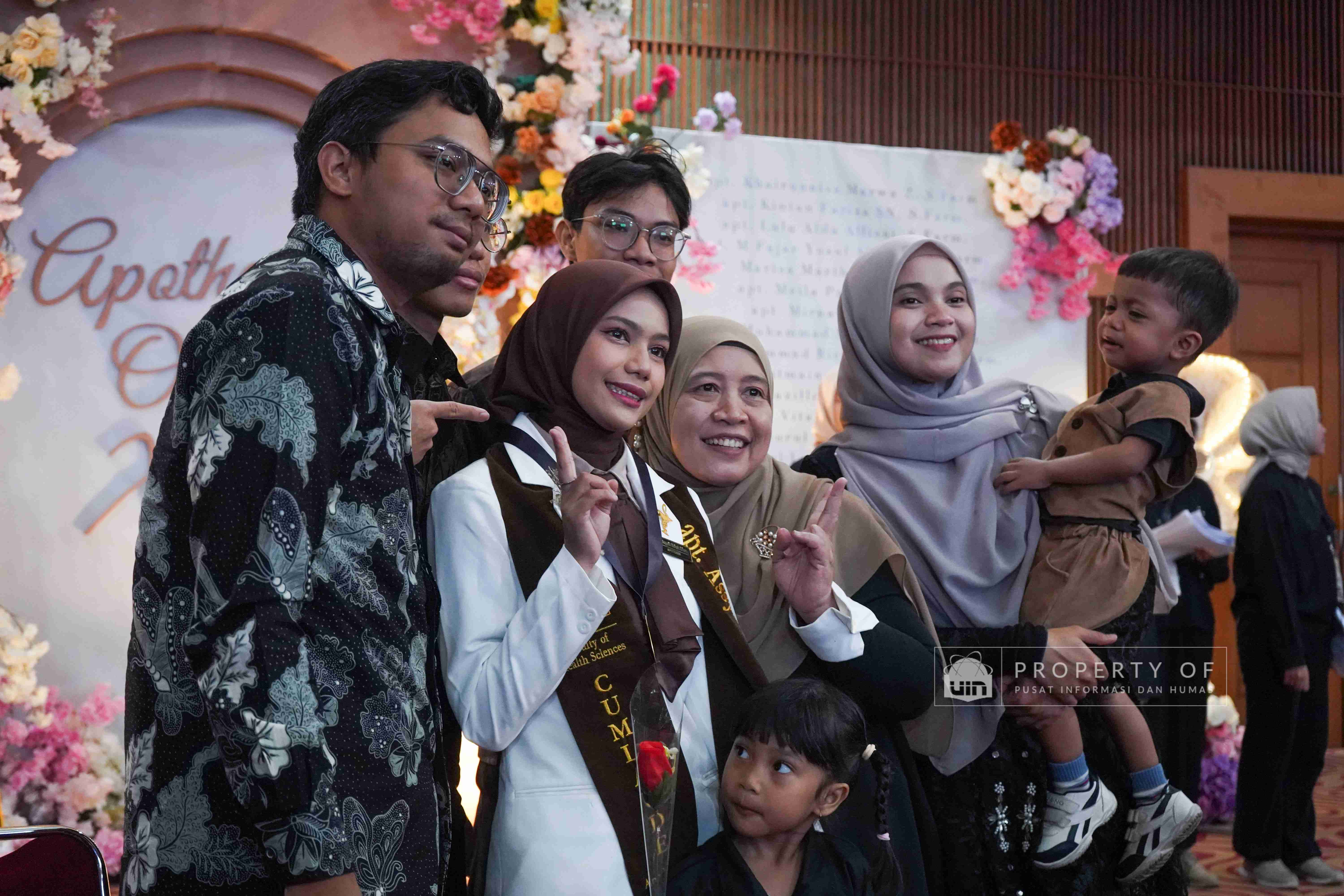 Program studi profesi apoteker Fakultas Ilmu Kesehatan UIN Jakarta gelar Pelantikan dan pengambilan Sumpah Apoteker angkatan ke -15 yang diselenggarakan di Auditorium dr. Dr. MK. Tadjudin pada Rabu (22/10/2025). Mewakili Rektor UIN Jakarta, Wakil Rektor Bidang Kemahasiswaan UIN Jakarta, Prof. Dr. Ali Munhanif, M.A., Ph.D, mengungkapkan selamat kepada para sarjana apoteker yang sudah melakukan Sumpah Apoteker. (Fotografer: Aqilah Qurratulaini/Teks: Muhamad Arifin Ilham/Pusat Informasi dan Humas UIN Jakarta)