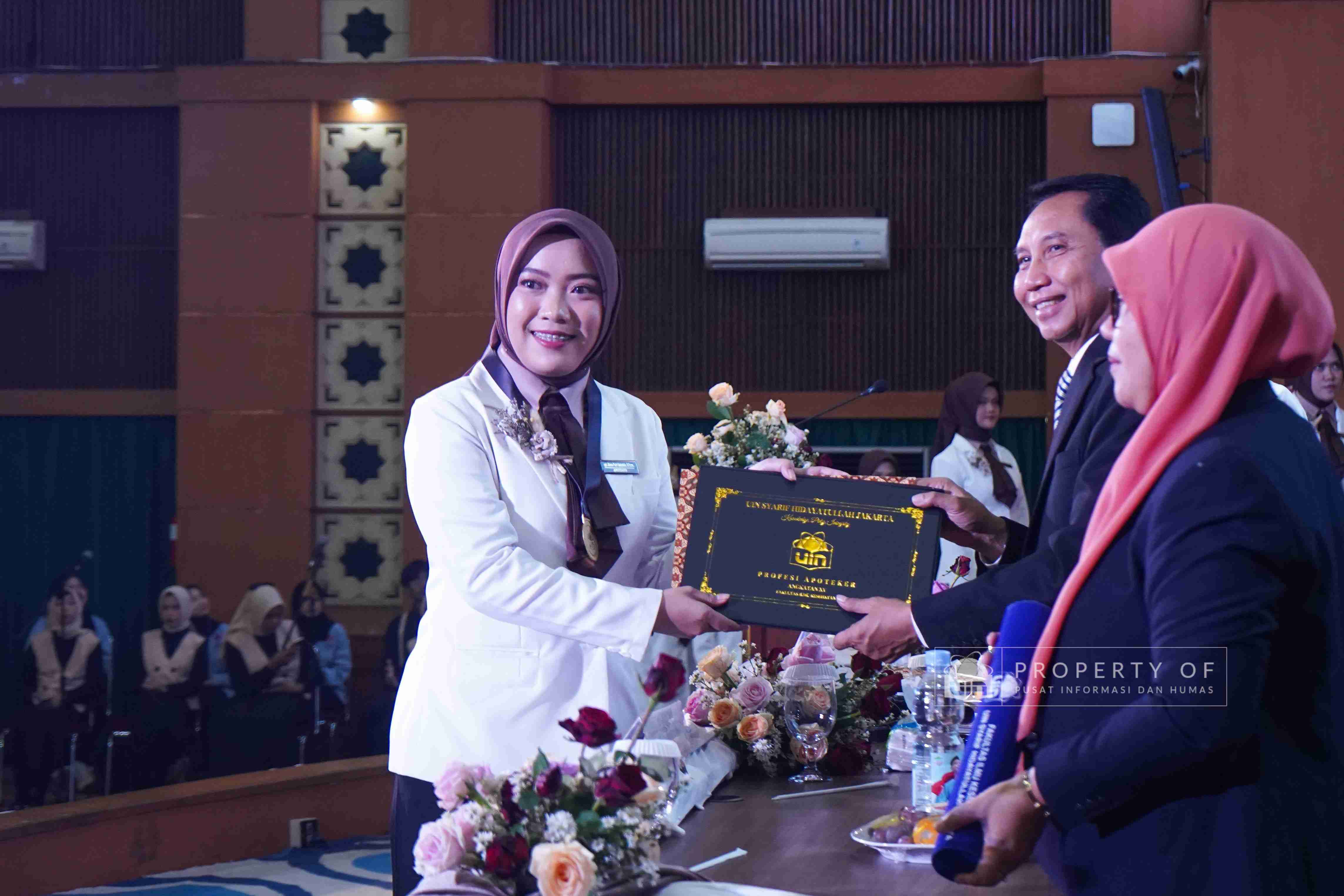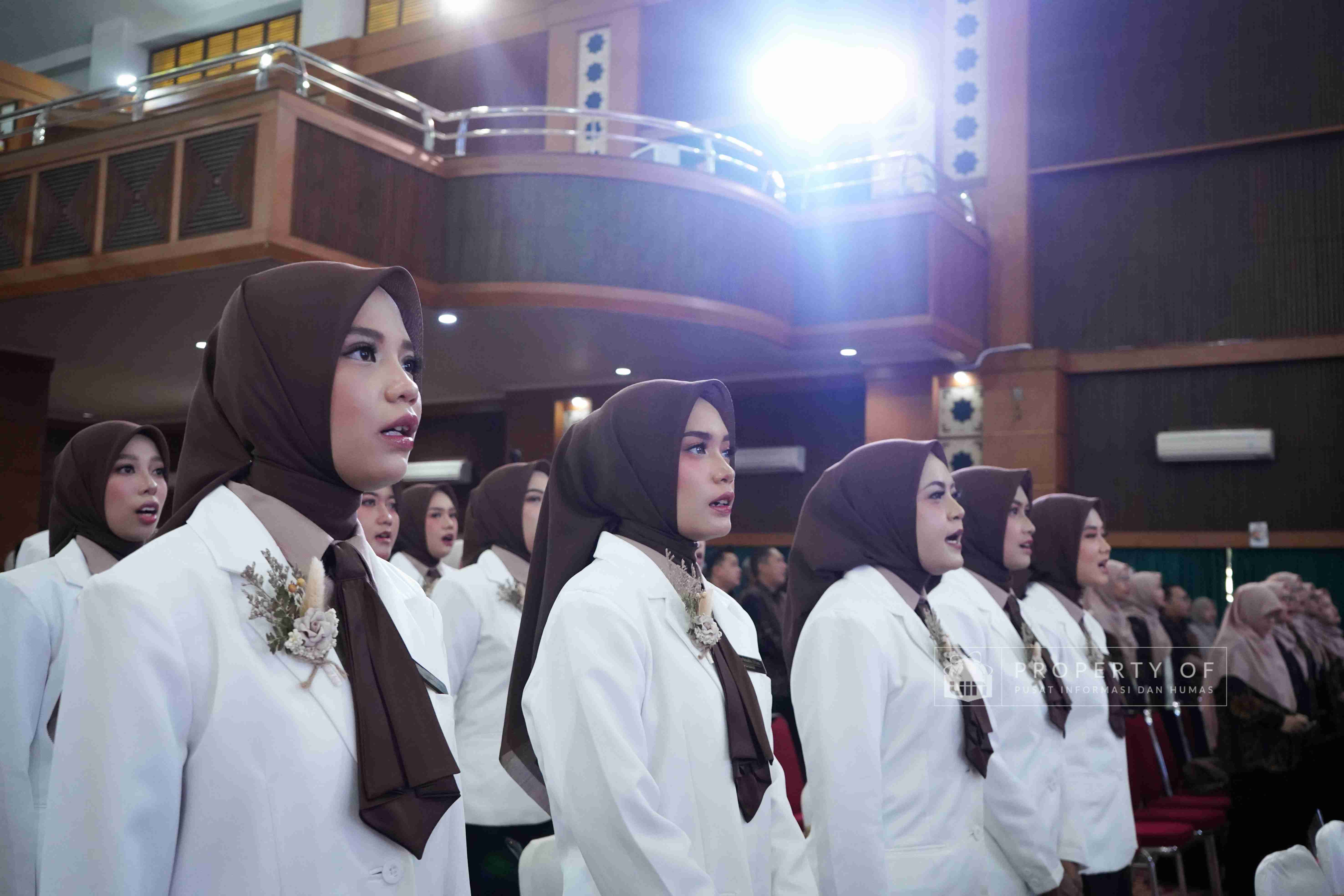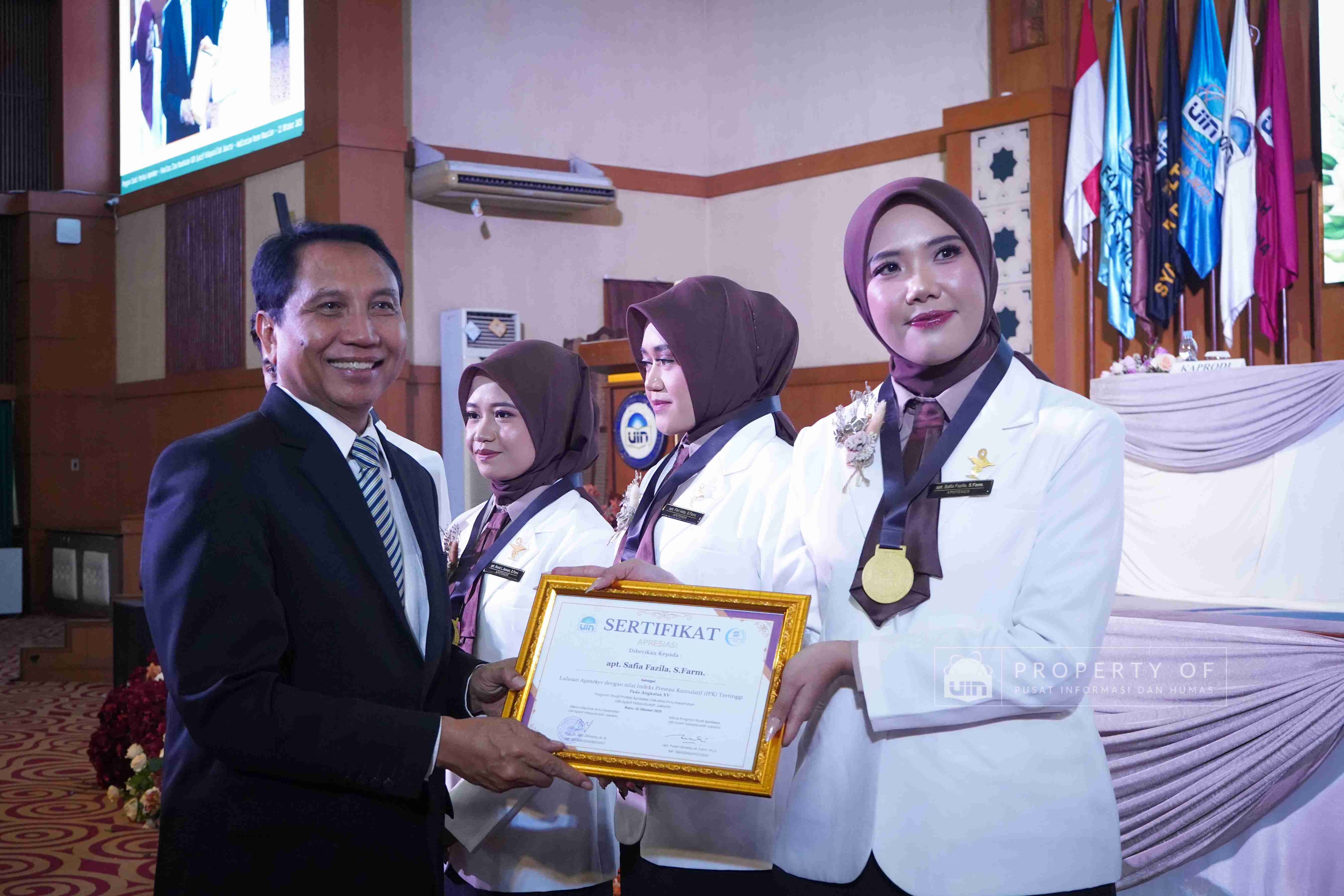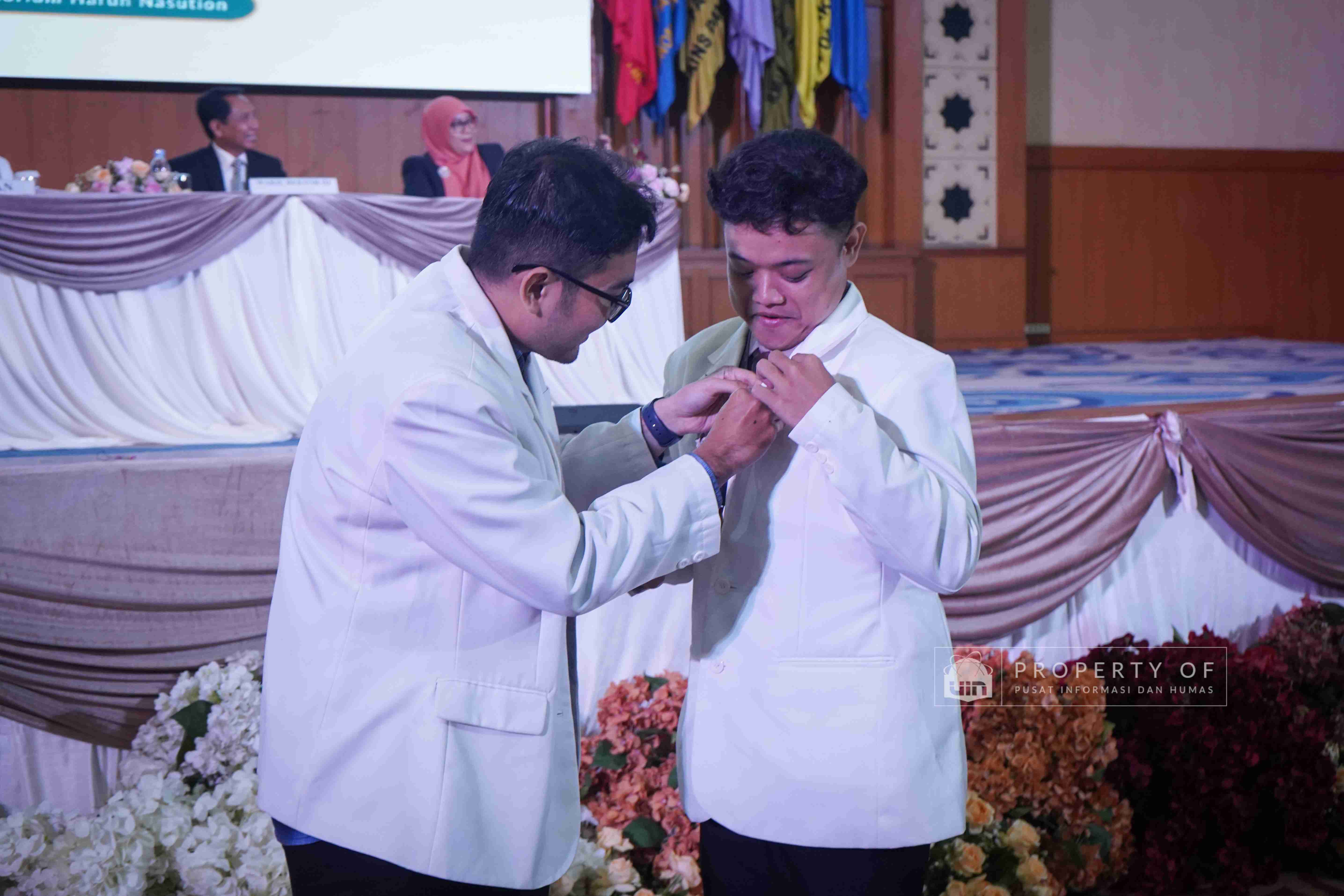 Program studi profesi apoteker Fakultas Ilmu Kesehatan UIN Jakarta gelar Pelantikan dan pengambilan Sumpah Apoteker angkatan ke -15 yang diselenggarakan di Auditorium dr. Dr. MK. Tadjudin pada Rabu (22/10/2025). Mewakili Rektor UIN Jakarta, Wakil Rektor Bidang Kemahasiswaan UIN Jakarta, Prof. Dr. Ali Munhanif, M.A., Ph.D, mengungkapkan selamat kepada para sarjana apoteker yang sudah melakukan Sumpah Apoteker. (Fotografer: Aqilah Qurratulaini/Teks: Muhamad Arifin Ilham/Pusat Informasi dan Humas UIN Jakarta)