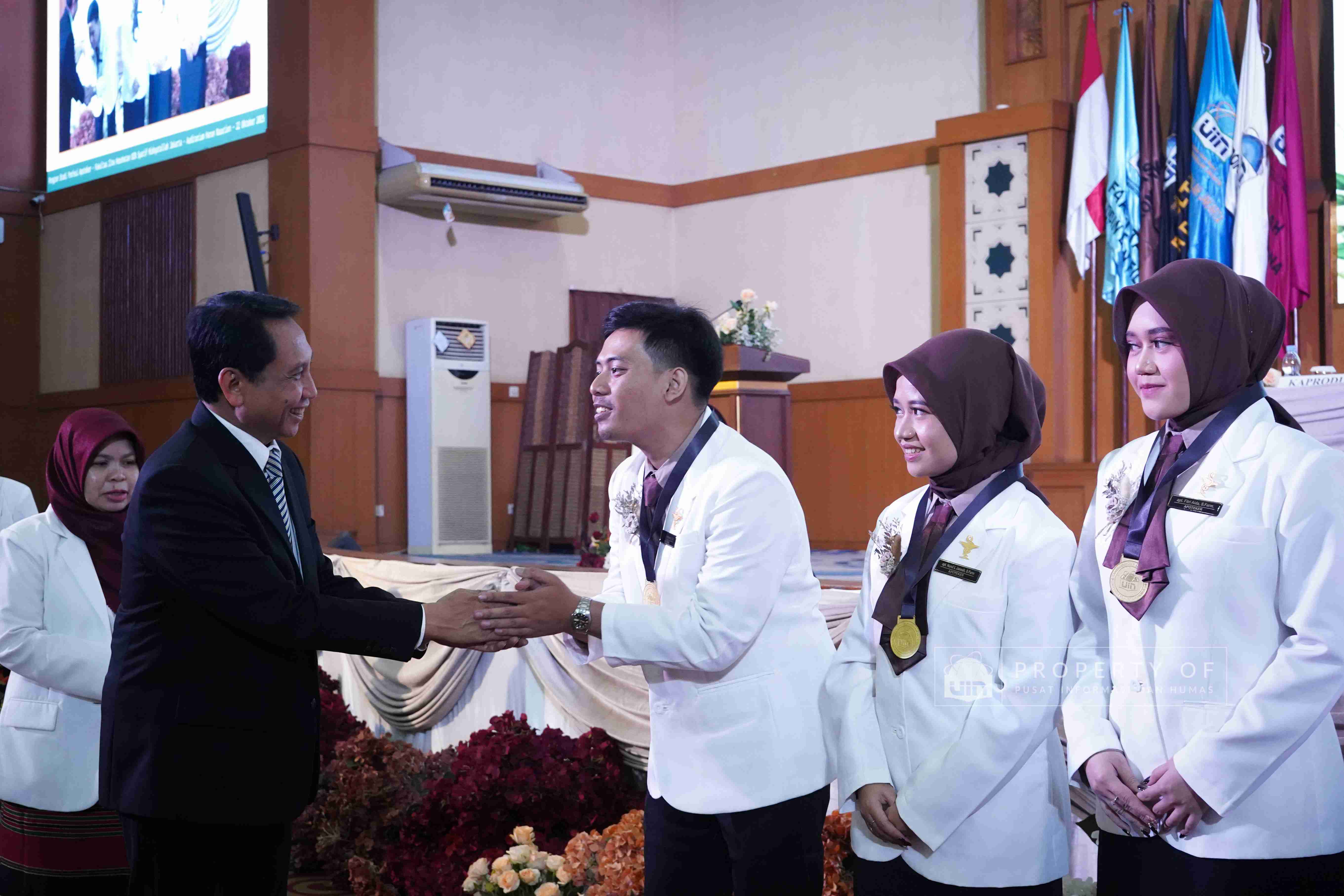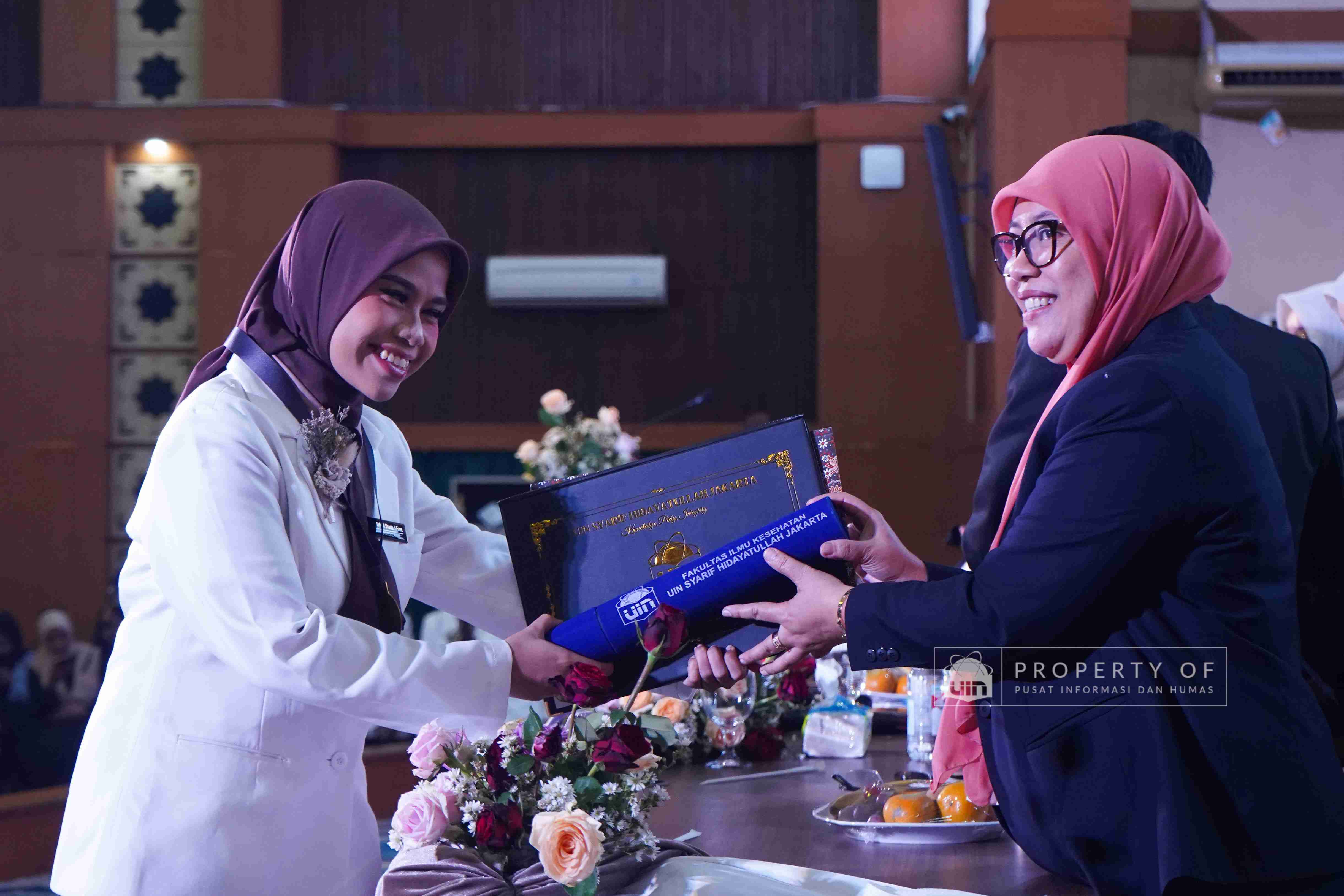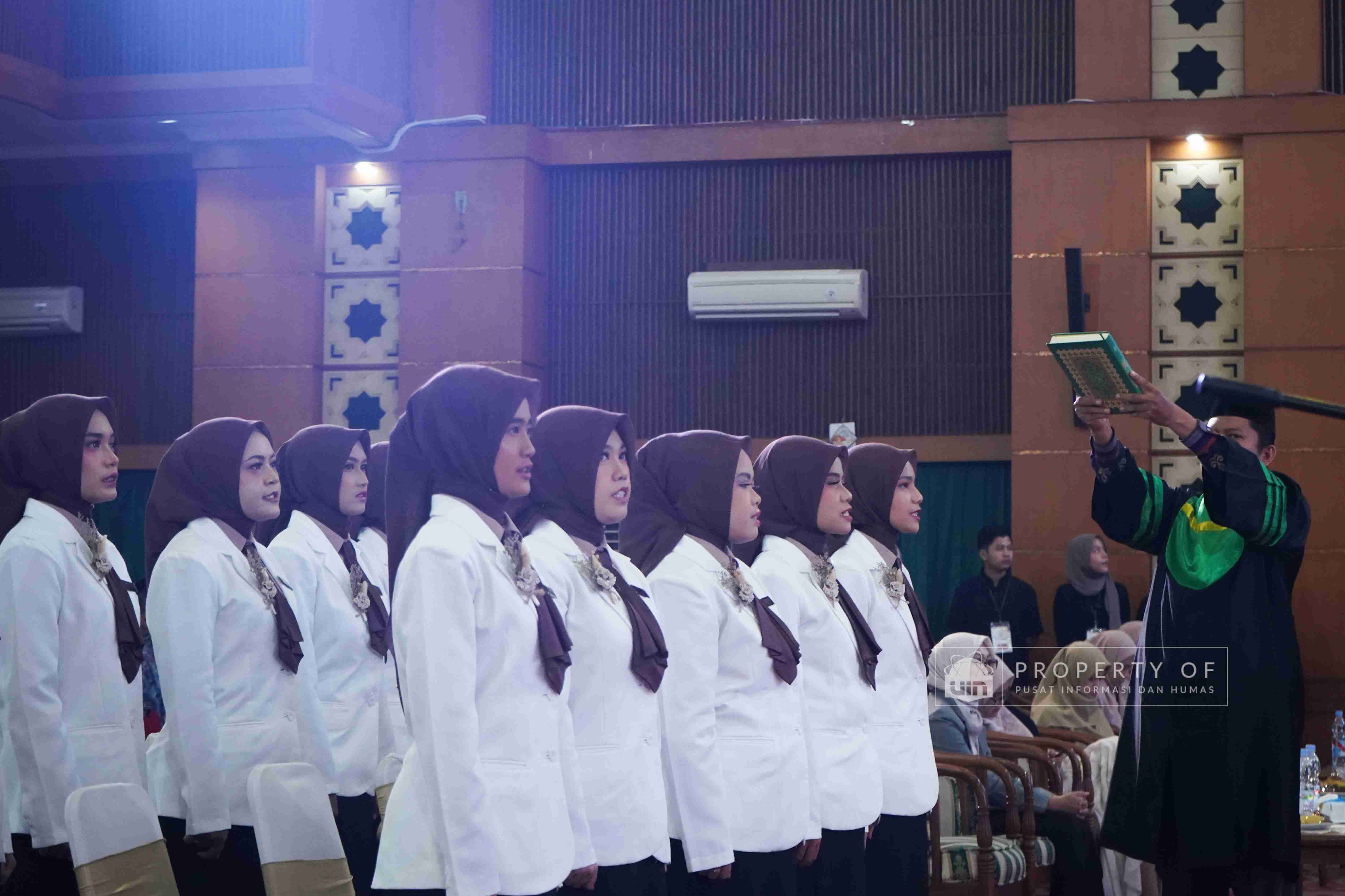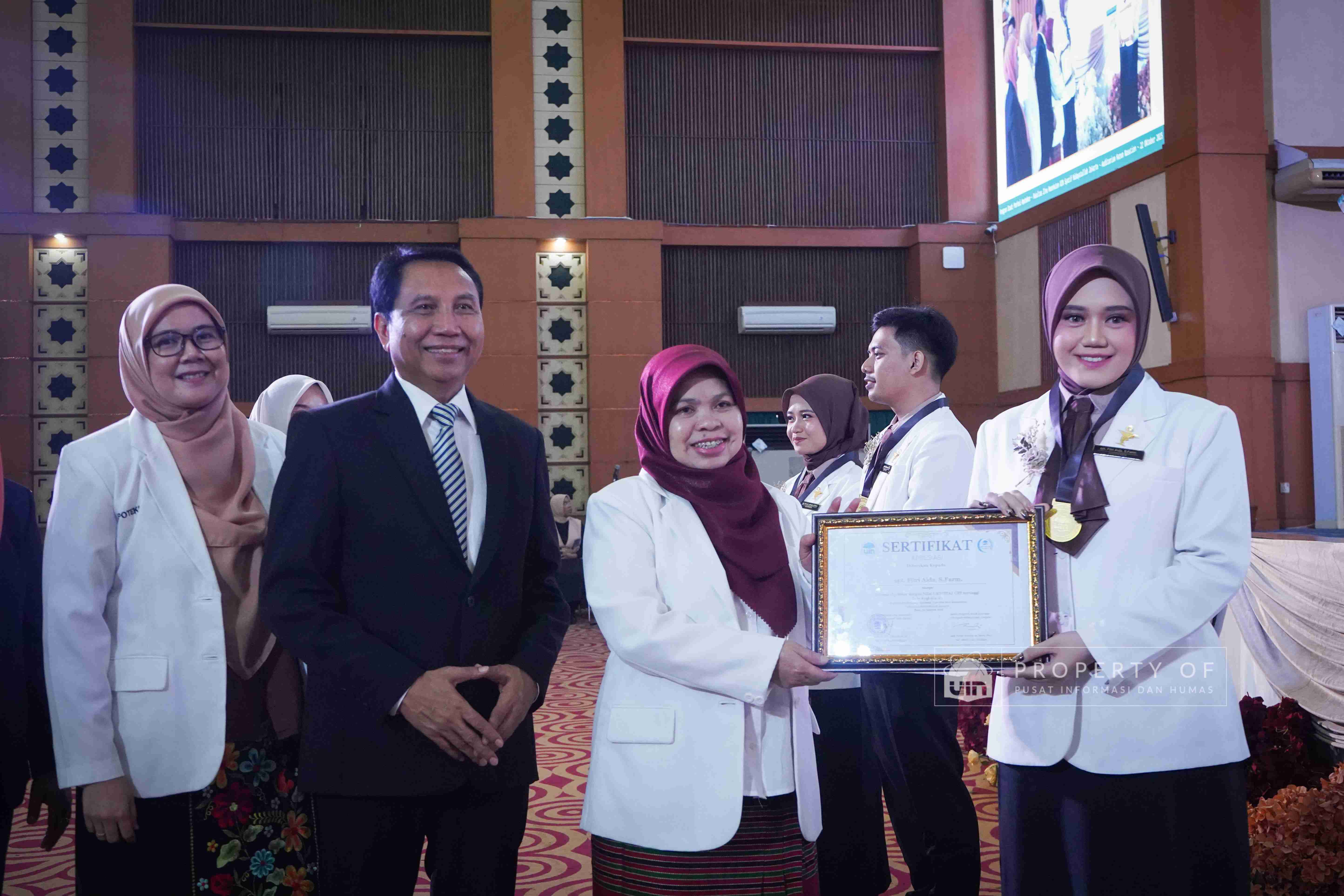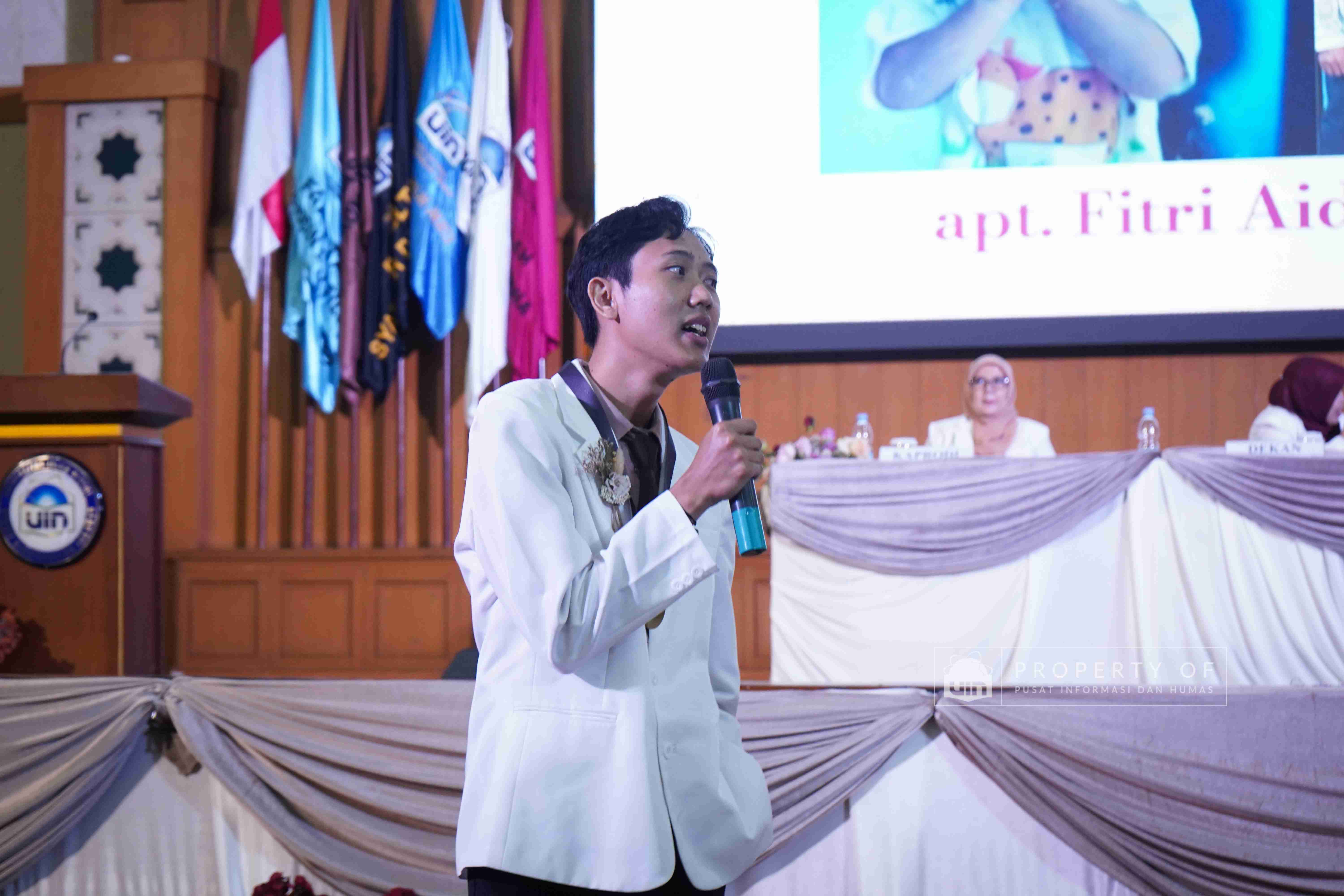 Program studi profesi apoteker Fakultas Ilmu Kesehatan UIN Jakarta gelar Pelantikan dan pengambilan Sumpah Apoteker angkatan ke -15 yang diselenggarakan di Auditorium dr. Dr. MK. Tadjudin pada Rabu (22/10/2025). Mewakili Rektor UIN Jakarta, Wakil Rektor Bidang Kemahasiswaan UIN Jakarta, Prof. Dr. Ali Munhanif, M.A., Ph.D, mengungkapkan selamat kepada para sarjana apoteker yang sudah melakukan Sumpah Apoteker. (Fotografer: Aqilah Qurratulaini/Teks: Muhamad Arifin Ilham/Pusat Informasi dan Humas UIN Jakarta)