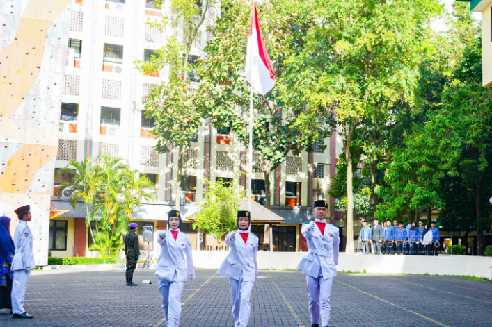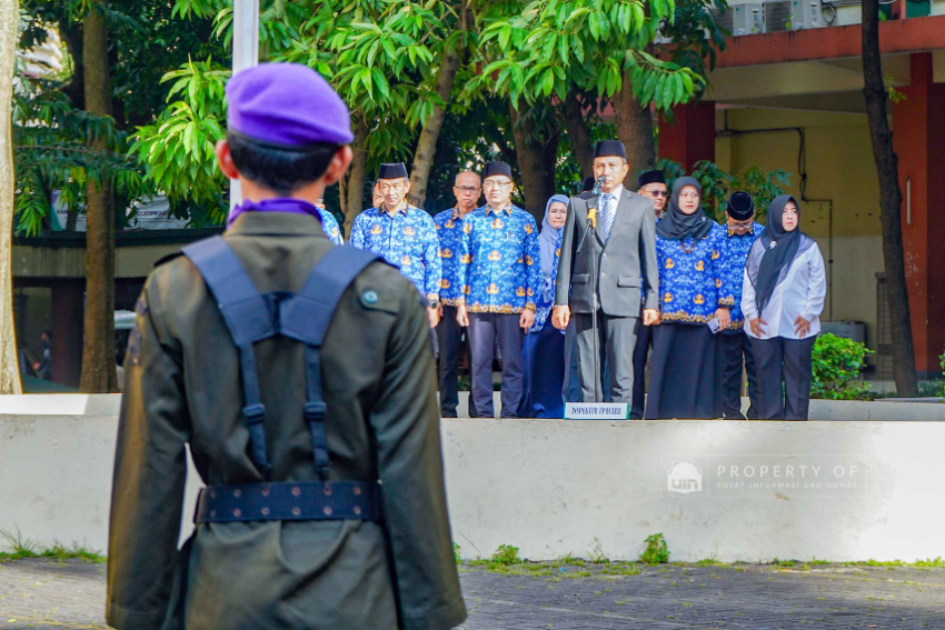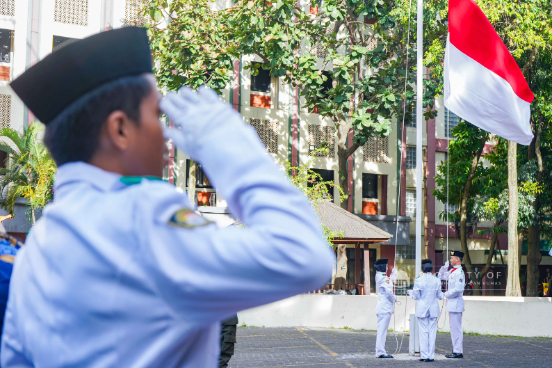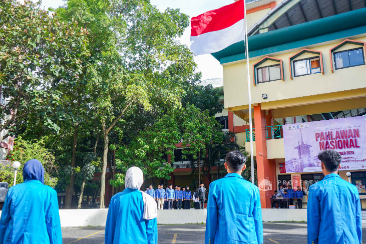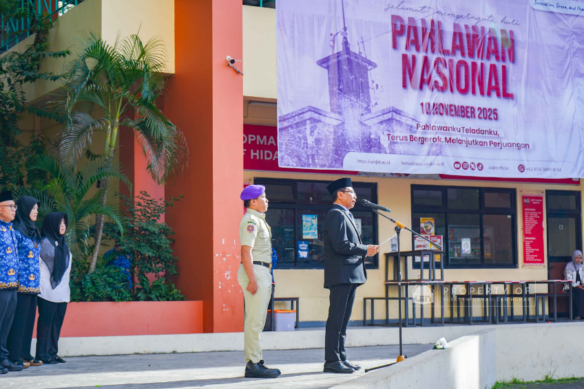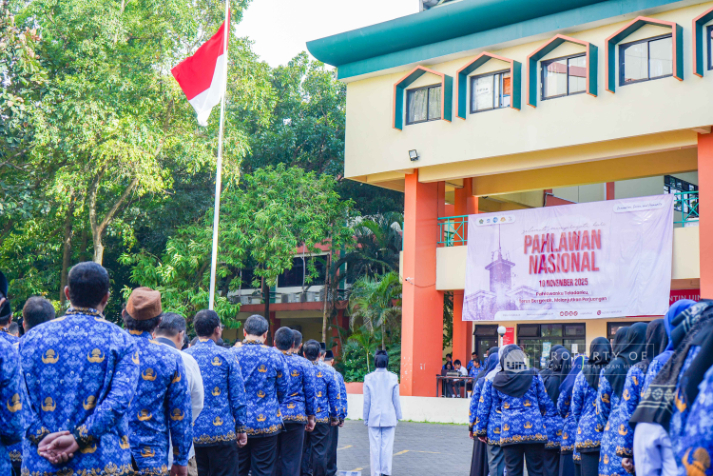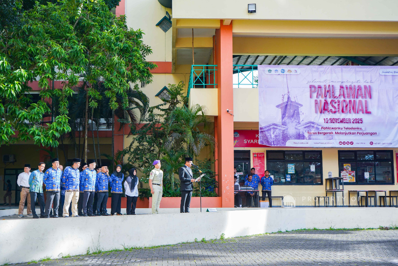 UIN Syarif Hidayatullah Jakarta menggelar upacara bendera peringatan Hari Pahlawan di Lapangan Student Center pada Senin (10/11/2025). Dalam amanatnya, Wakil Rektor Bidang Kemahasiswaan, Prof. Ali Munhanif, M.A., Ph.D., menegaskan bahwa mahasiswa harus meneladani semangat para pahlawan. Ia menyatakan bahwa perjuangan hari ini tidak lagi di medan perang, melainkan di "medan ilmu pengetahuan, perjuangan moral, dan juga karya untuk bangsa". Prof. Ali berharap semangat perjuangan ini terus menyala agar sivitas akademika dapat terus bergerak dan berdampak positif bagi Indonesia. Upacara ini dihadiri oleh para pimpinan, dosen, tenaga kependidikan, serta mahasiswa. (Fotografer: Tiara Abdhie/ Teks: Nabila Azzahra Syawal/Pusat Informasi dan Humas UIN Jakarta)