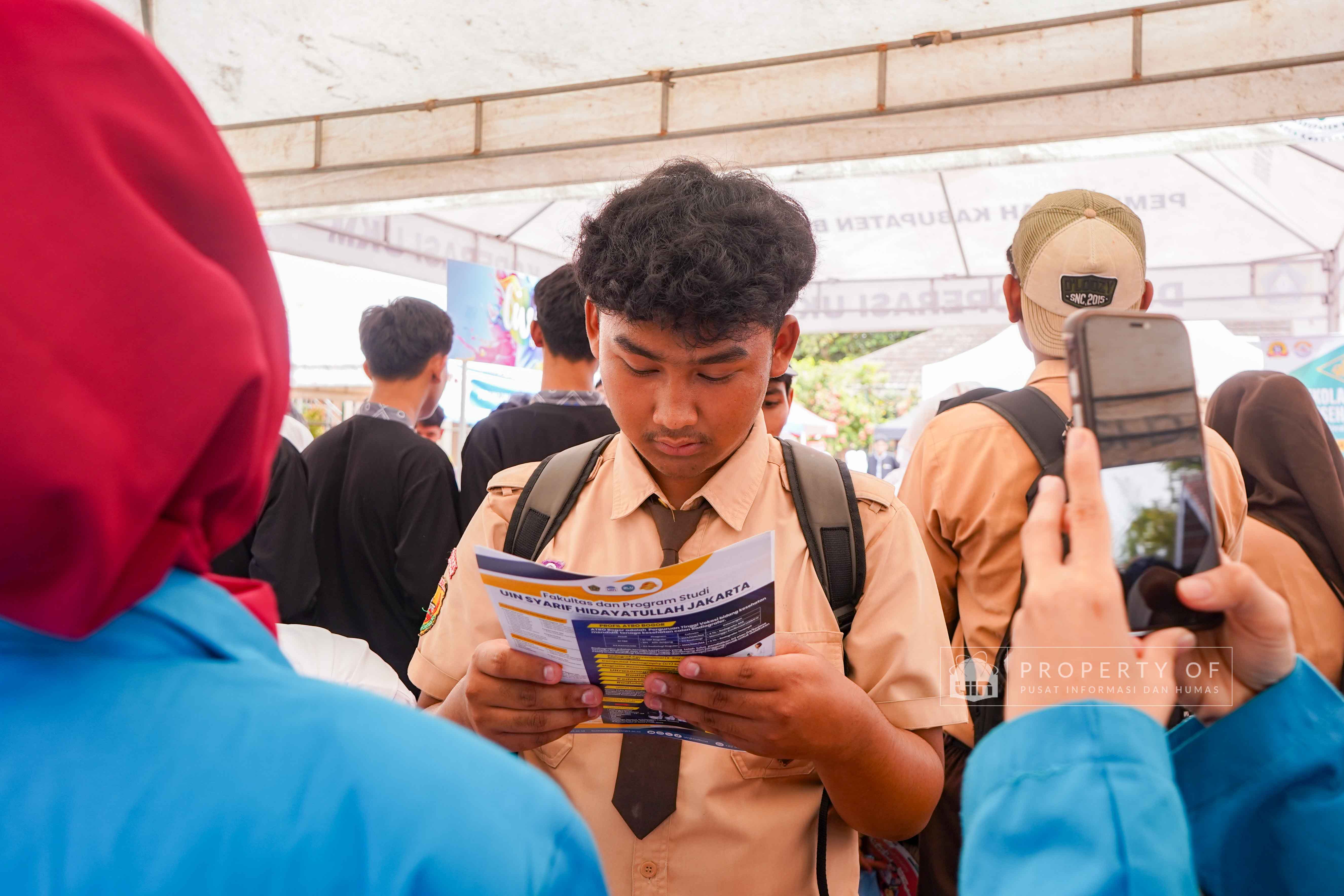 UIN Syarif Hidayatullah Jakarta, berkolaborasi dengan Kejaksaan Negeri Tangerang Selatan, menggelar kegiatan "UIN Syarif Hidayatullah Jakarta menggelar Education Fair di SMA 1 Gunung Sindur pada Kamis, 13 November 2025. kegiatan tersebut, yang berlangsung mulai pukul 07.00 WIB, untuk menyosialisasikan informasi kampus kepada para siswa dan siswi di SMA 1 Gunung Sindur. (Fotografer: Ihsan Nur Fikri/ Teks: Nabila Azzahra Syawal/Pusat Informasi dan Humas UIN Jakarta)